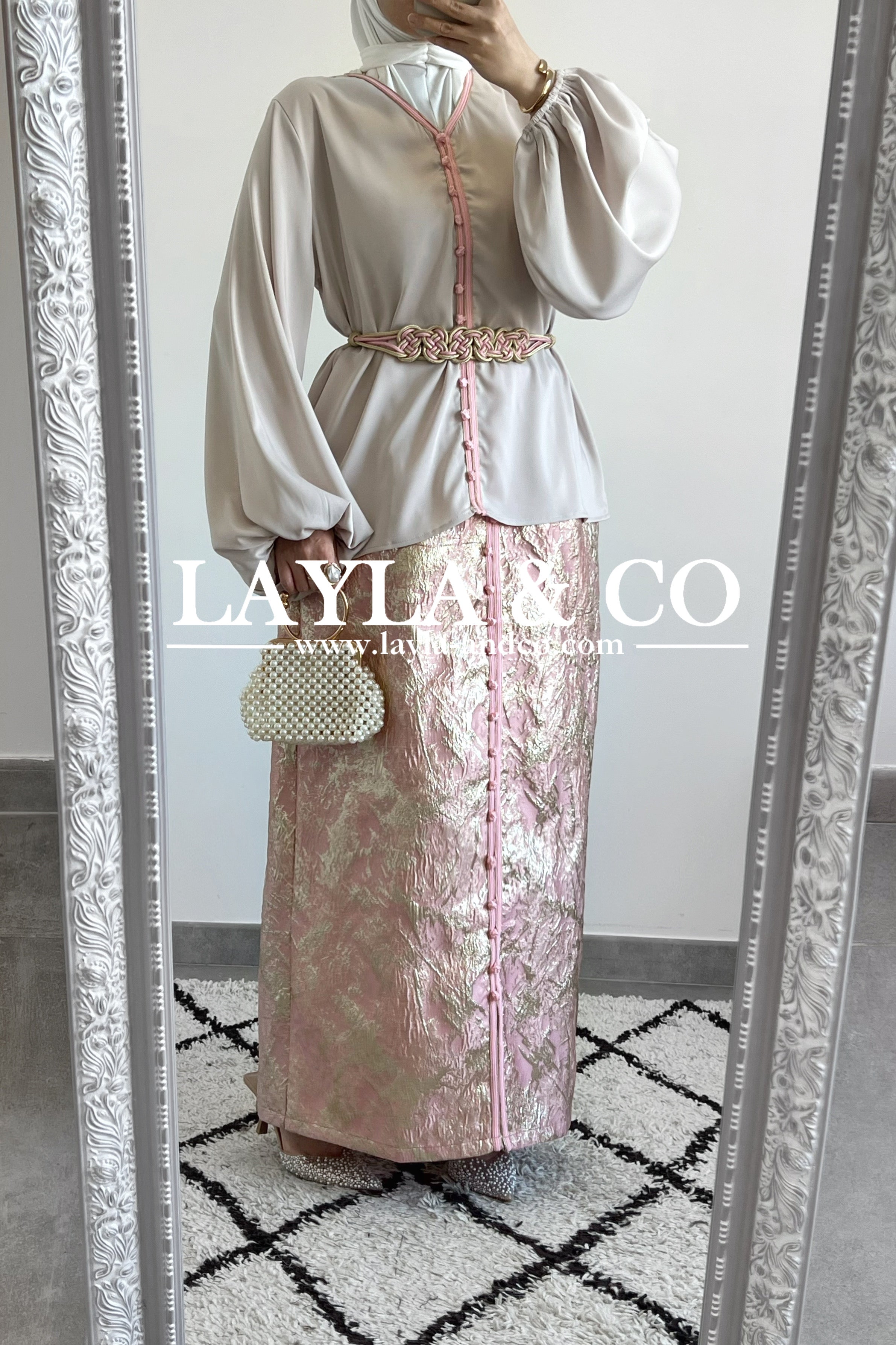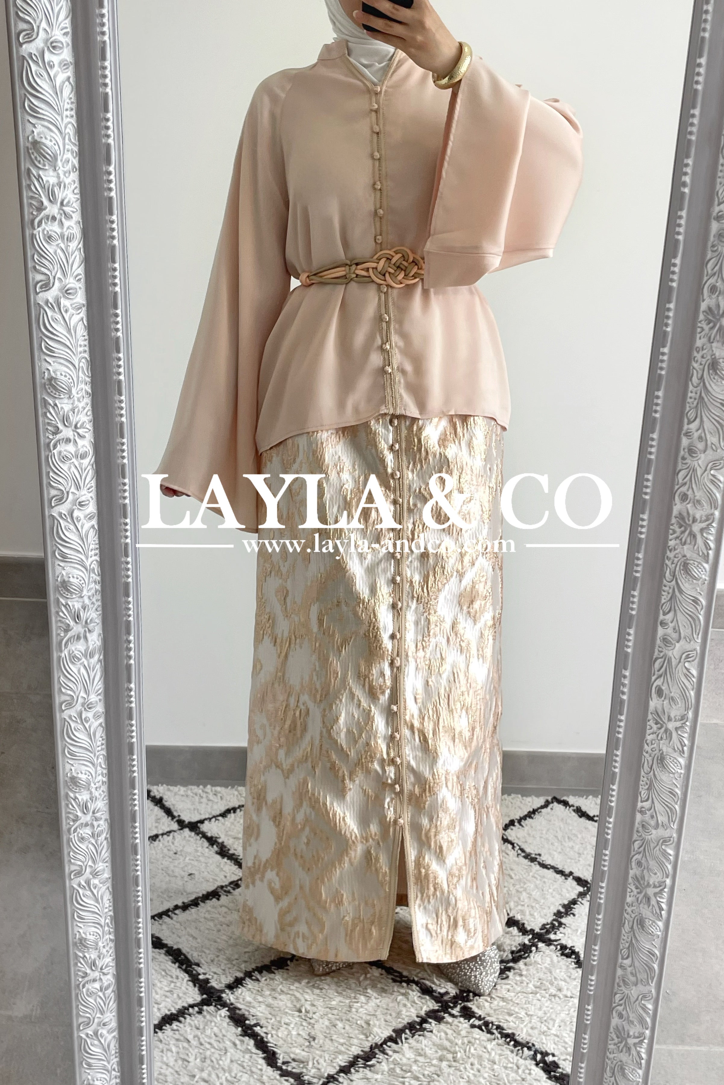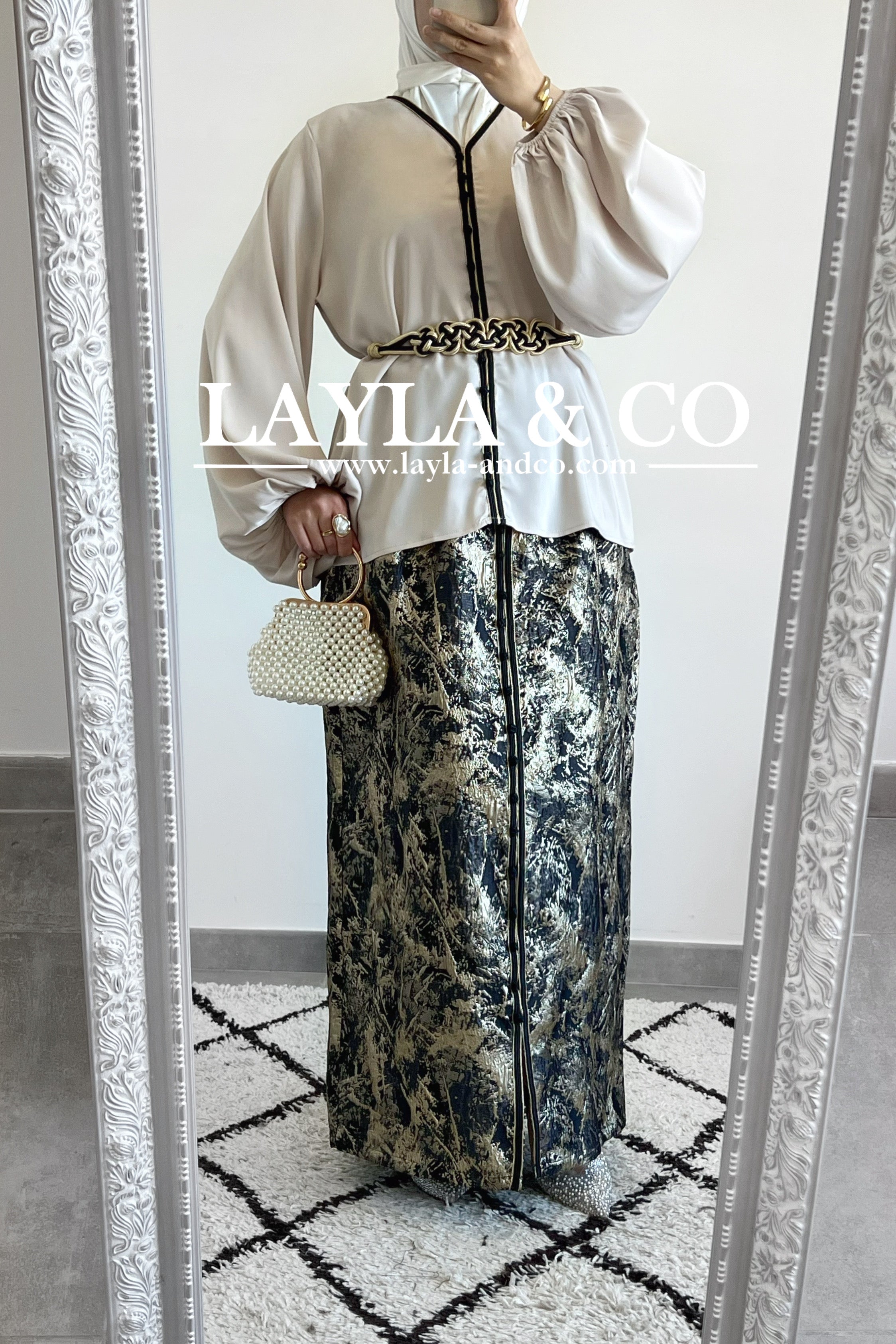 PREMIUM - Ensemble top satiné et jupe brocart