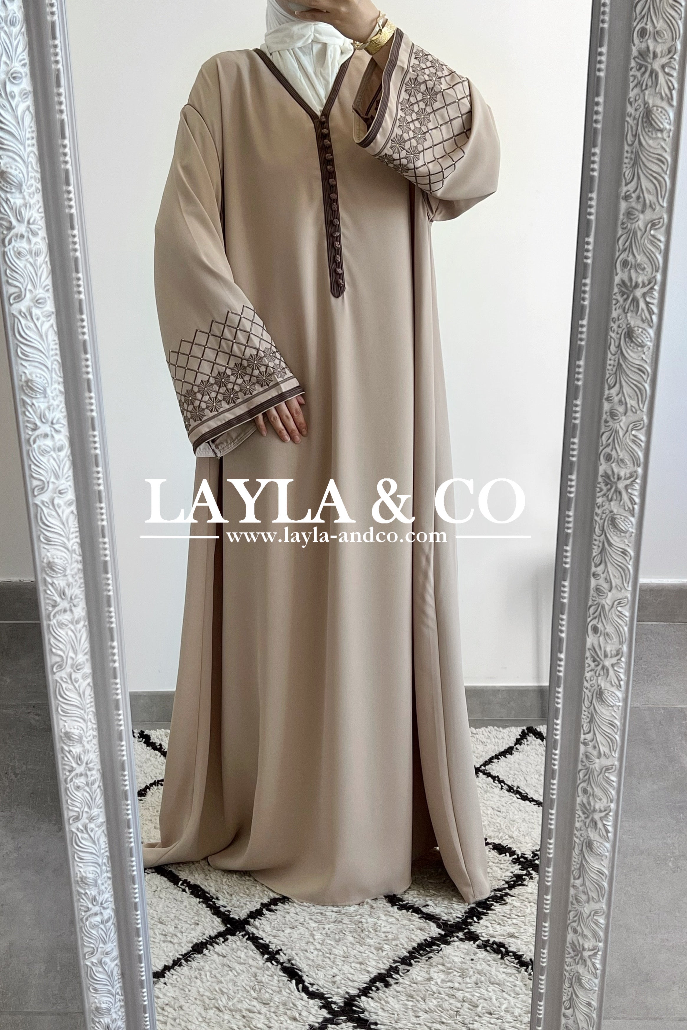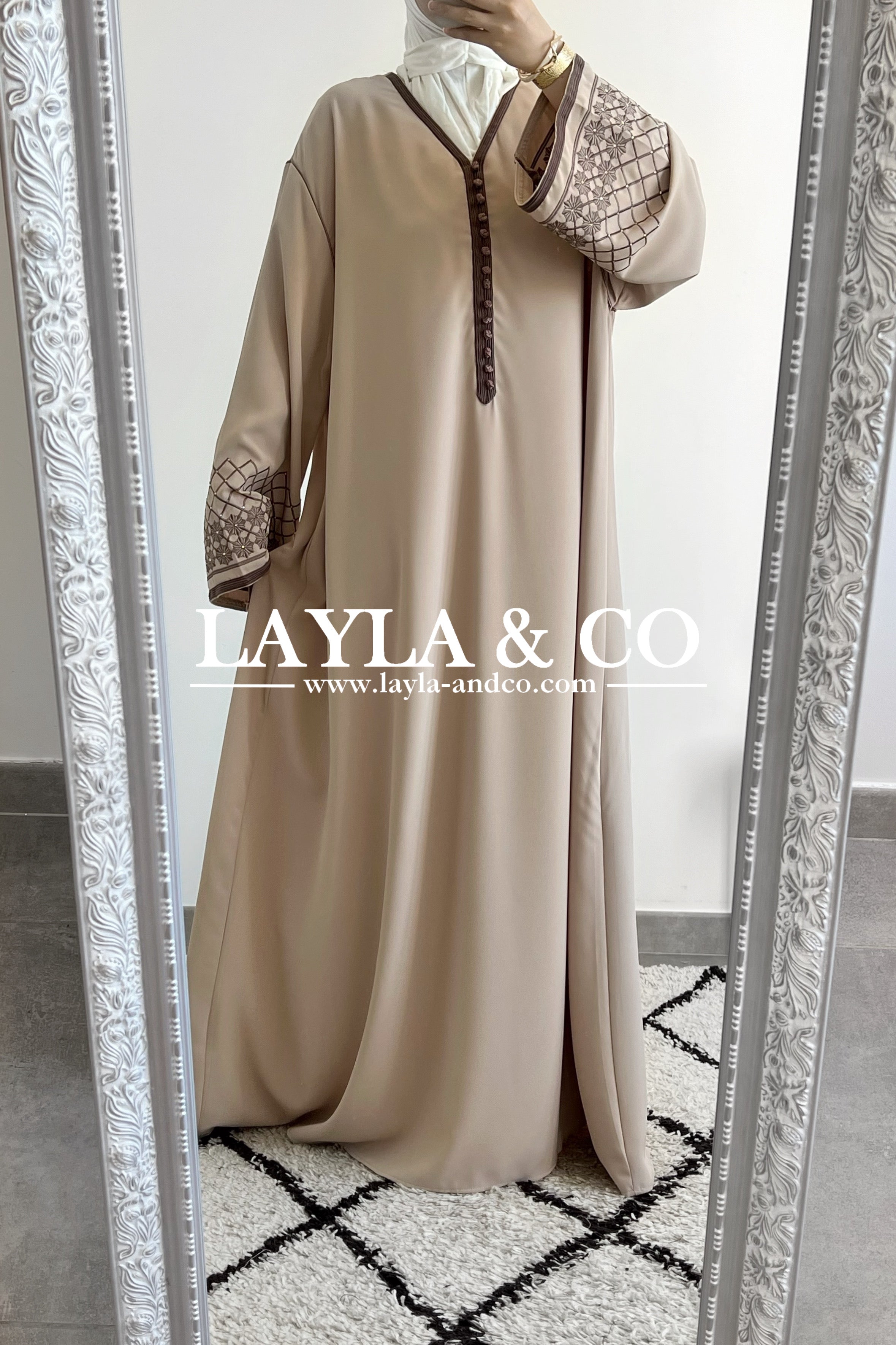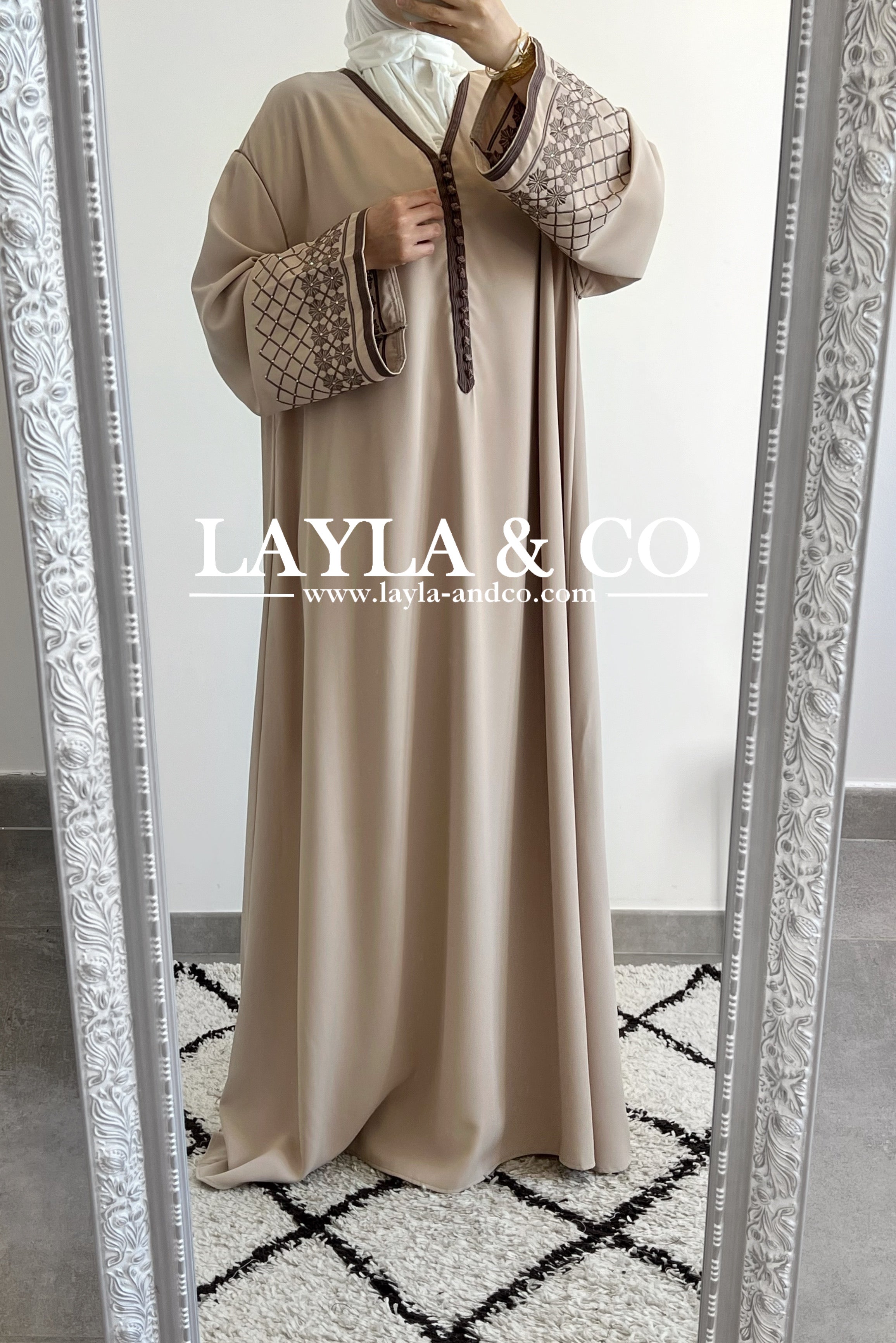 Abaya style caftan manches broderie
