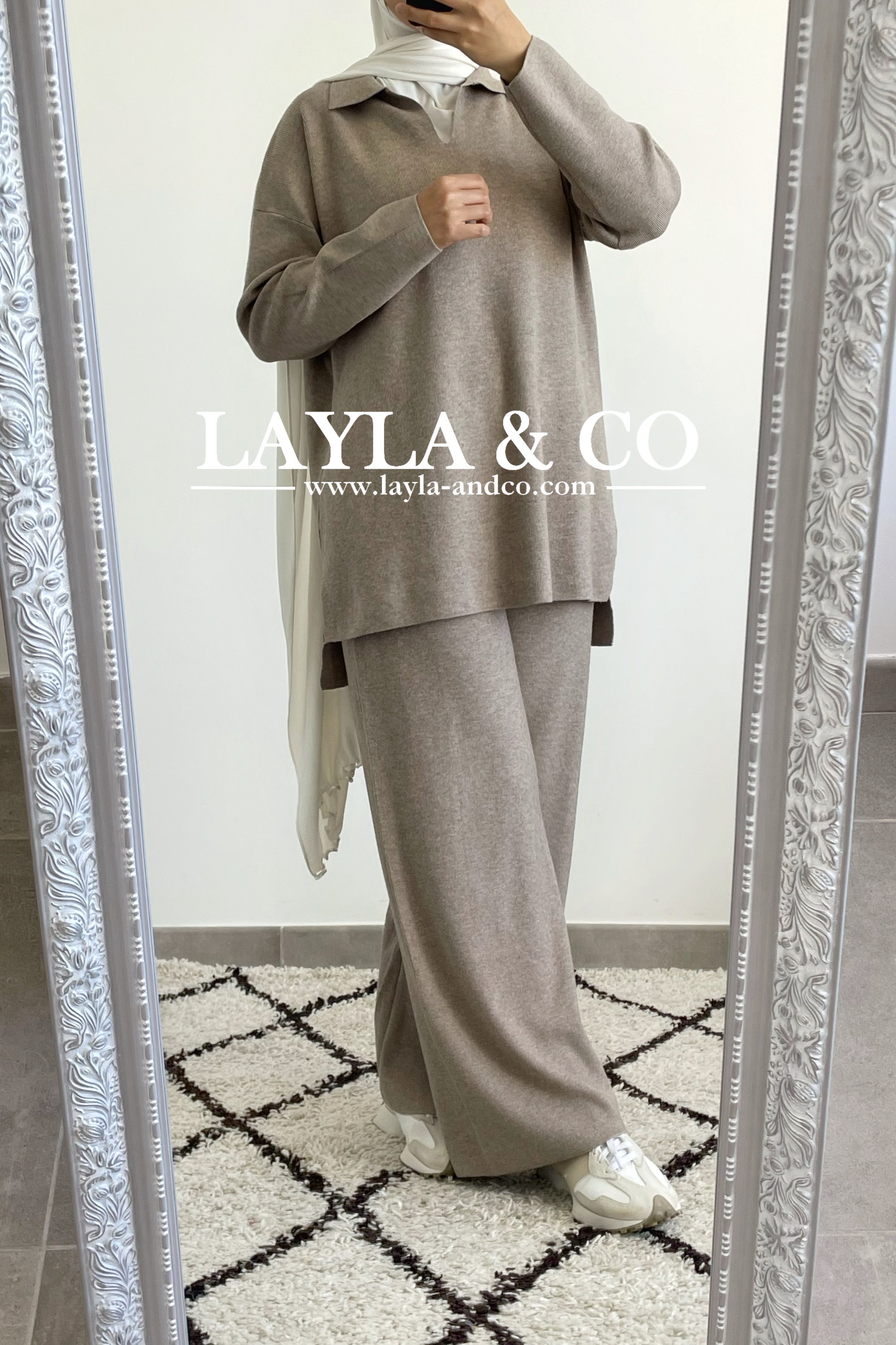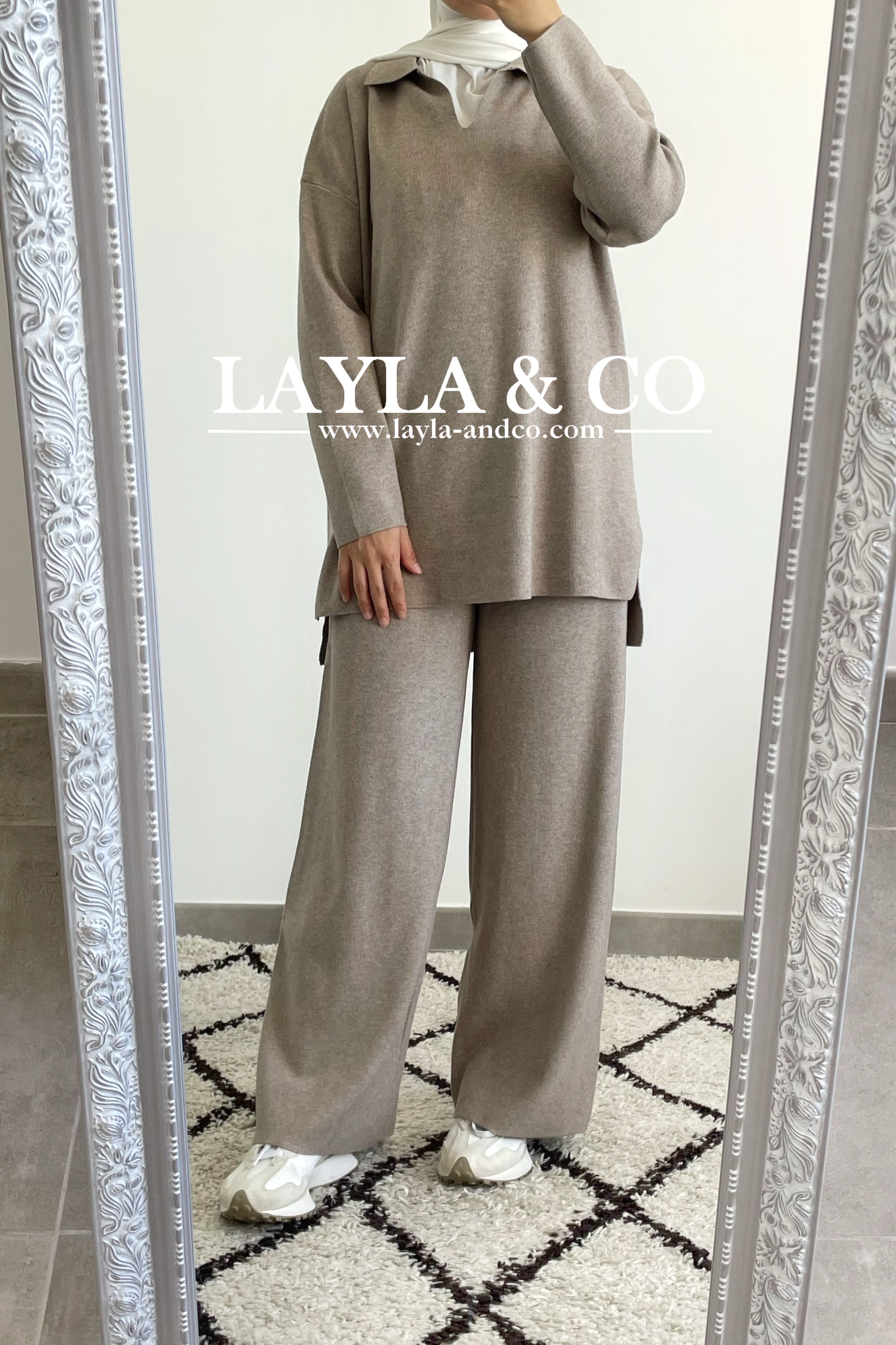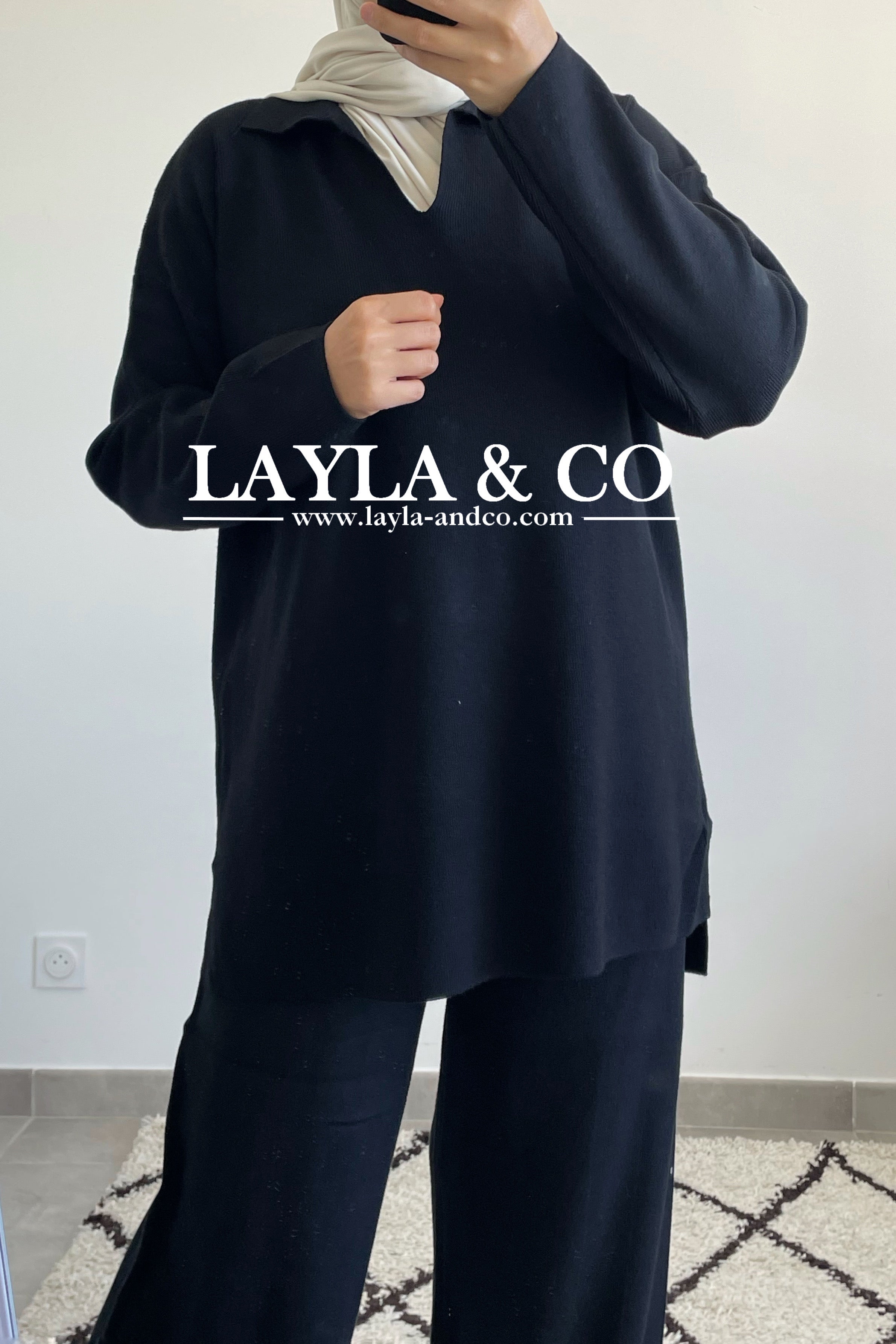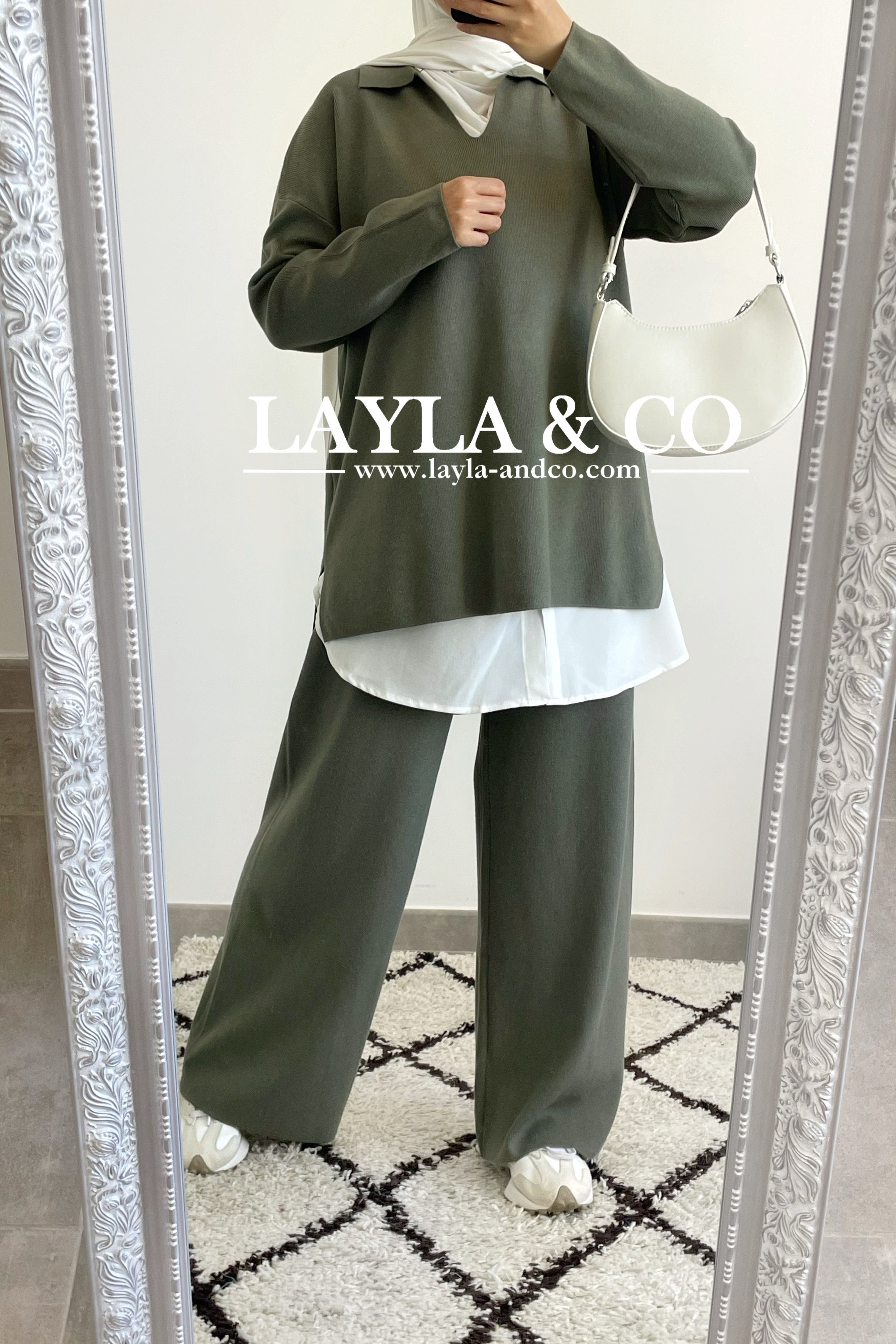 Ensemble 2 pièces composé d’un polo et d’un pantalon large élastique à la taille.