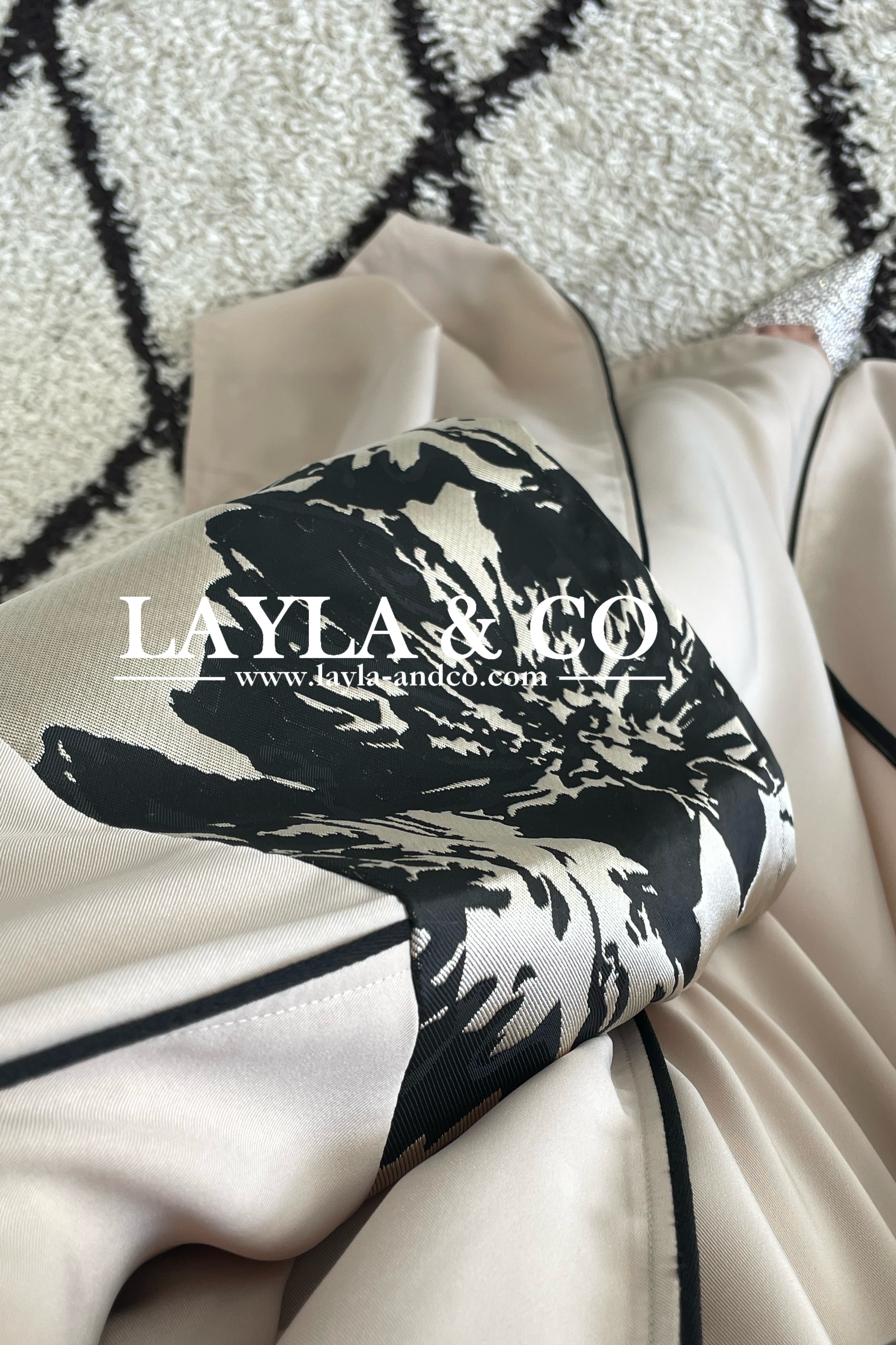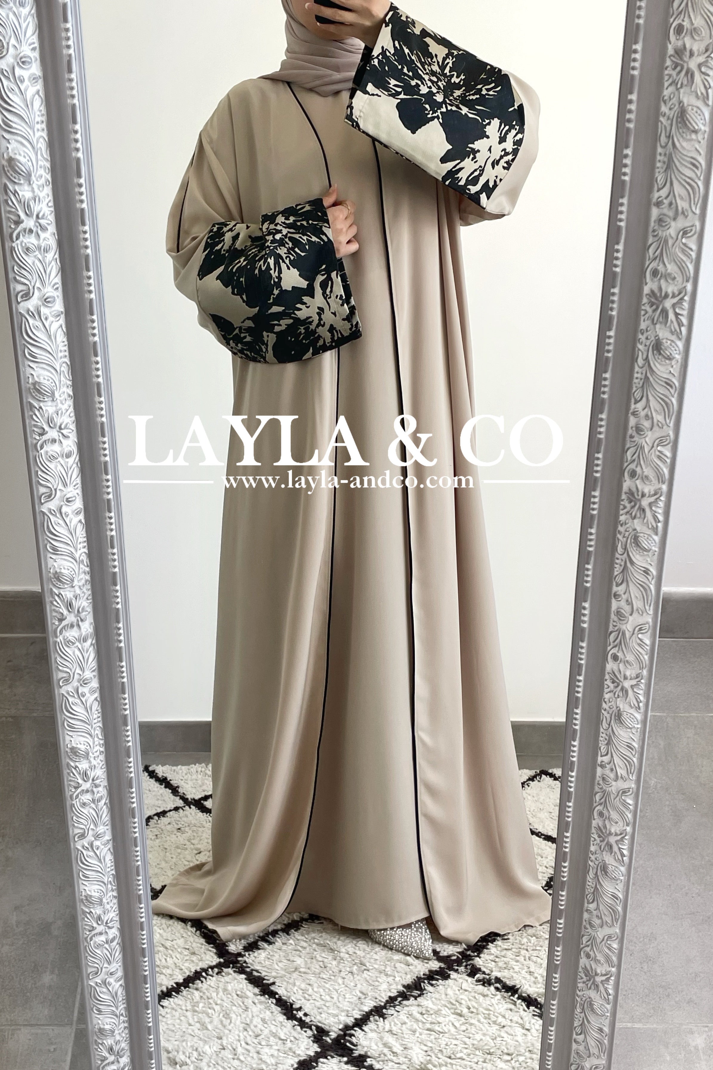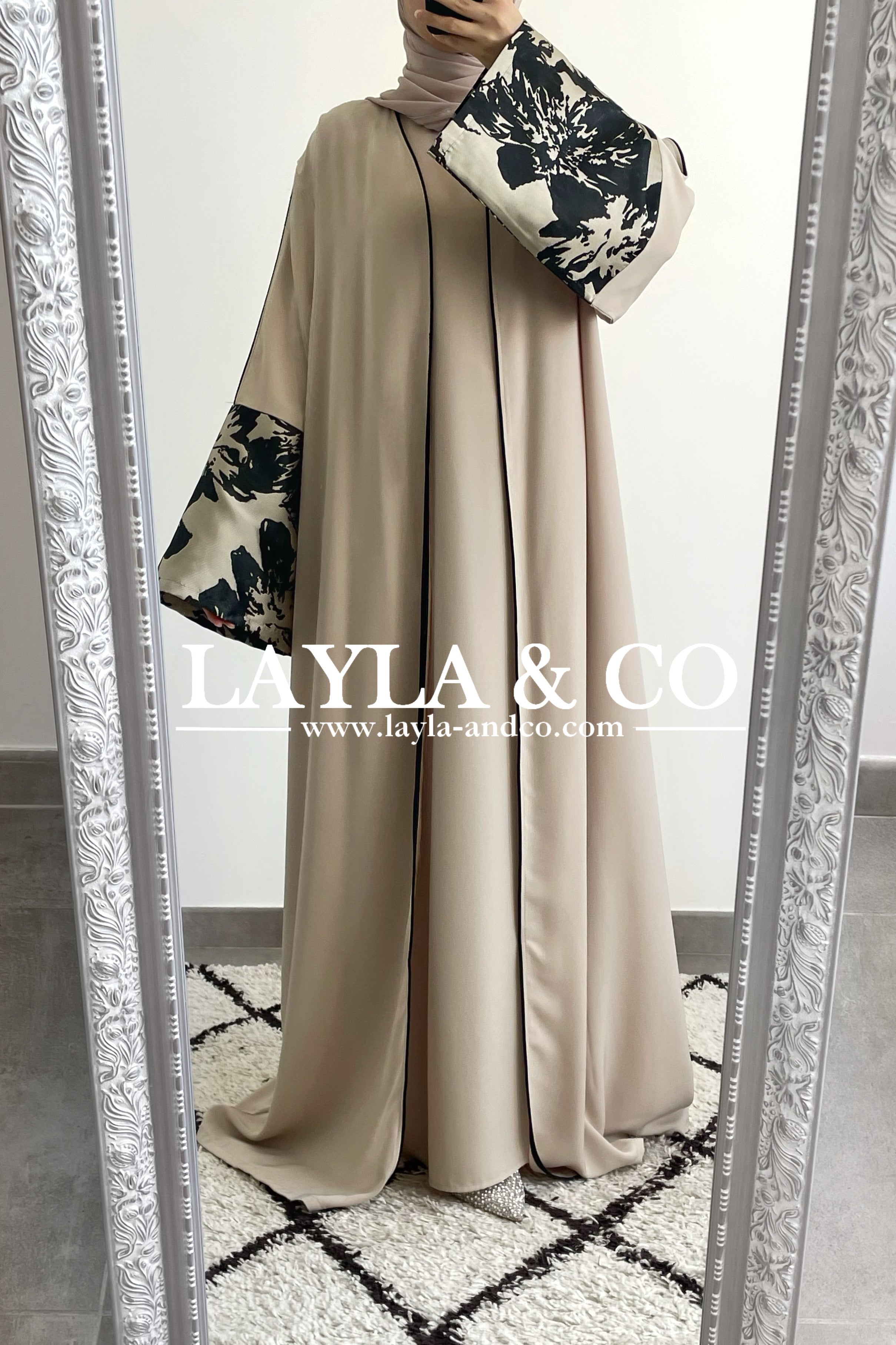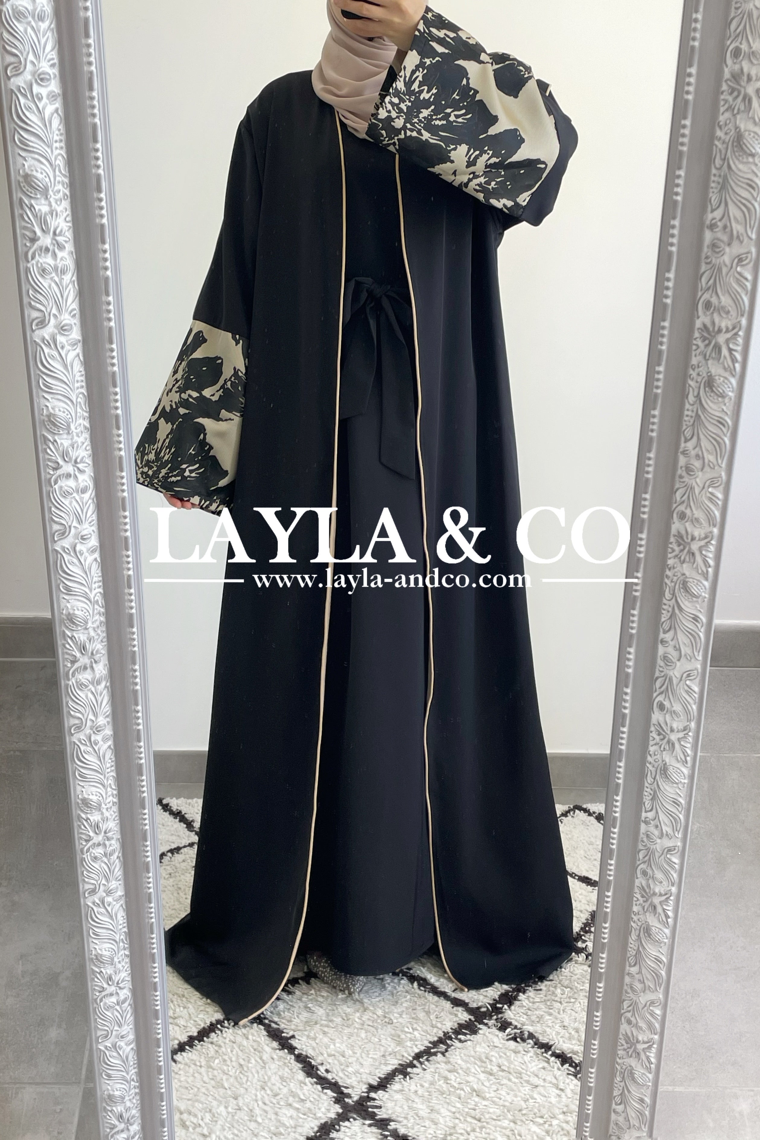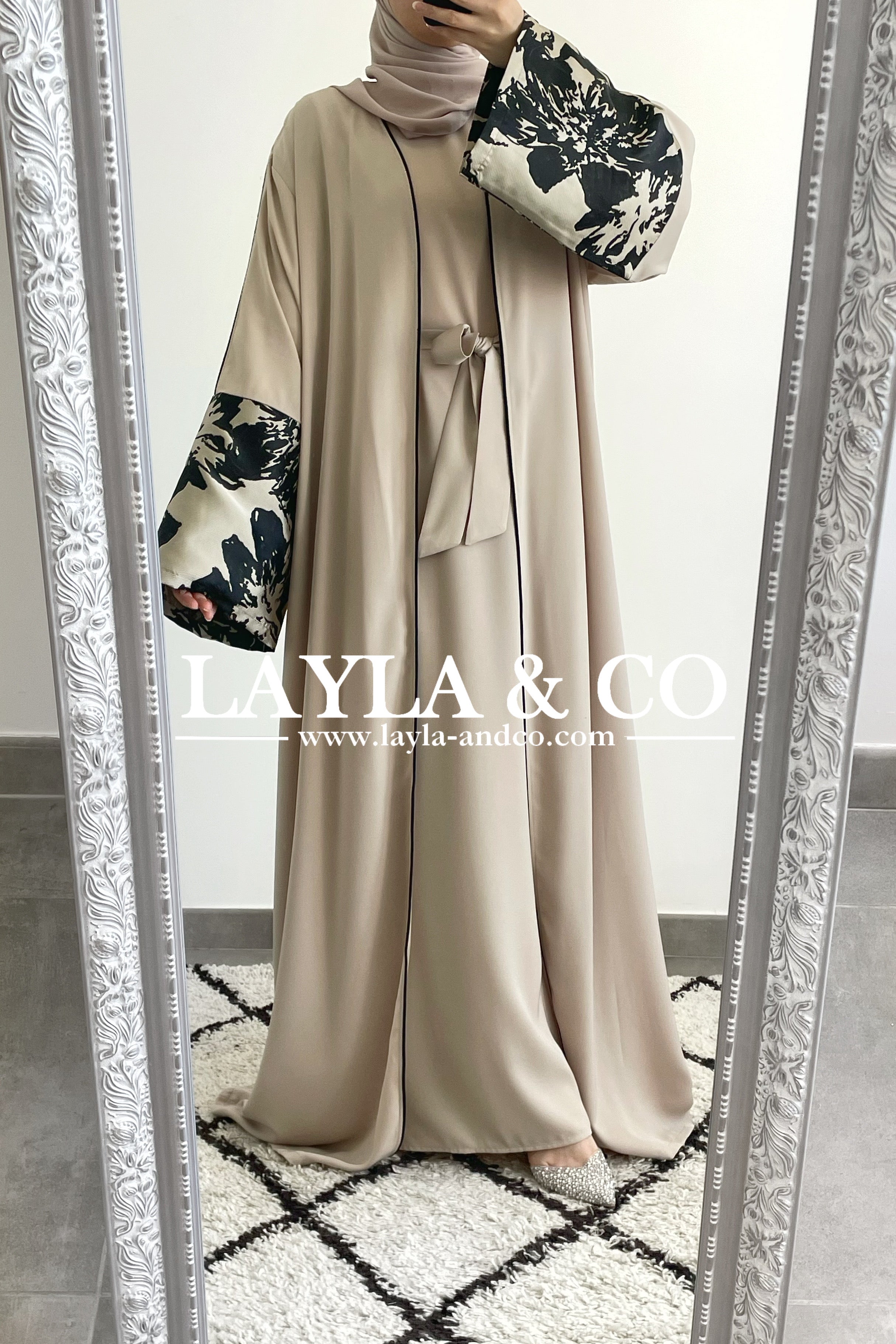 Ensemble 2 pièces composé d’une sous robe debardeur et d’un kimono manches brocart.