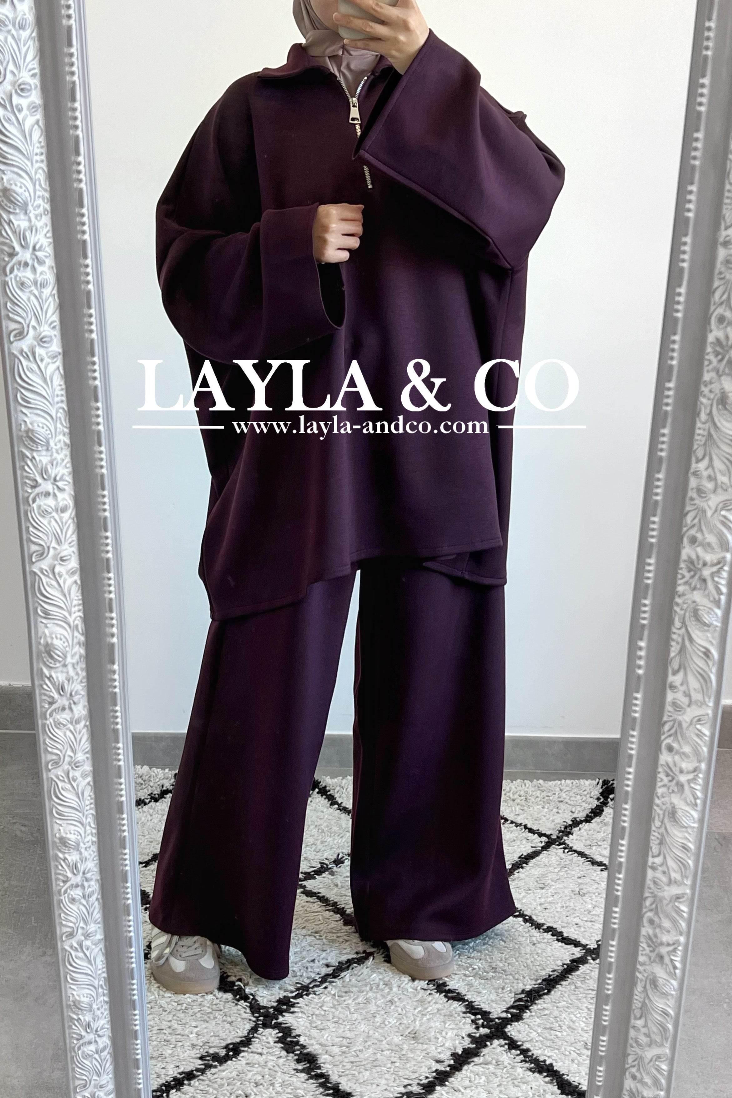 Ensemble 2 pièces composé d’un sweat oversize à col et zip et d’un pantalon large. Le pantalon est élastique à la taille et dispose de pôches.