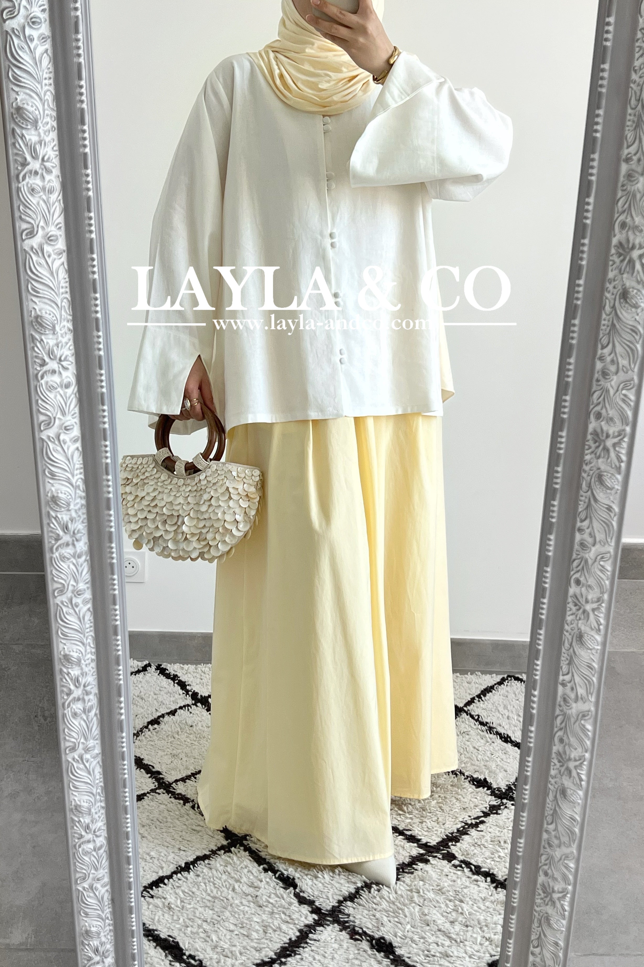 Top style asiatique avec ouverture par boutons. Fente aux manches. Tissu coton mélangé