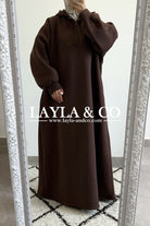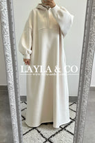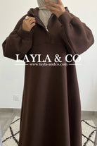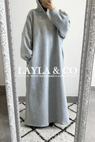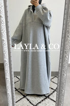 Robe sweat en coton mélangé intérieur molletonné, zip sur le buste, capuche et pôches sur le côté.