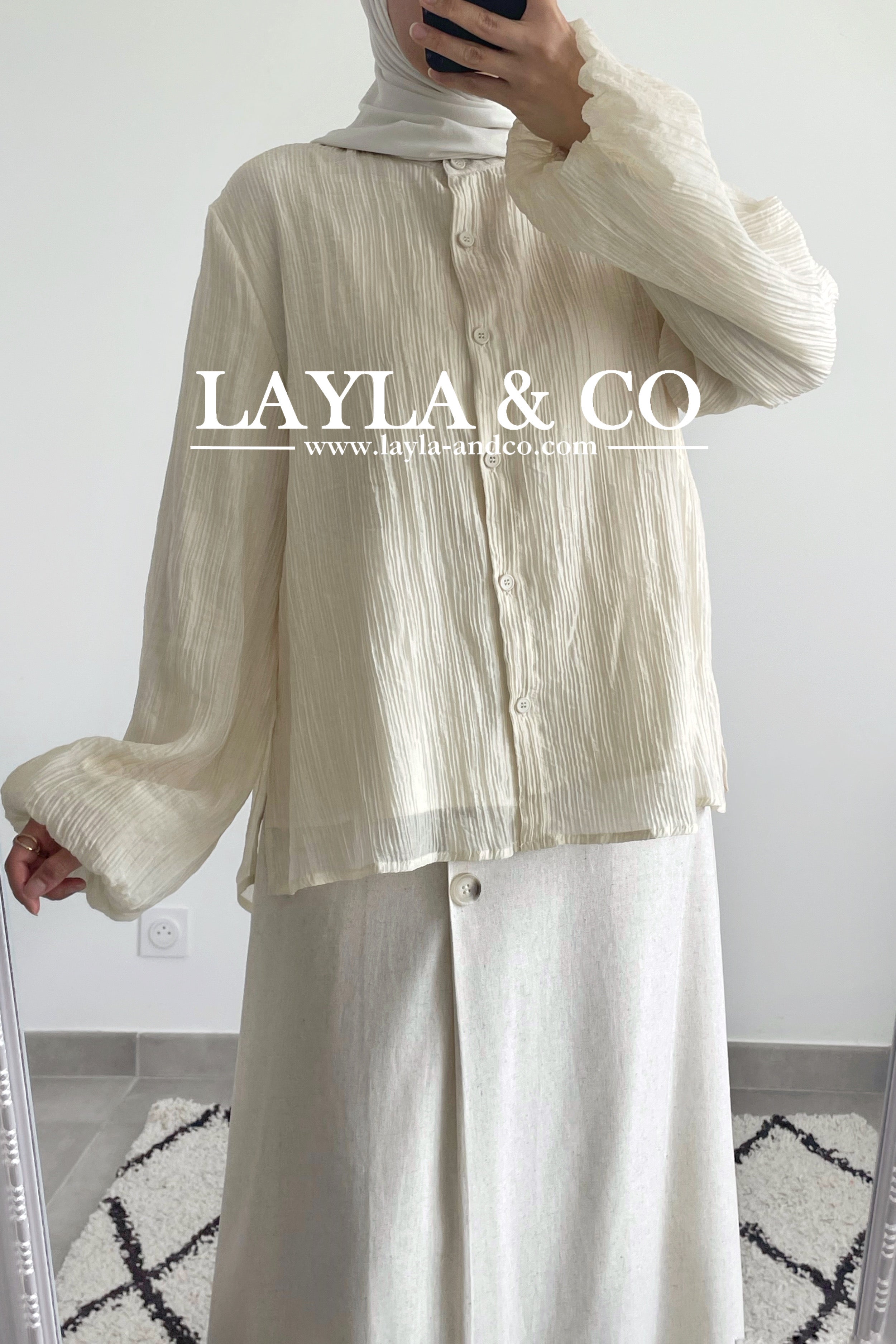 Top chemise manches bouffantes entièrement doublé. Tissu en tencel mélangé.