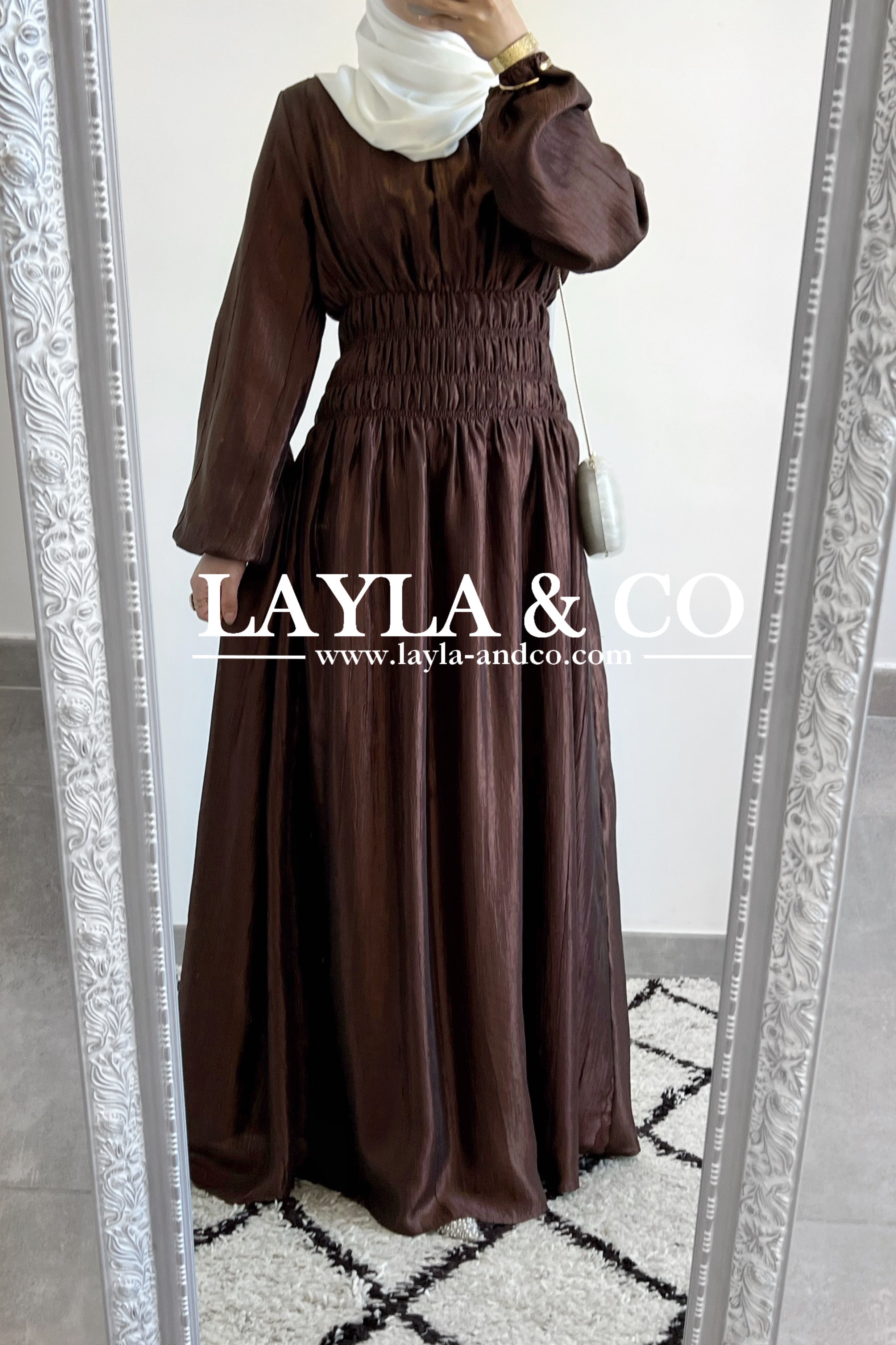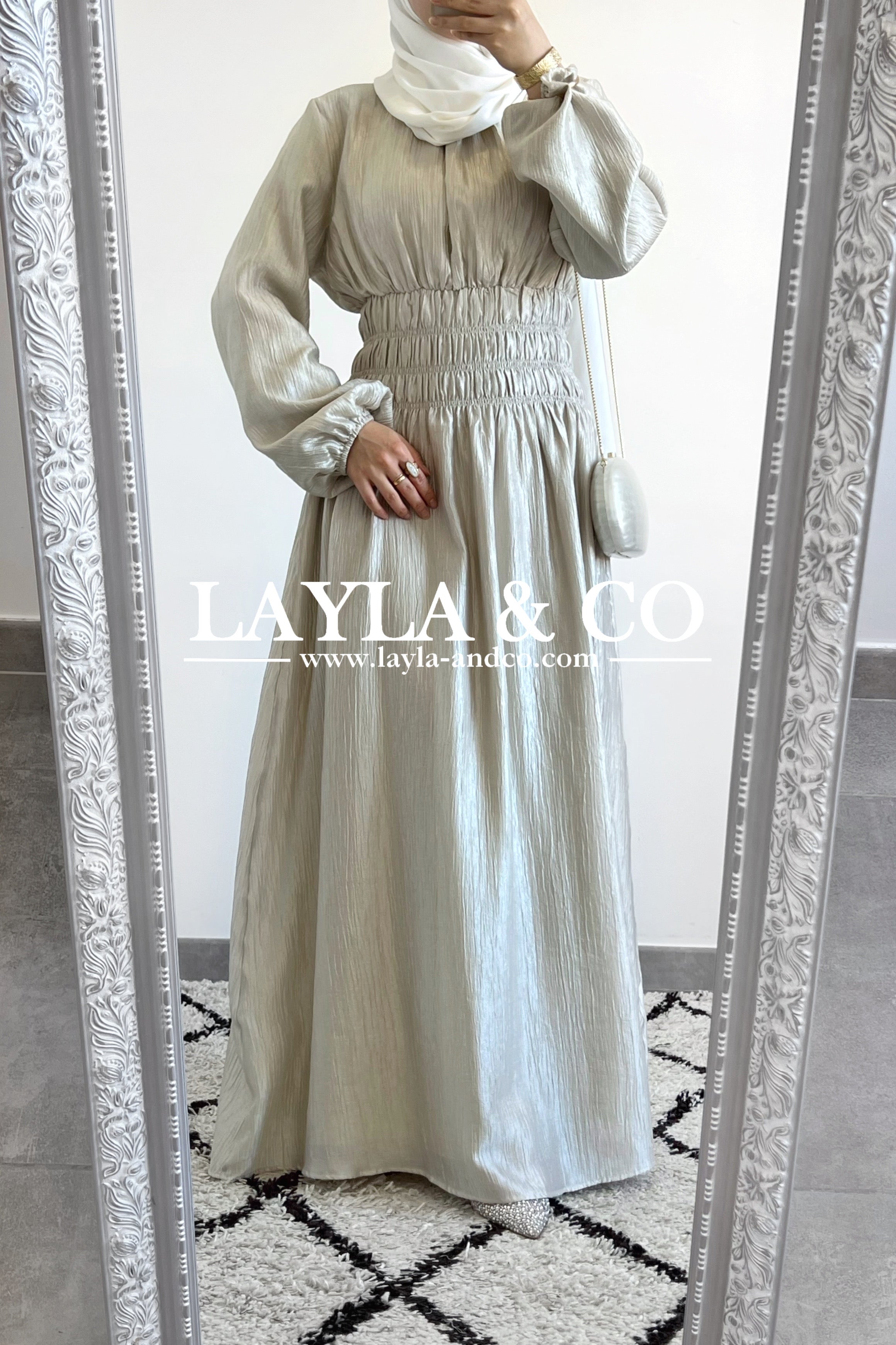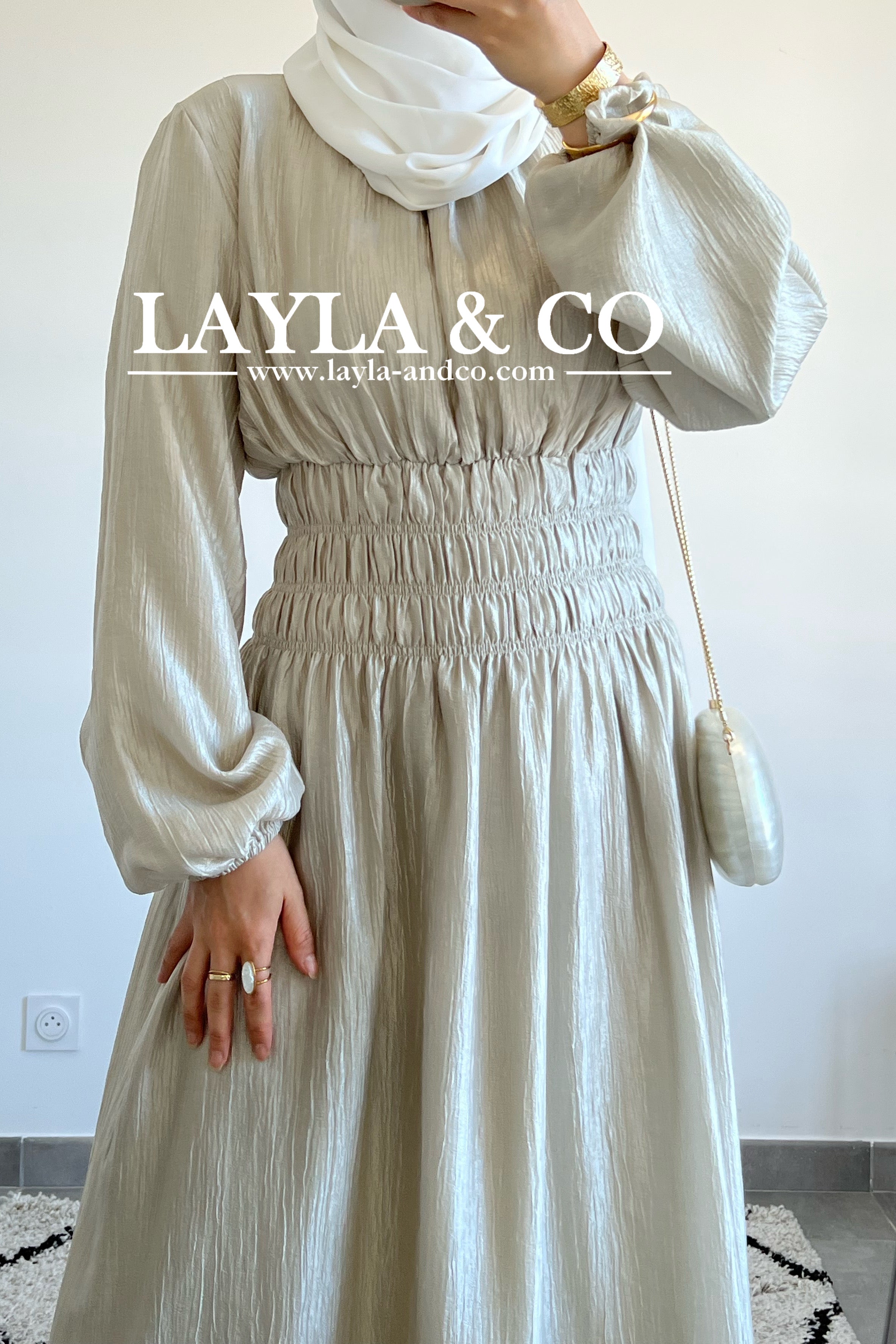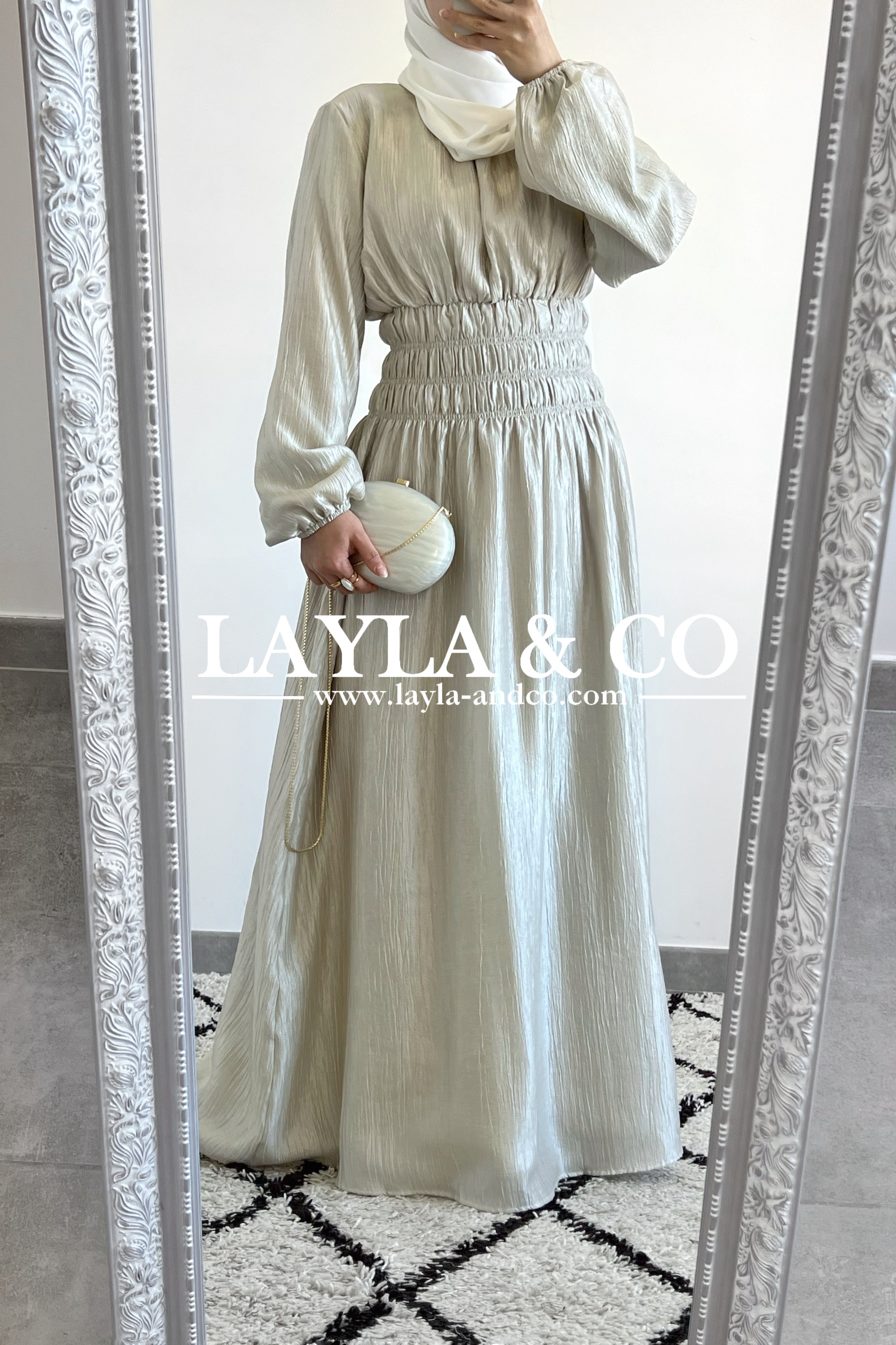Robe organza cintrée et élastique à la taille. Entièrement doublée.