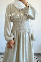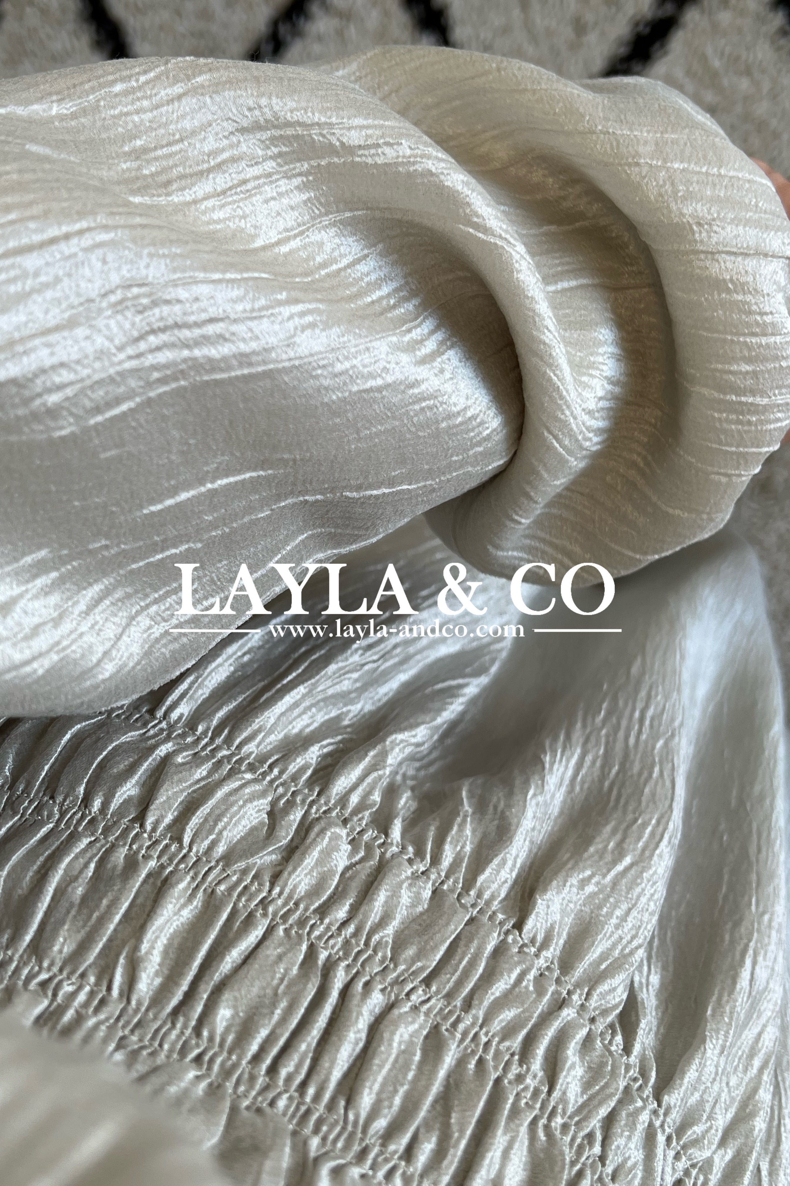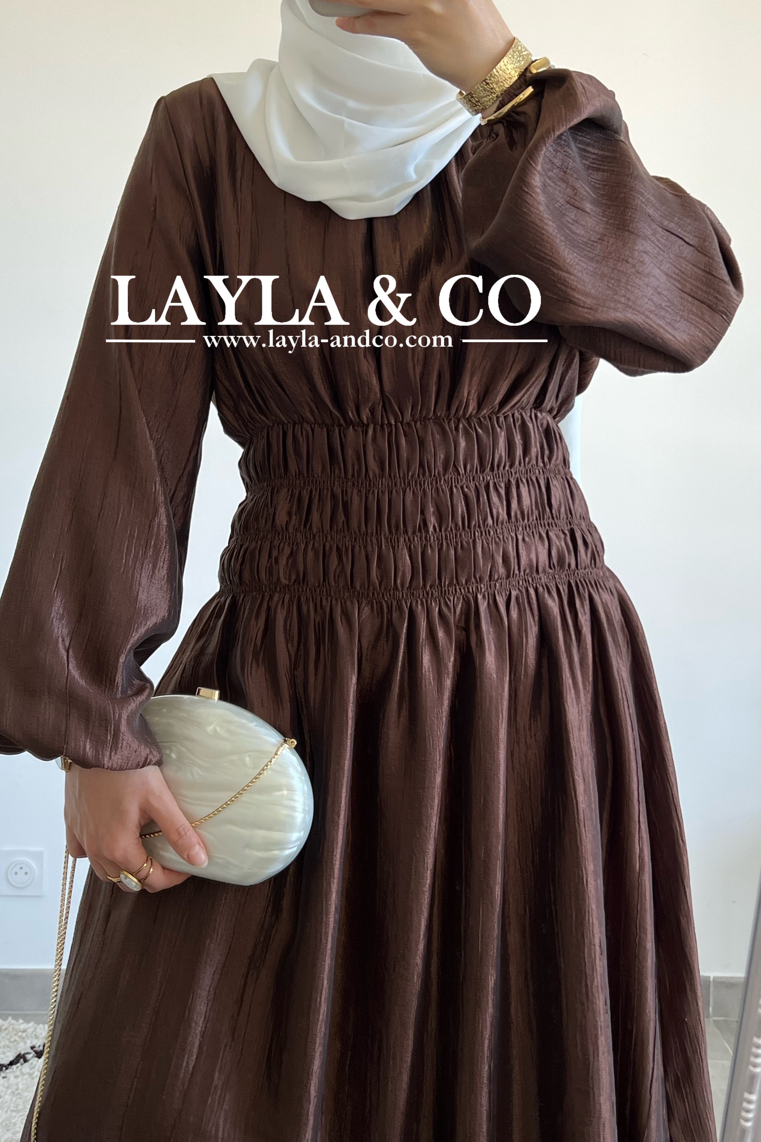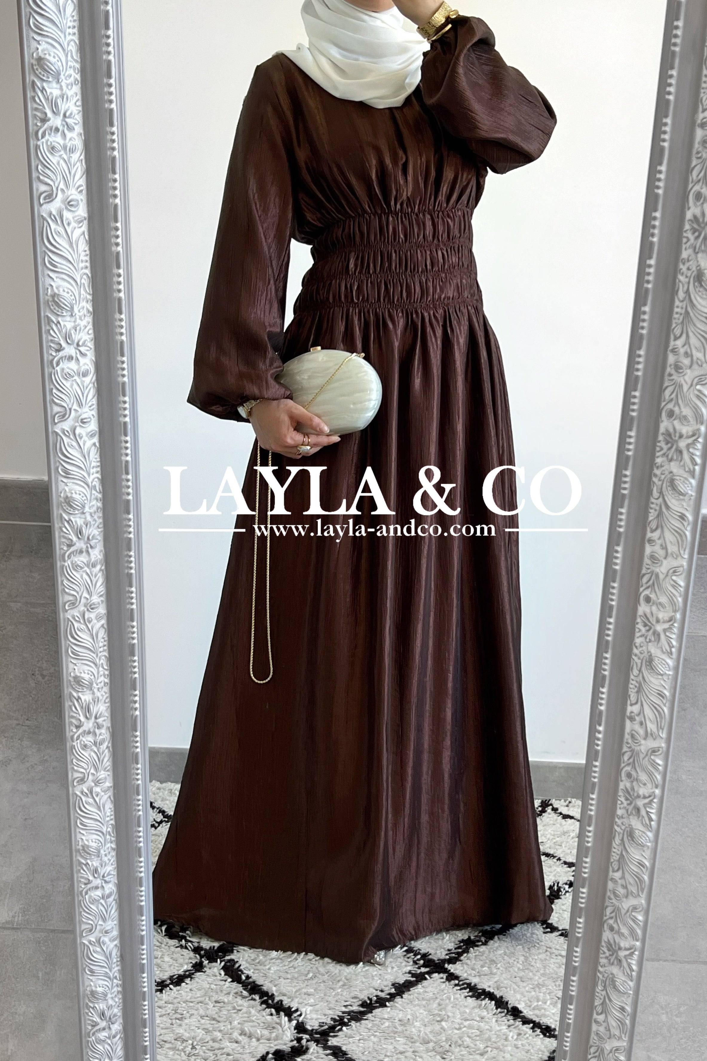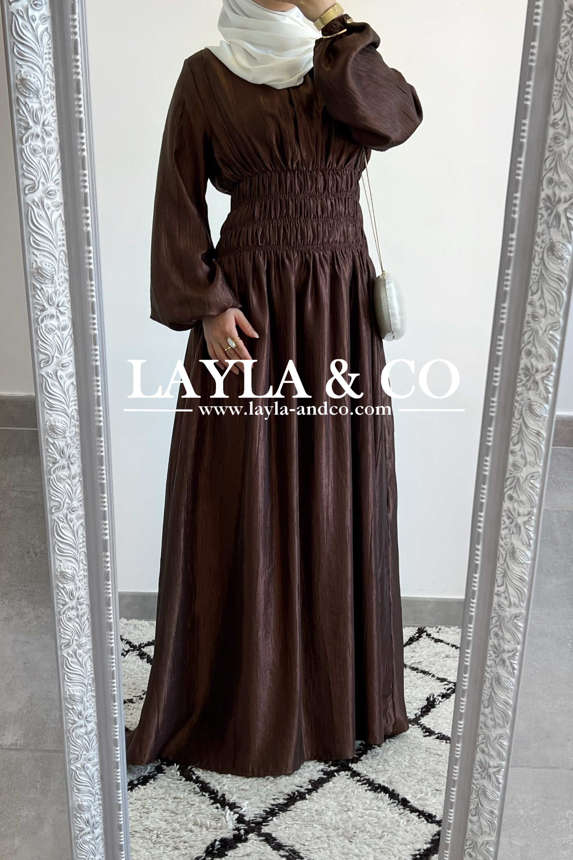 Robe organza cintrée et élastique à la taille. Entièrement doublée.