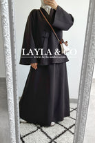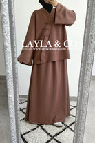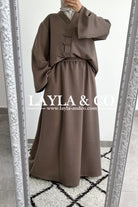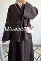 Ensemble 2 pièces composé d’un haut style asiatique et d’une jupe assortie. Conçu dans un tissu type sweat très confortable pour un style sport.