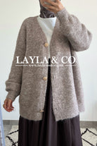 Cardigan avec boutons dorés, maille chaude laine mélangée.