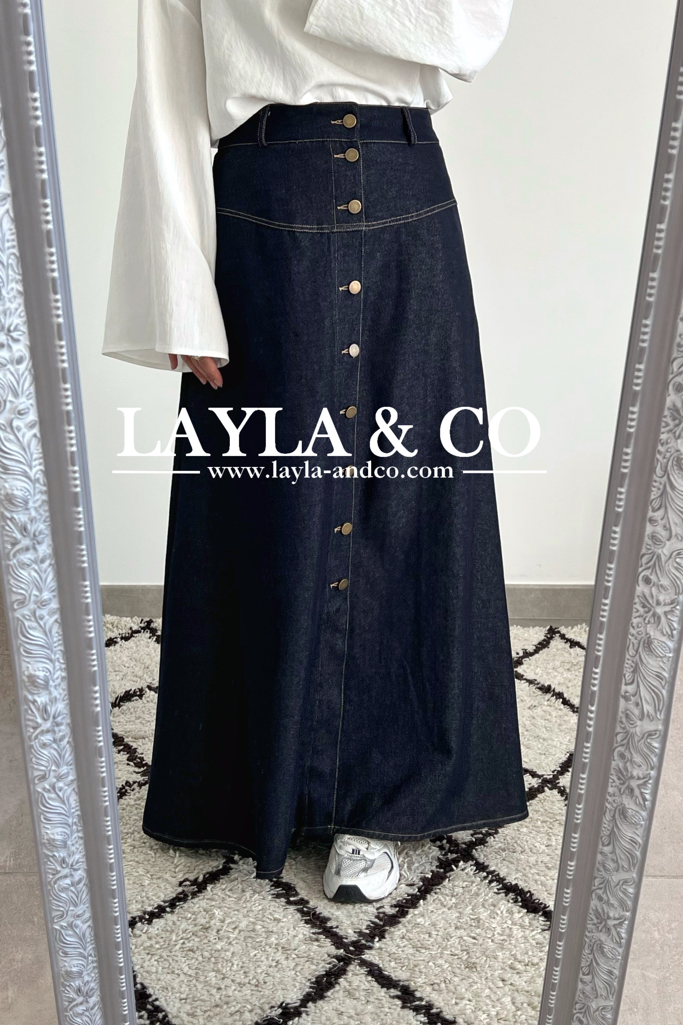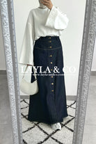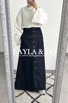 Jupe jean brut à boutons