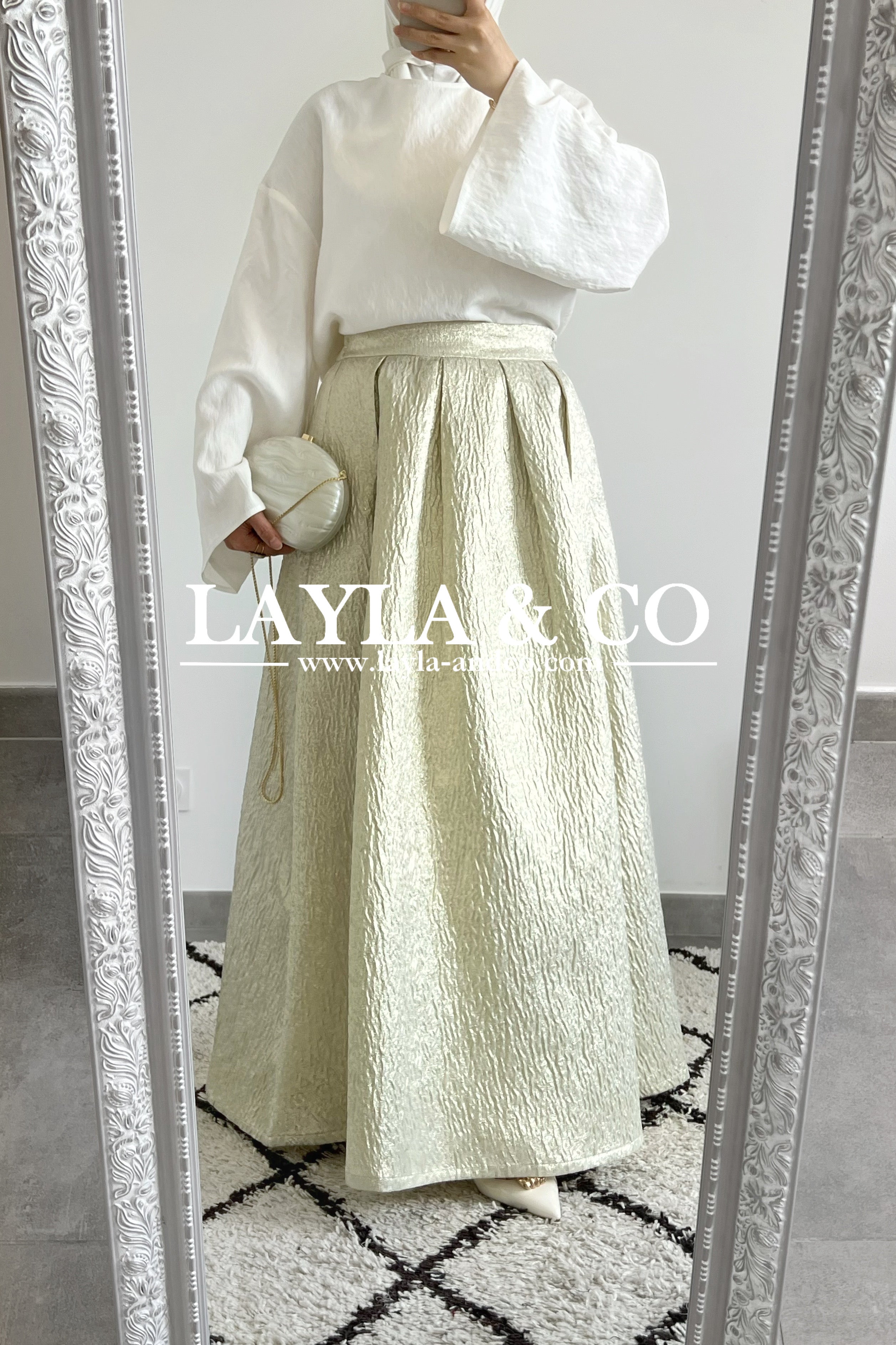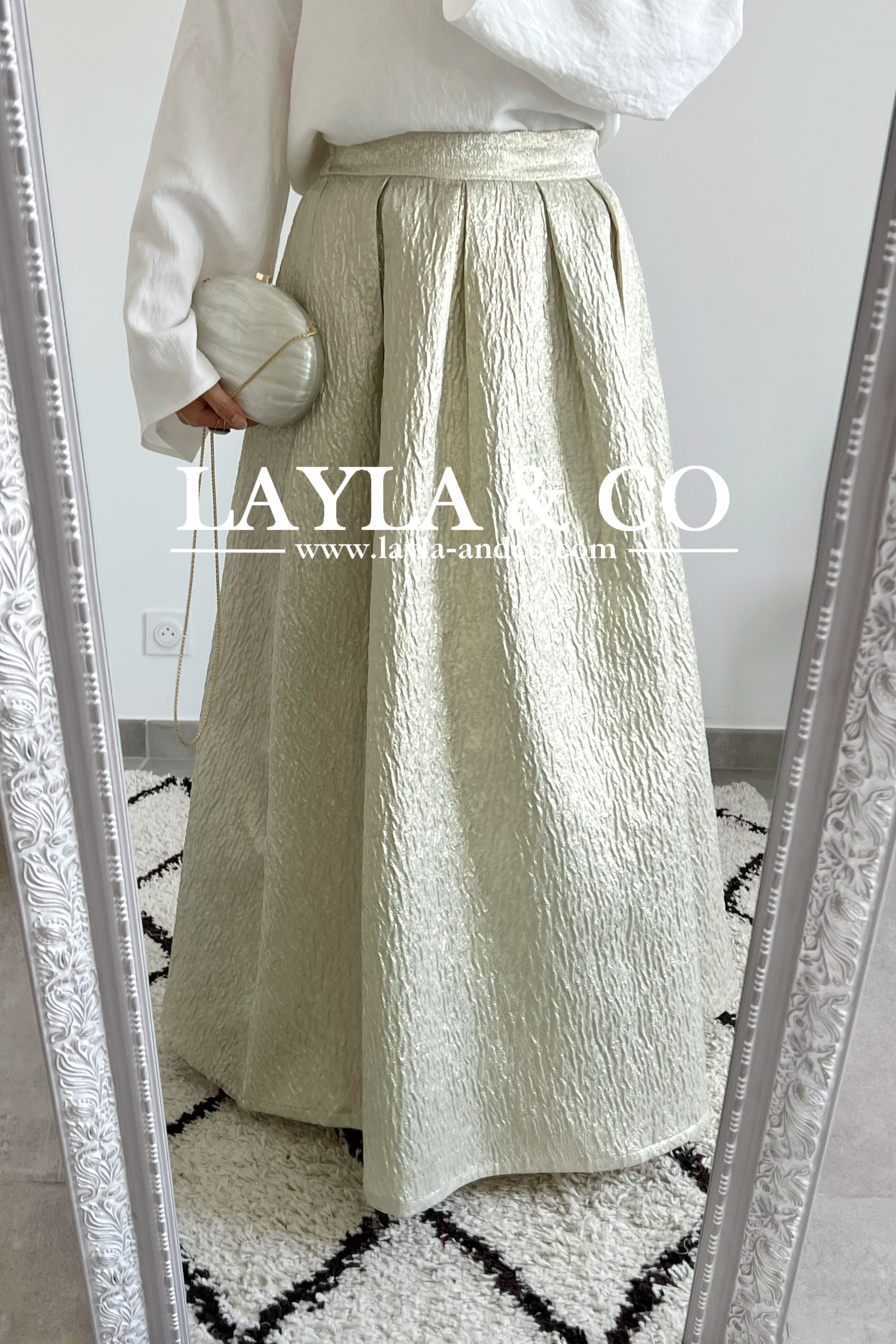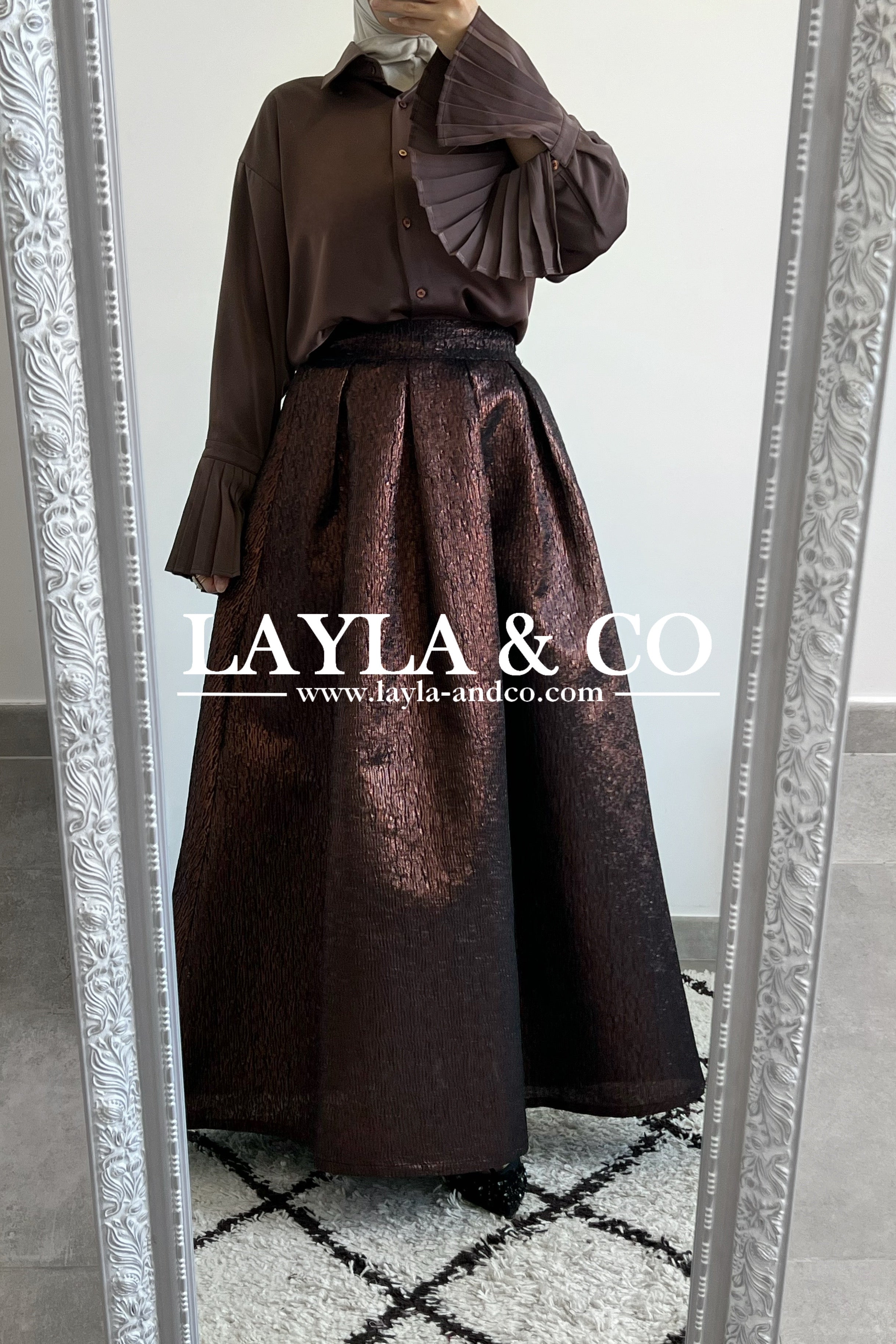Jupe évasée en brocart brillant, qualité premium. Coupe évasée trapèze.