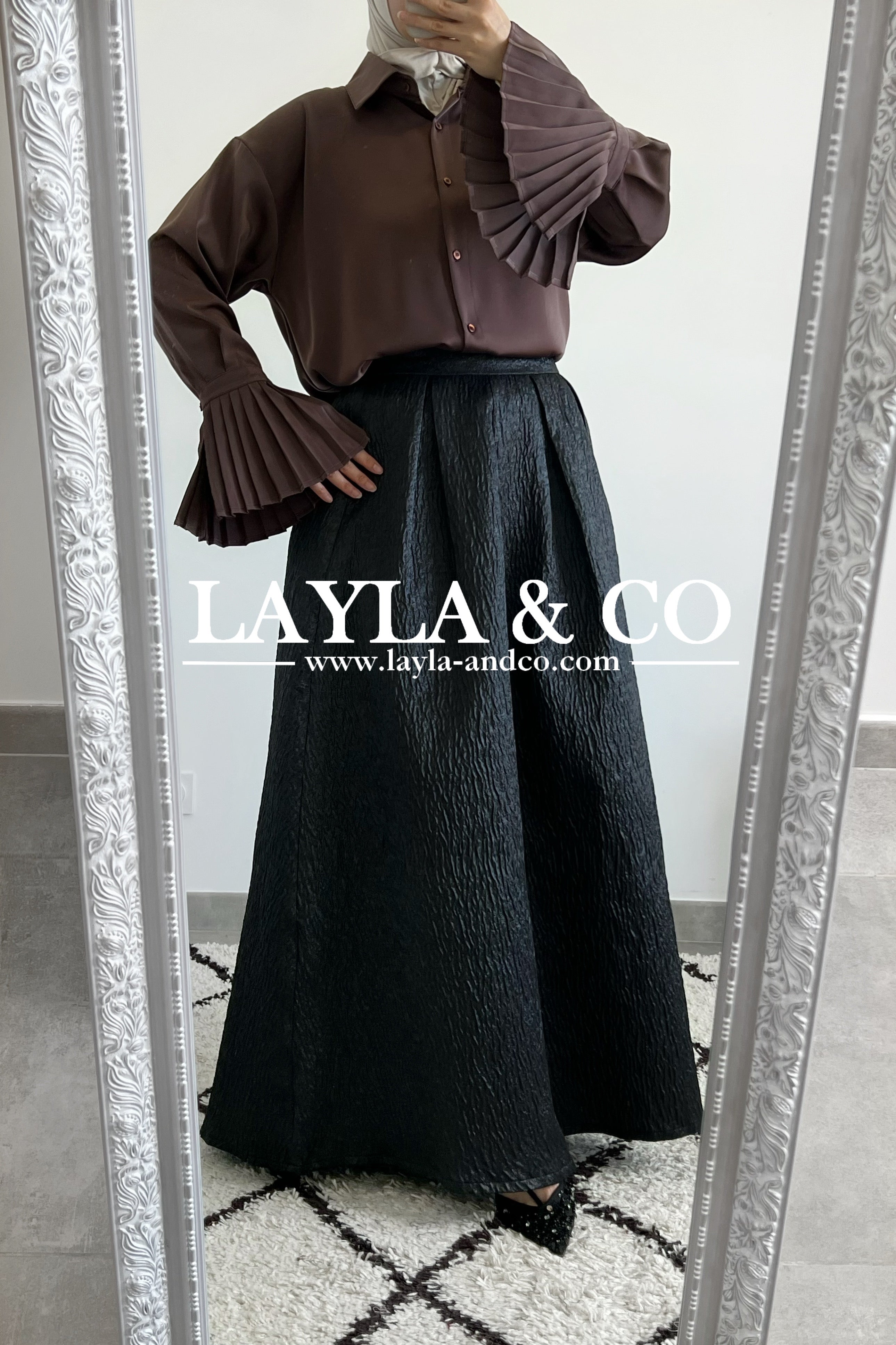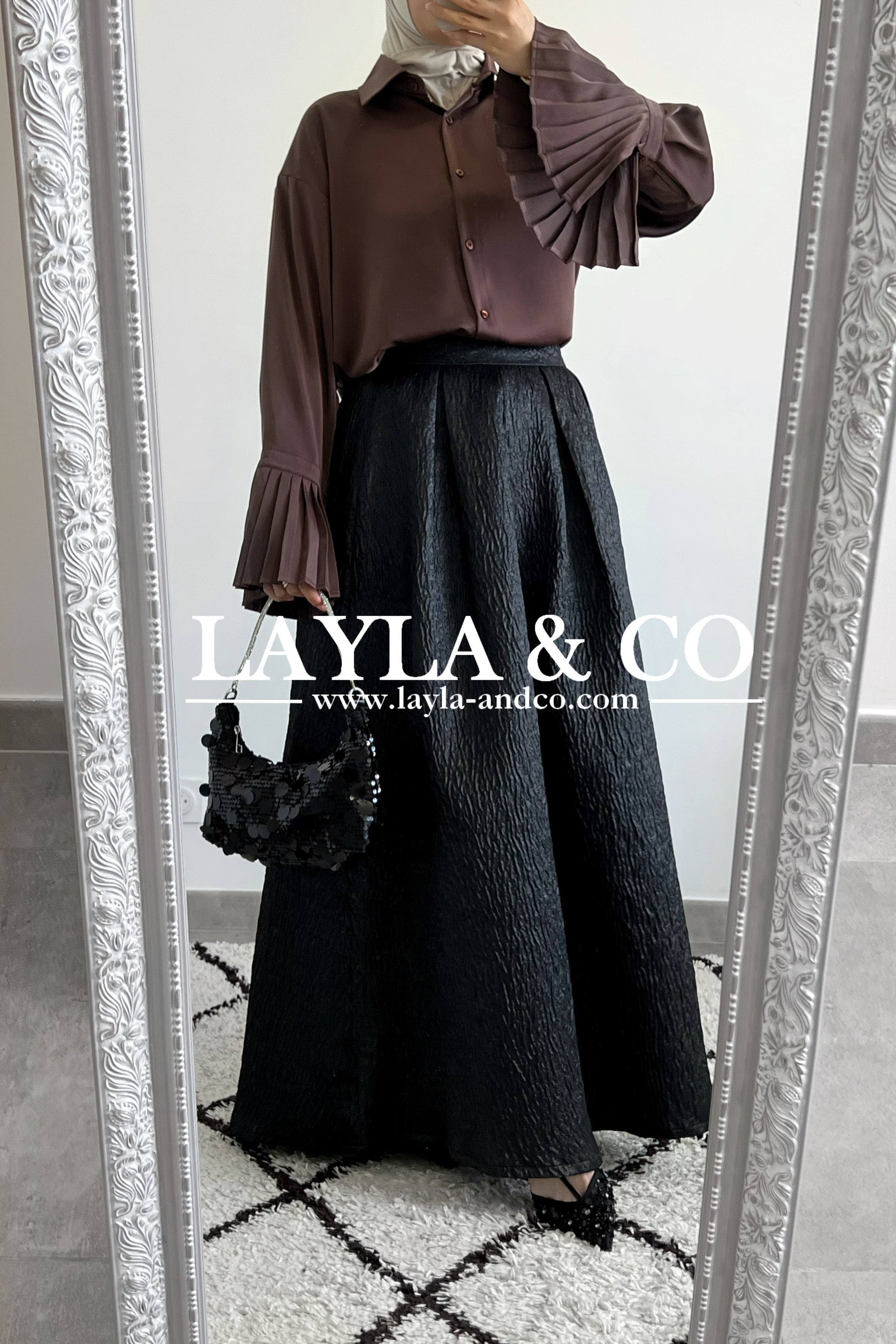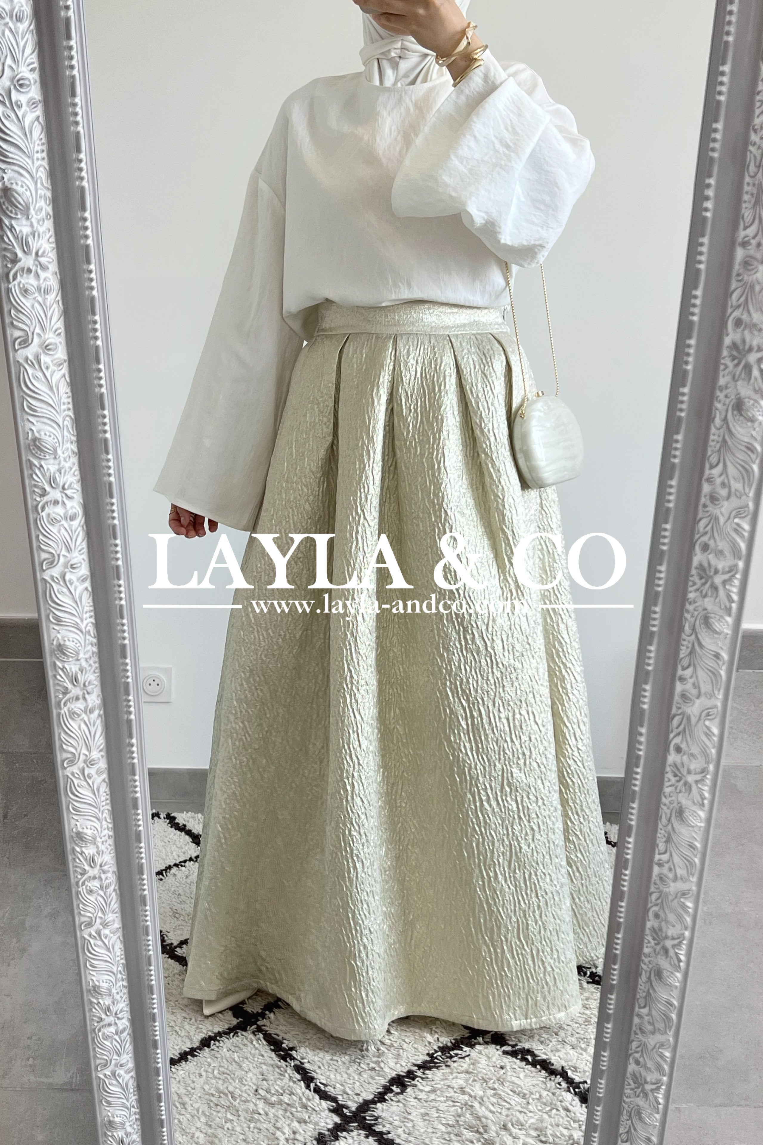 Jupe évasée en brocart brillant, qualité premium. Coupe évasée trapèze.