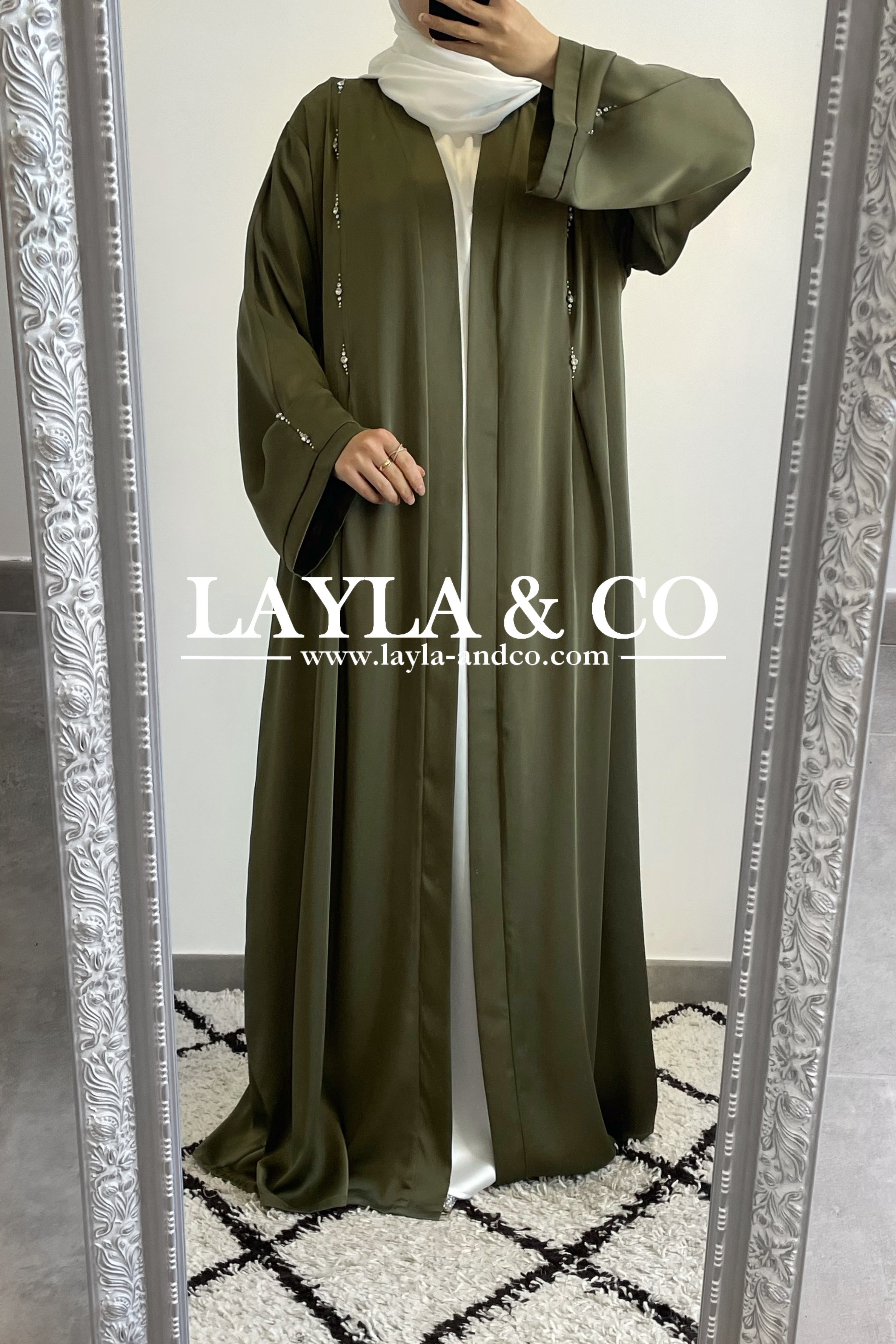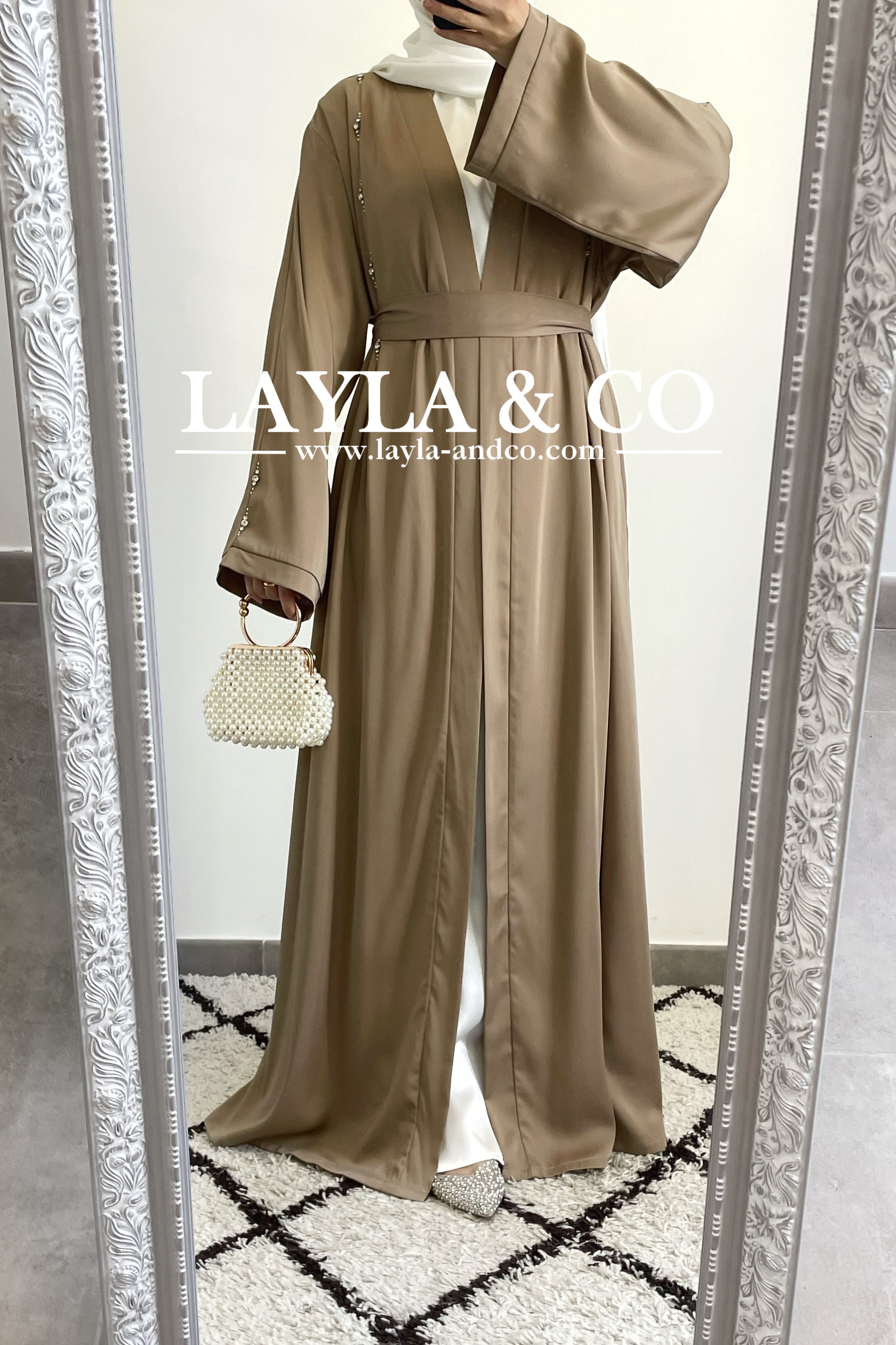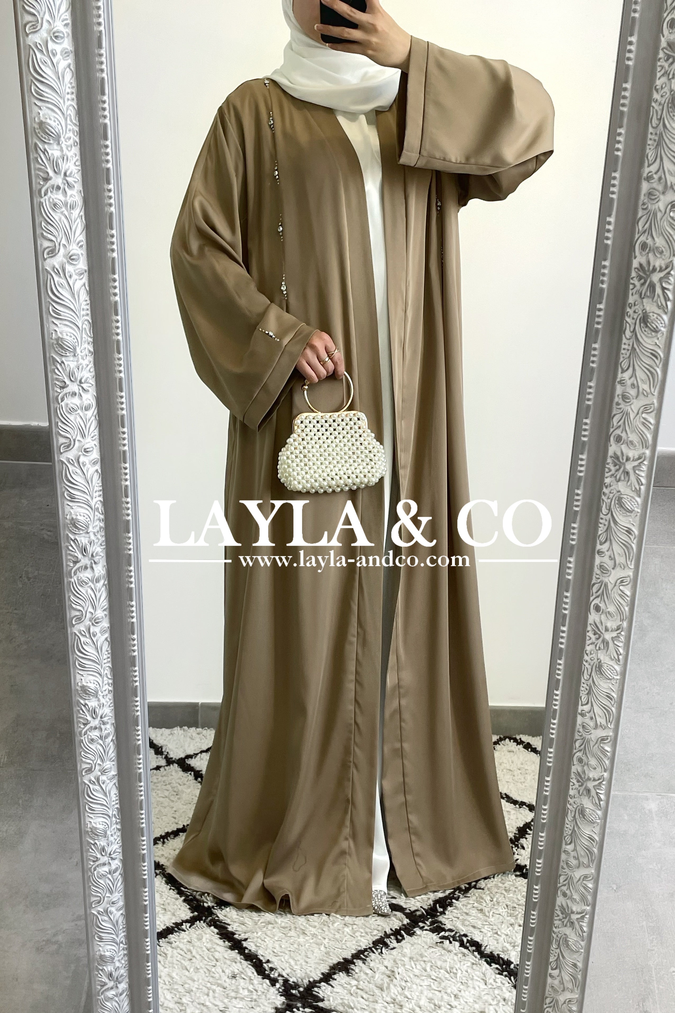 Kimono satiné de qualité supérieure, decoré de strass cousu main. Ceinture fournie