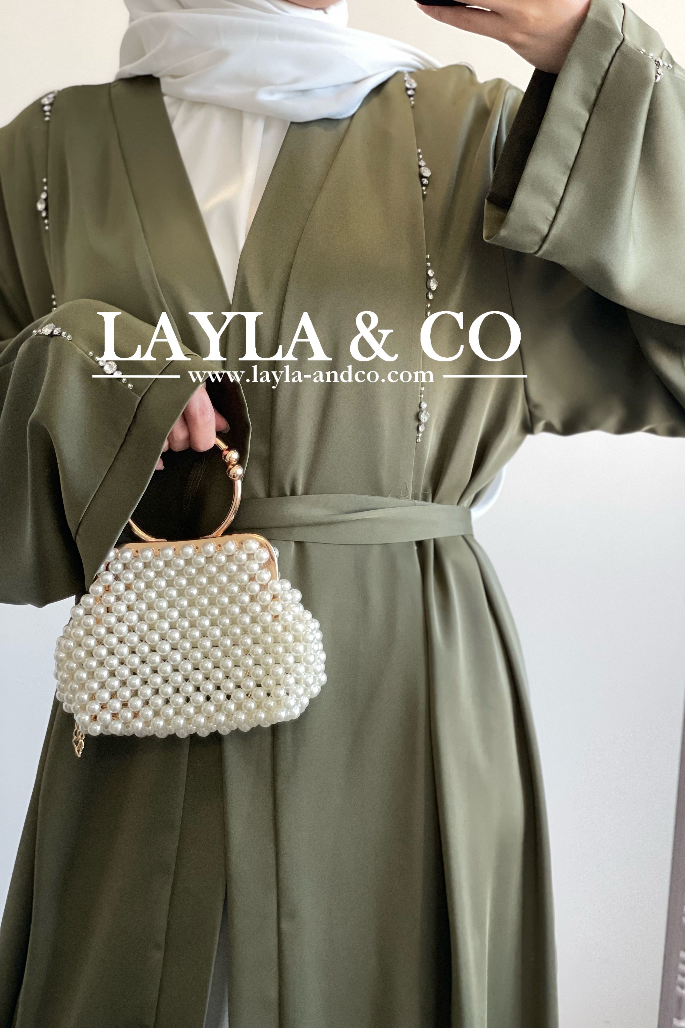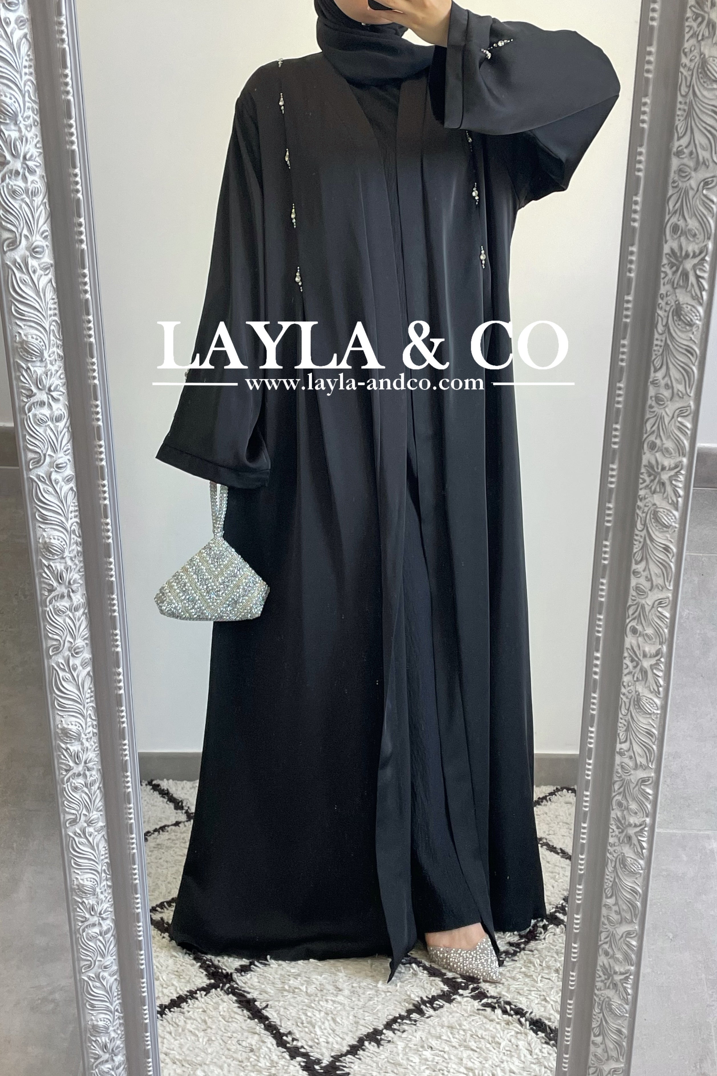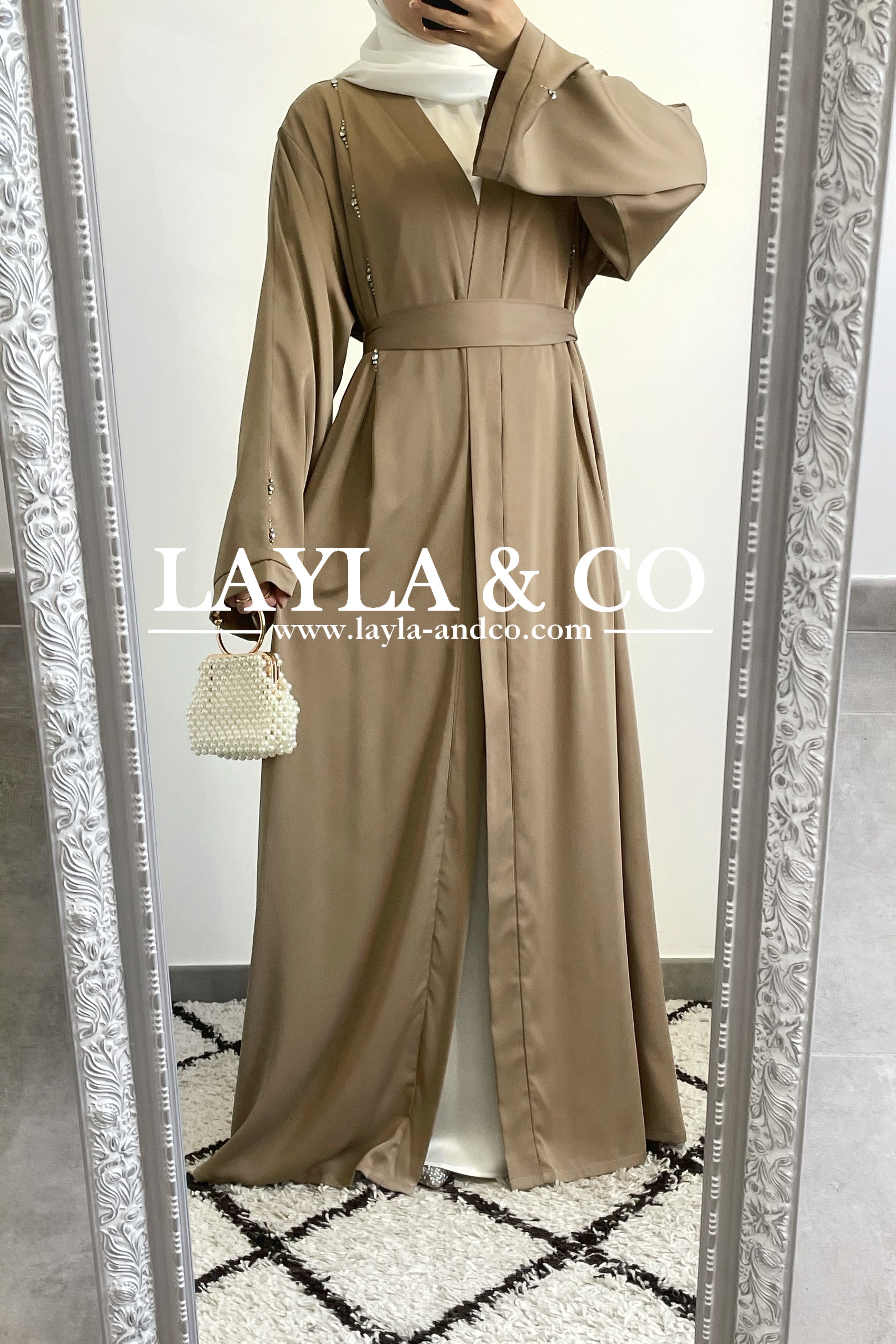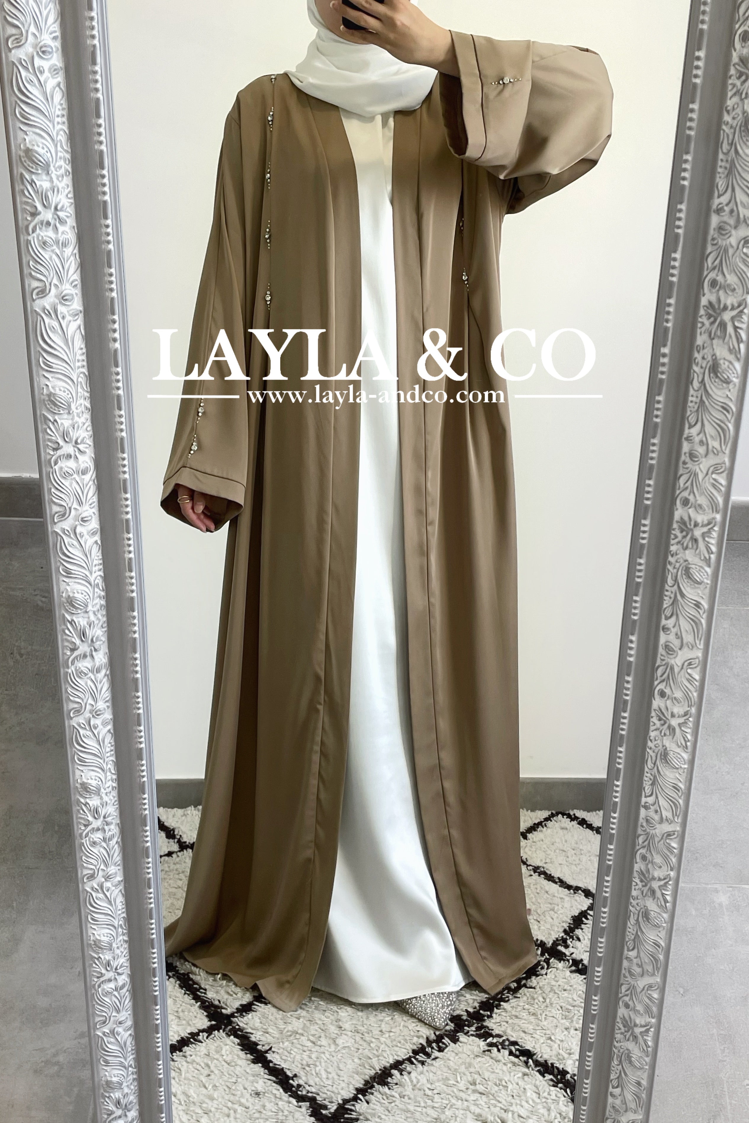 Kimono satiné de qualité supérieure, decoré de strass cousu main. Ceinture fournie