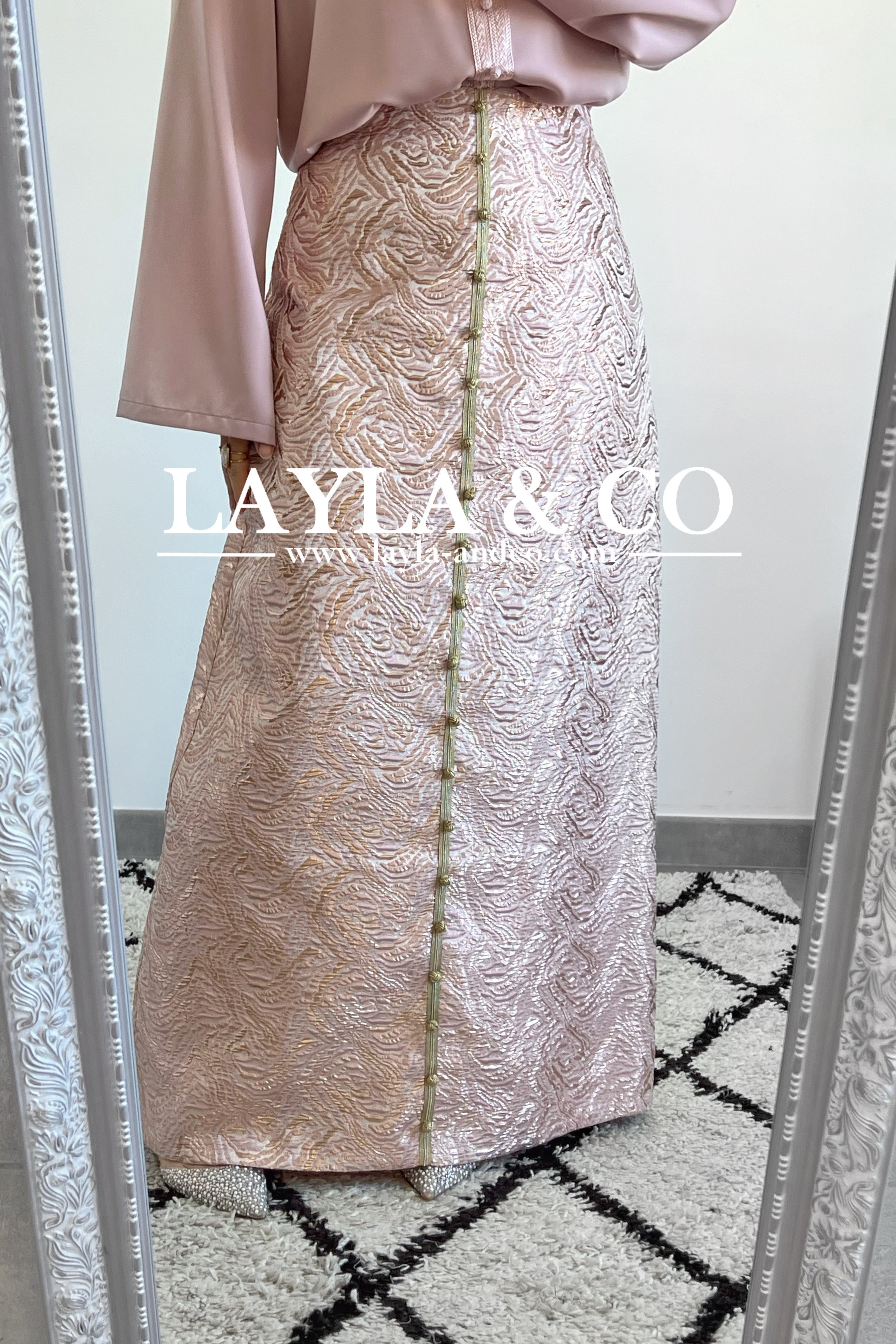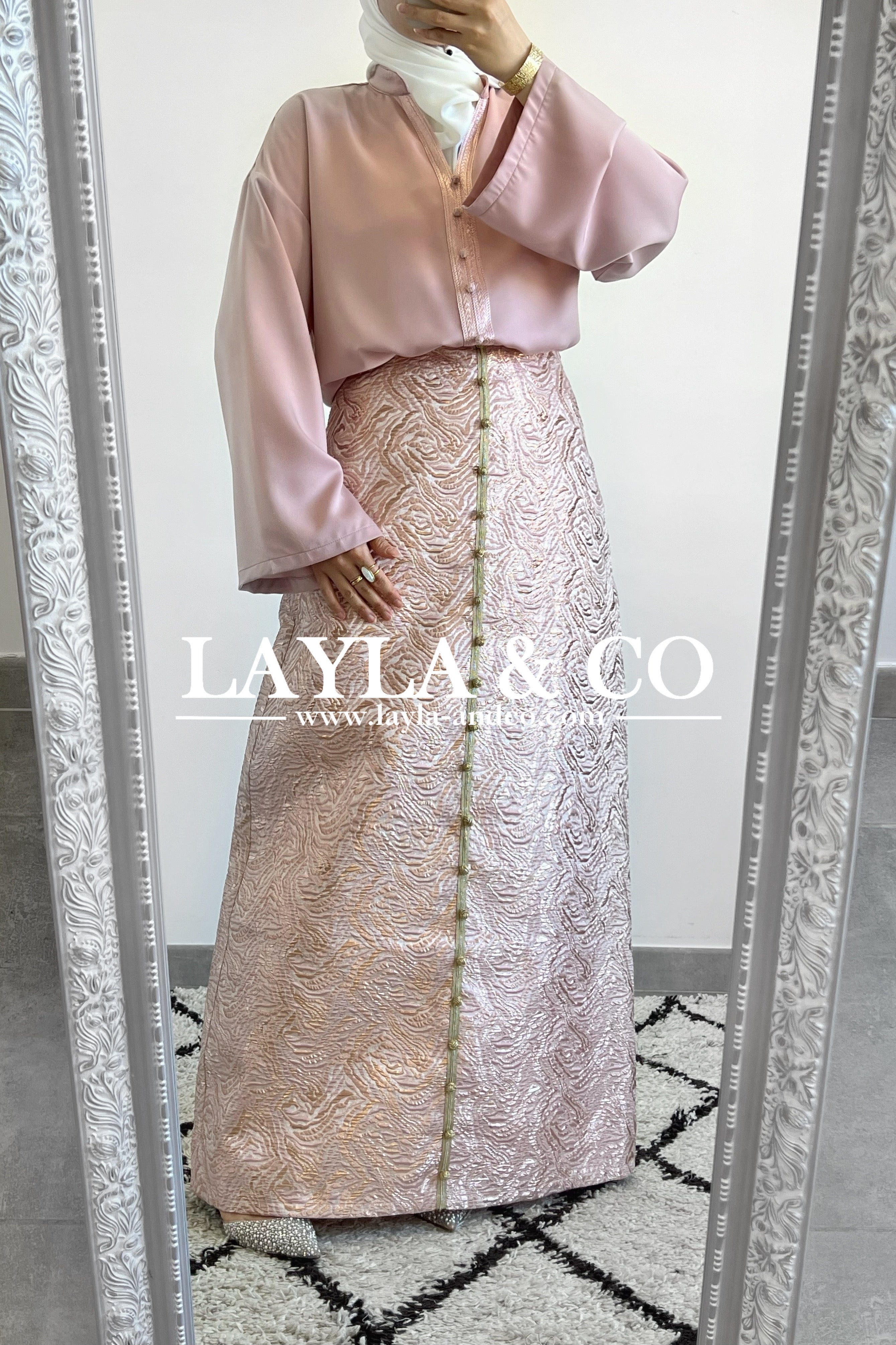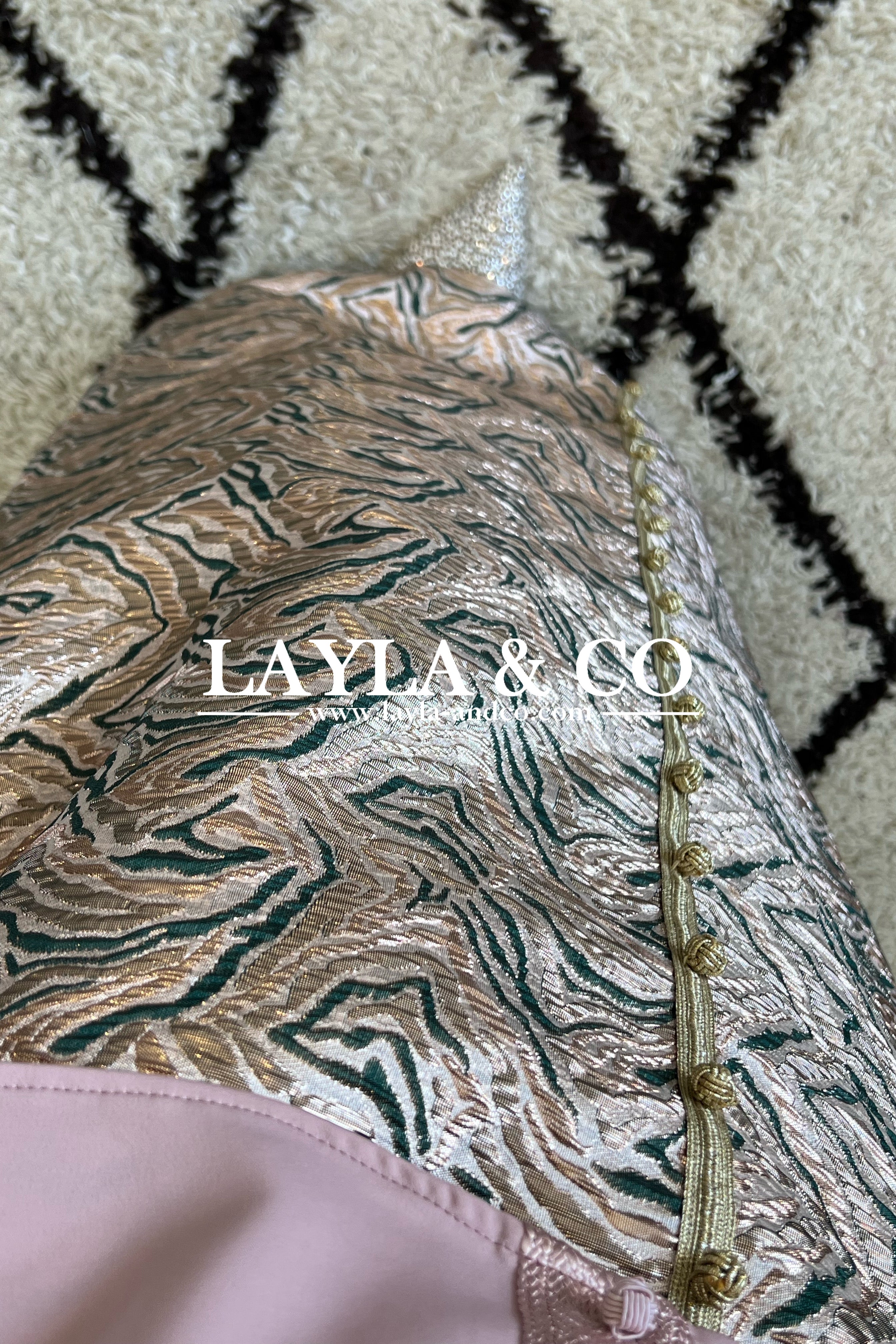Détails boutons dorés style caftan.