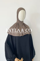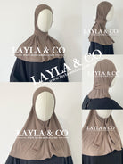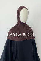 Cagoule à enfiler avec fixation par bande à boutonner. Tissu jersey bamboo, fibre naturelle respirante. Ne bouge pas, pratique à enfiler.