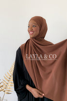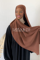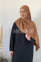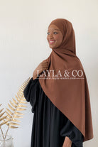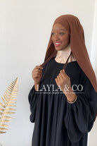 Foulard à enfiler avec bonnet fermé intégré, il y a deux bandes pour pouvoir nouer à votre convenance. Tissu opaque et fluide proche de la matière jazz