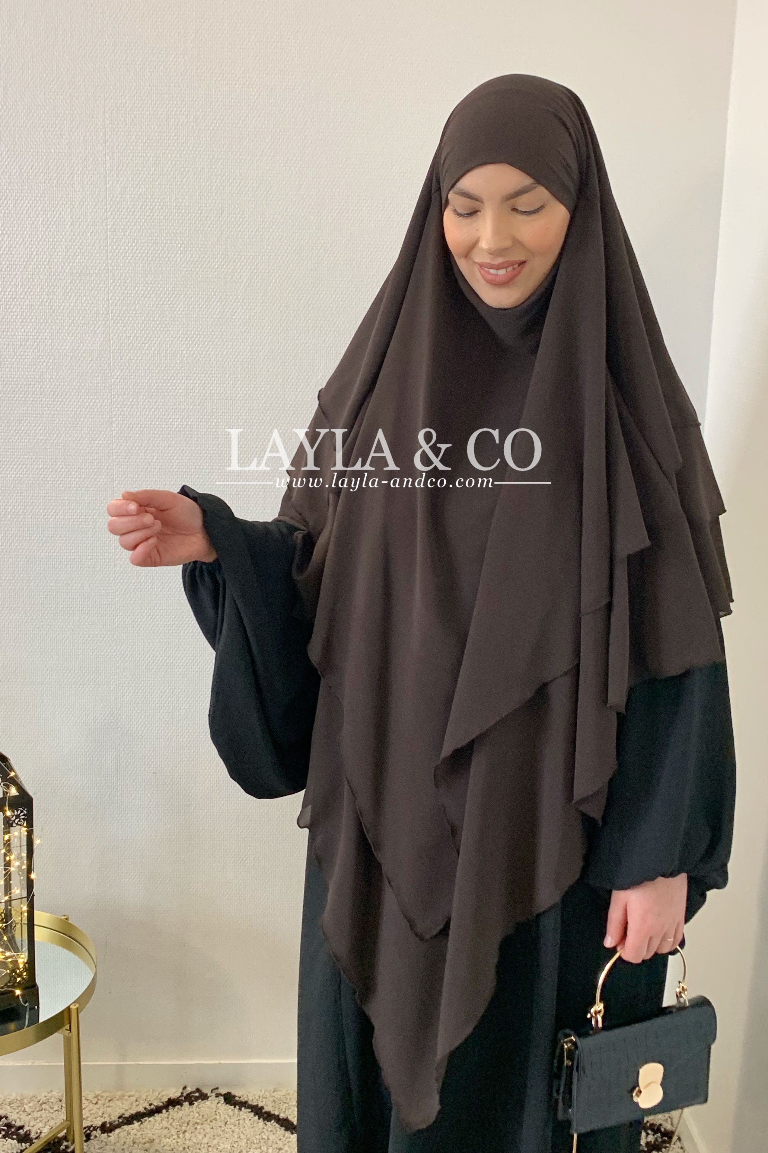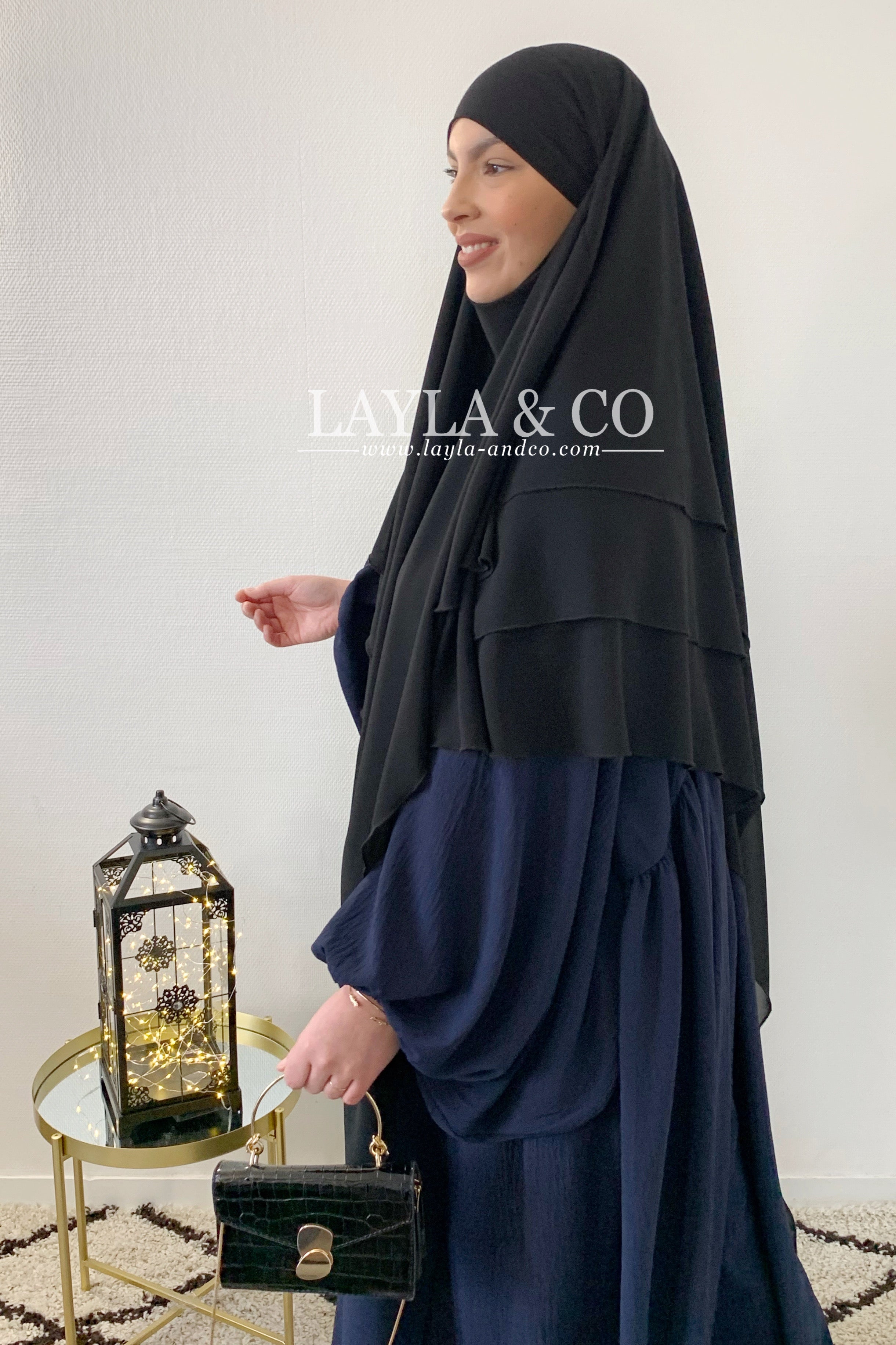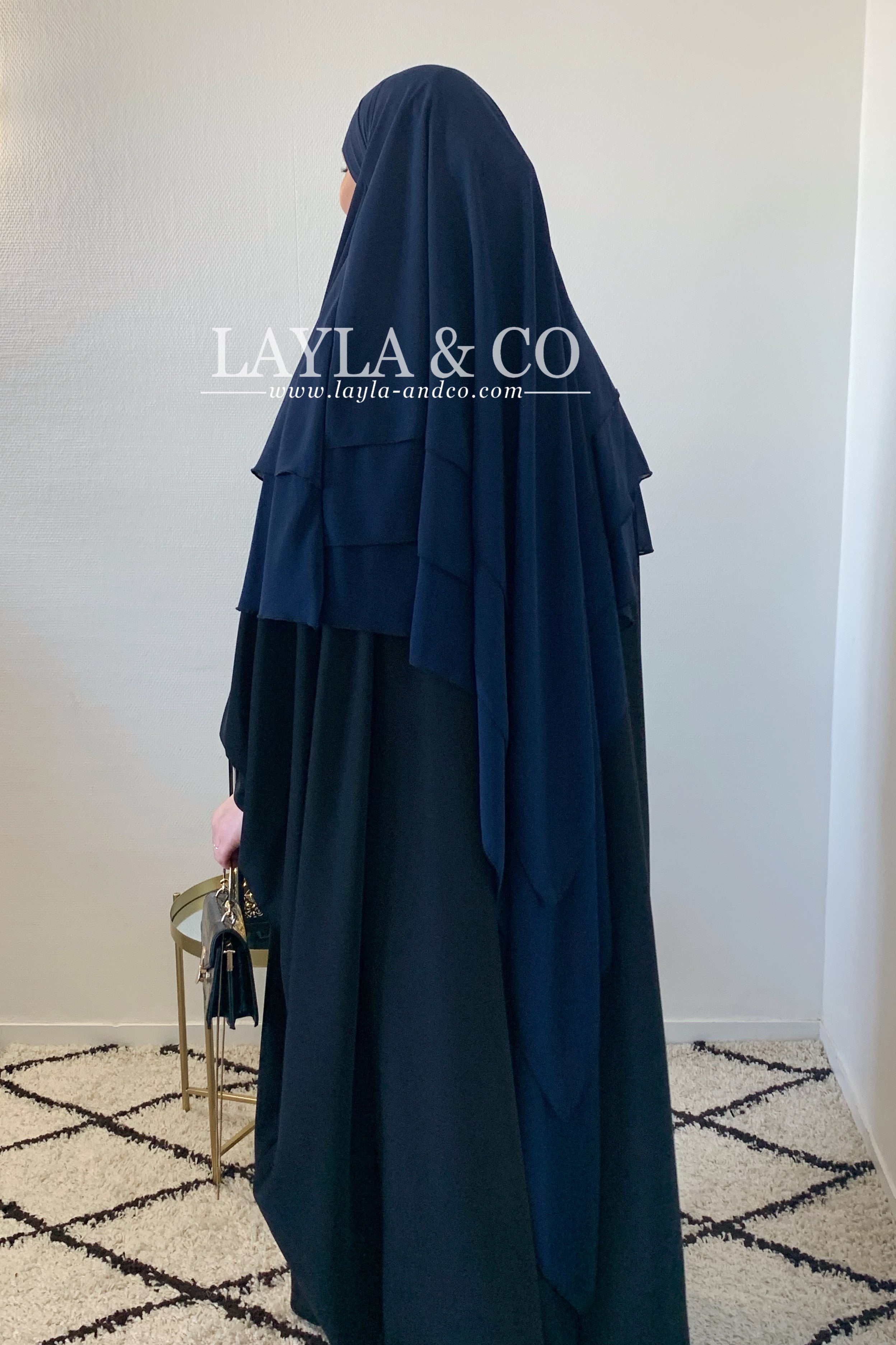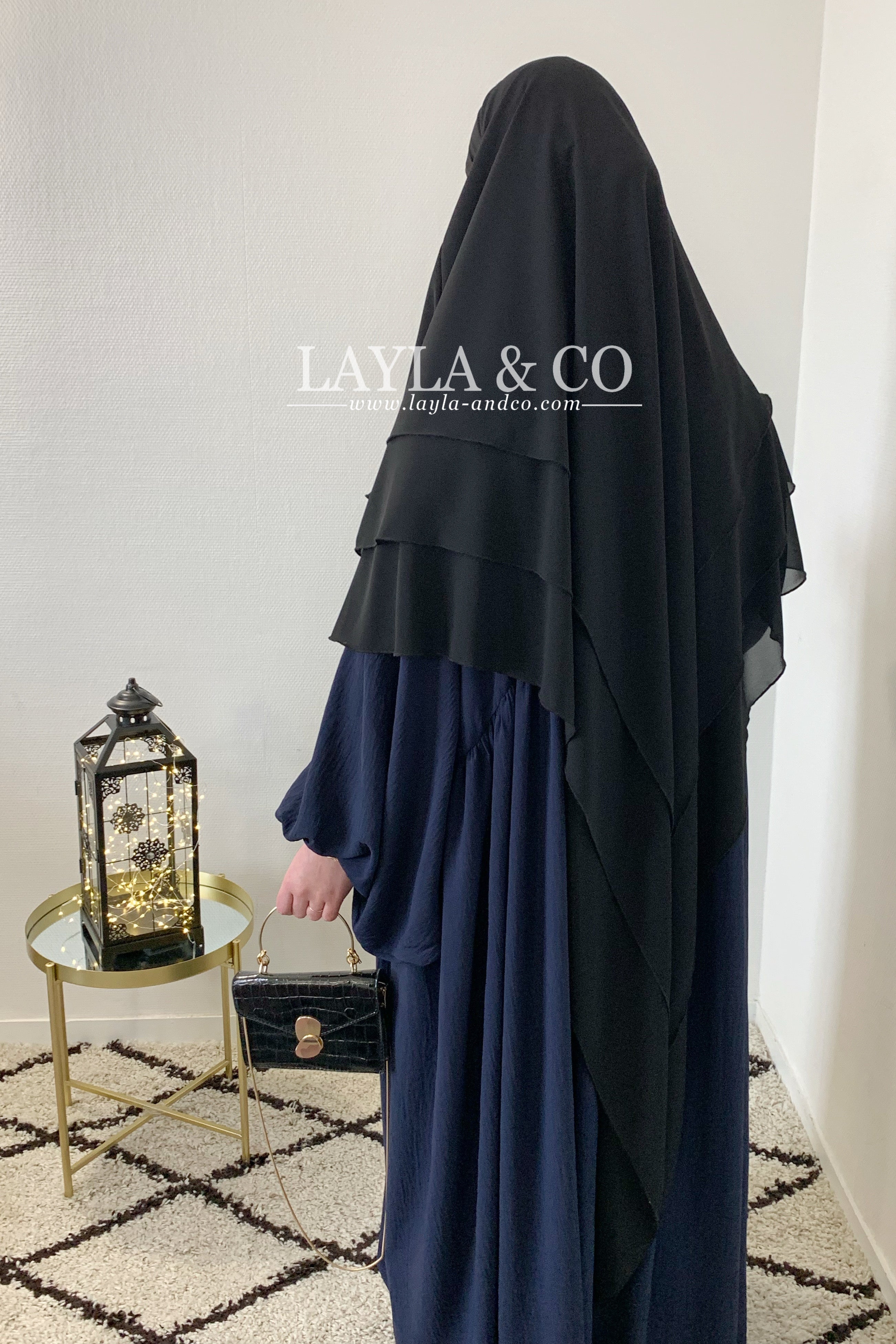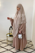 Khimar en mousseline avec 2 voiles à l’avant et 3 voiles à l’arrière
