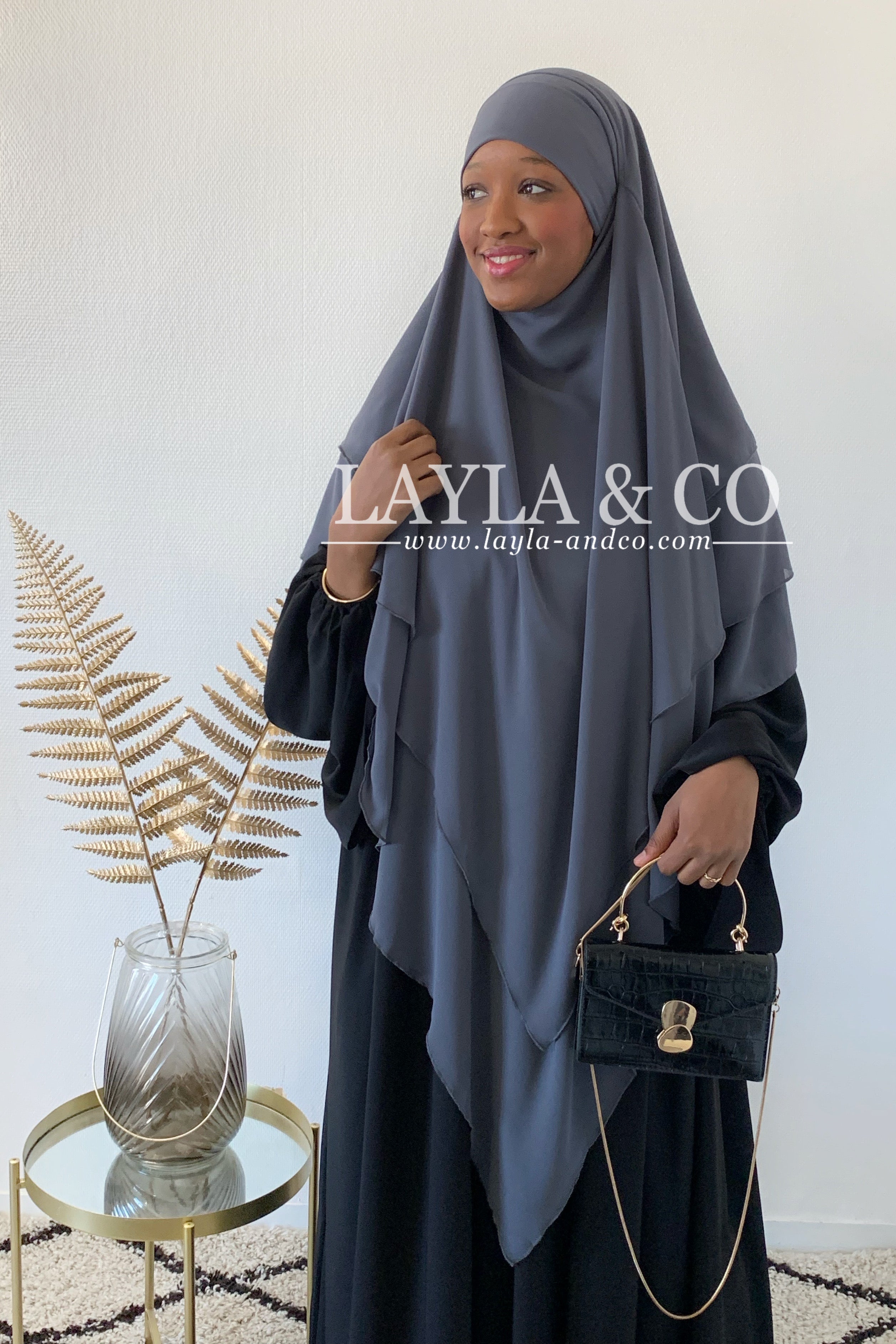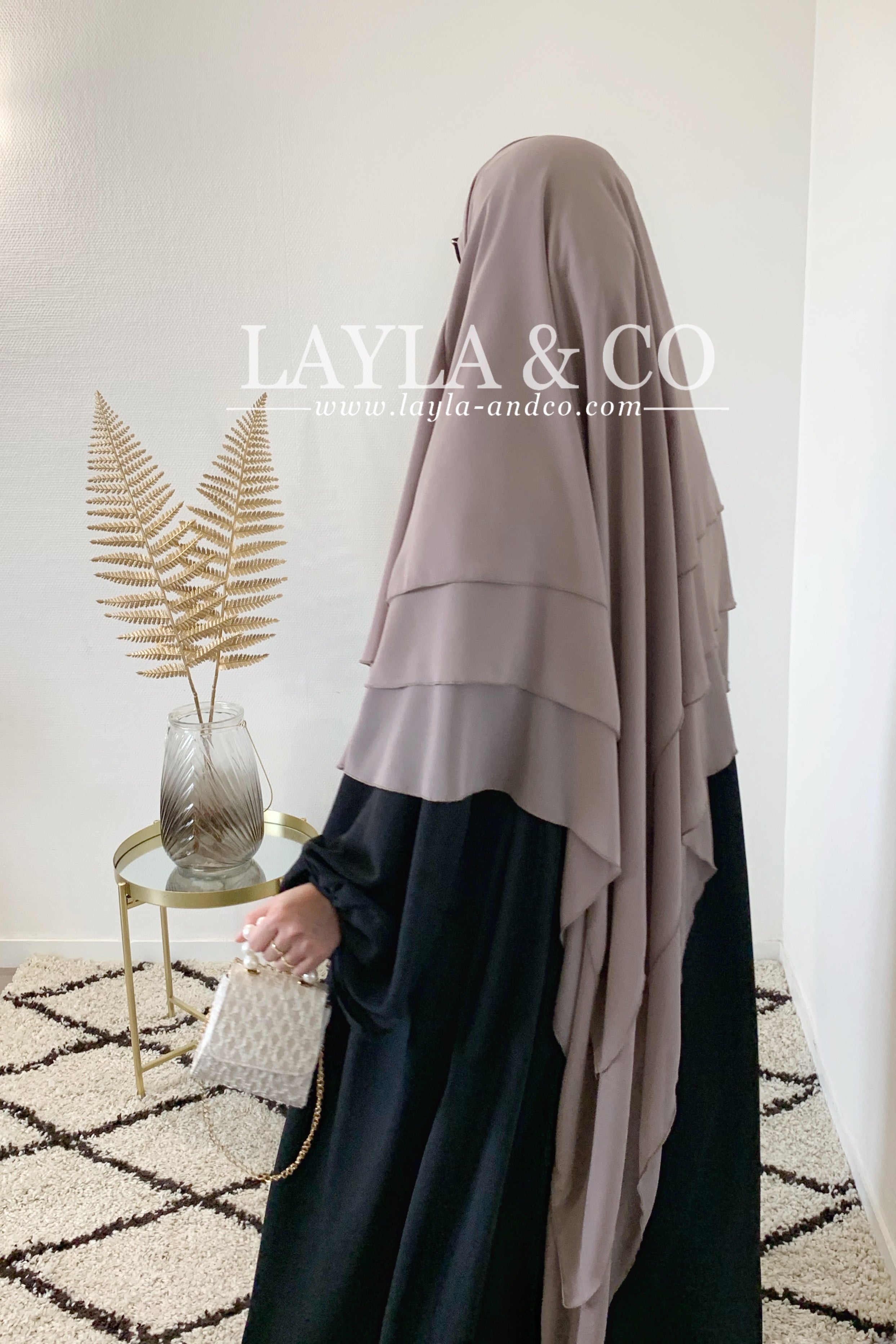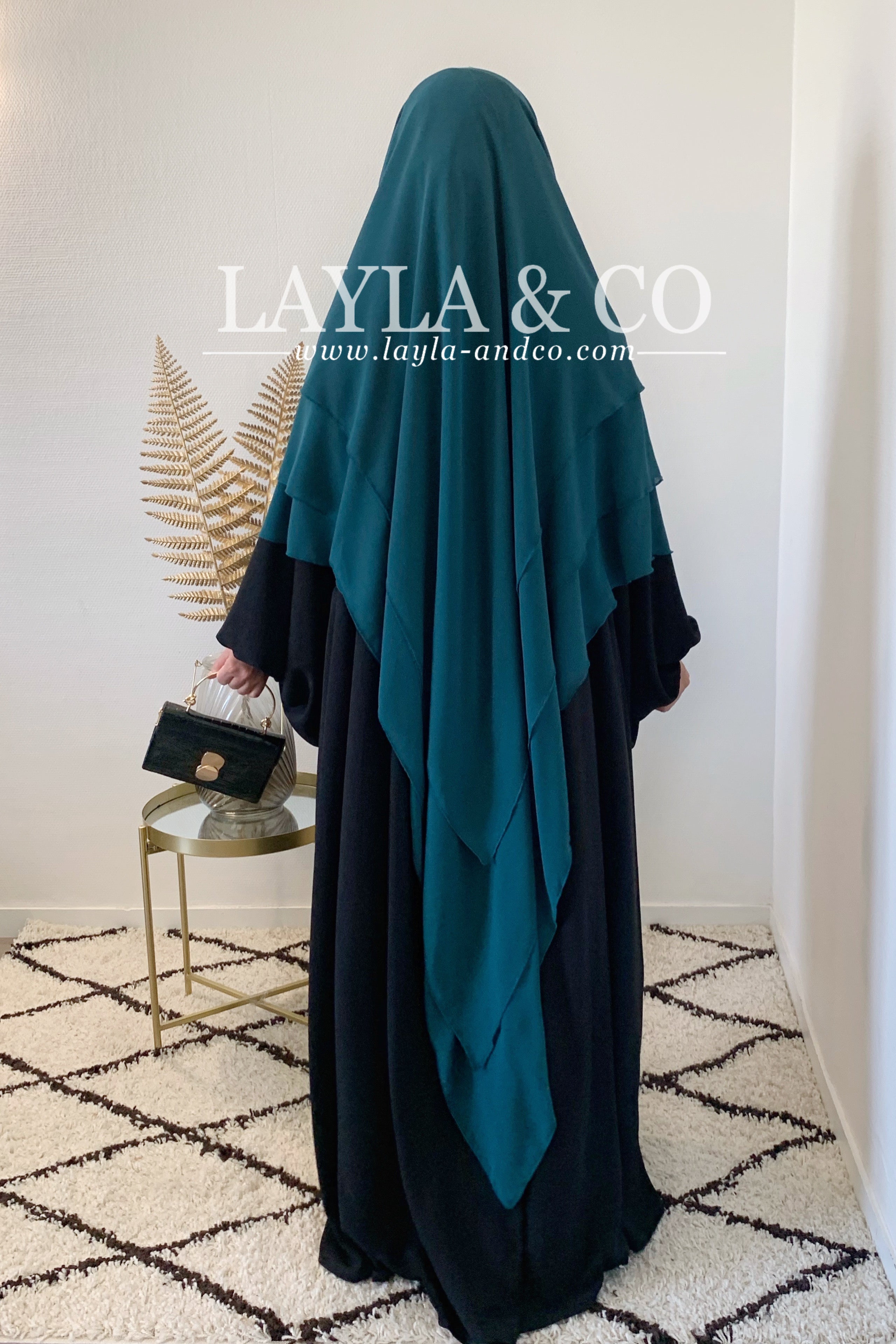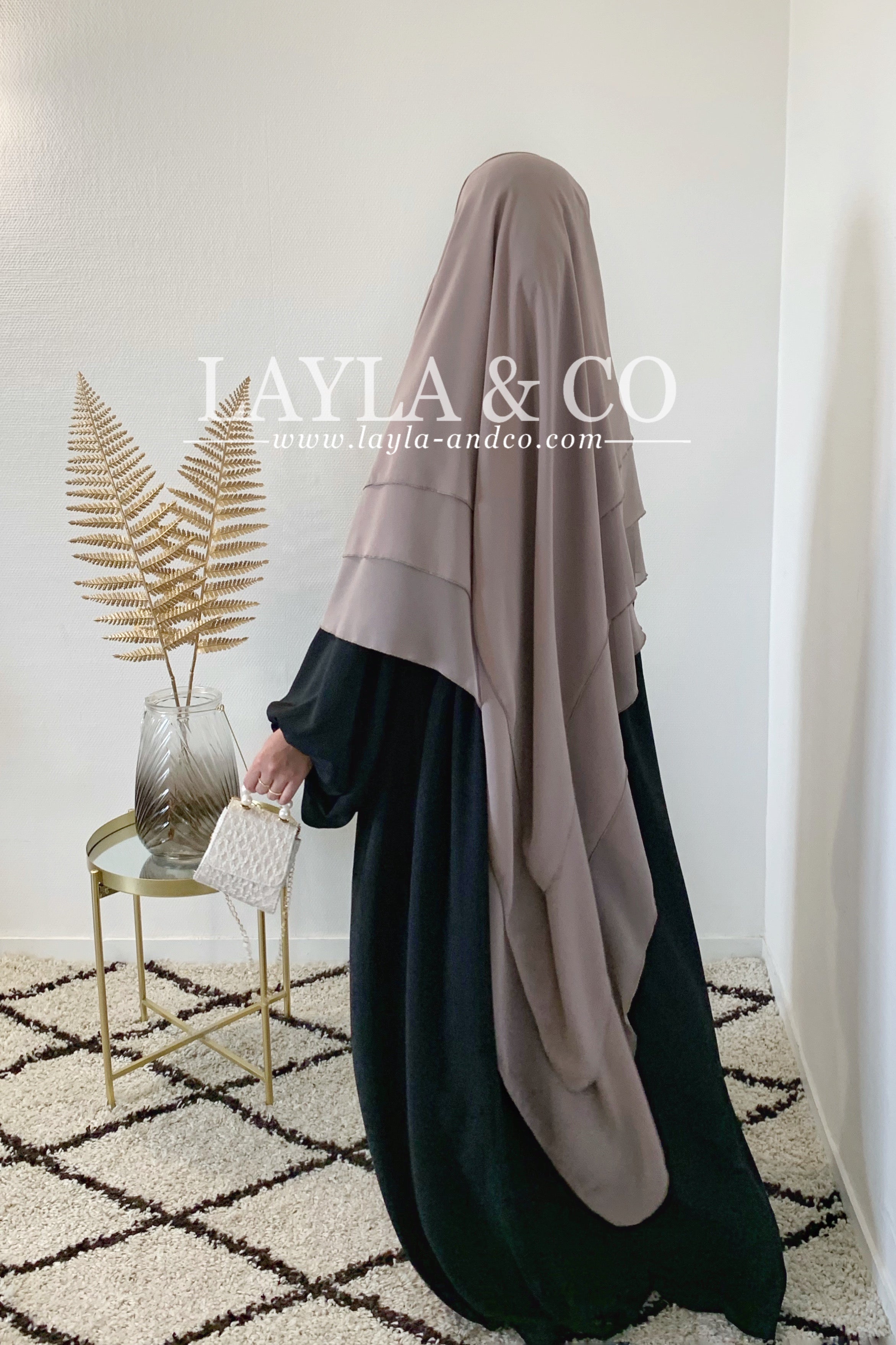 Khimar en mousseline avec 2 voiles à l’avant et 3 voiles à l’arrière
