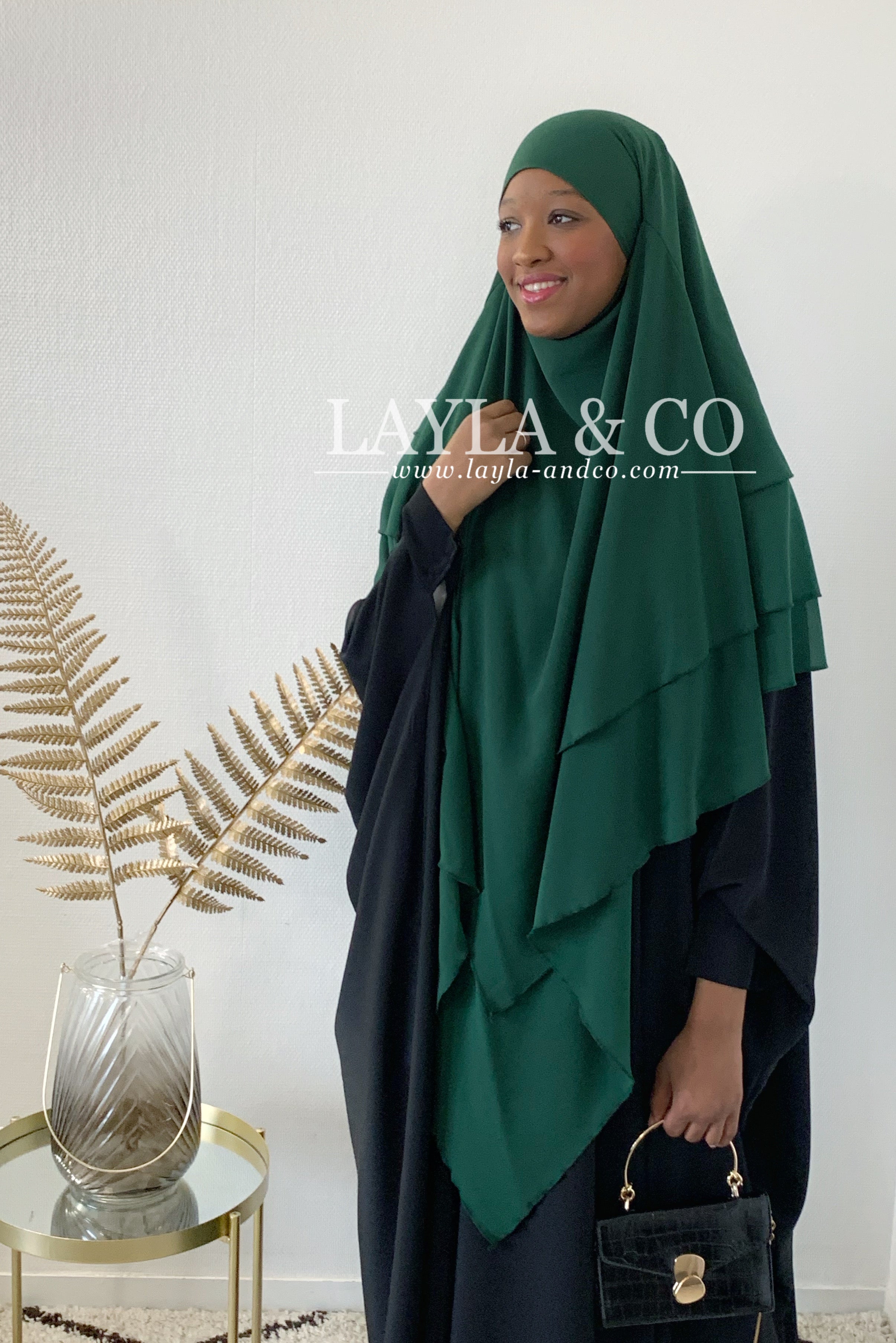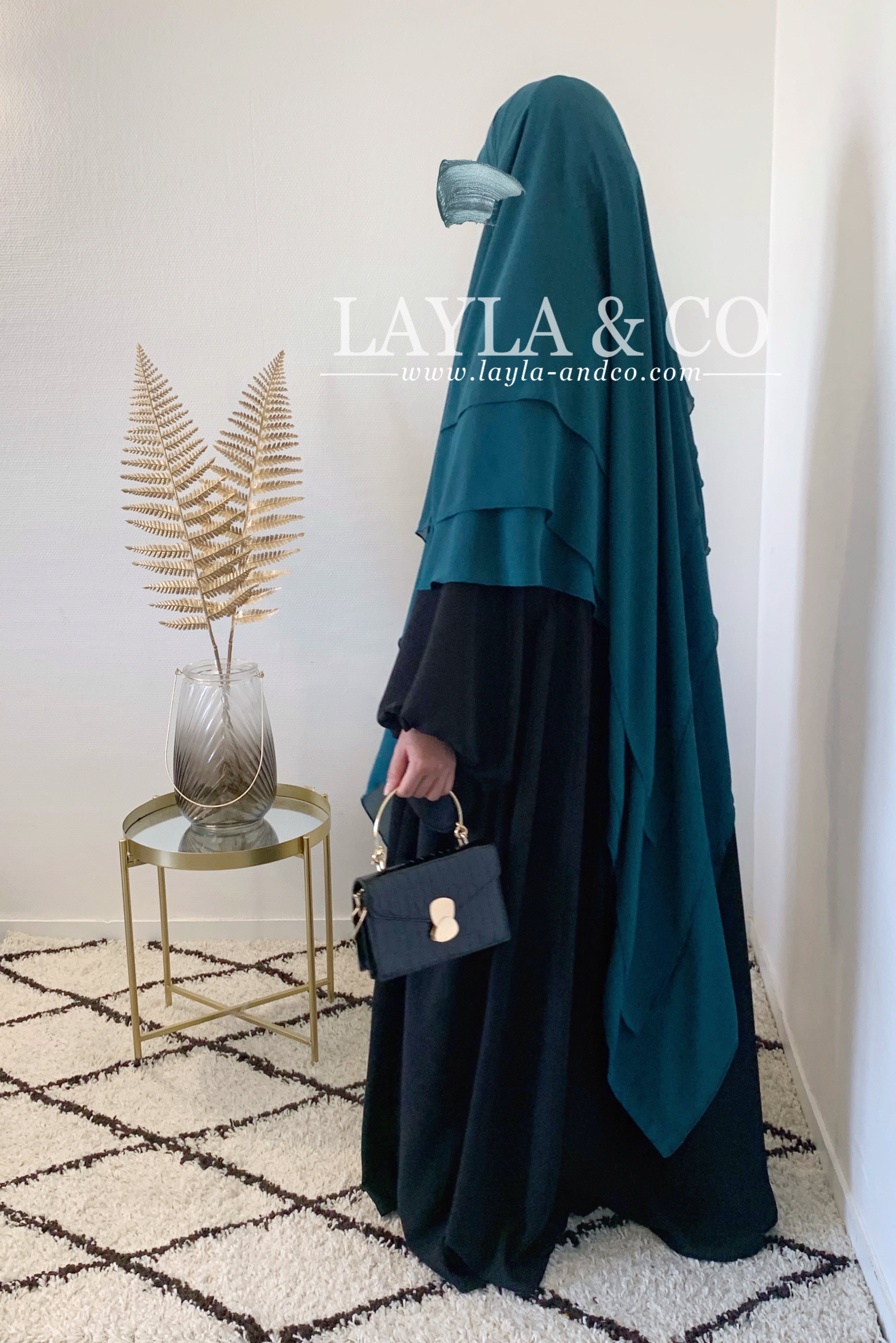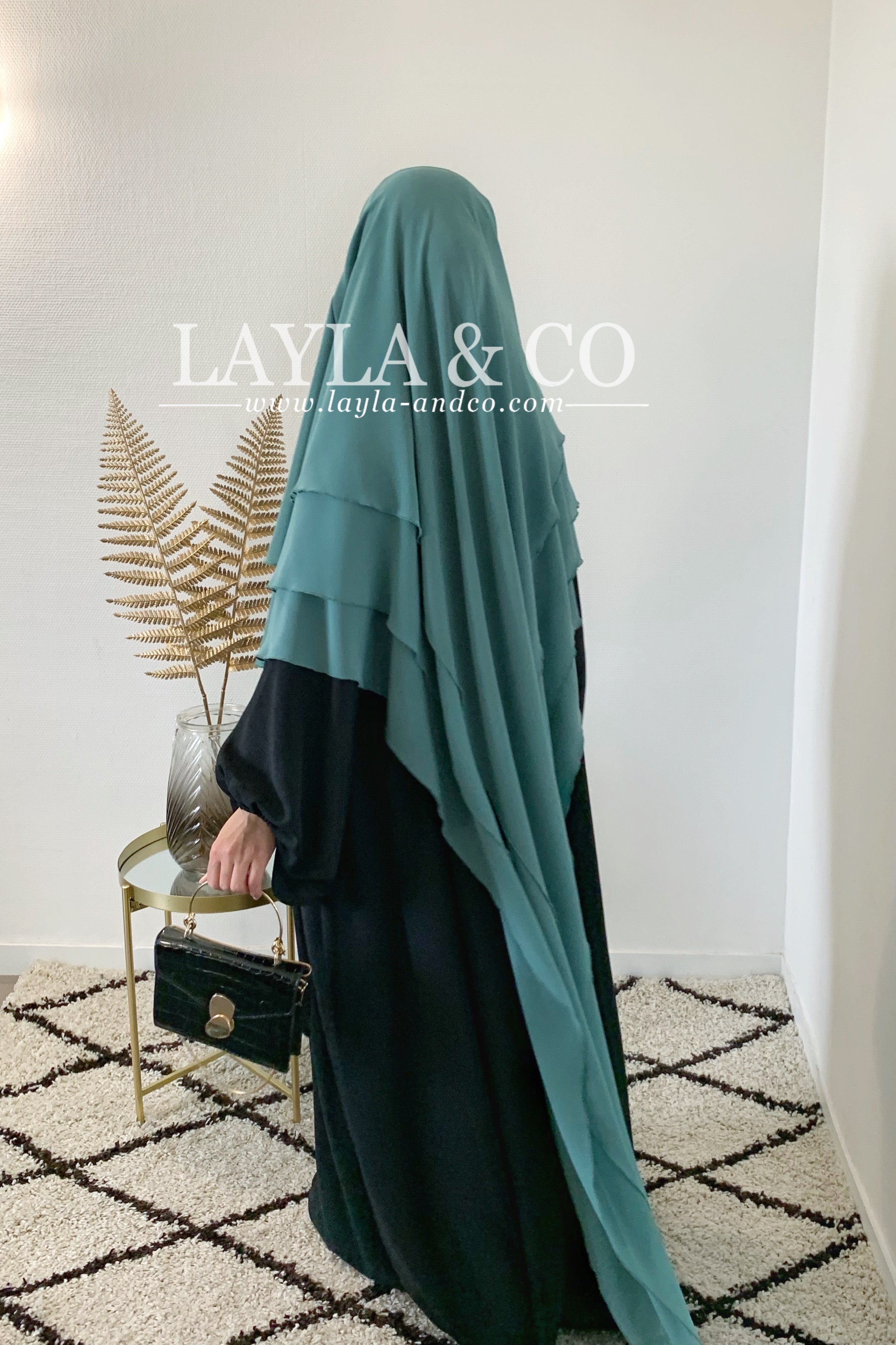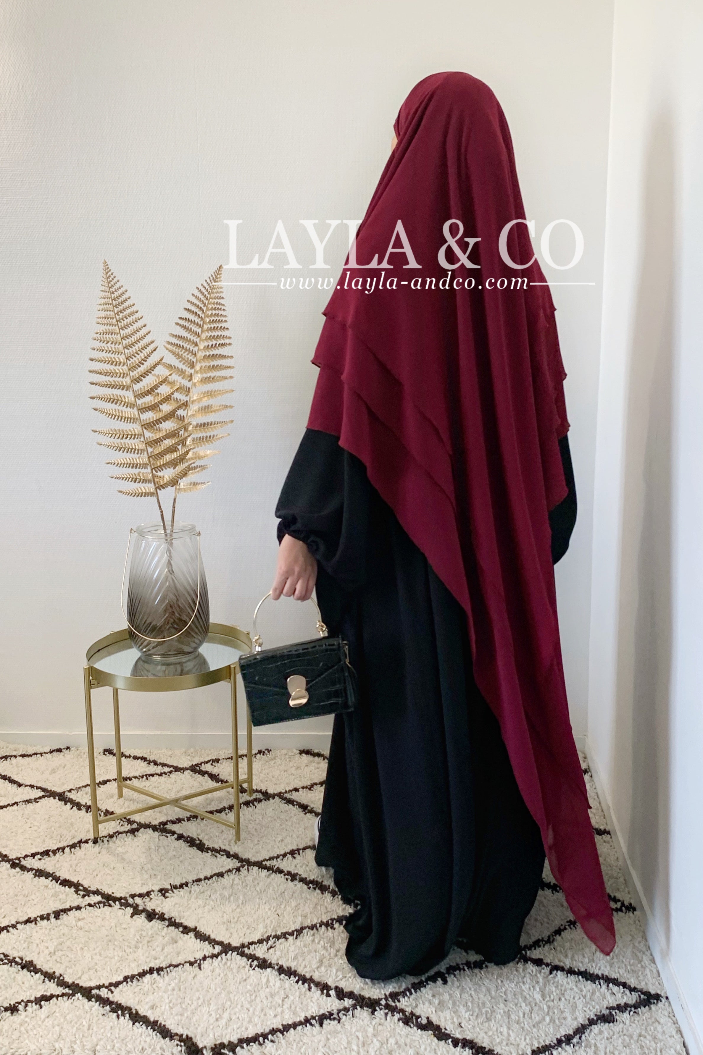 Khimar en mousseline avec 2 voiles à l’avant et 3 voiles à l’arrière