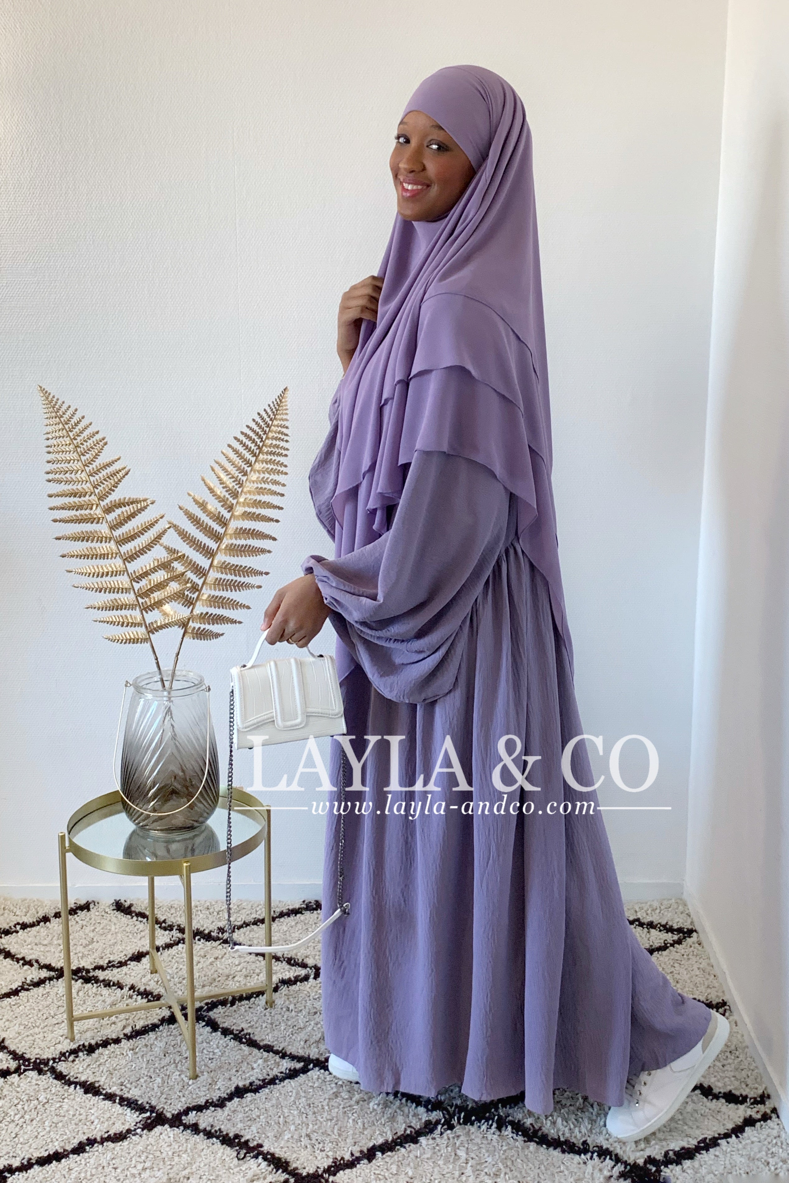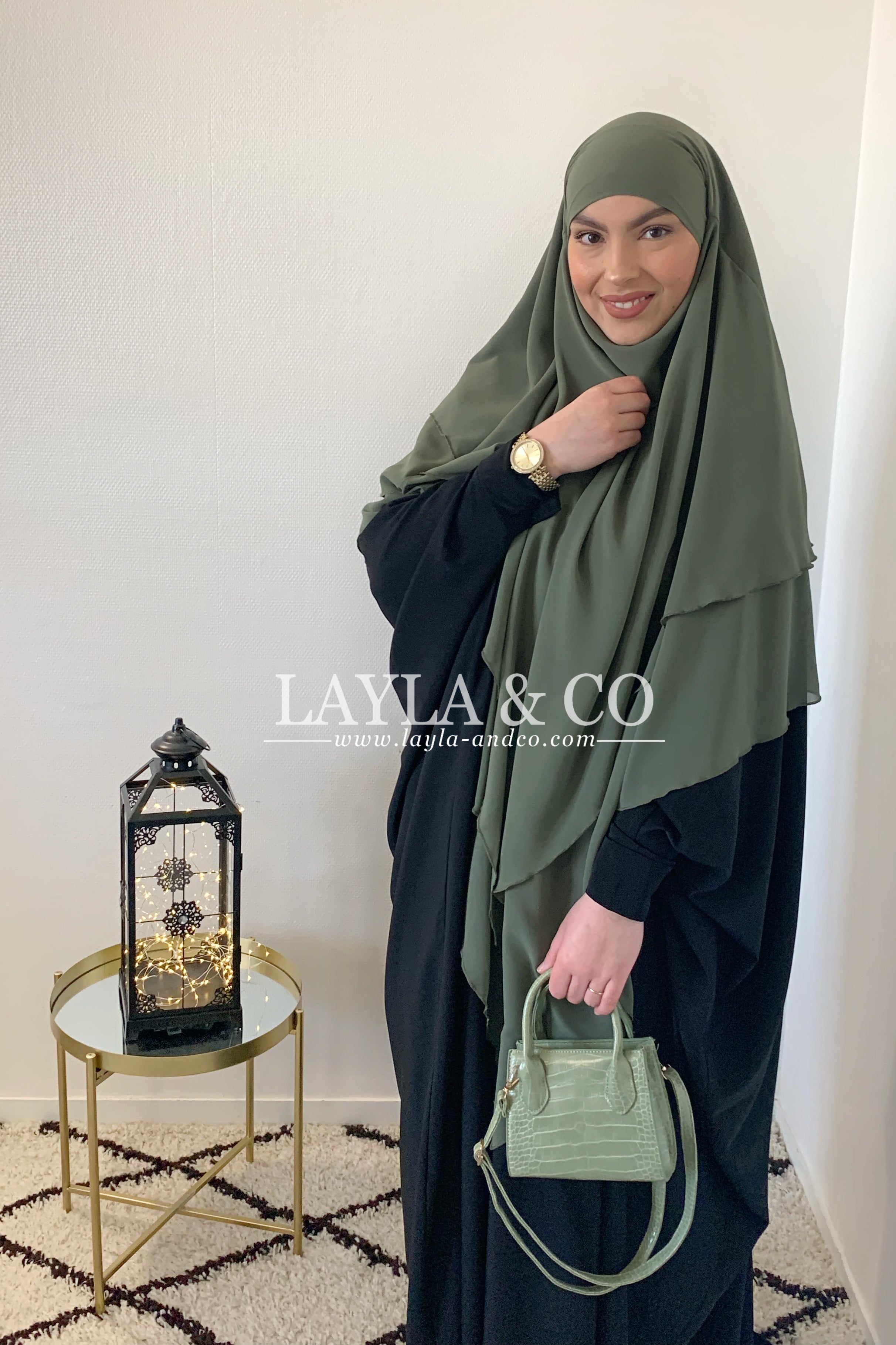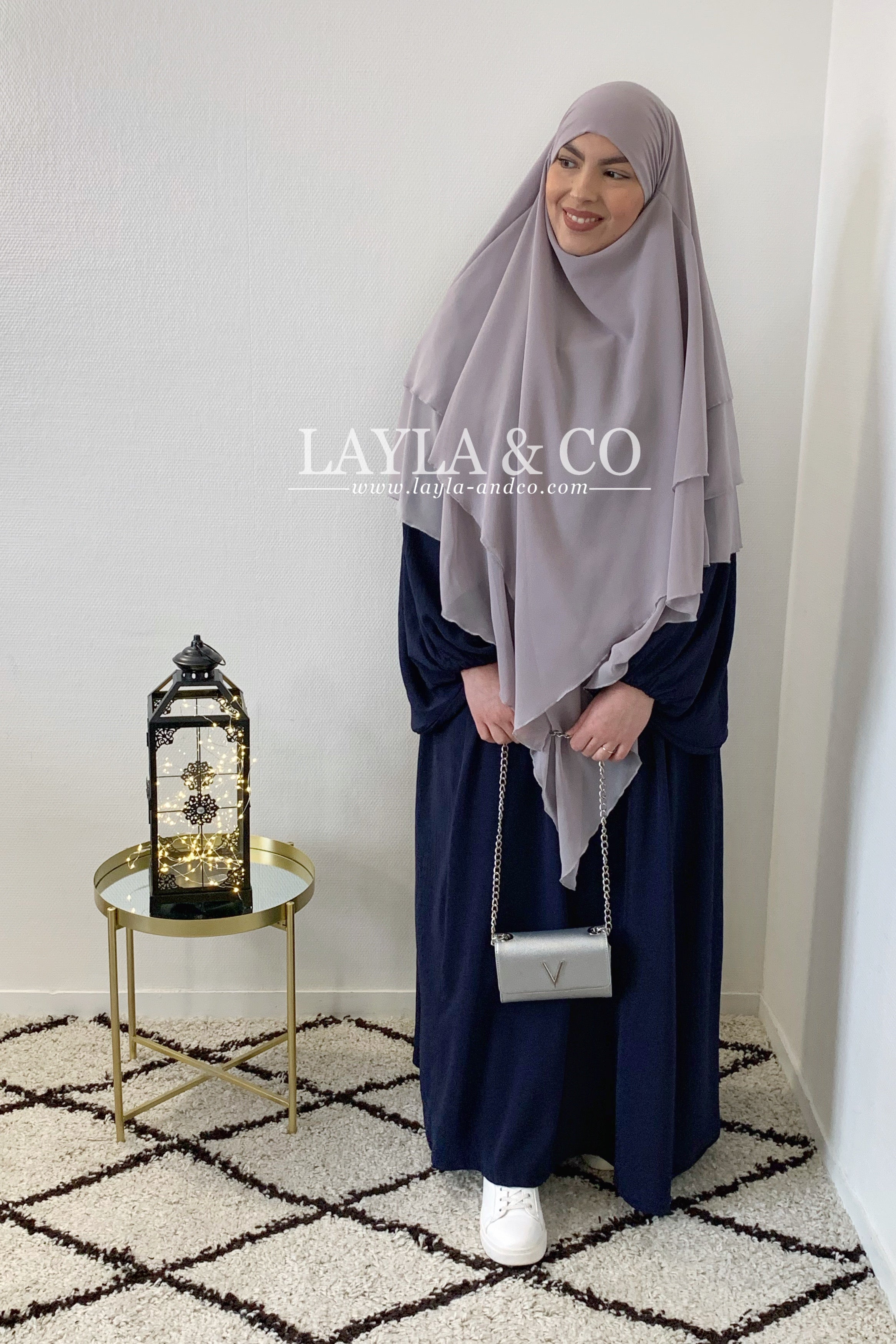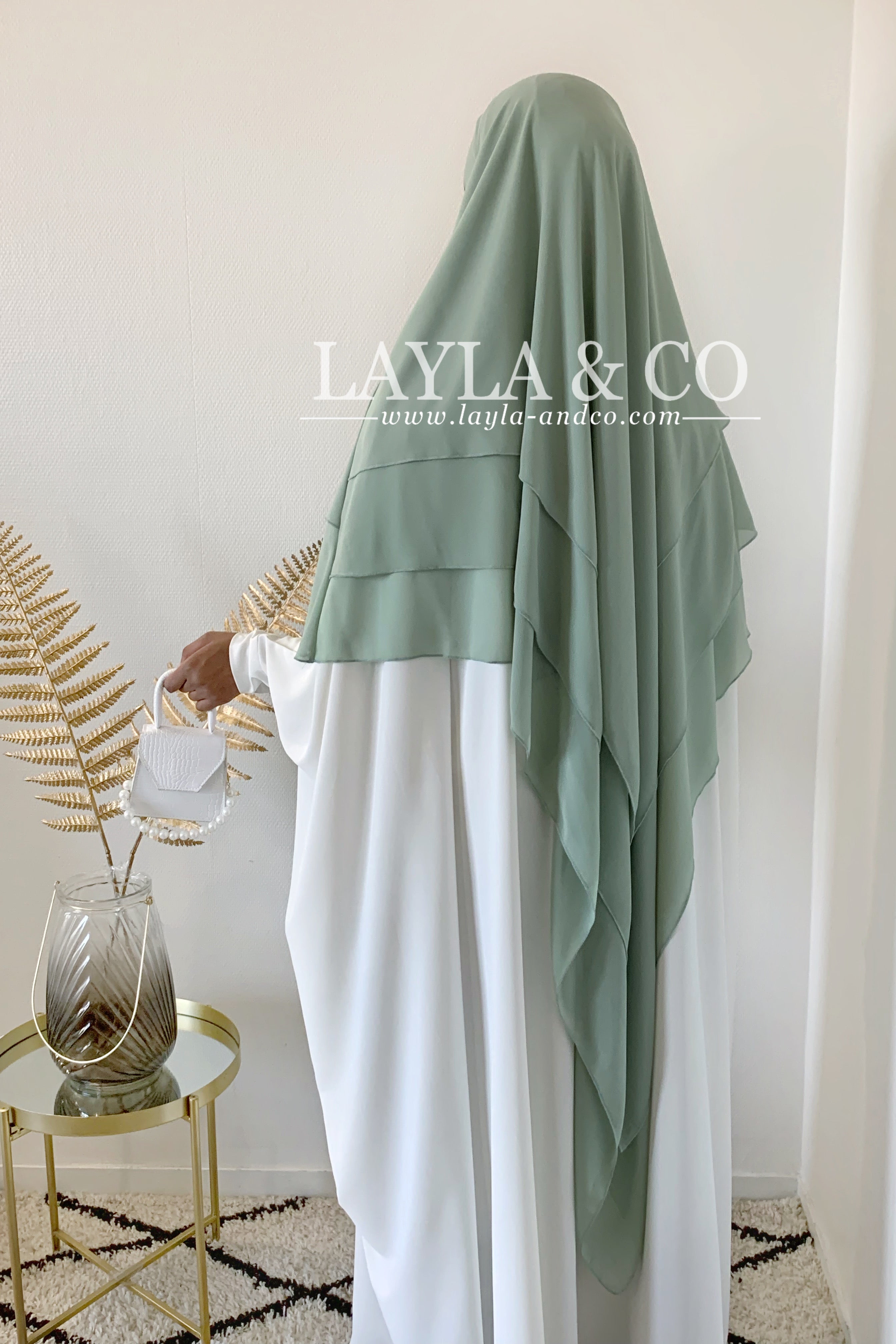 Khimar en mousseline avec 2 voiles à l’avant et 3 voiles à l’arrière