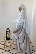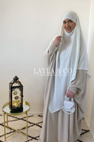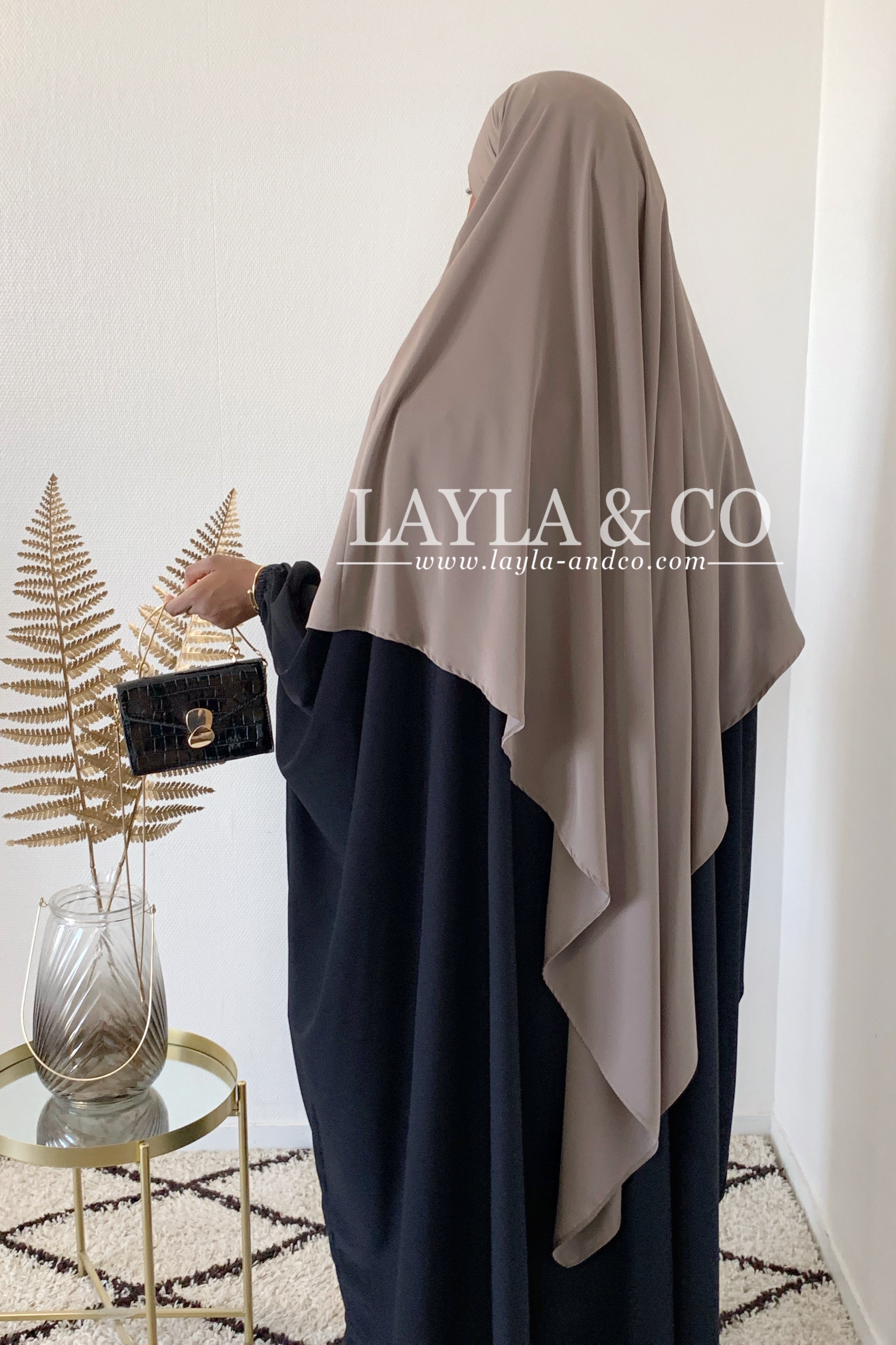 Khimar en soie de medine tissu de qualité supérieure, fluide. S'attache à l'aide de deux bandes.