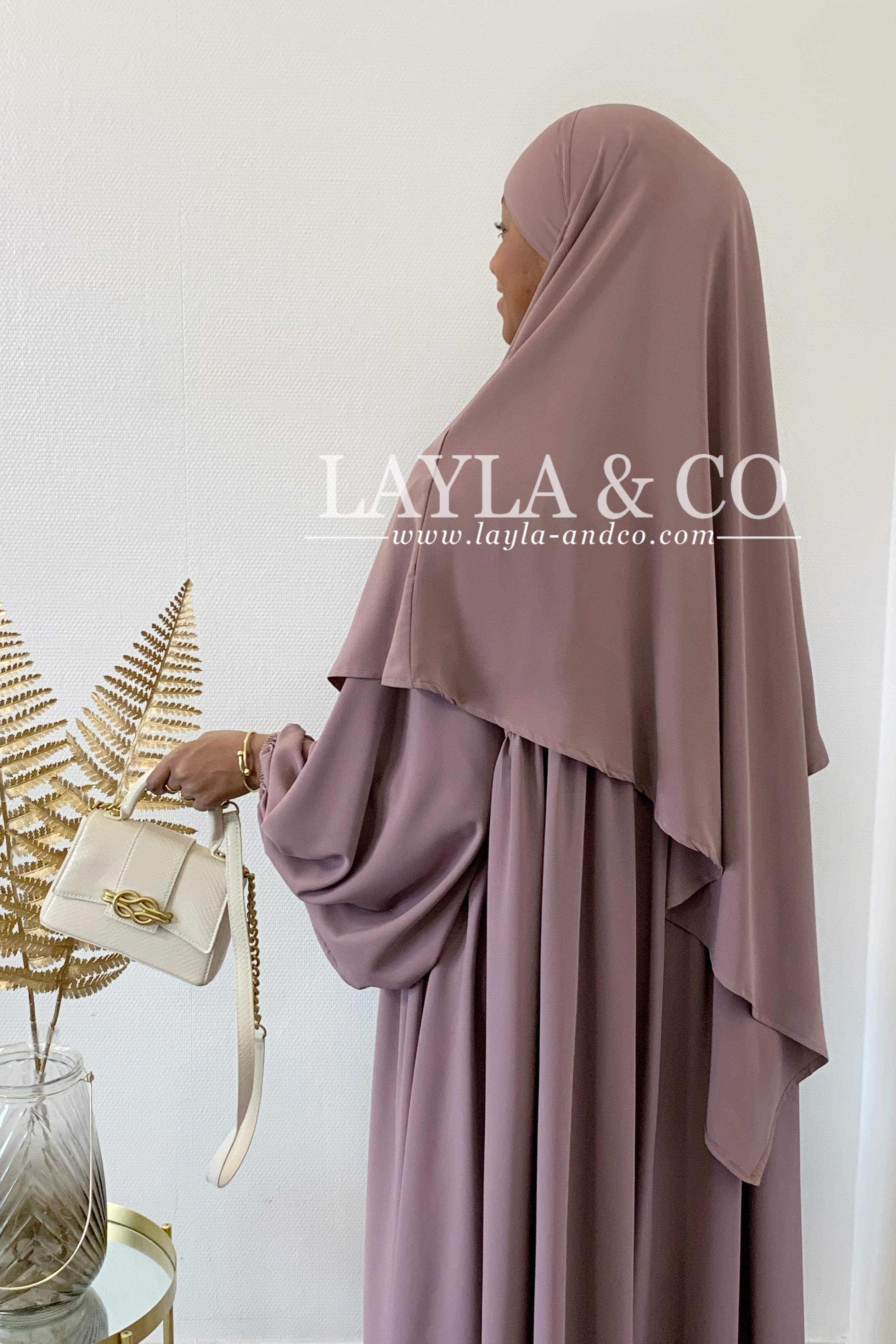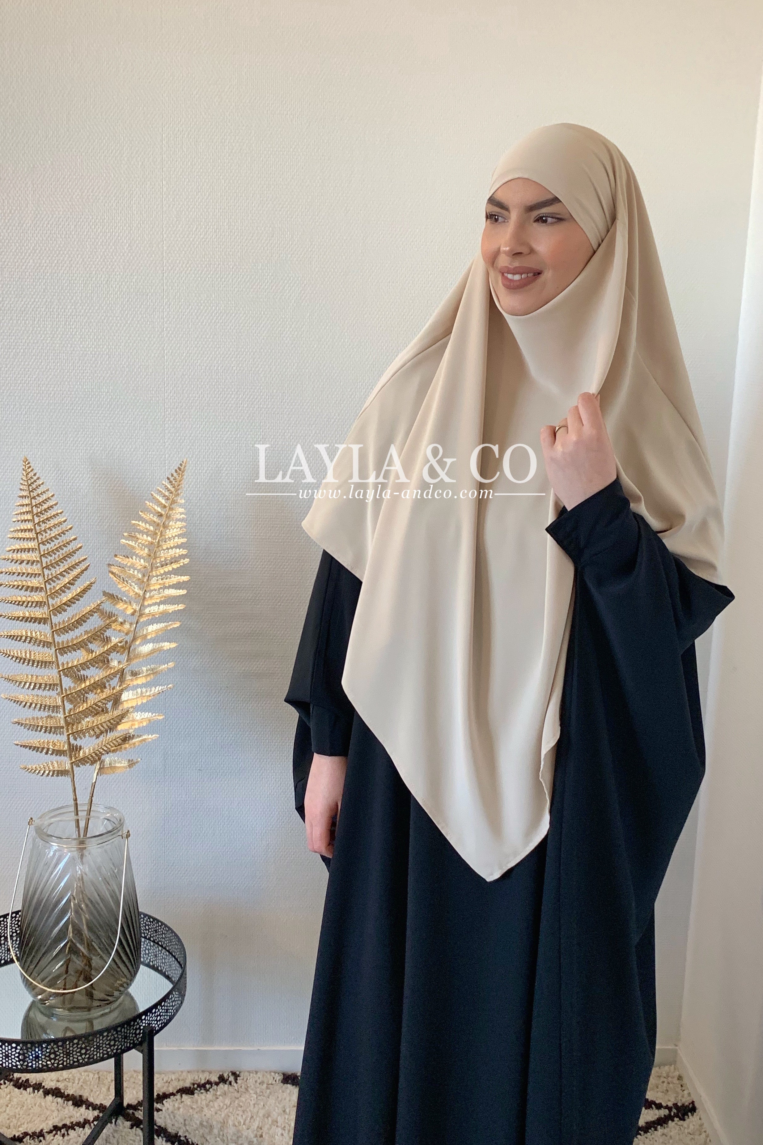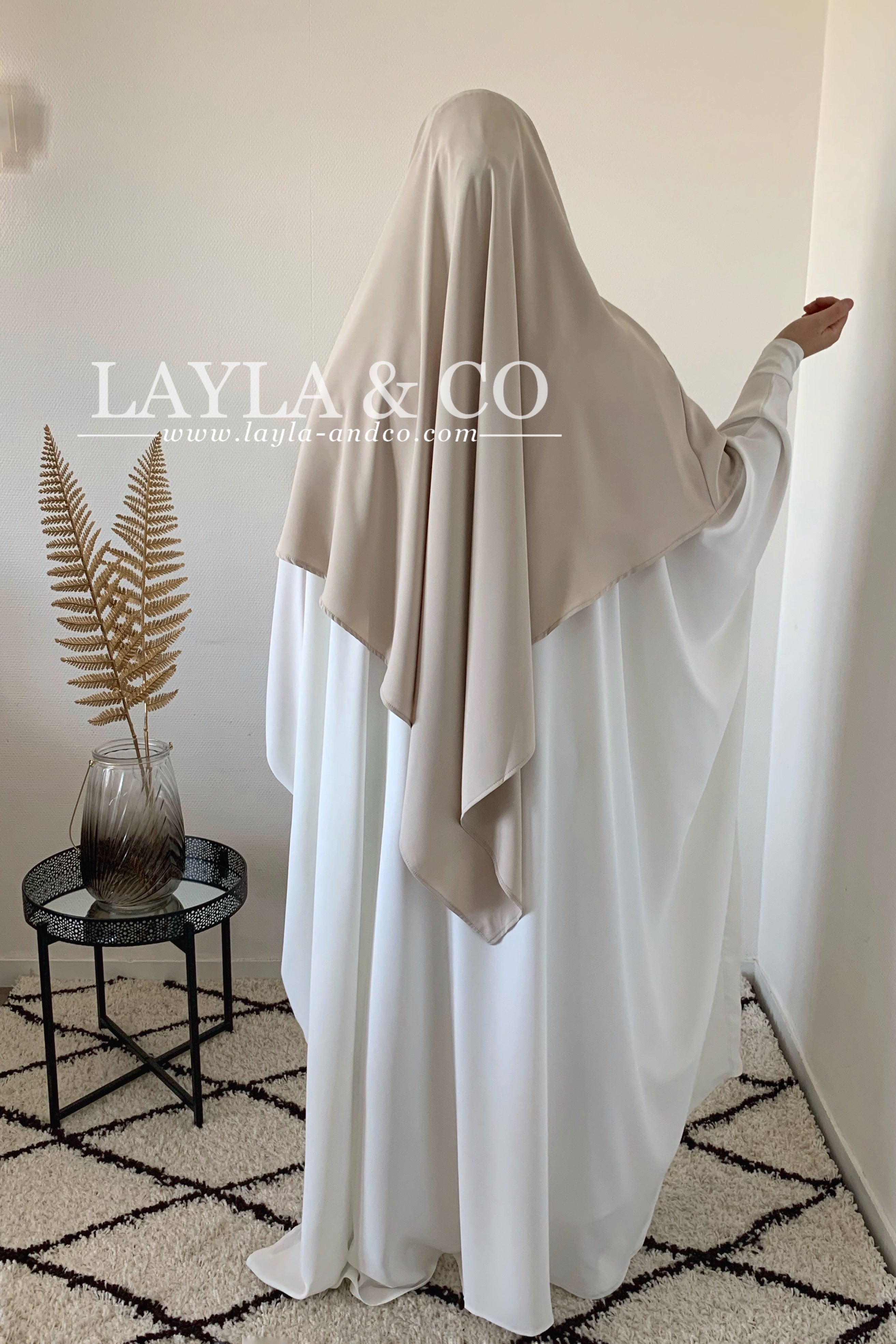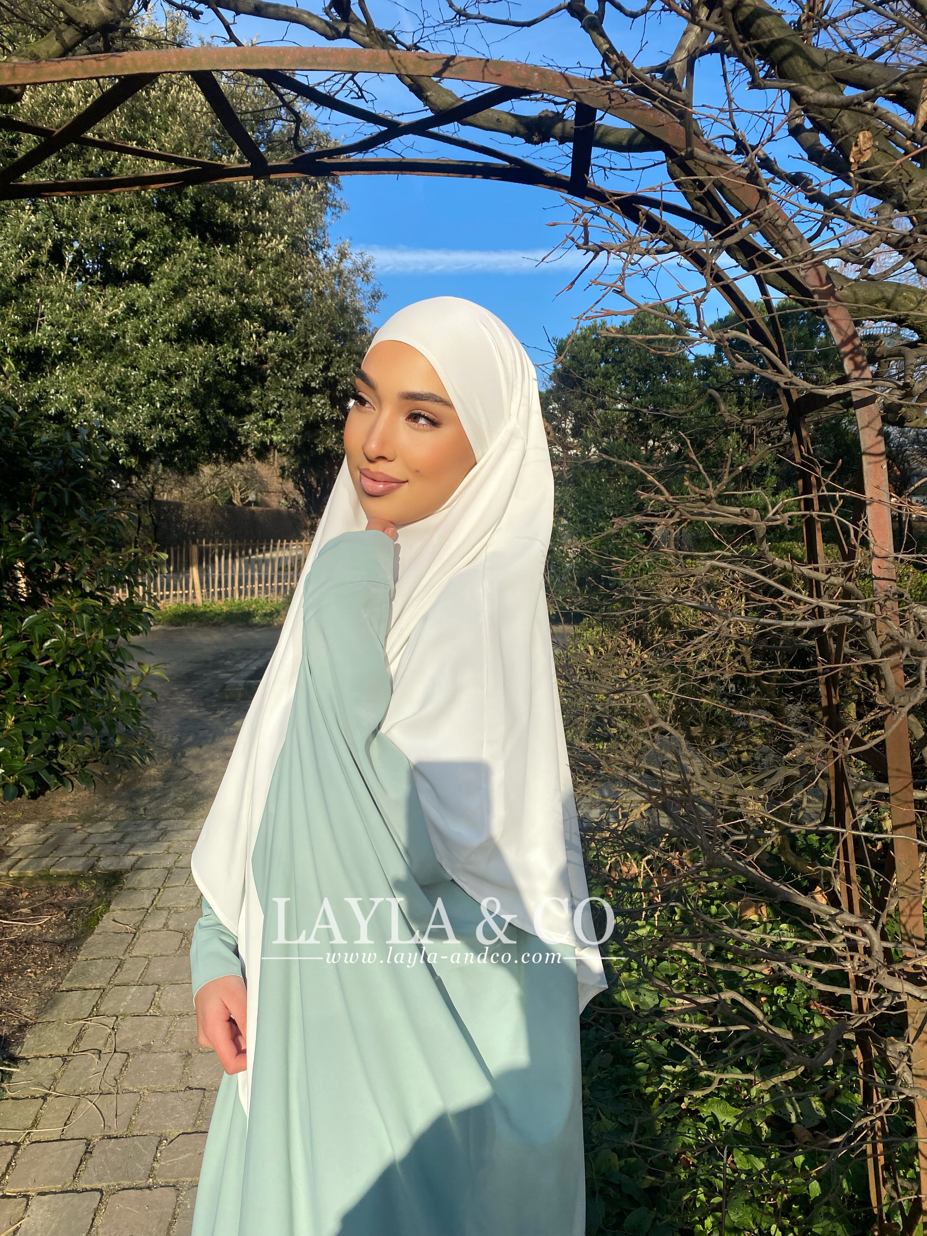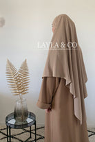 Khimar en soie de medine tissu de qualité supérieure, fluide. S'attache à l'aide de deux bandes.