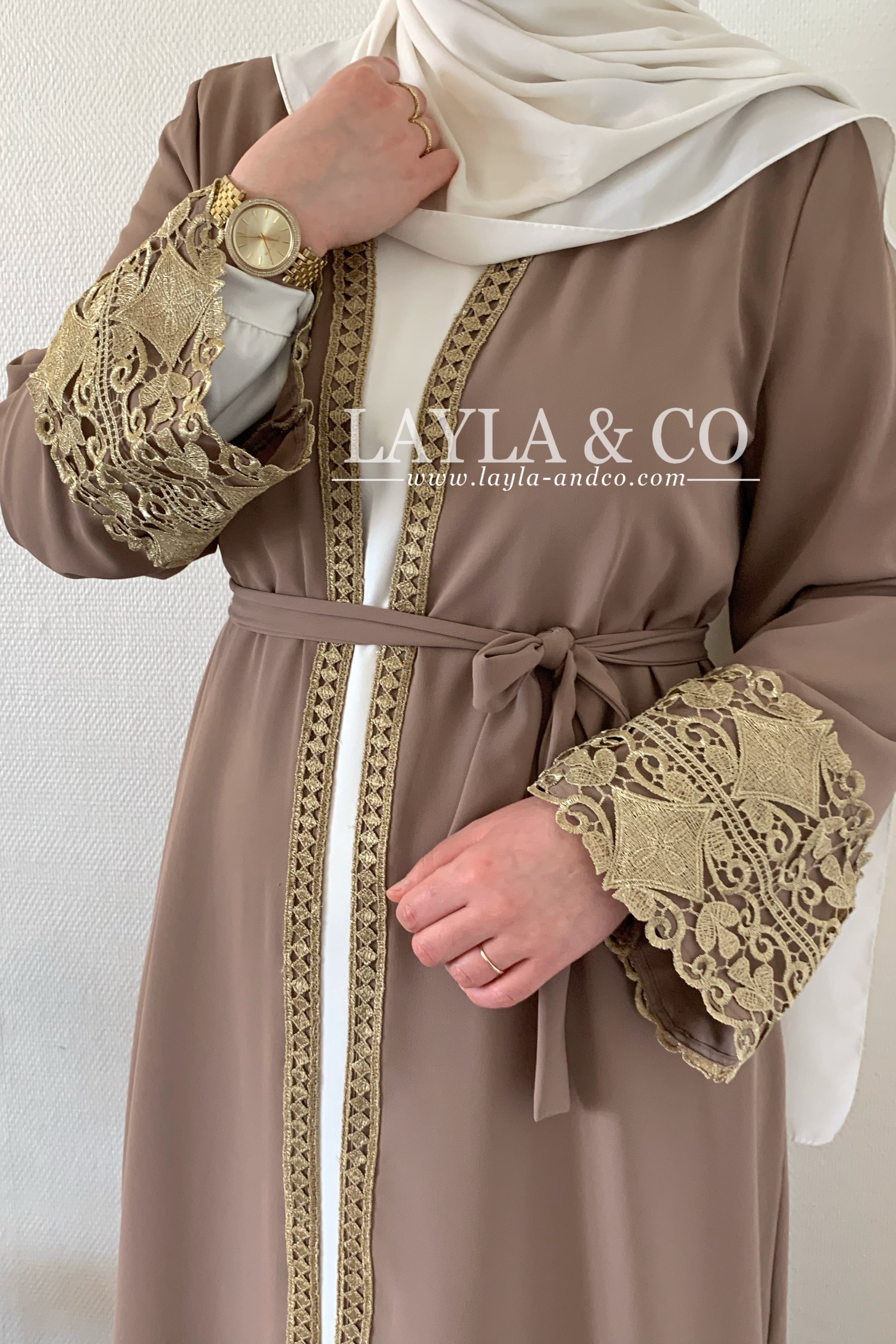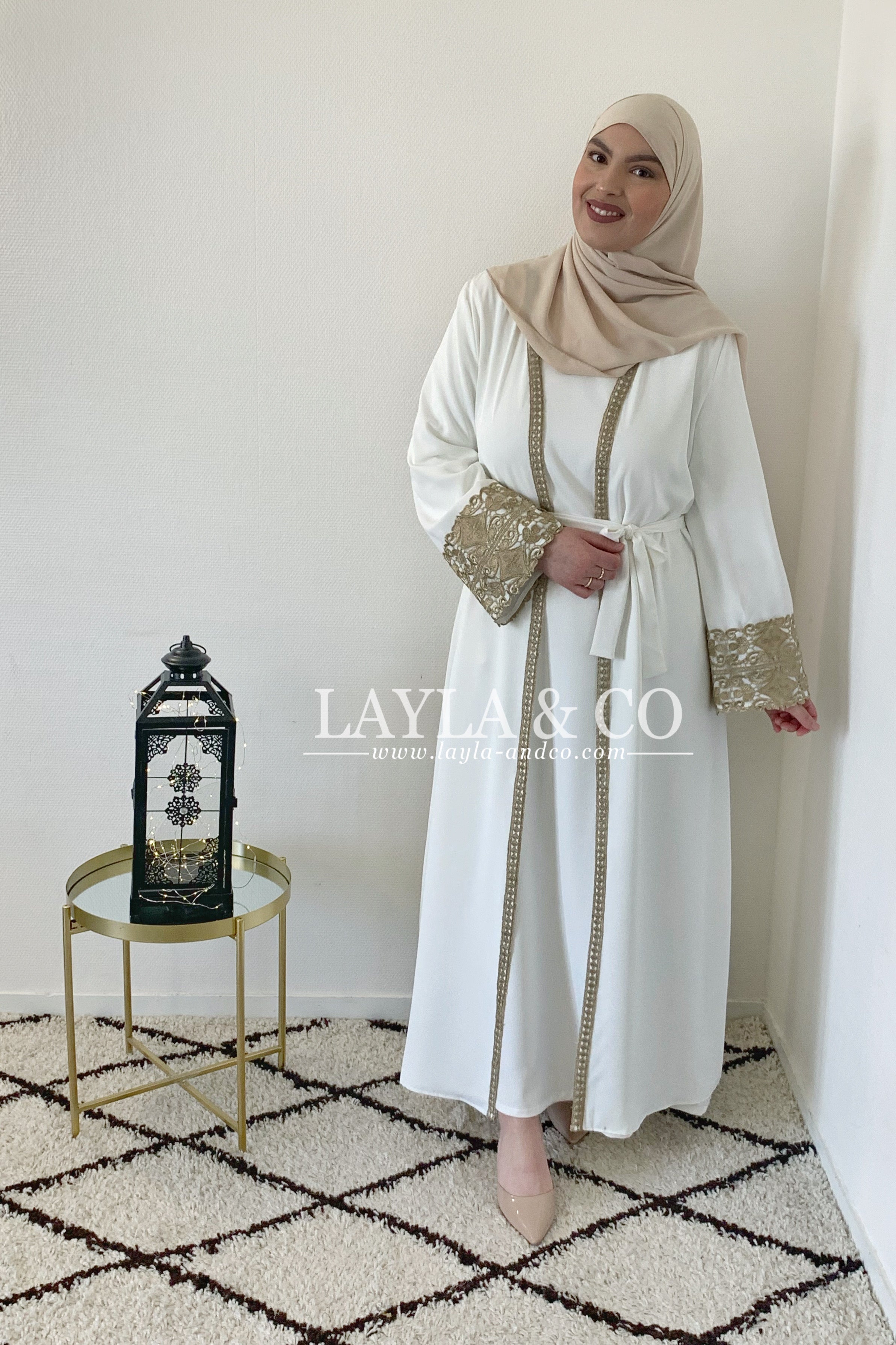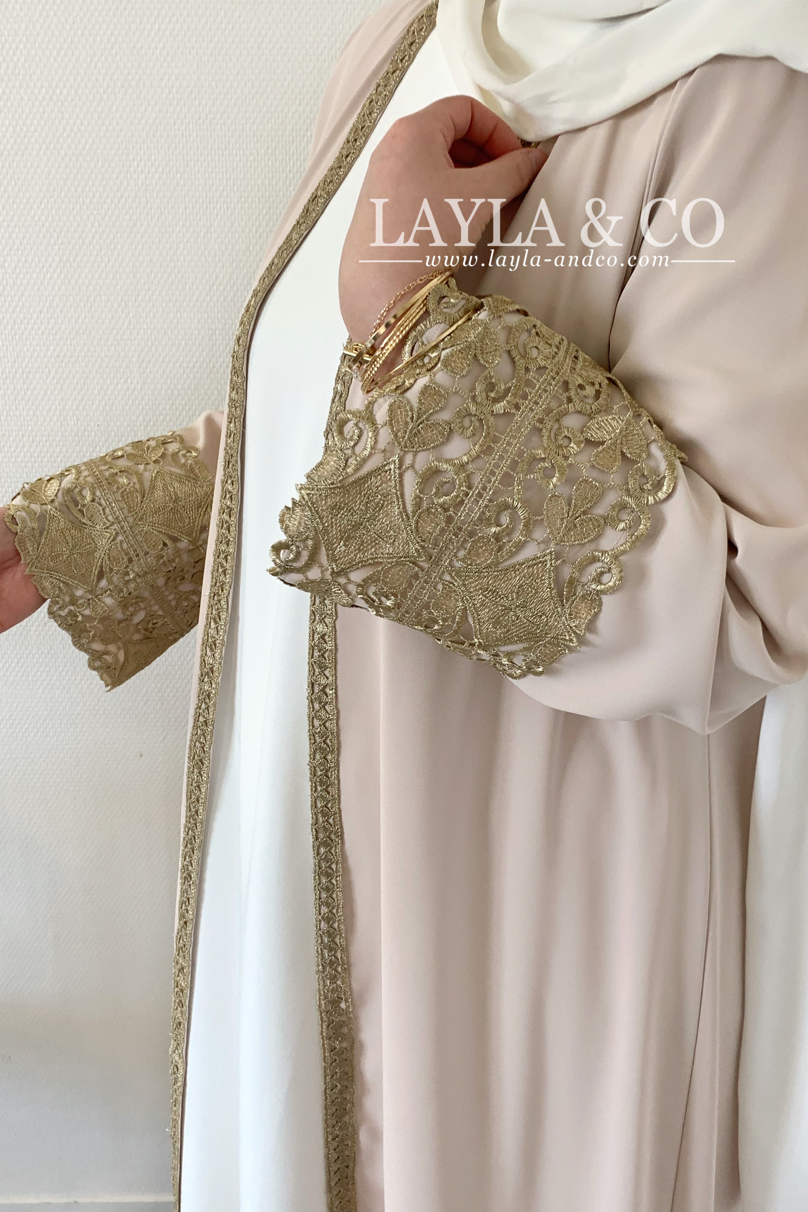 Kimono avec broderie dentelle dorée.