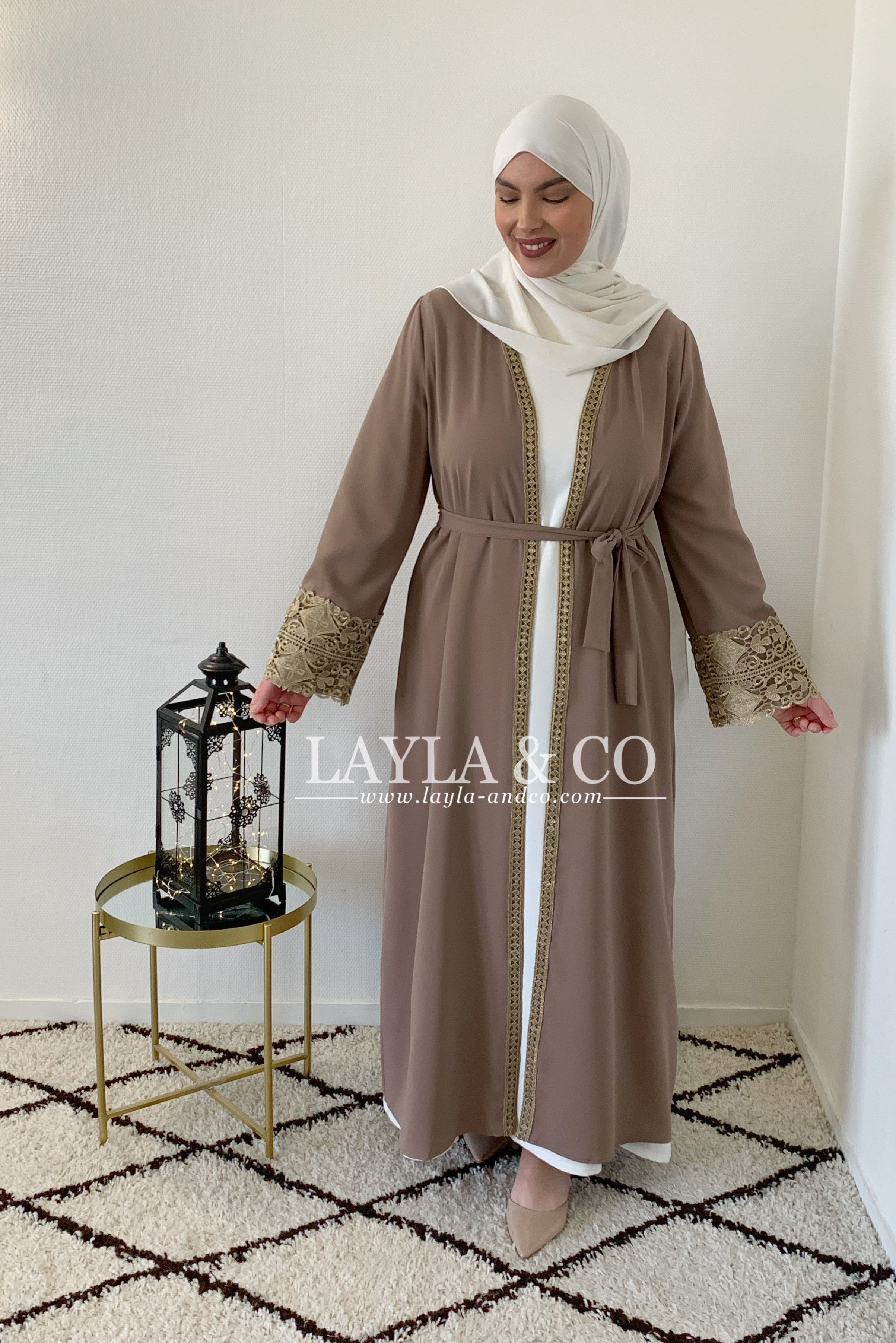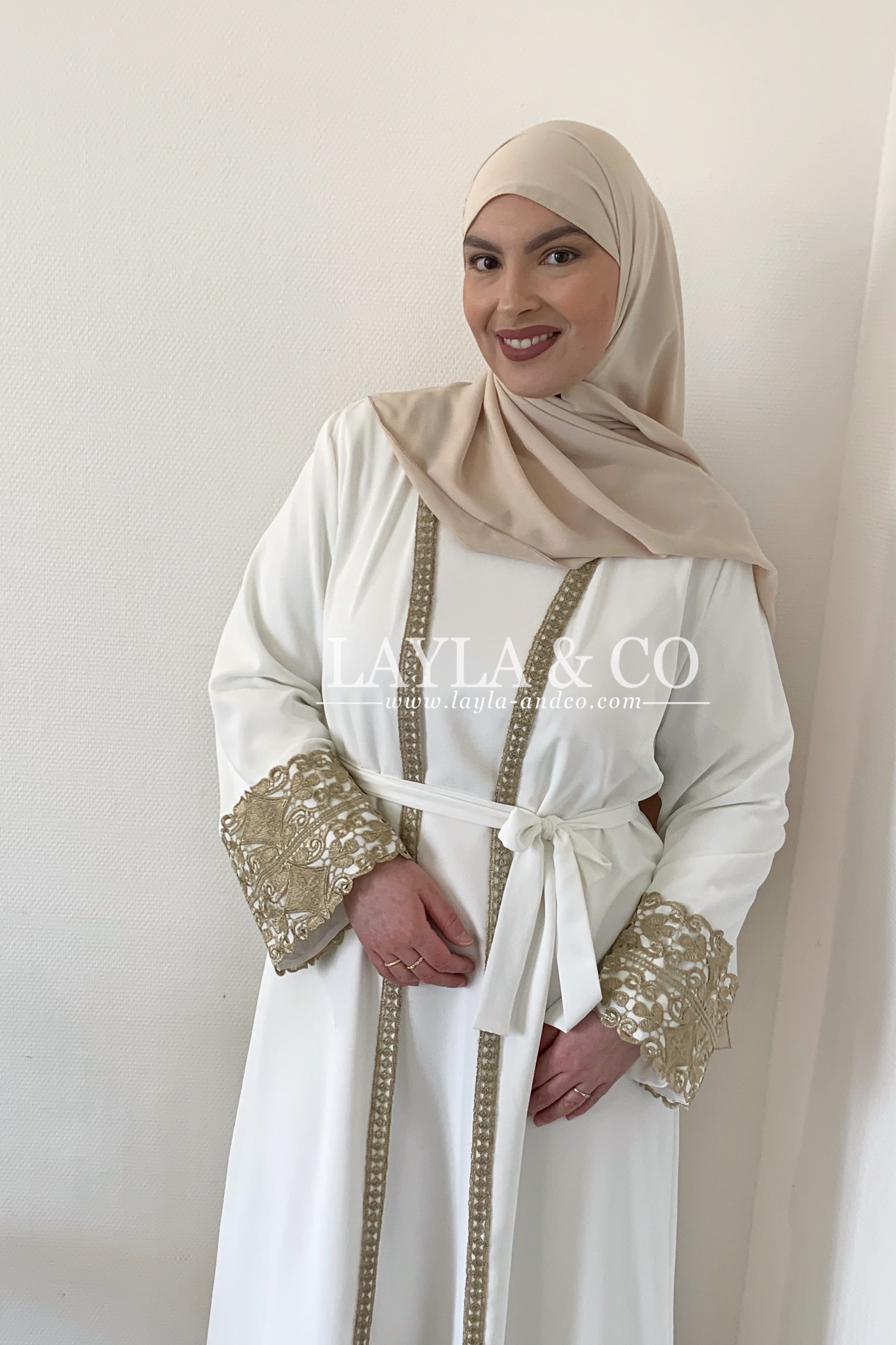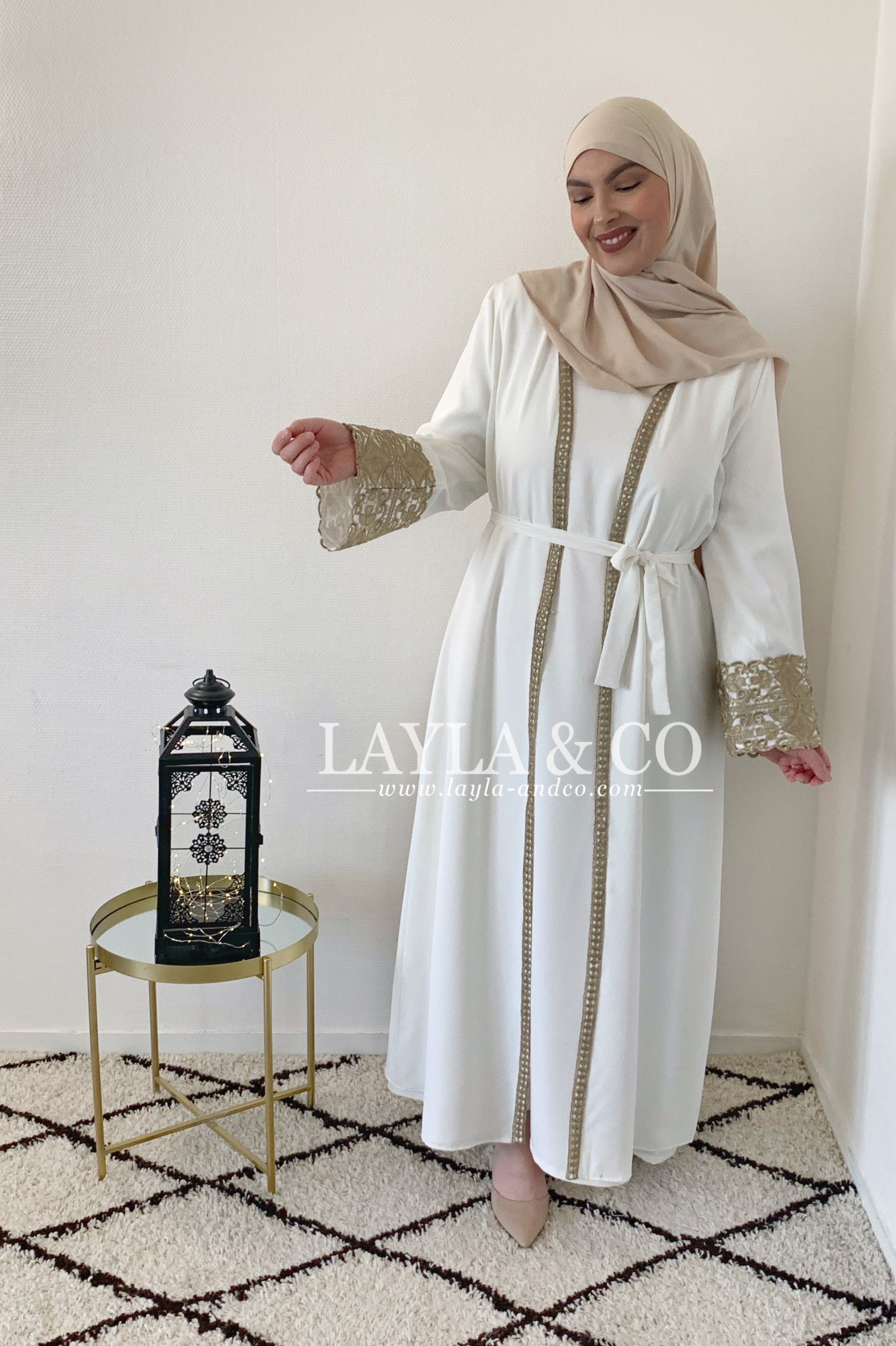 Kimono avec broderie dentelle dorée.