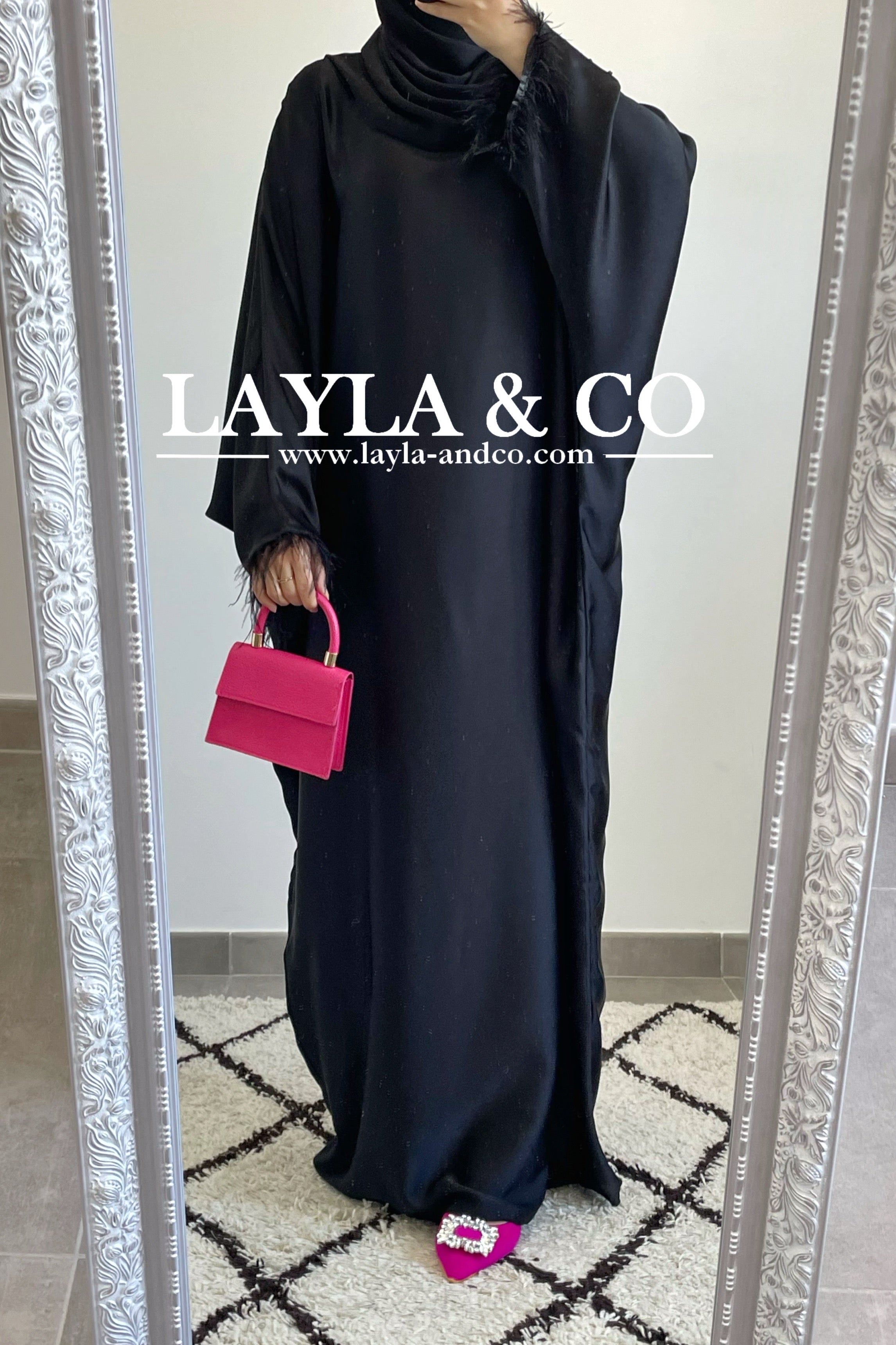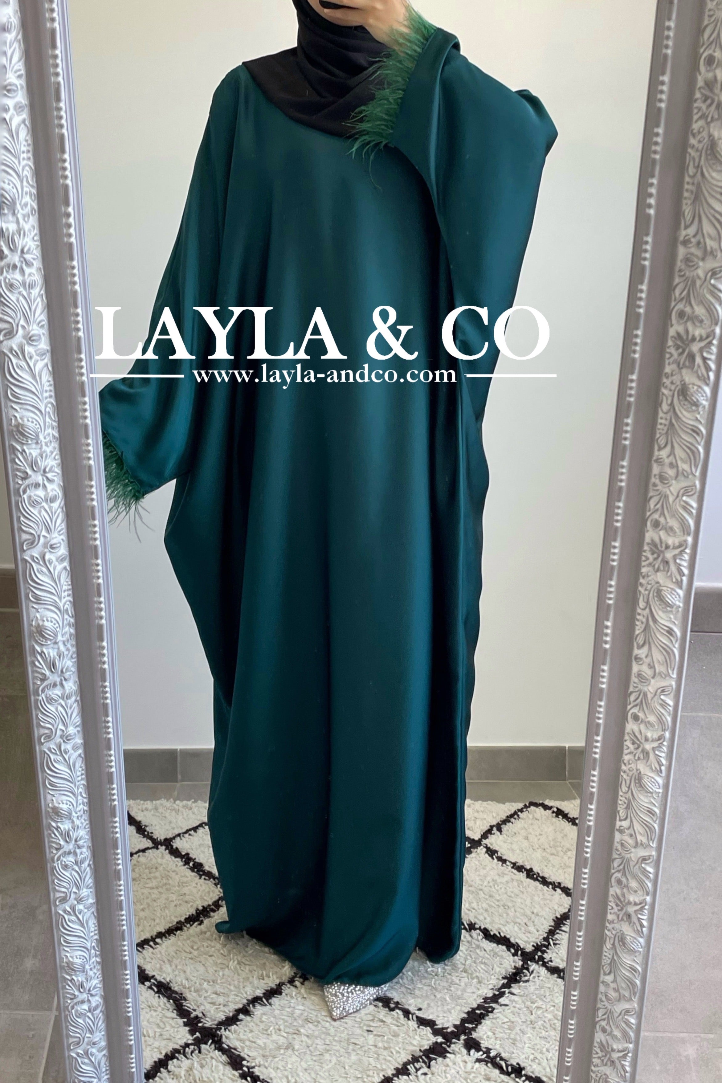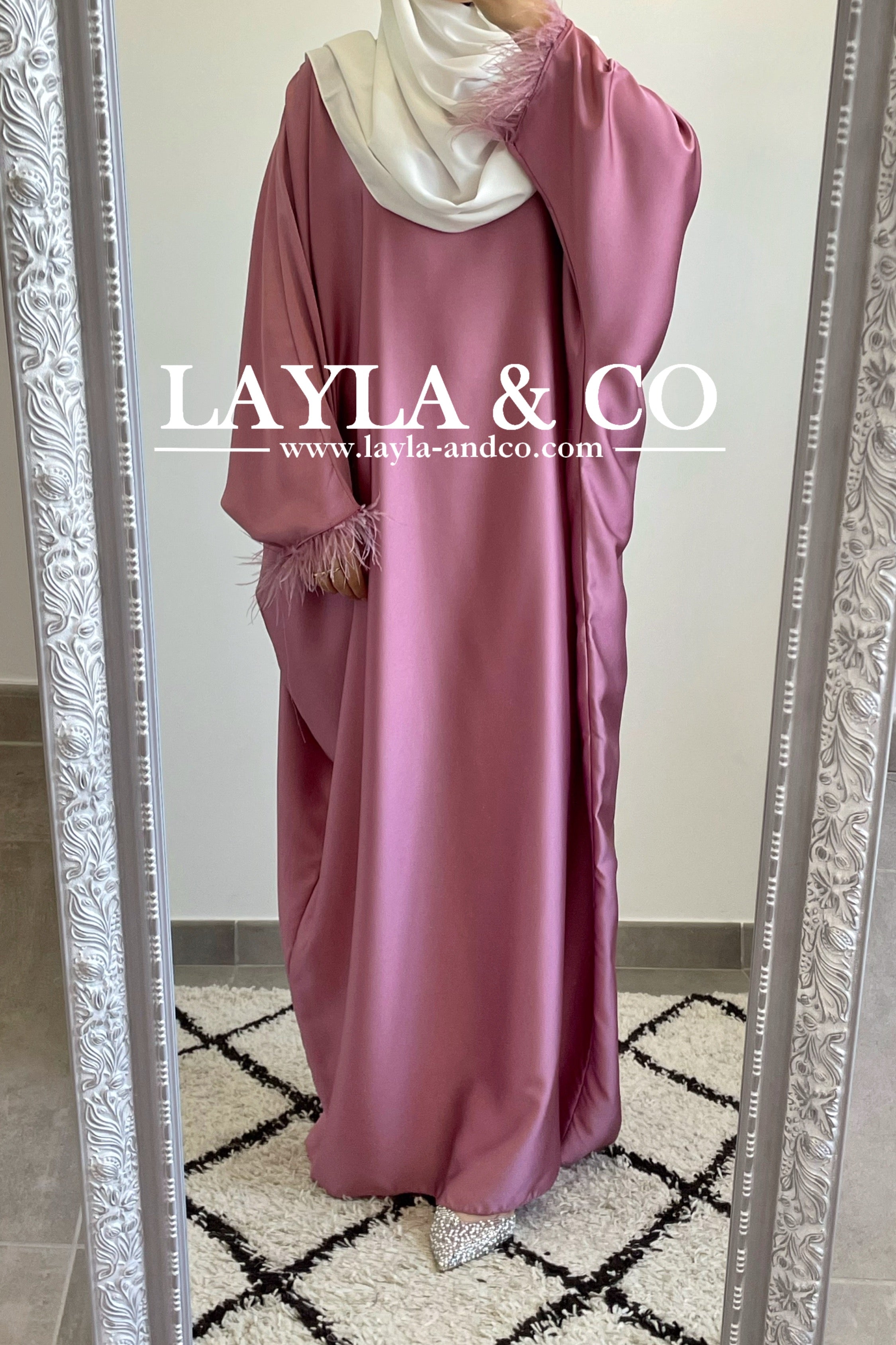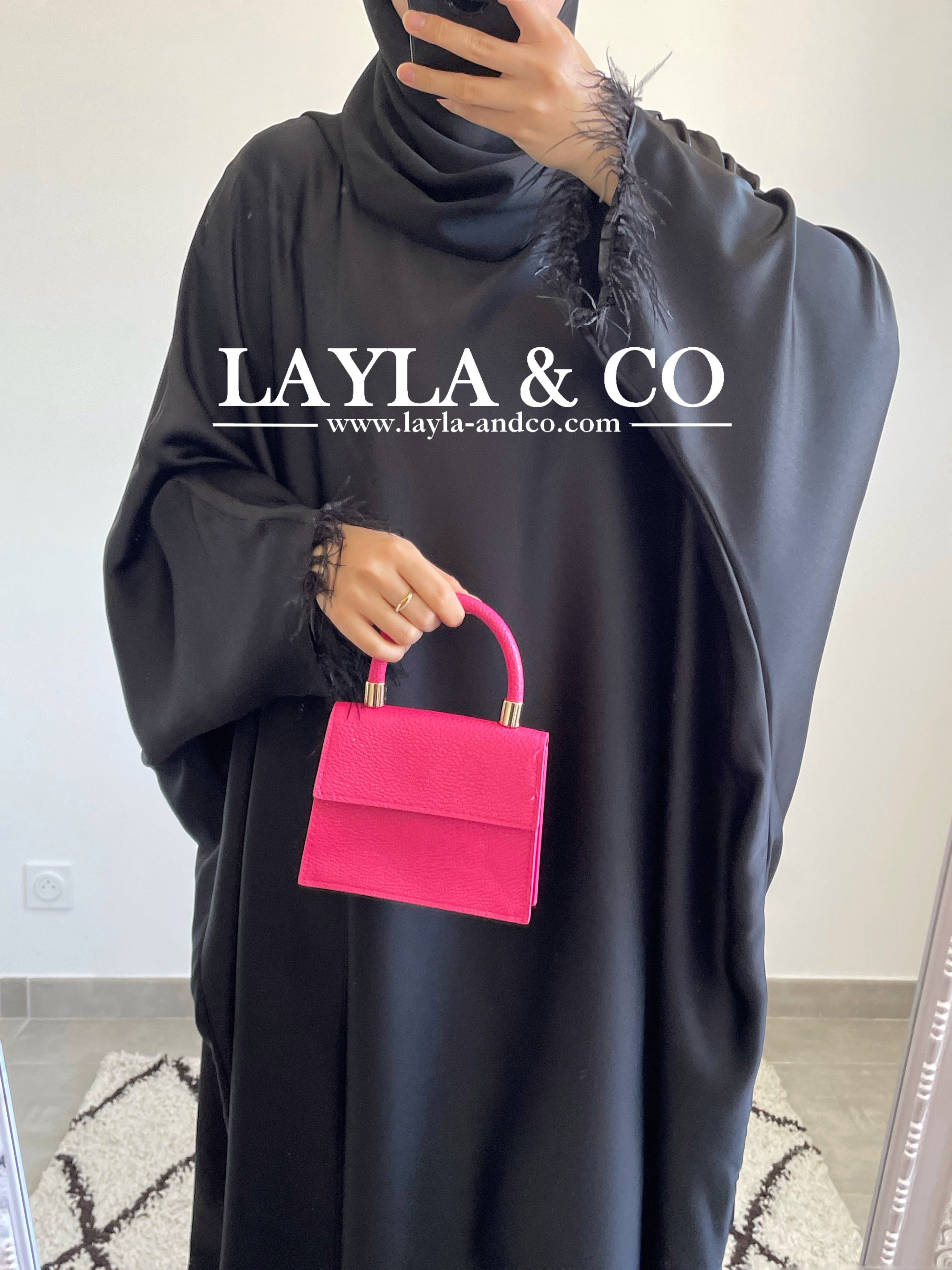 Abaya farasha satinée à plumes