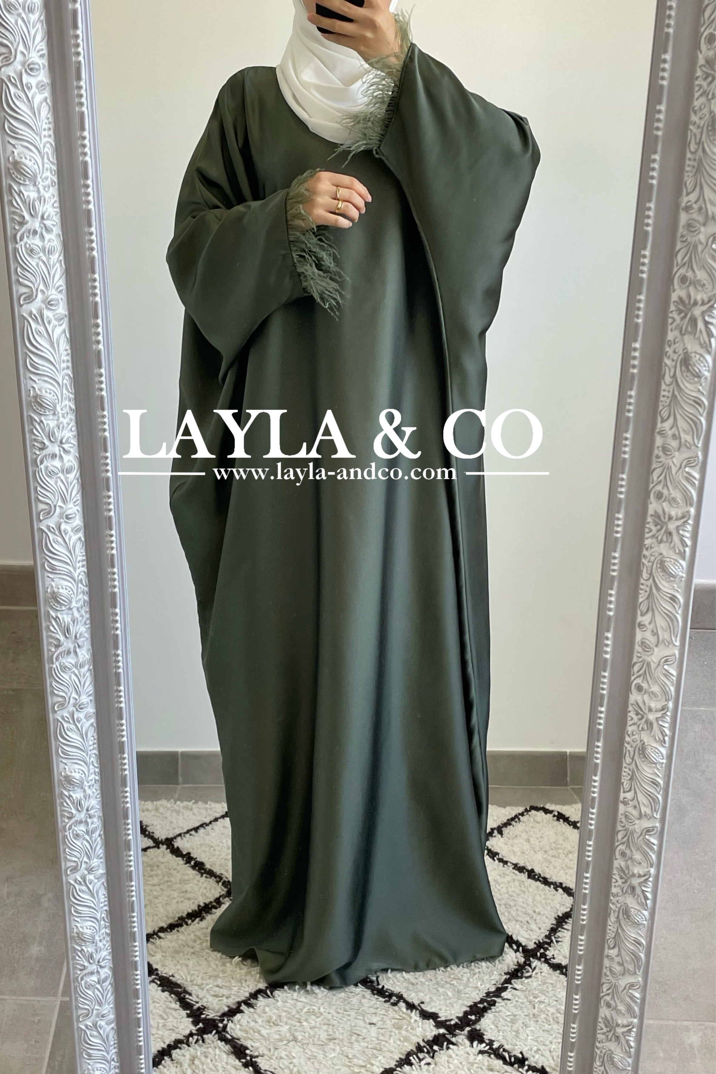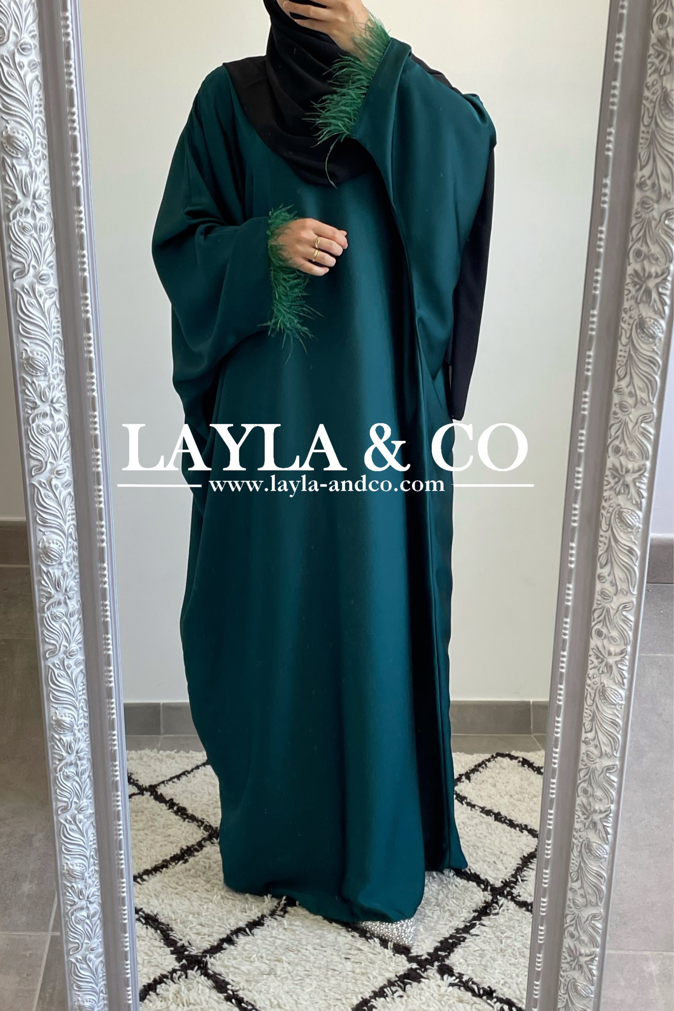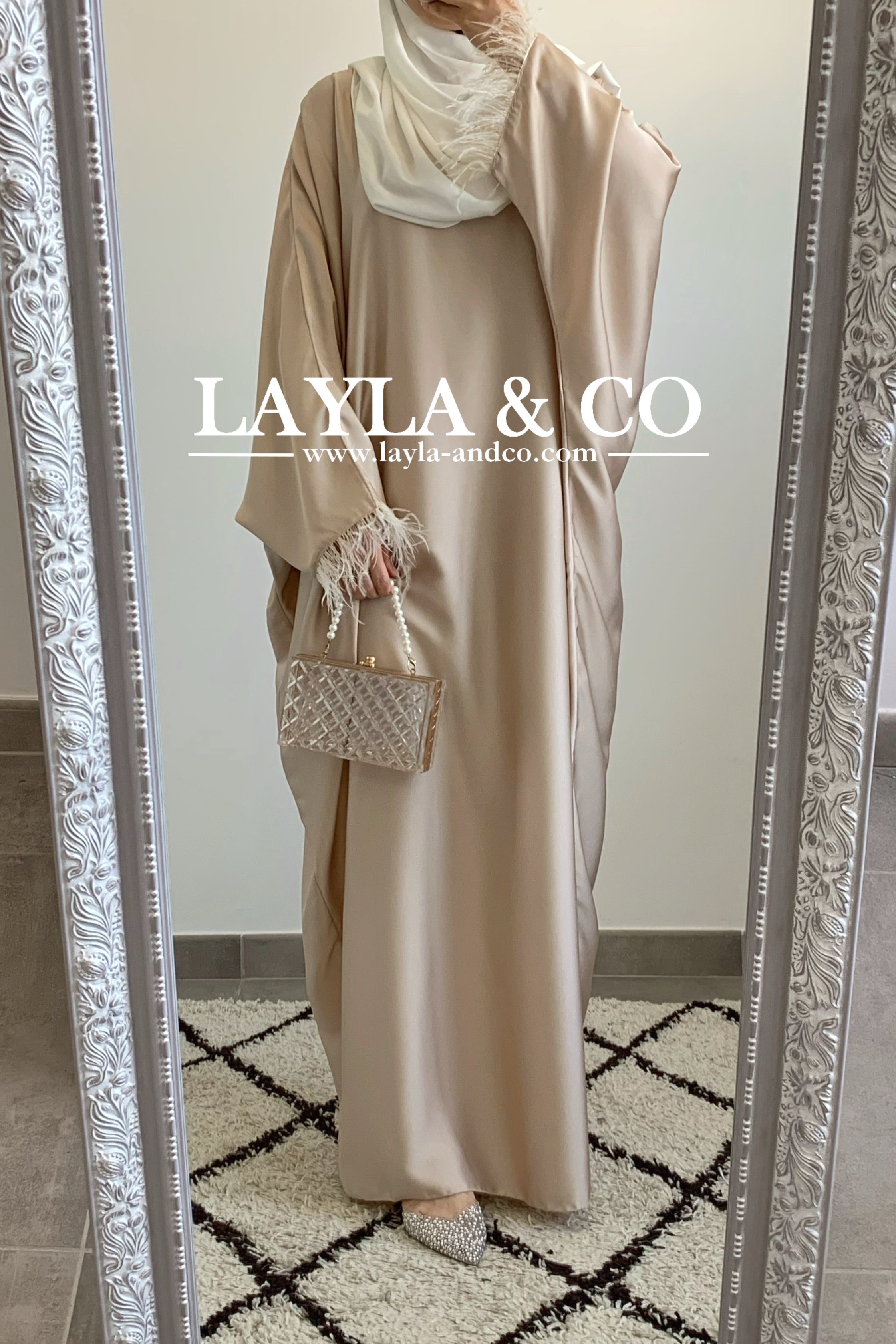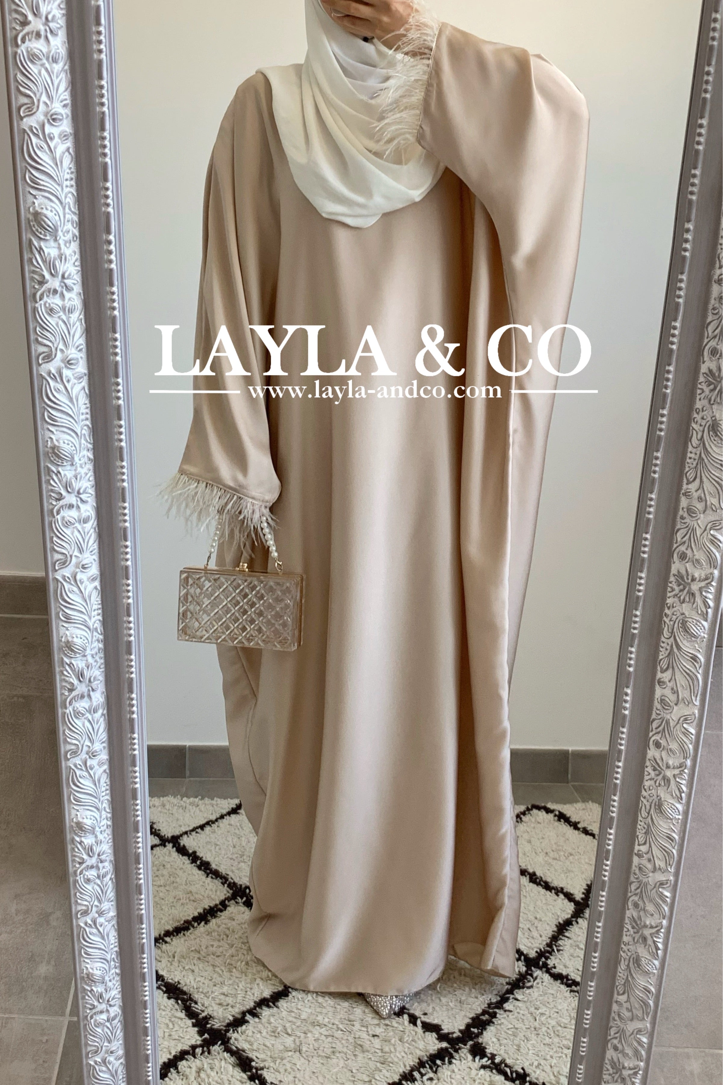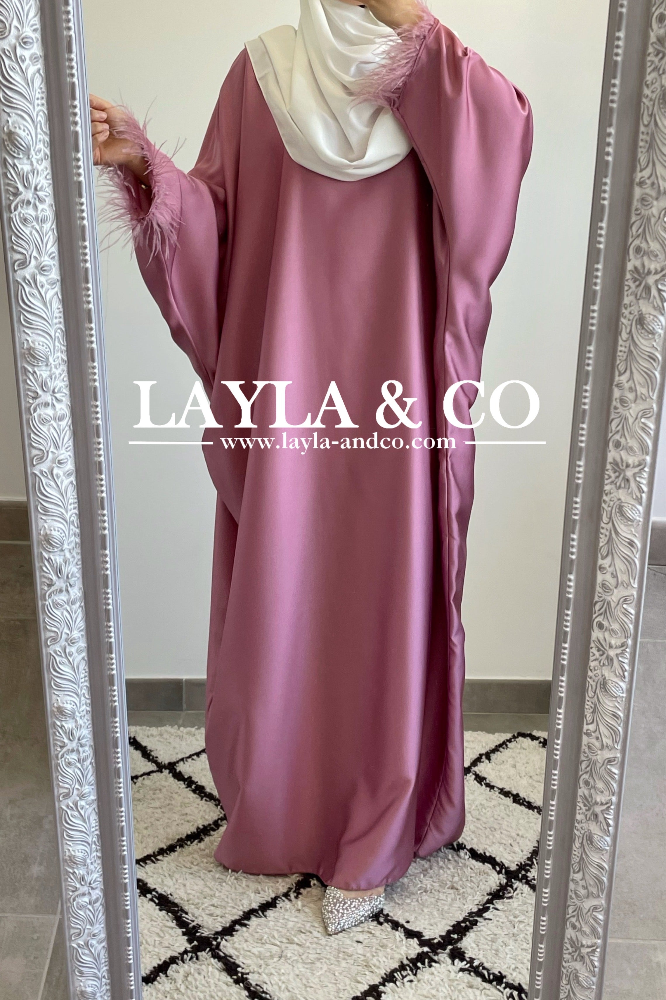 Abaya farasha satinée à plumes