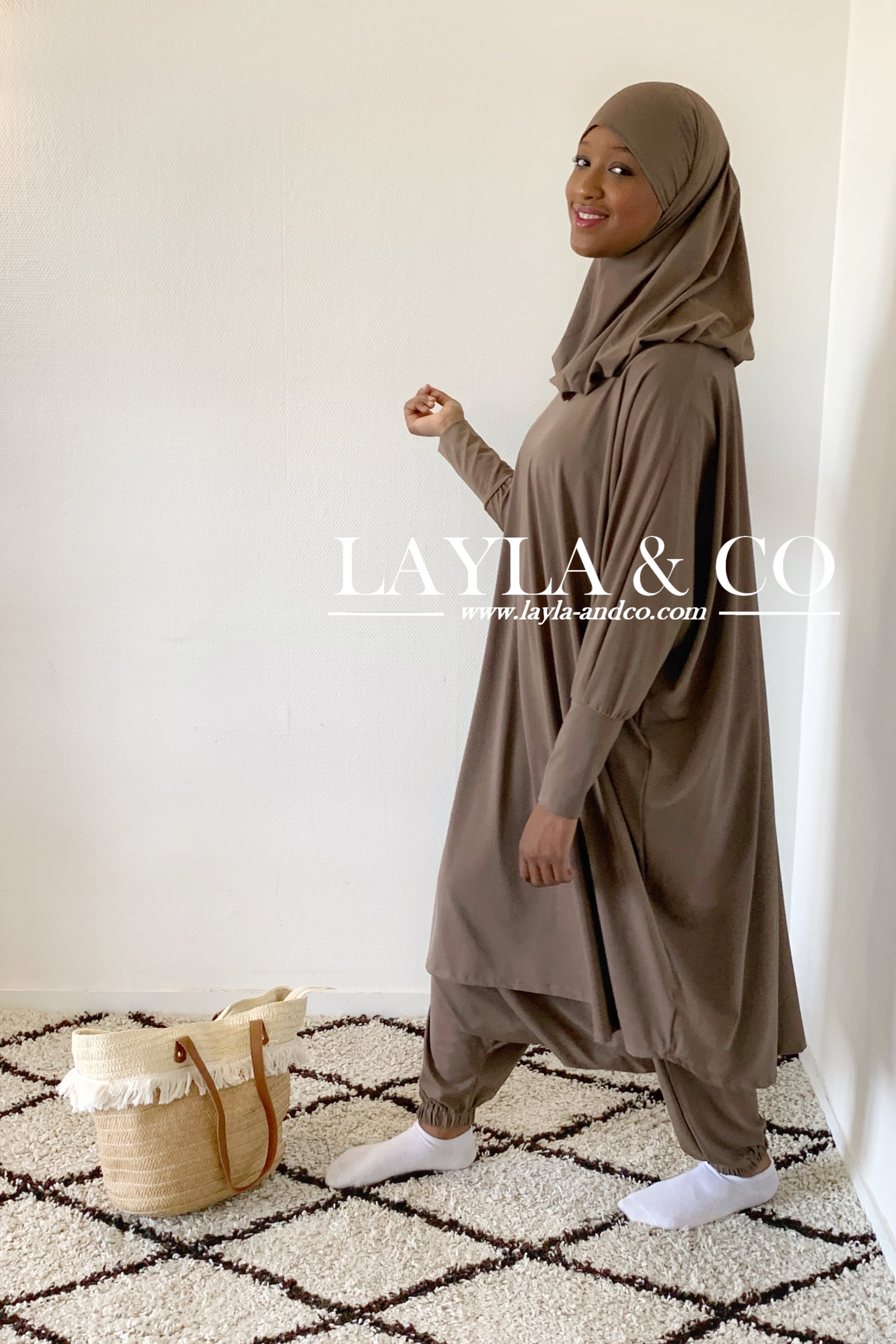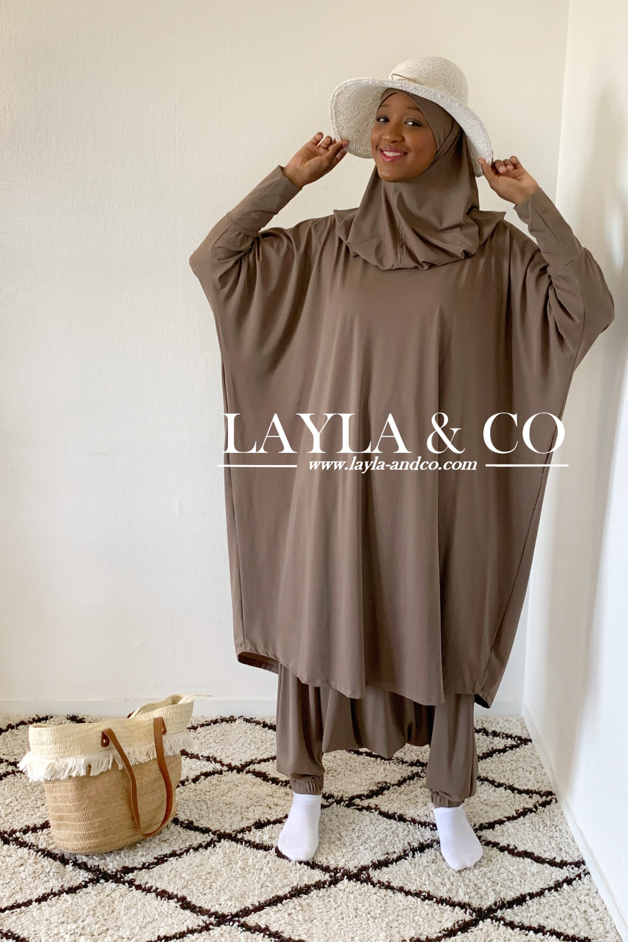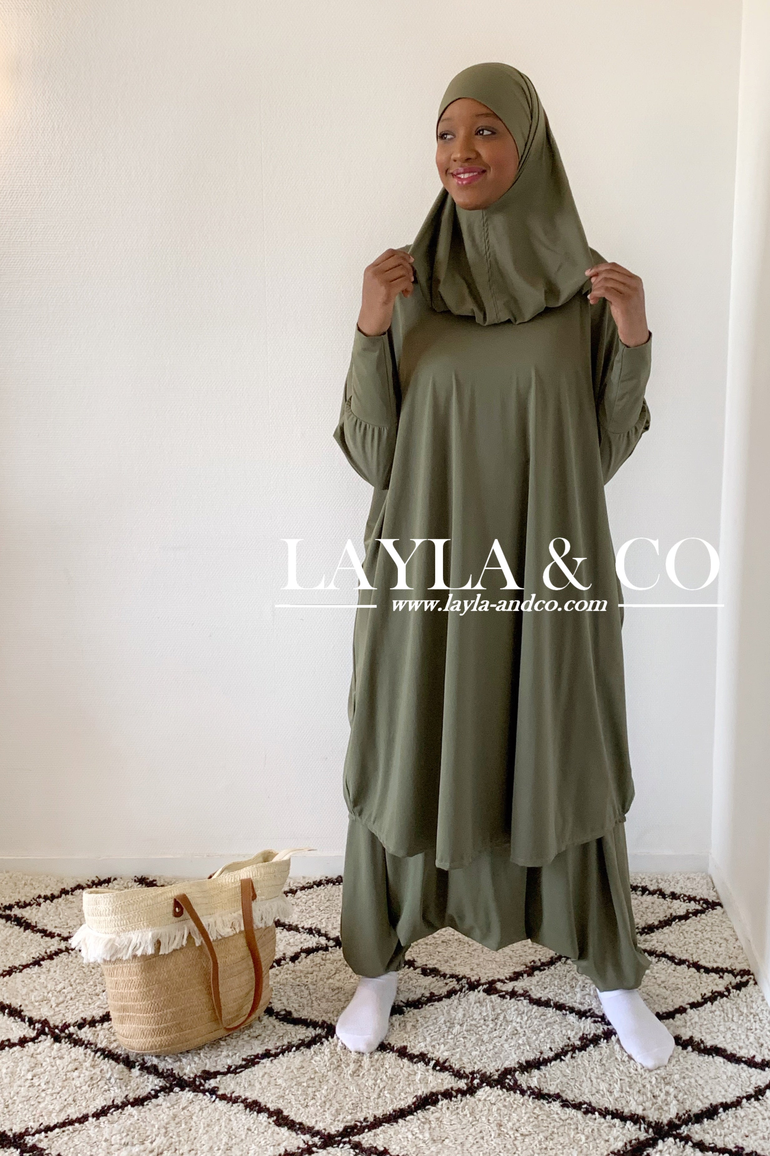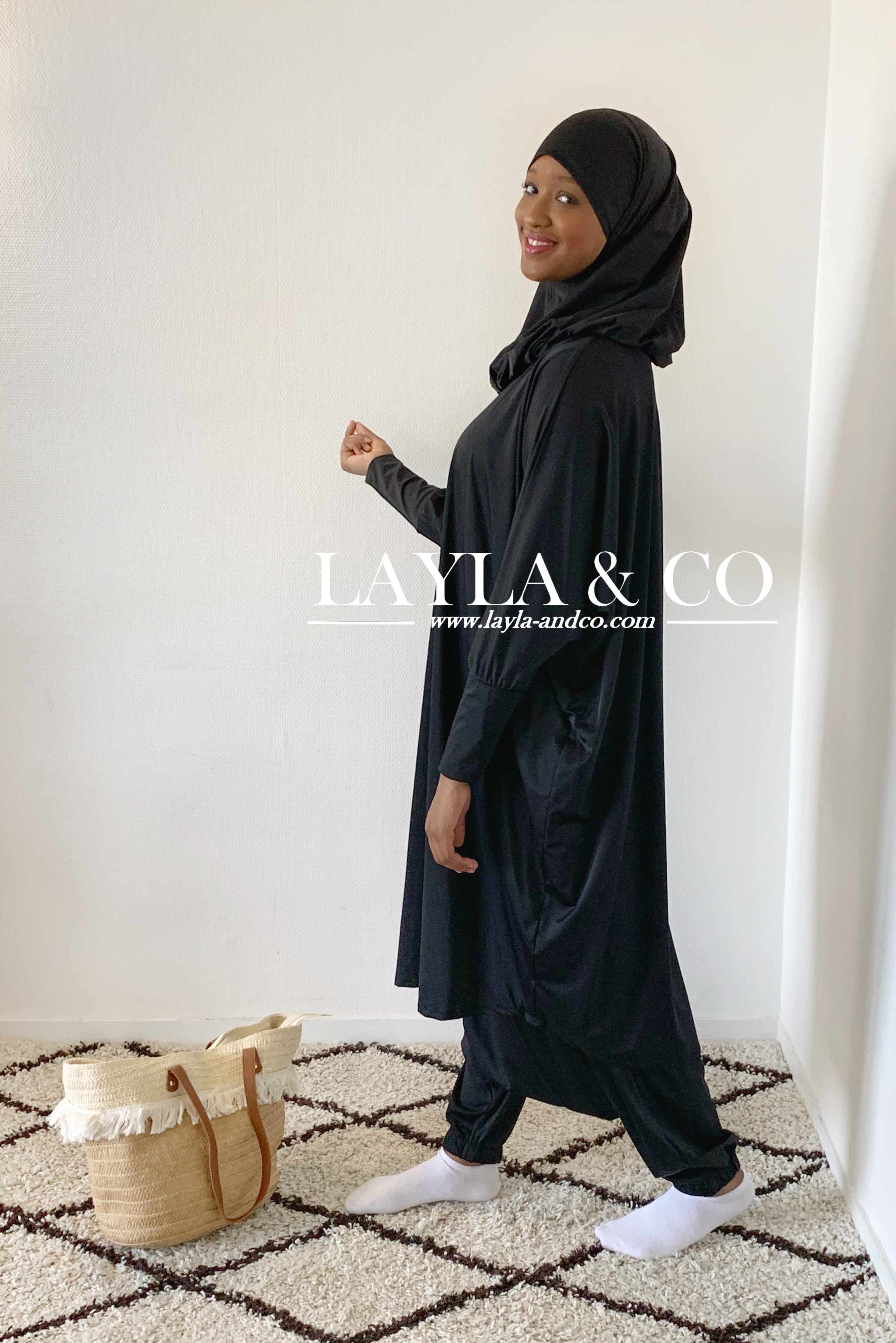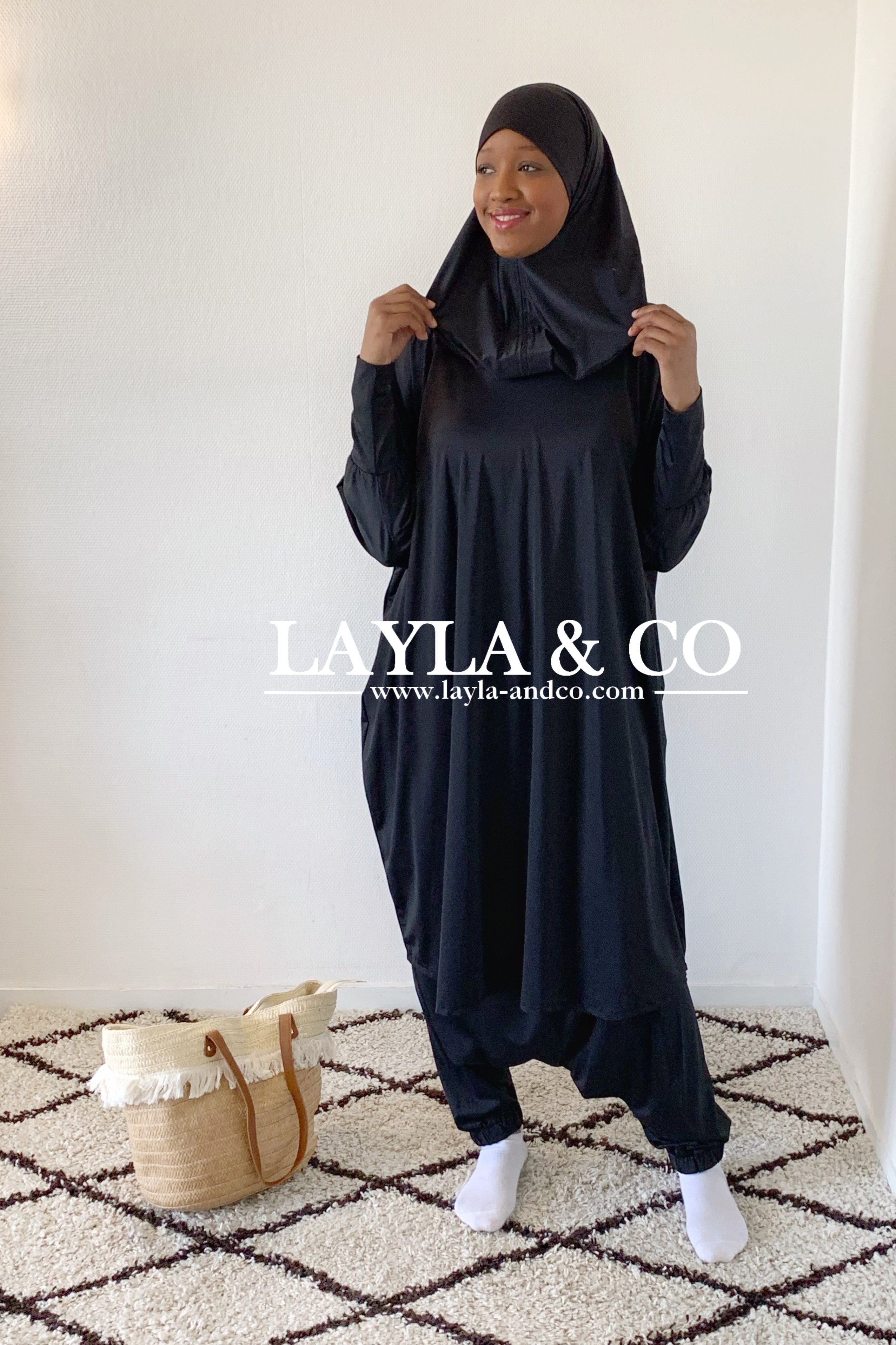 Burkini sarouel 2 pièces effet jilbeb de bain composé de :
