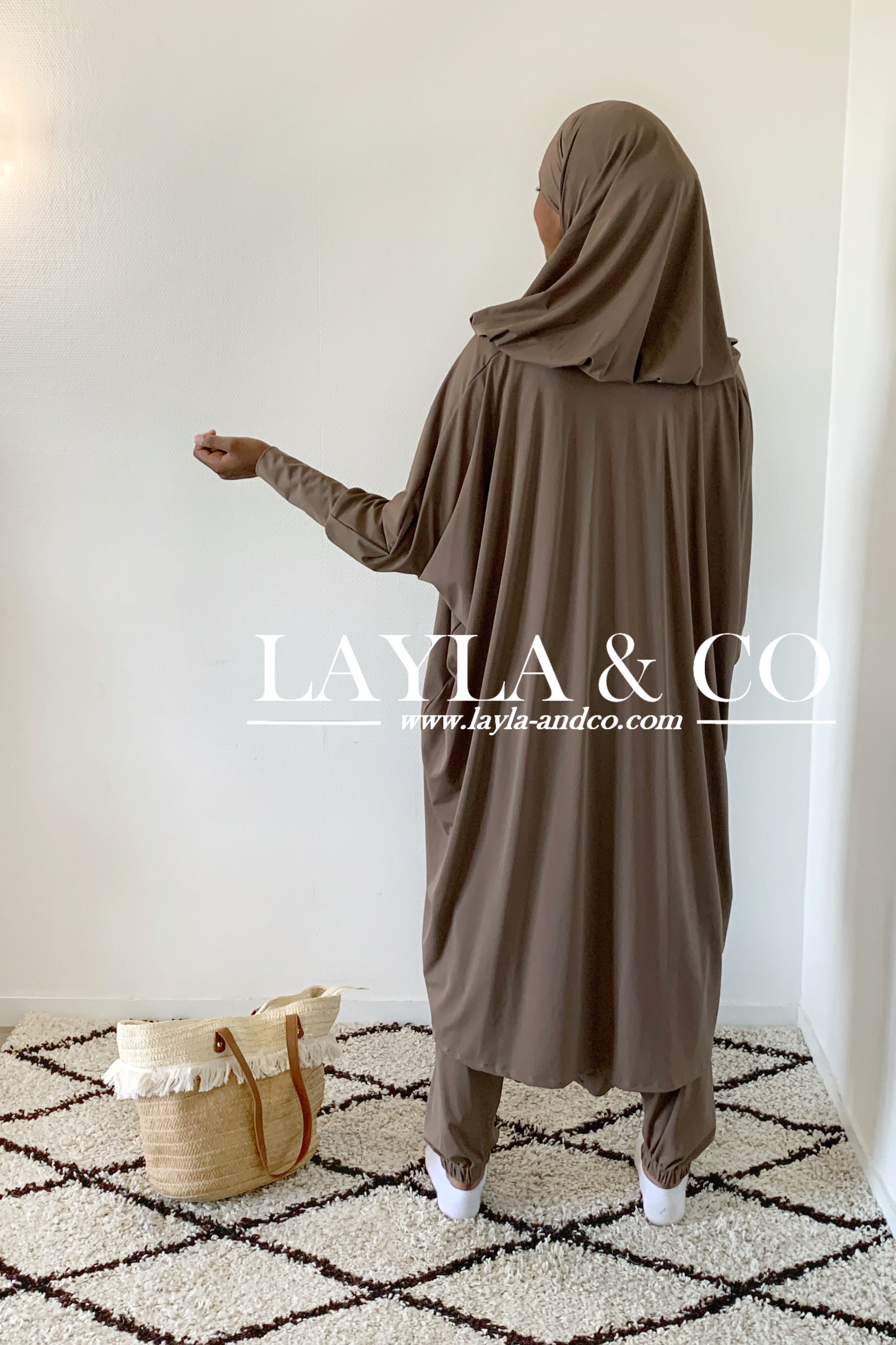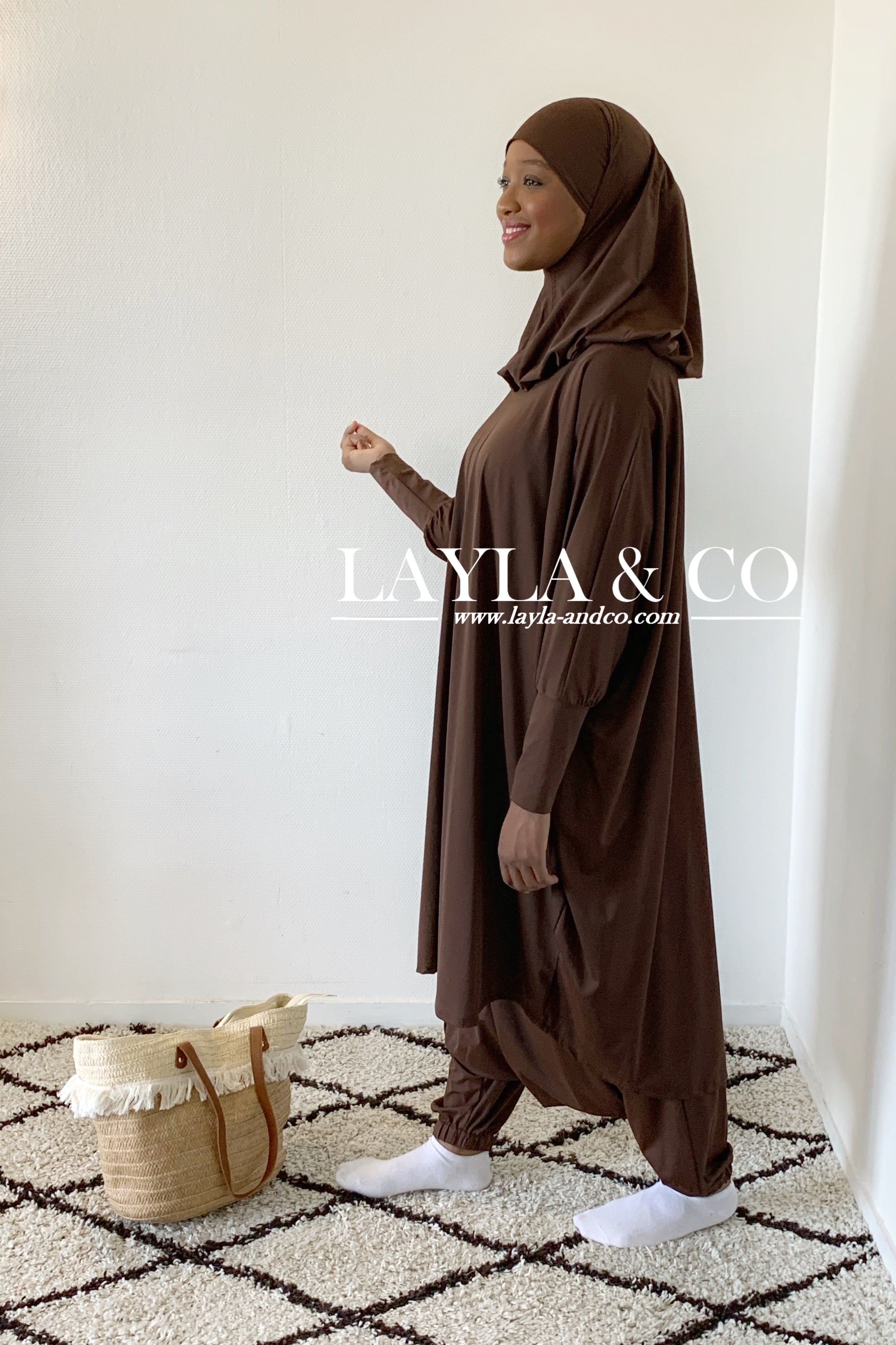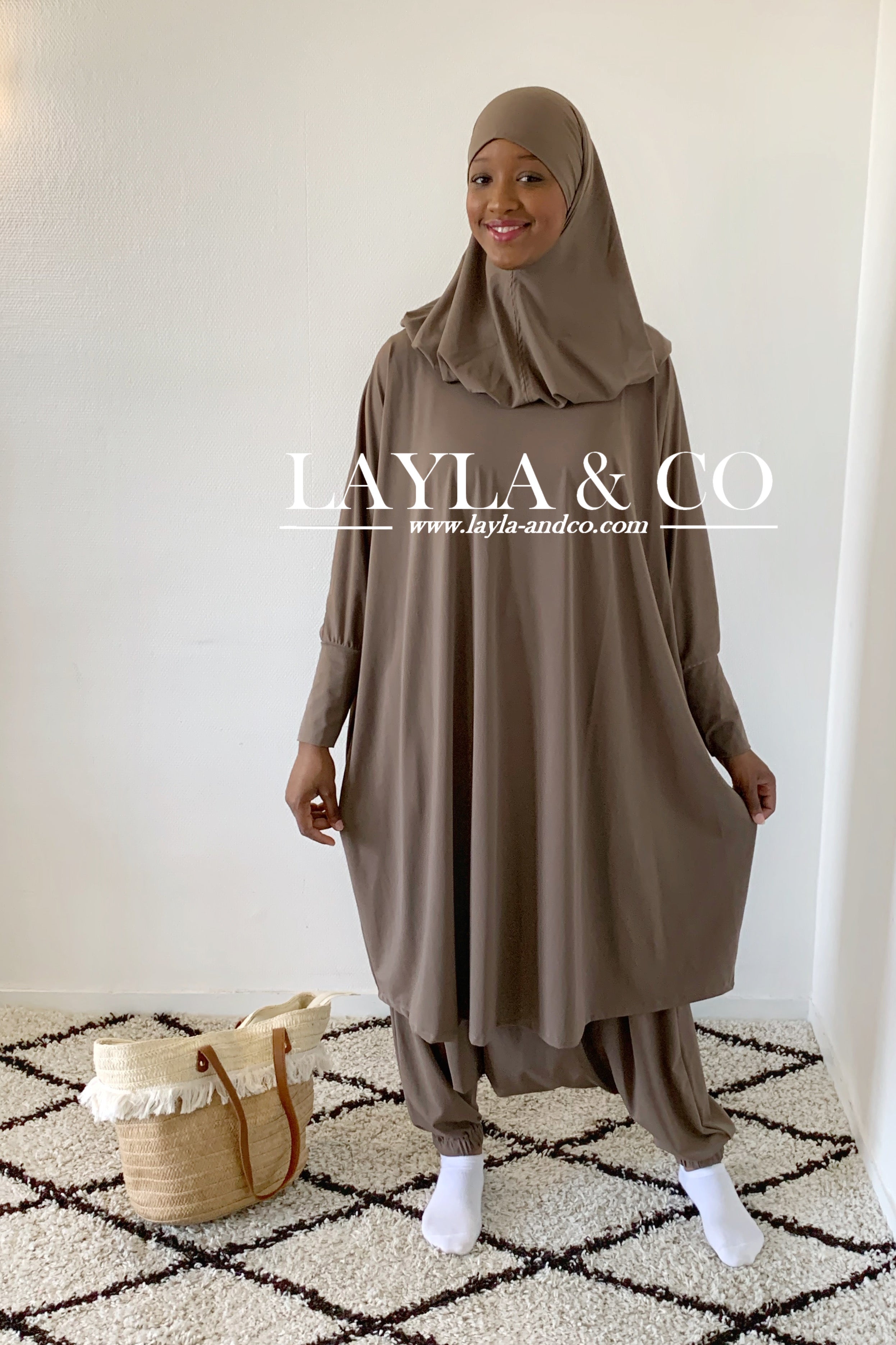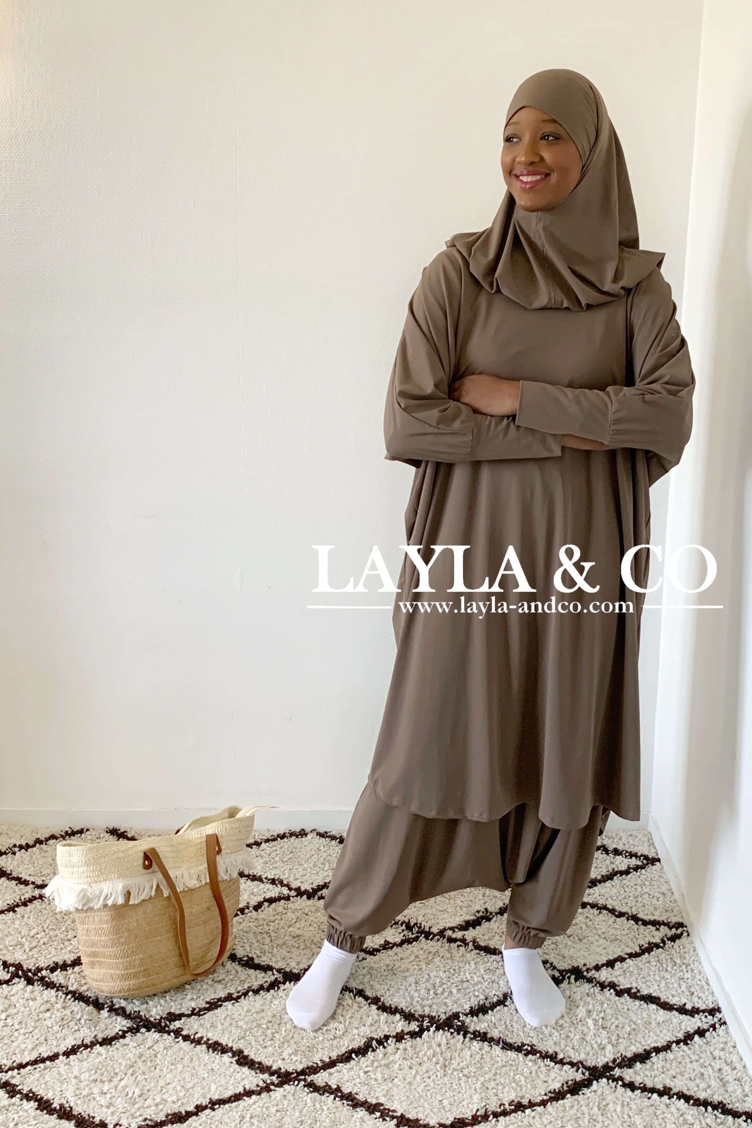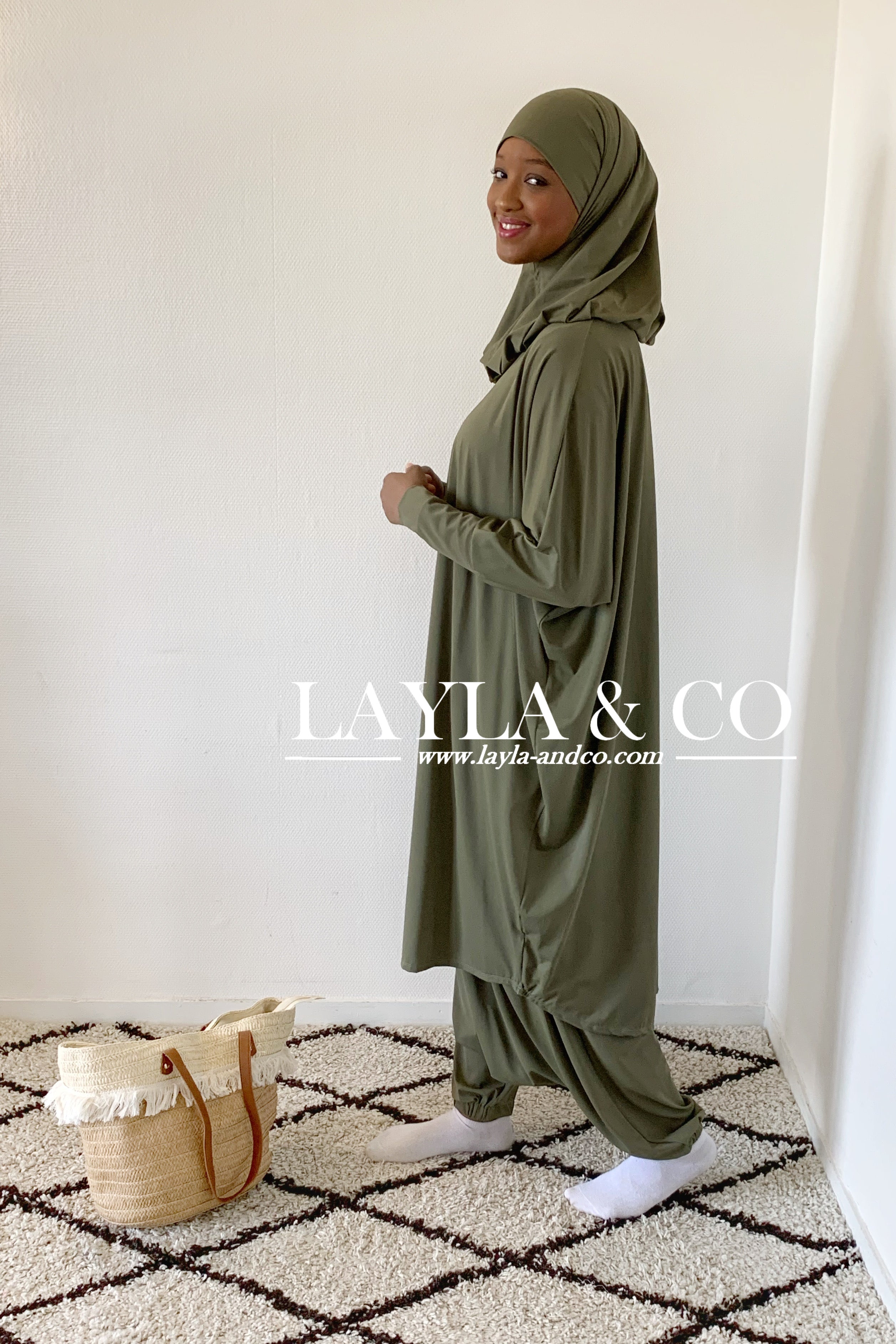 Burkini sarouel 2 pièces effet jilbeb de bain composé de :