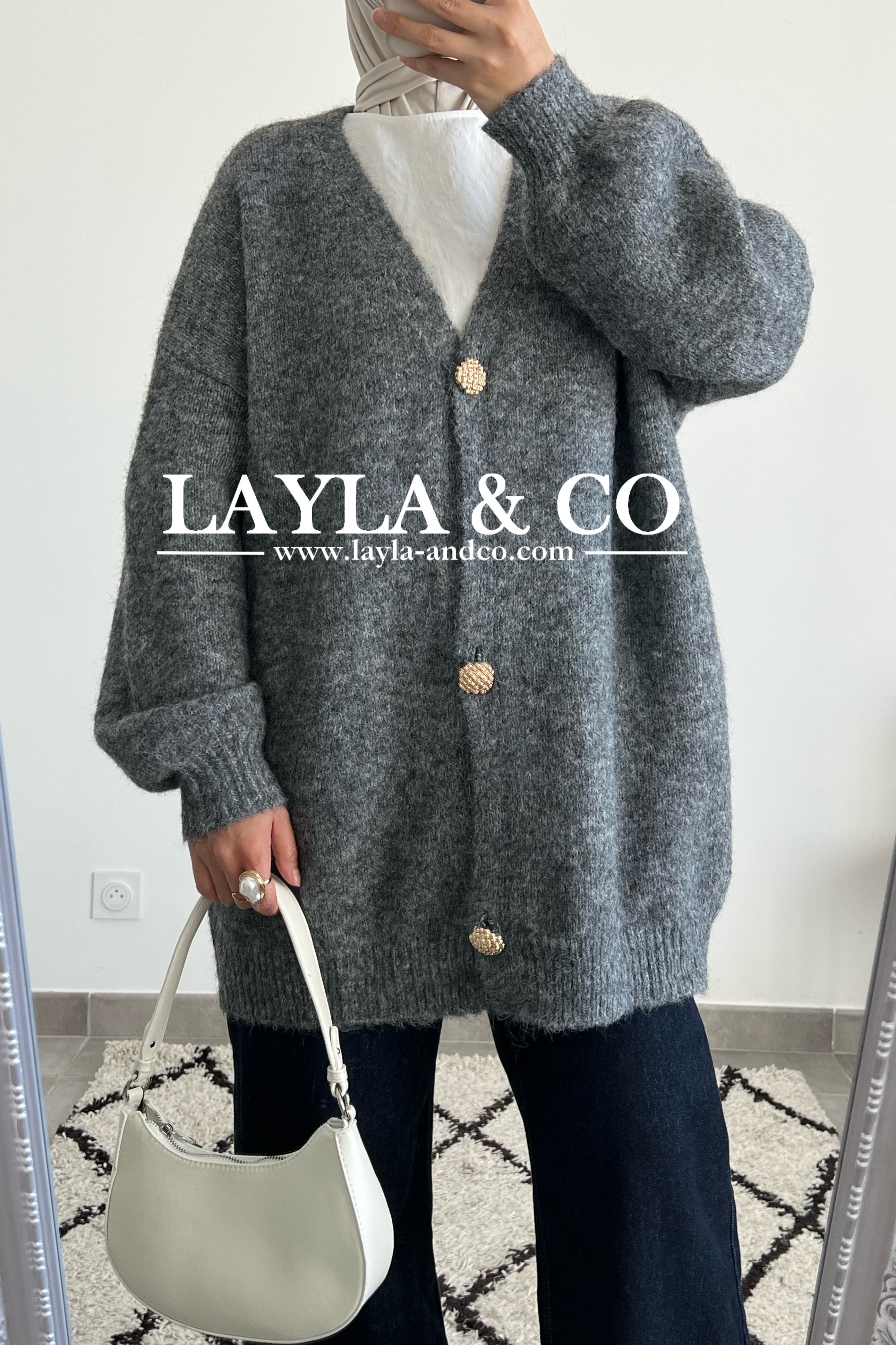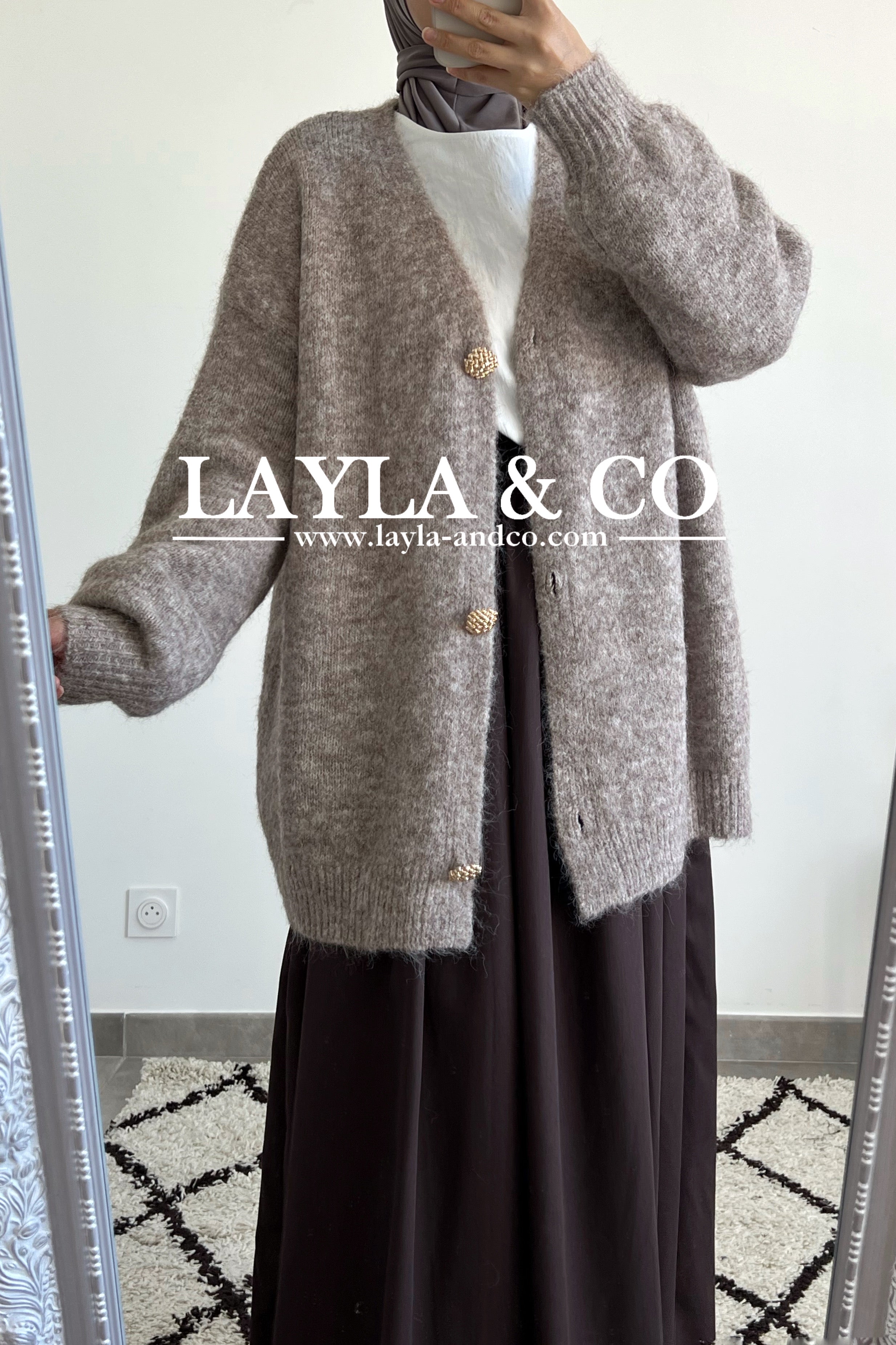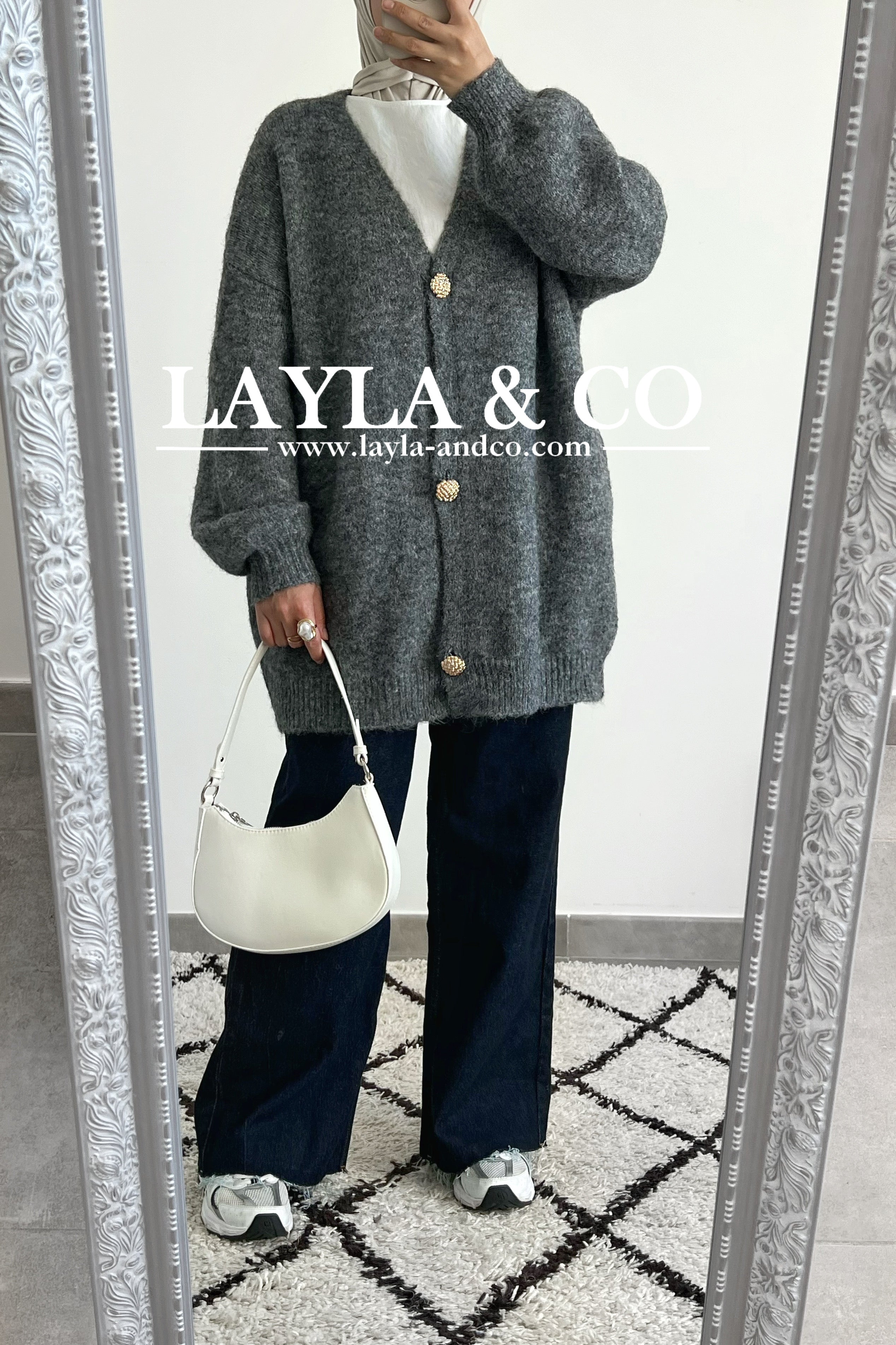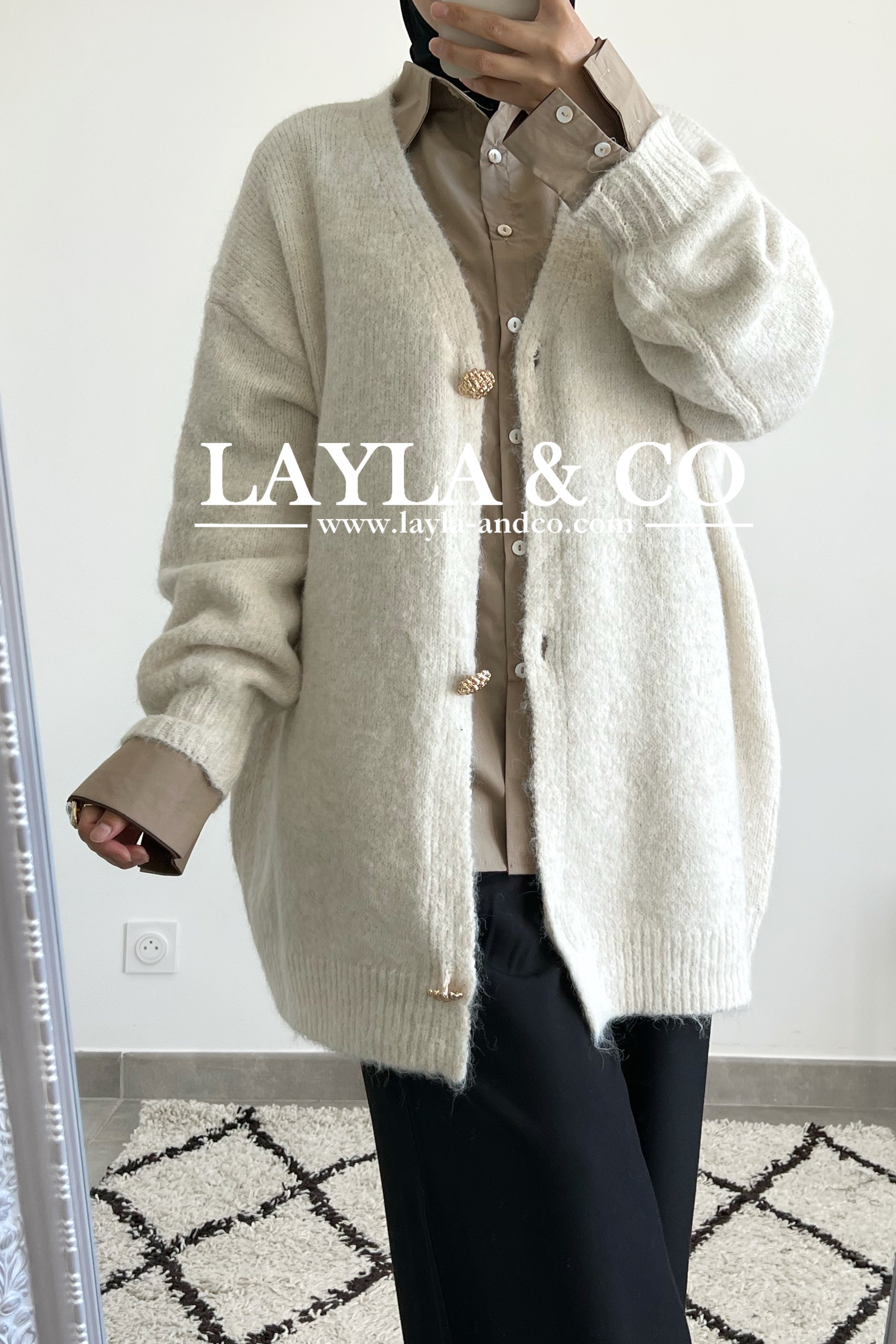 Cardigan avec boutons dorés, maille chaude laine mélangée.