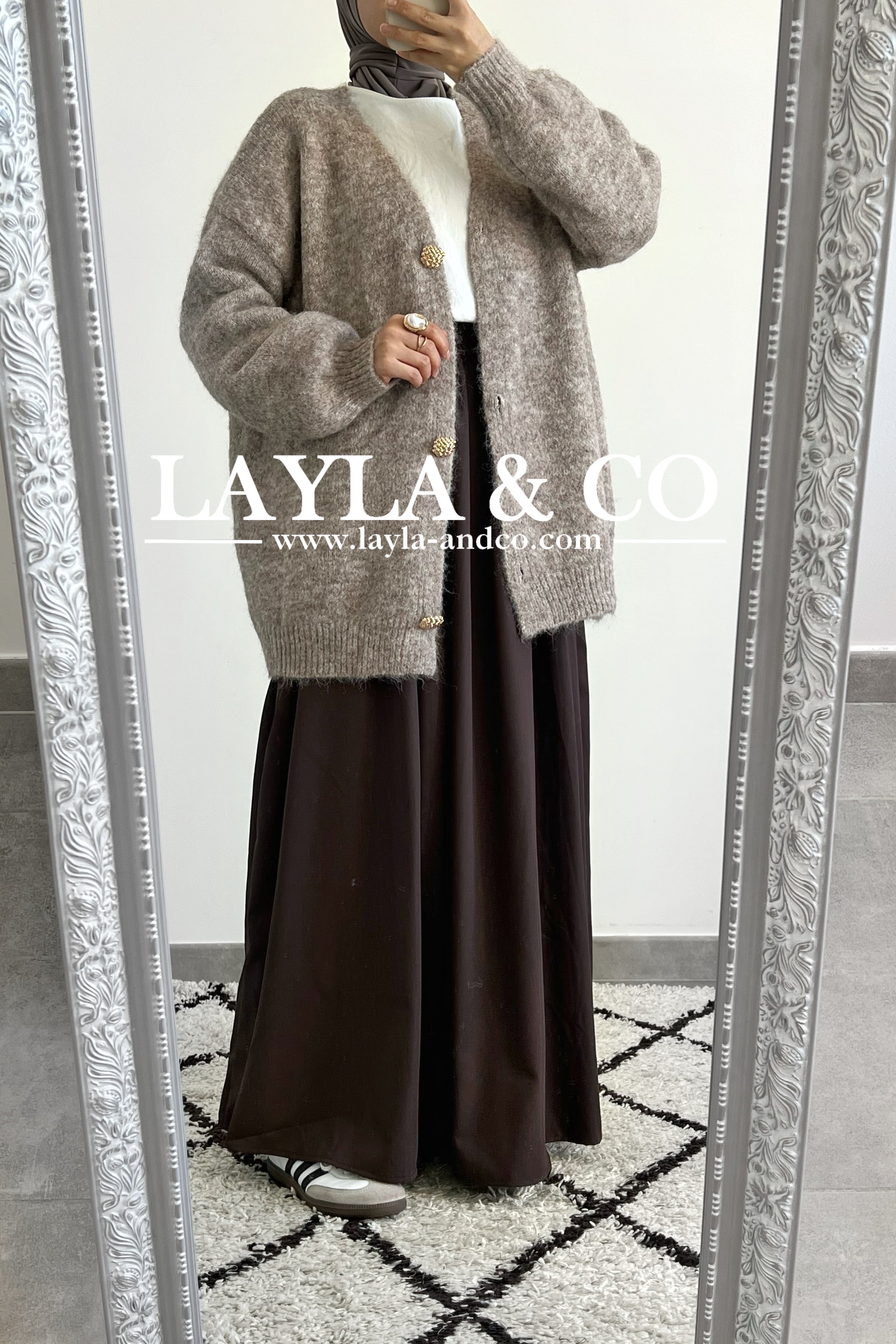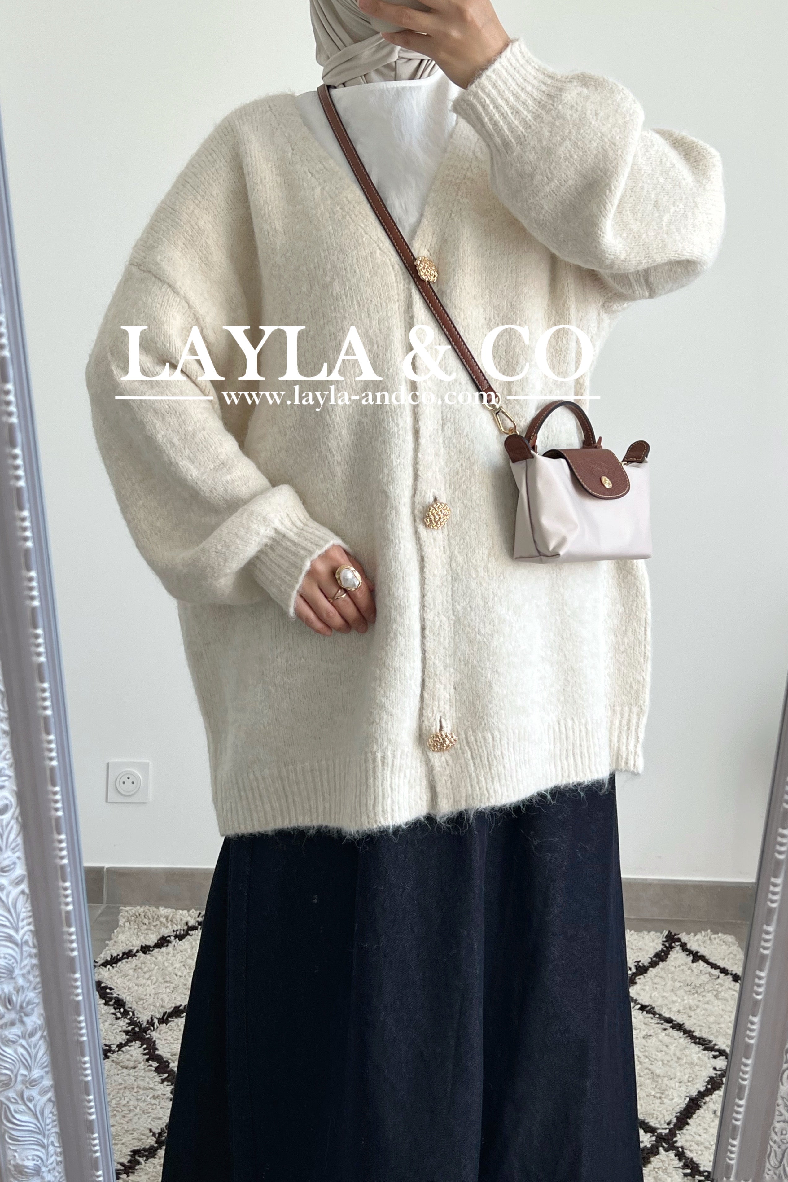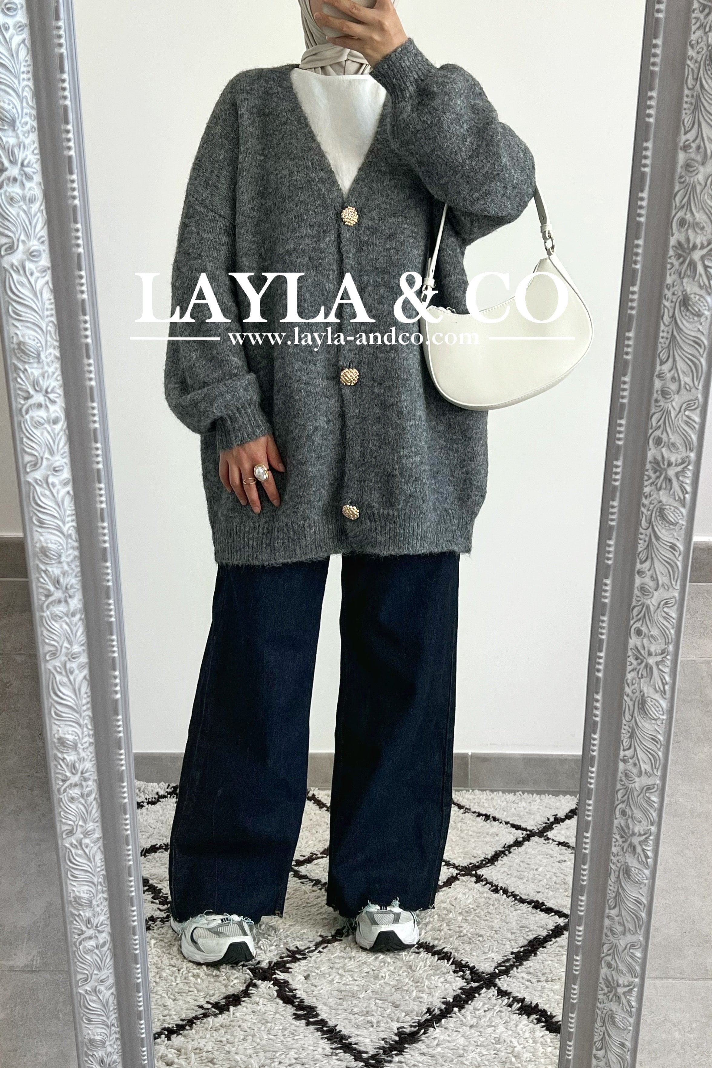 Cardigan avec boutons dorés, maille chaude laine mélangée.
