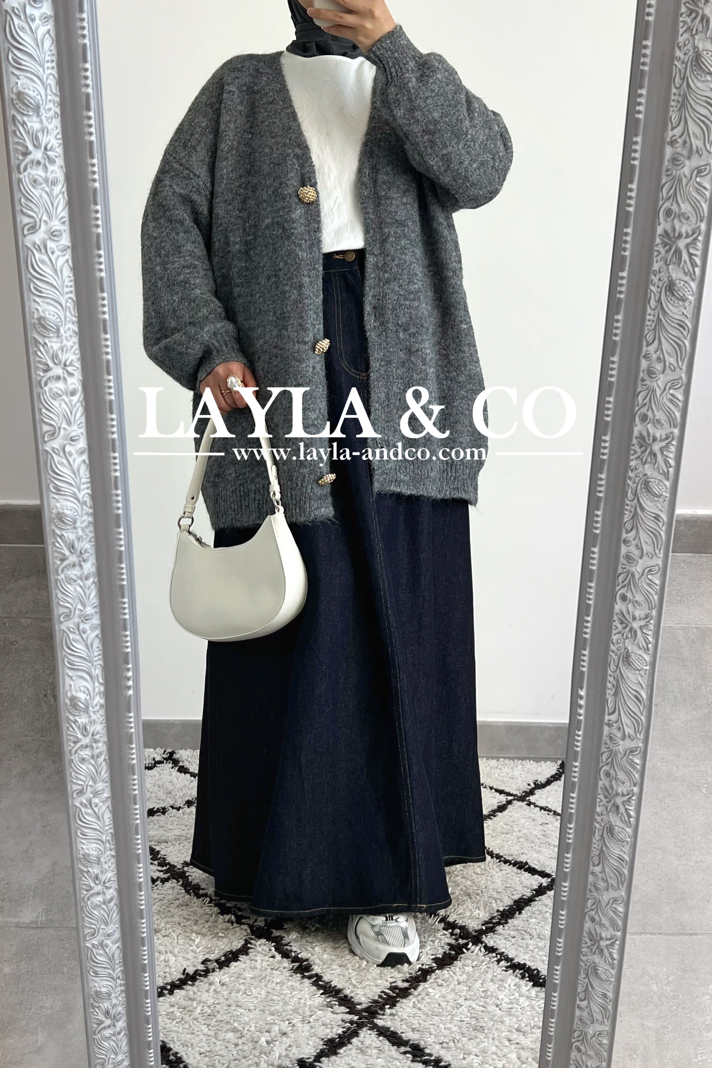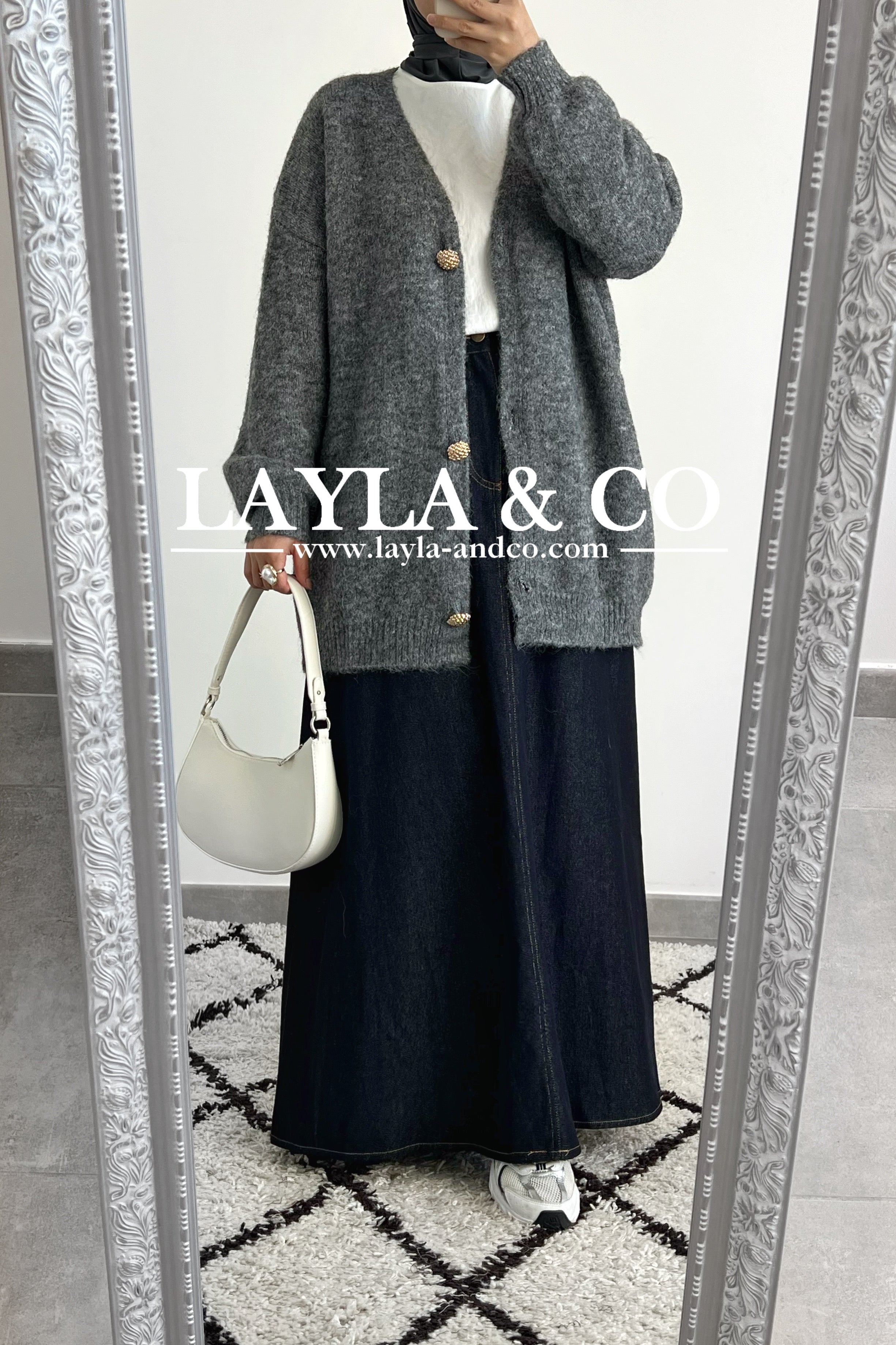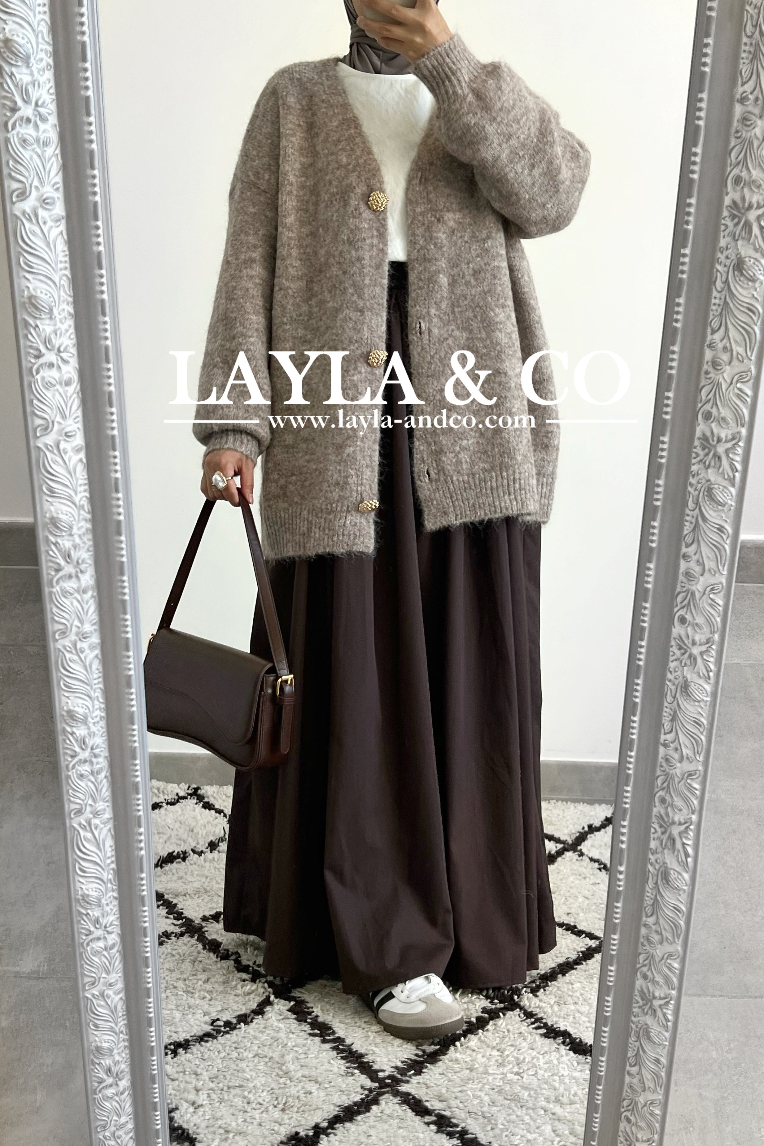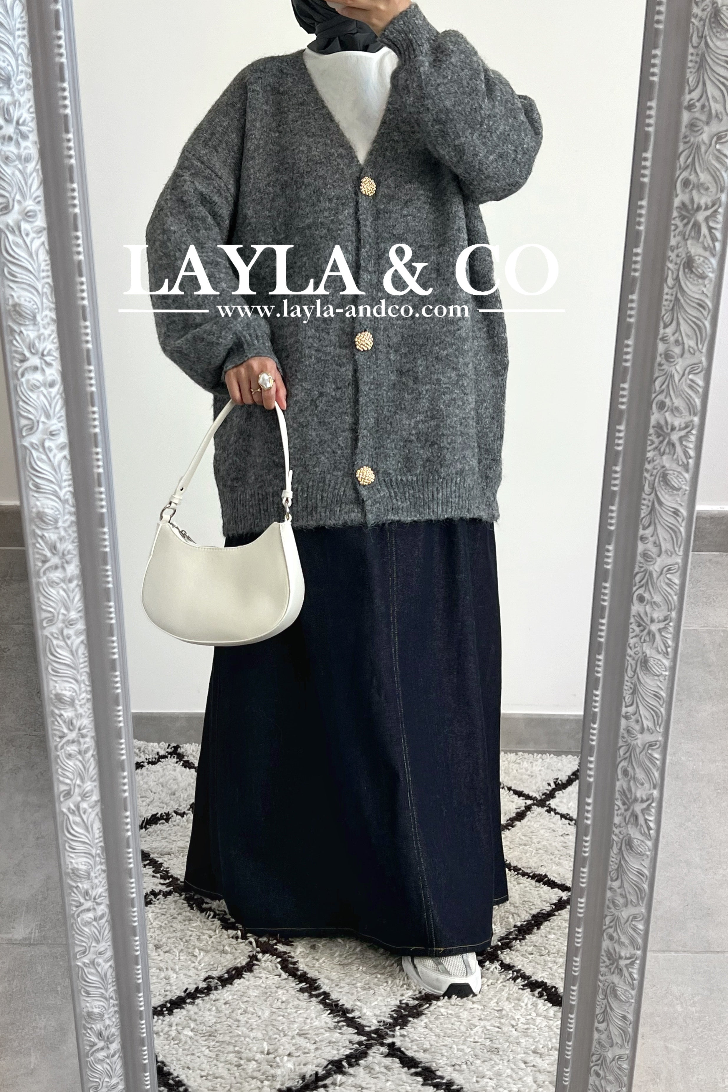 Cardigan avec boutons dorés, maille chaude laine mélangée.