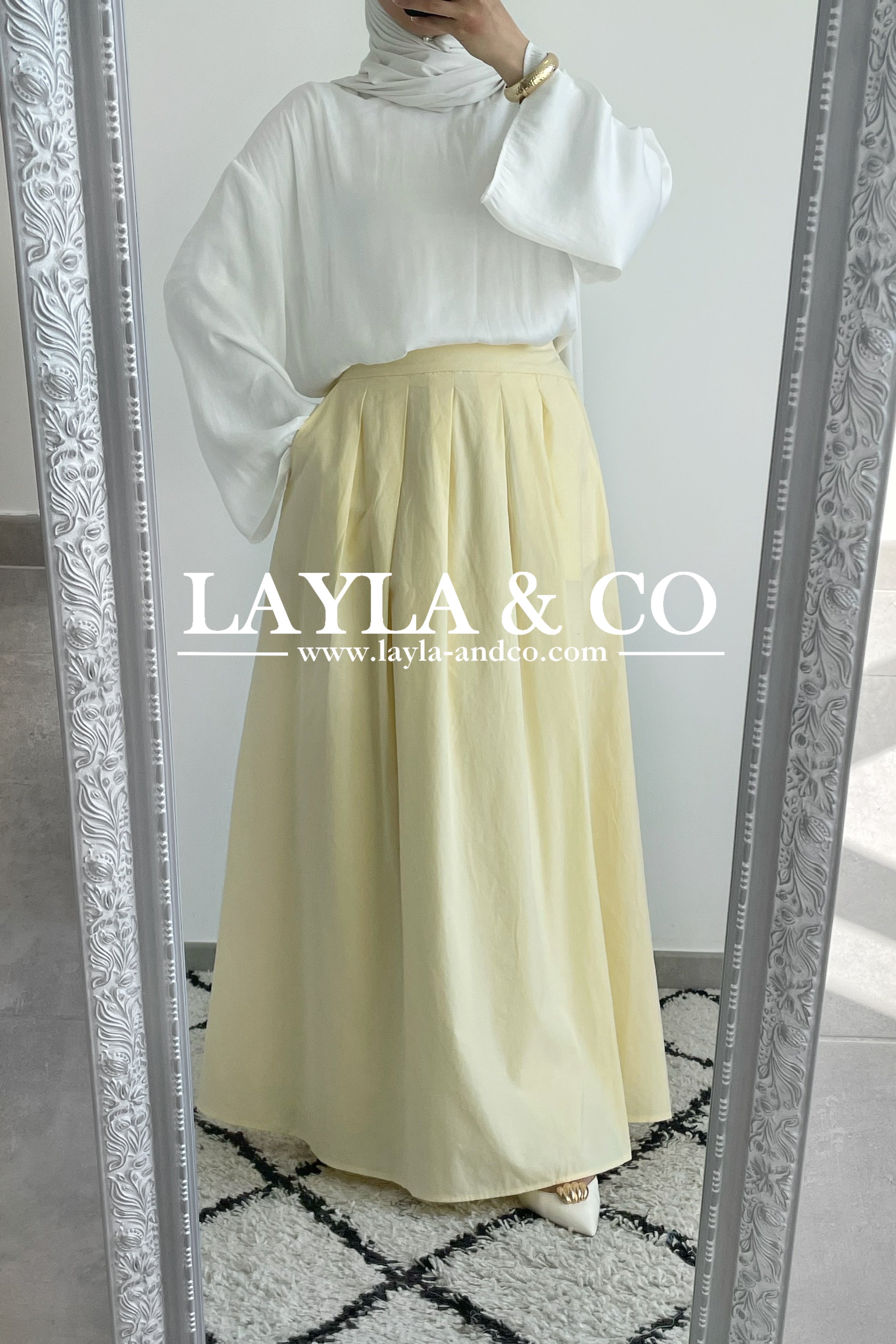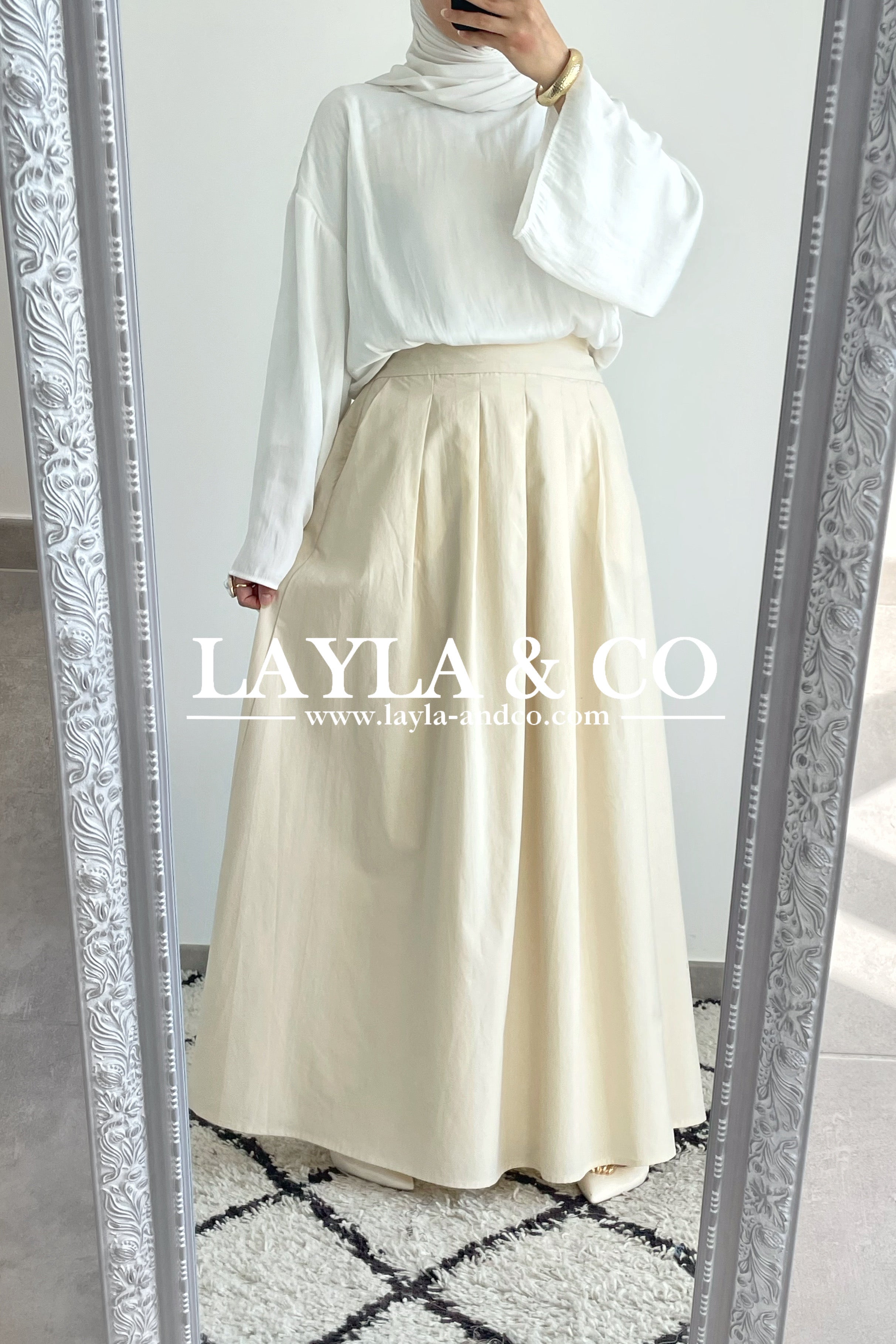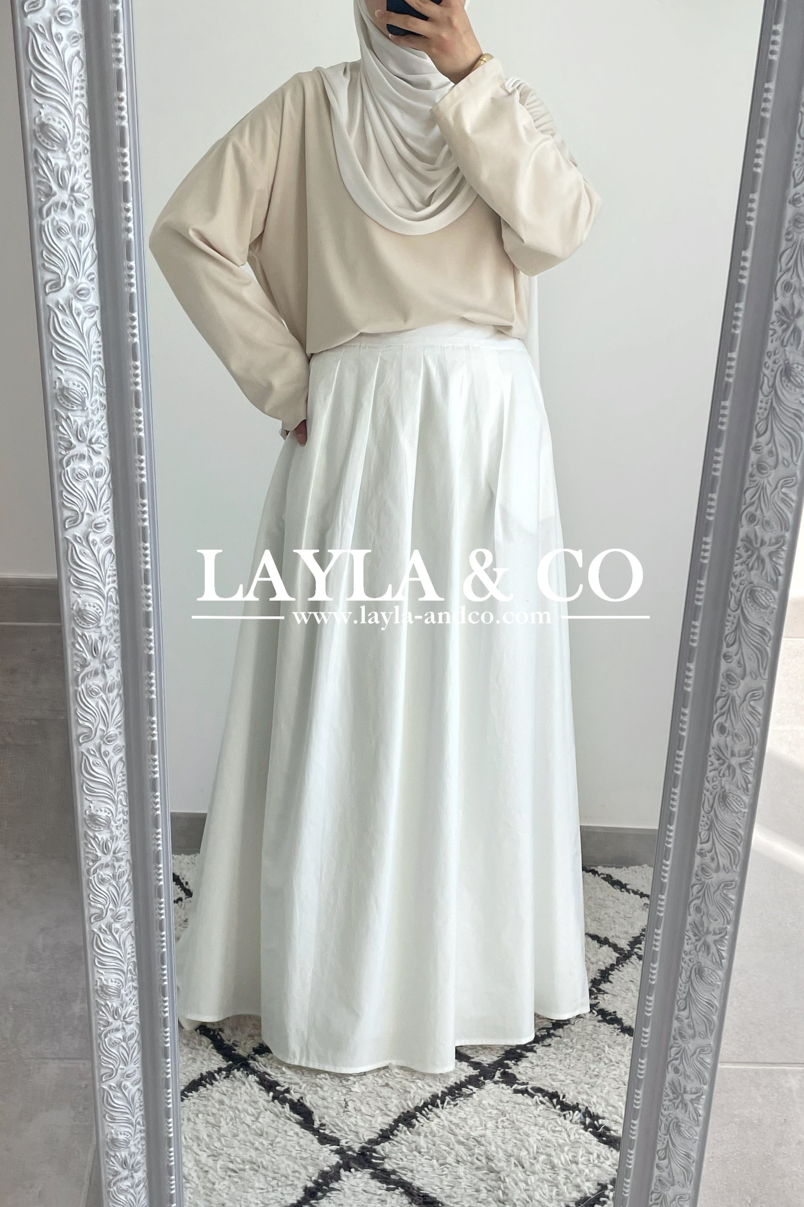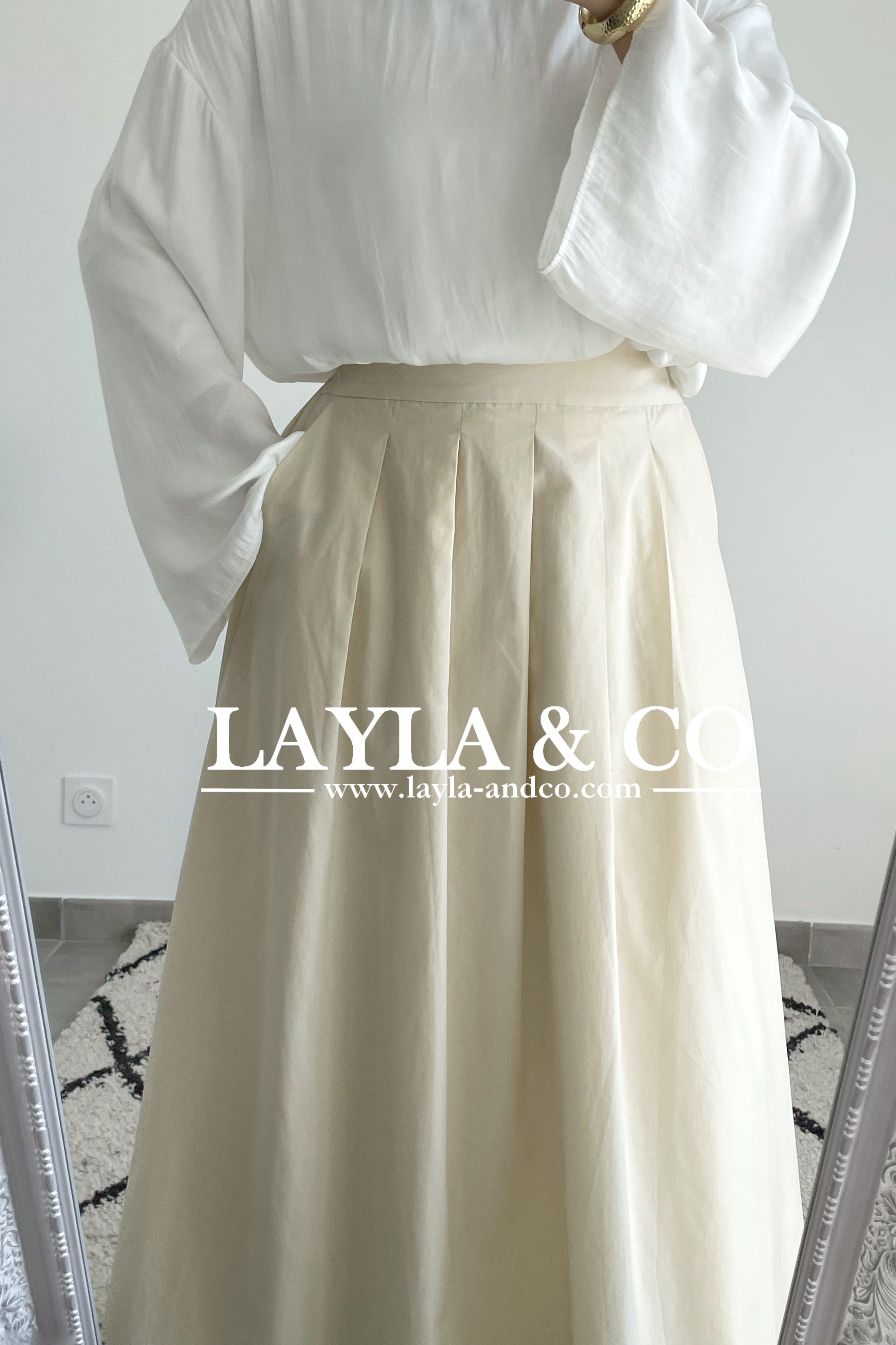 Jupe trapèze avec pôches. La jupe dispose d’un élastique à l’arrière et d’un zip sur le côté. Tissu 50% tencel 50% coton. Cette jupe est entièrement doublée et est idéale pour l’été.