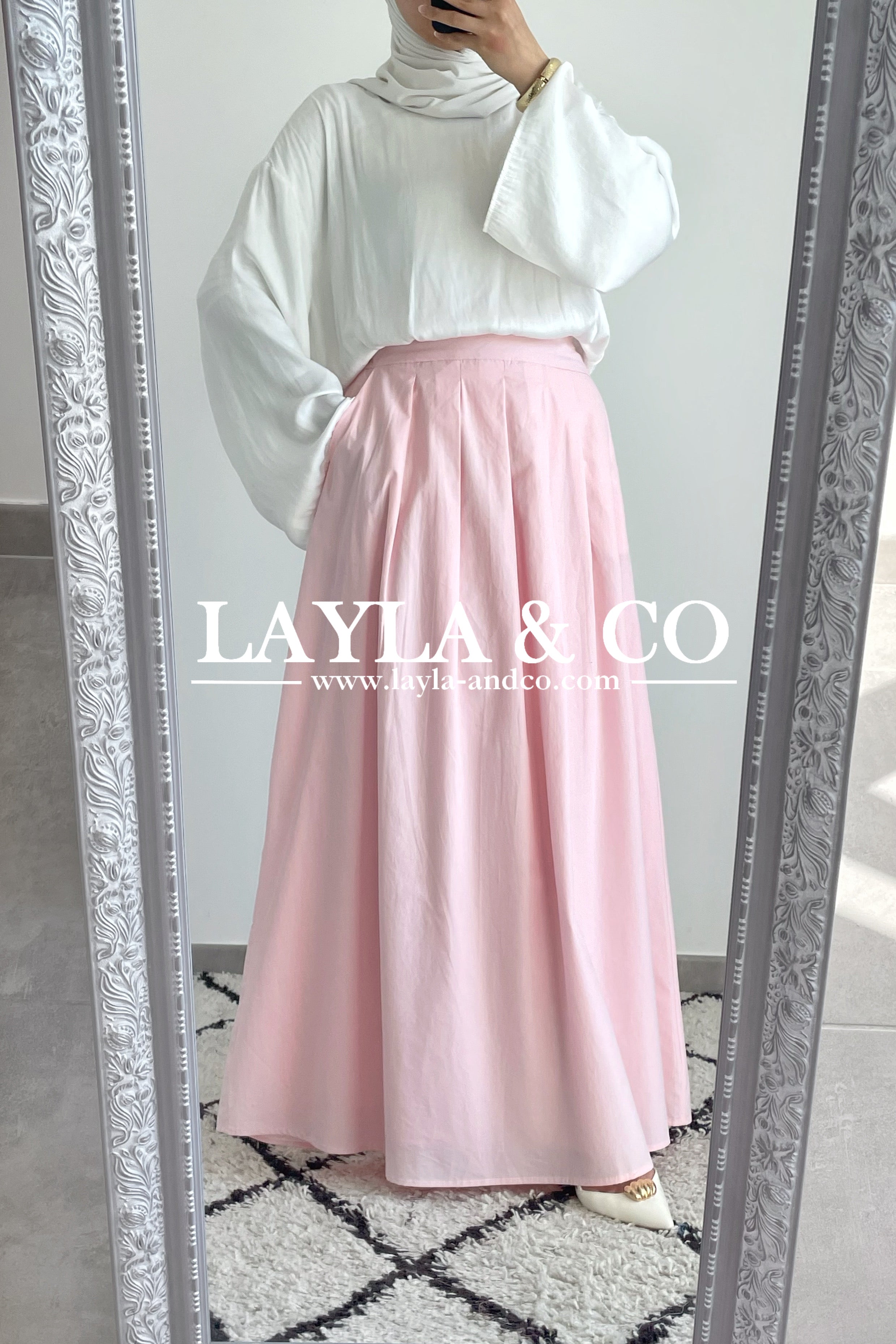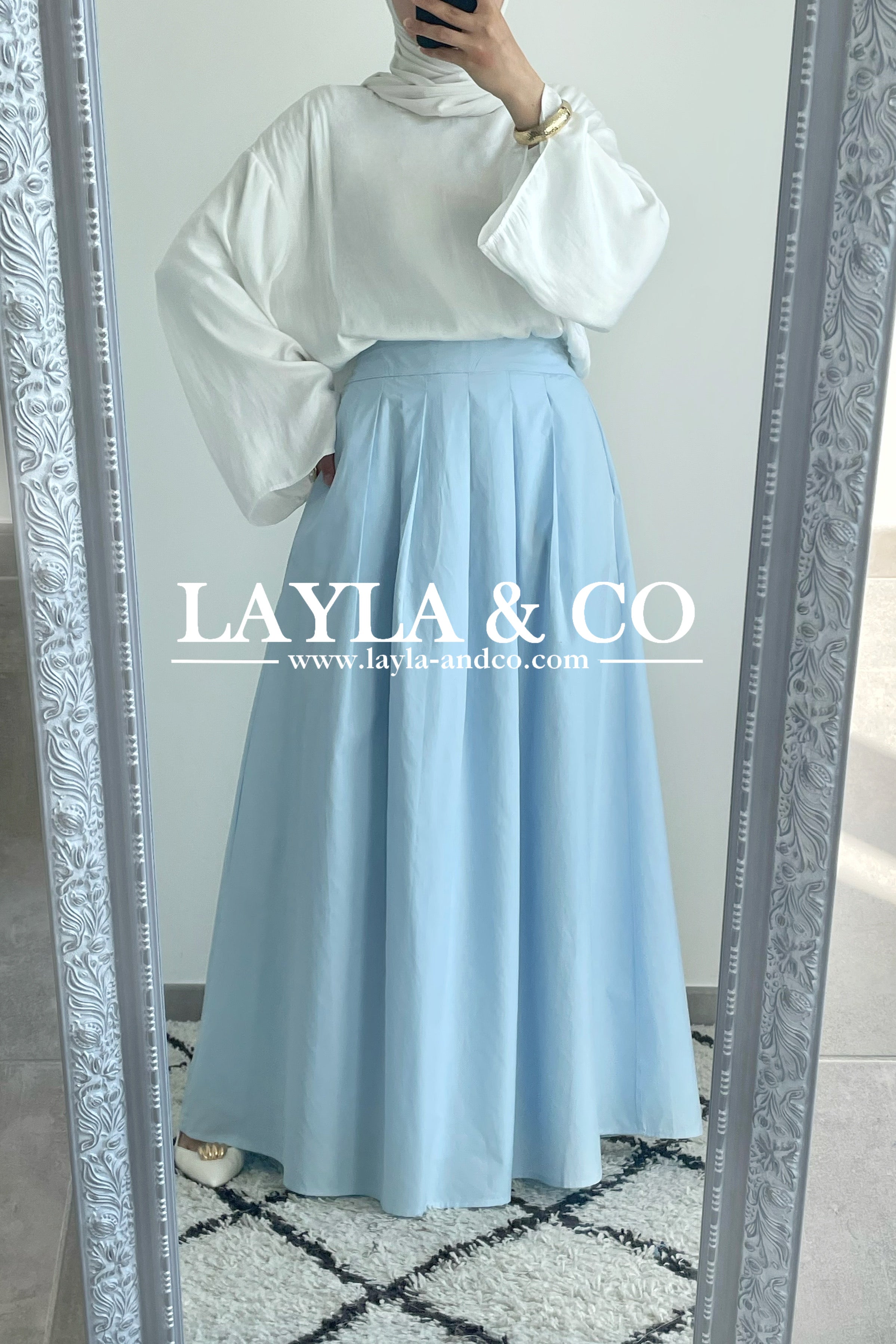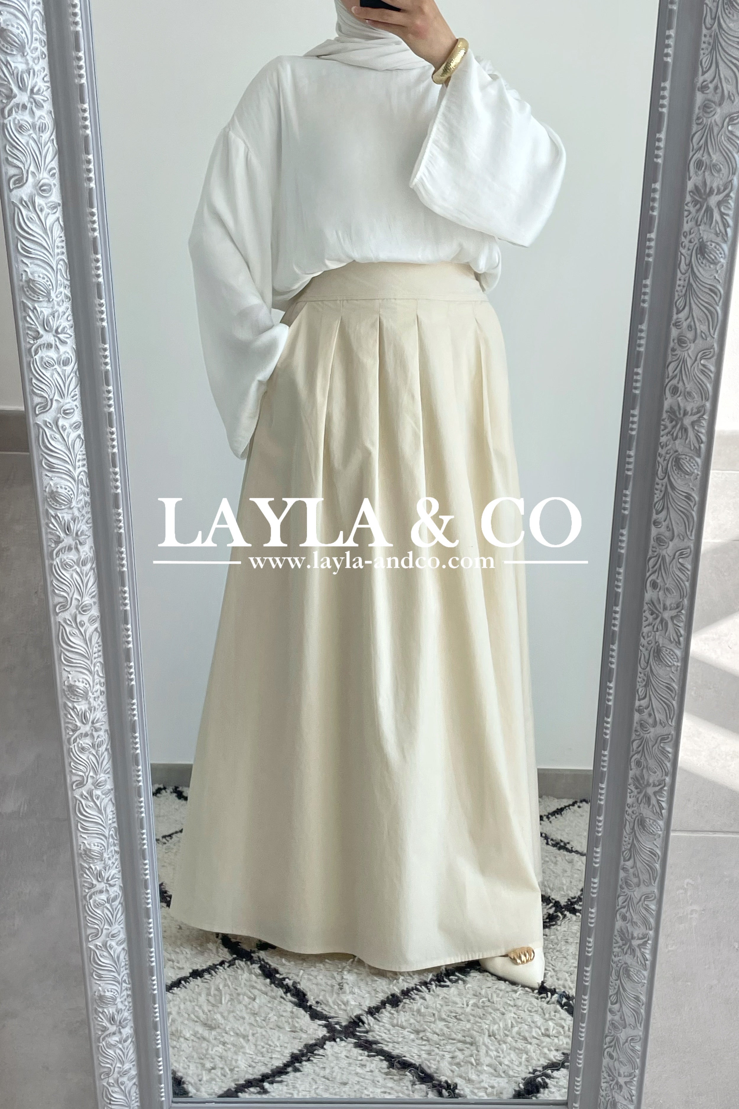 Jupe trapèze avec pôches. La jupe dispose d’un élastique à l’arrière et d’un zip sur le côté. Tissu 50% tencel 50% coton. Cette jupe est entièrement doublée et est idéale pour l’été.