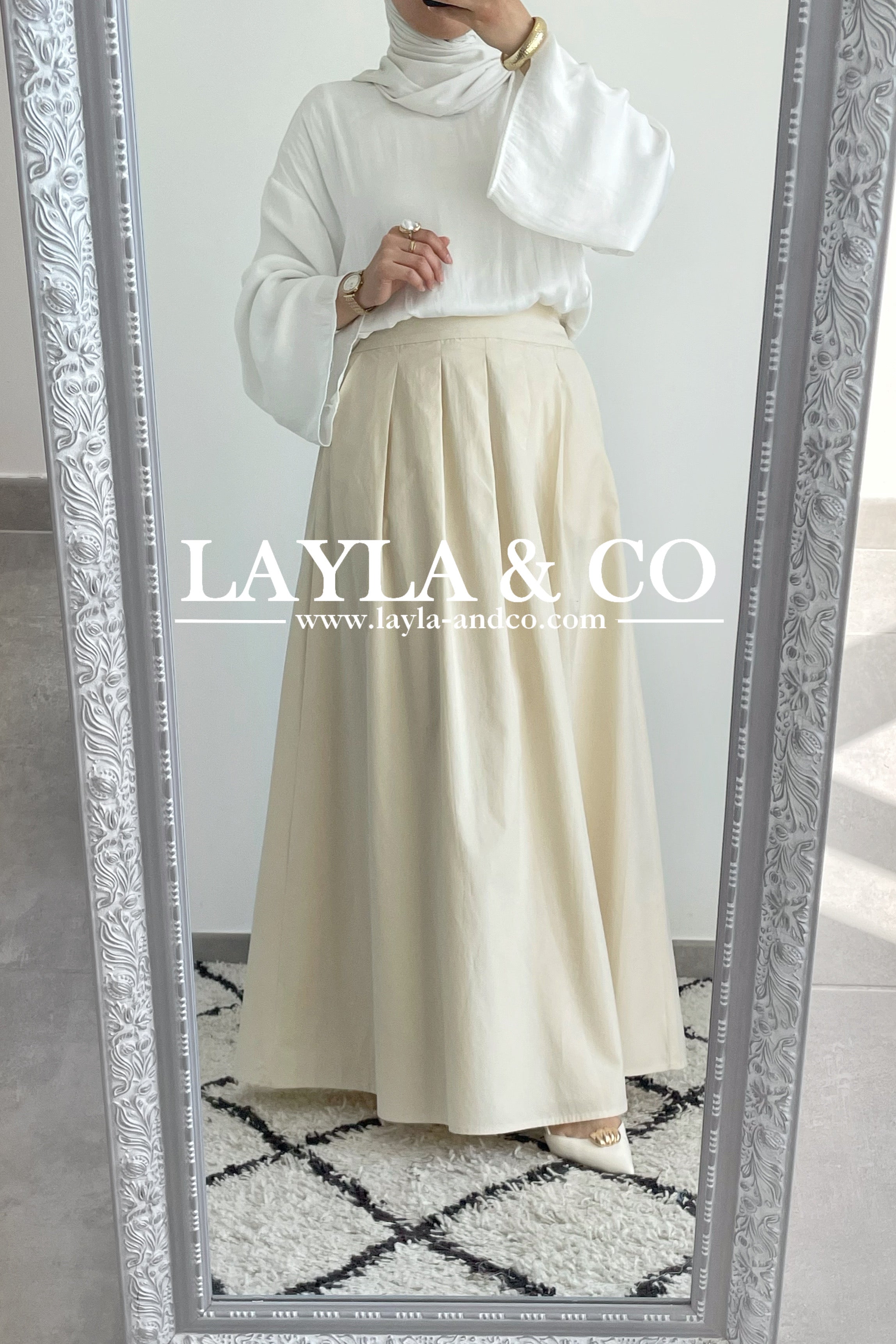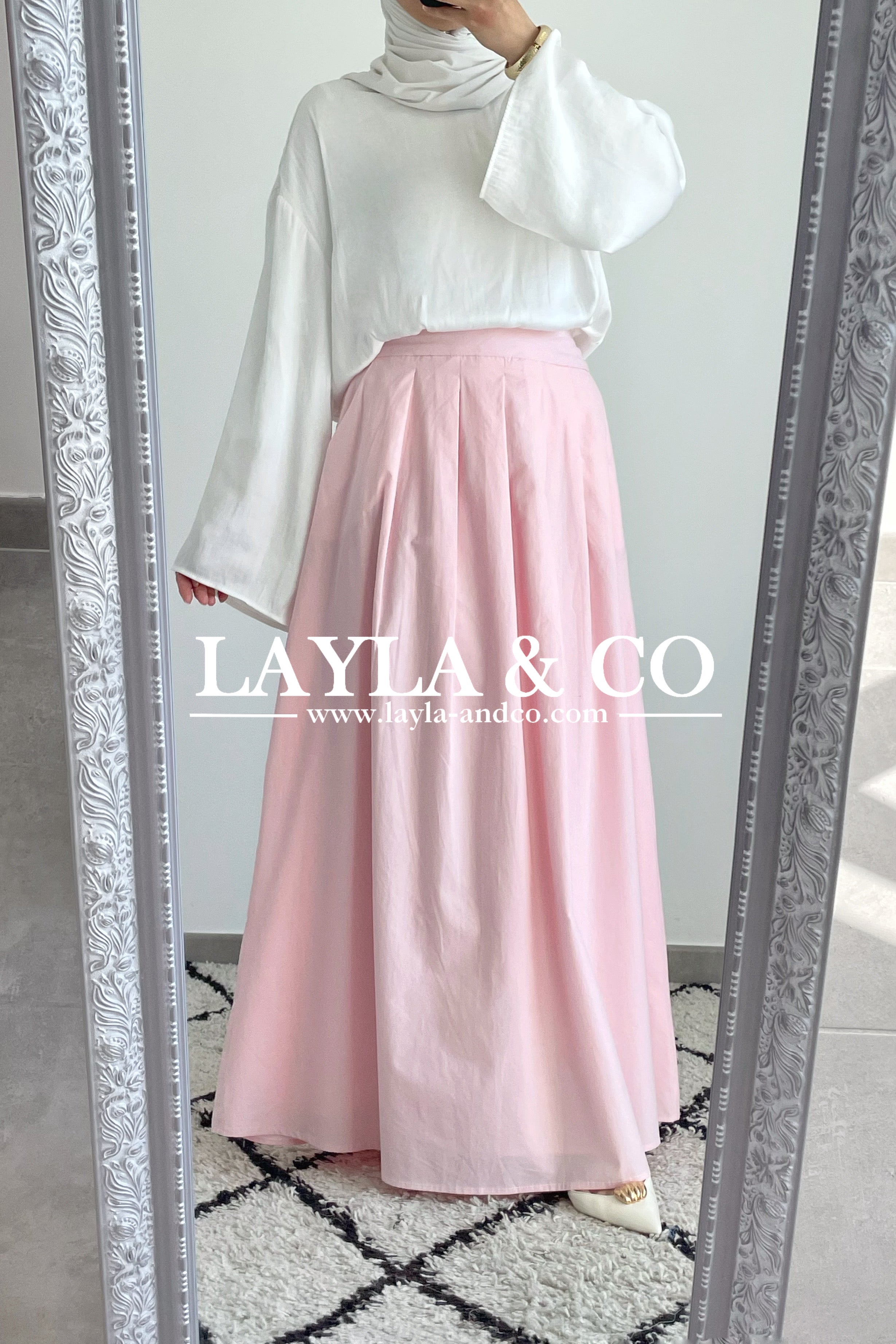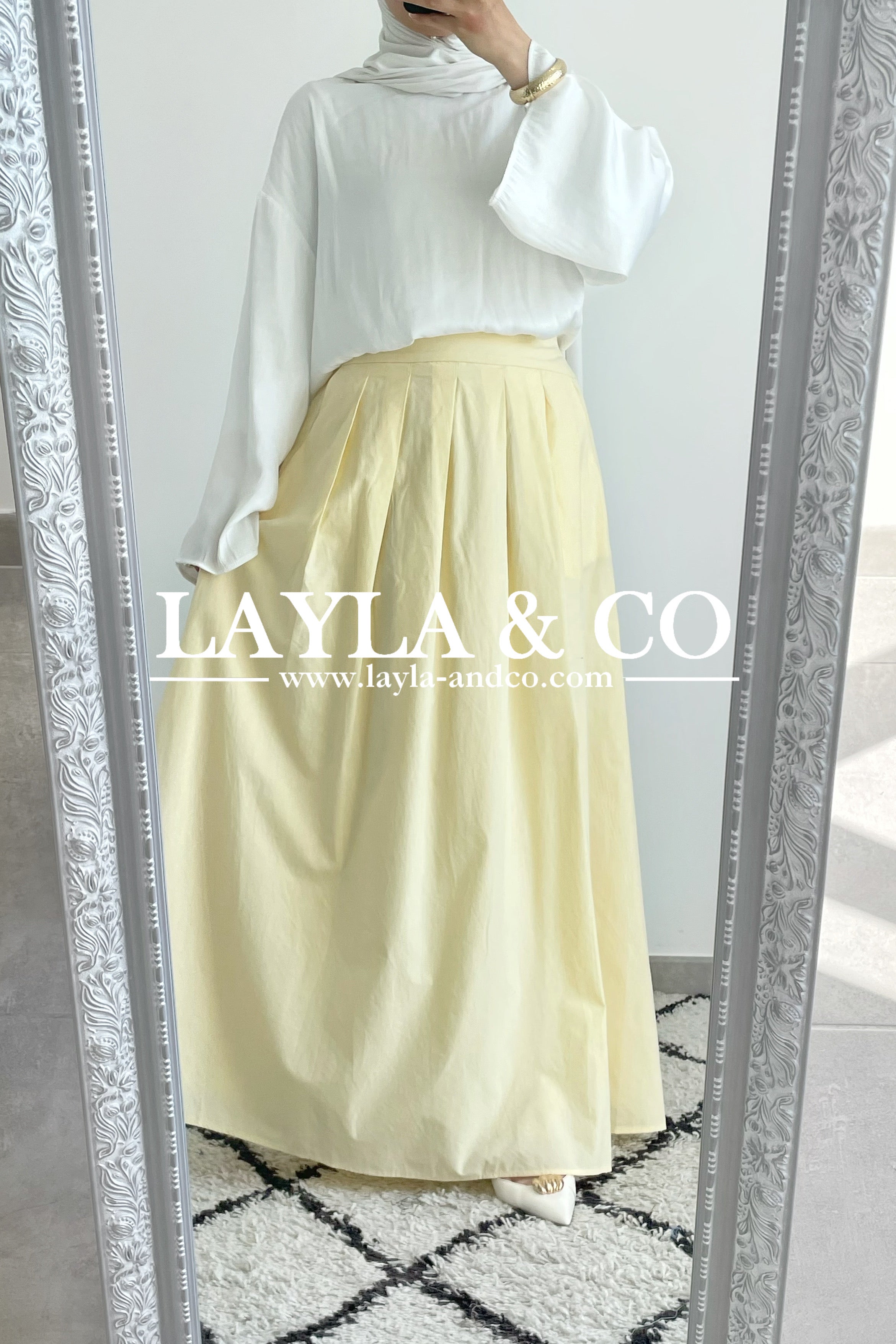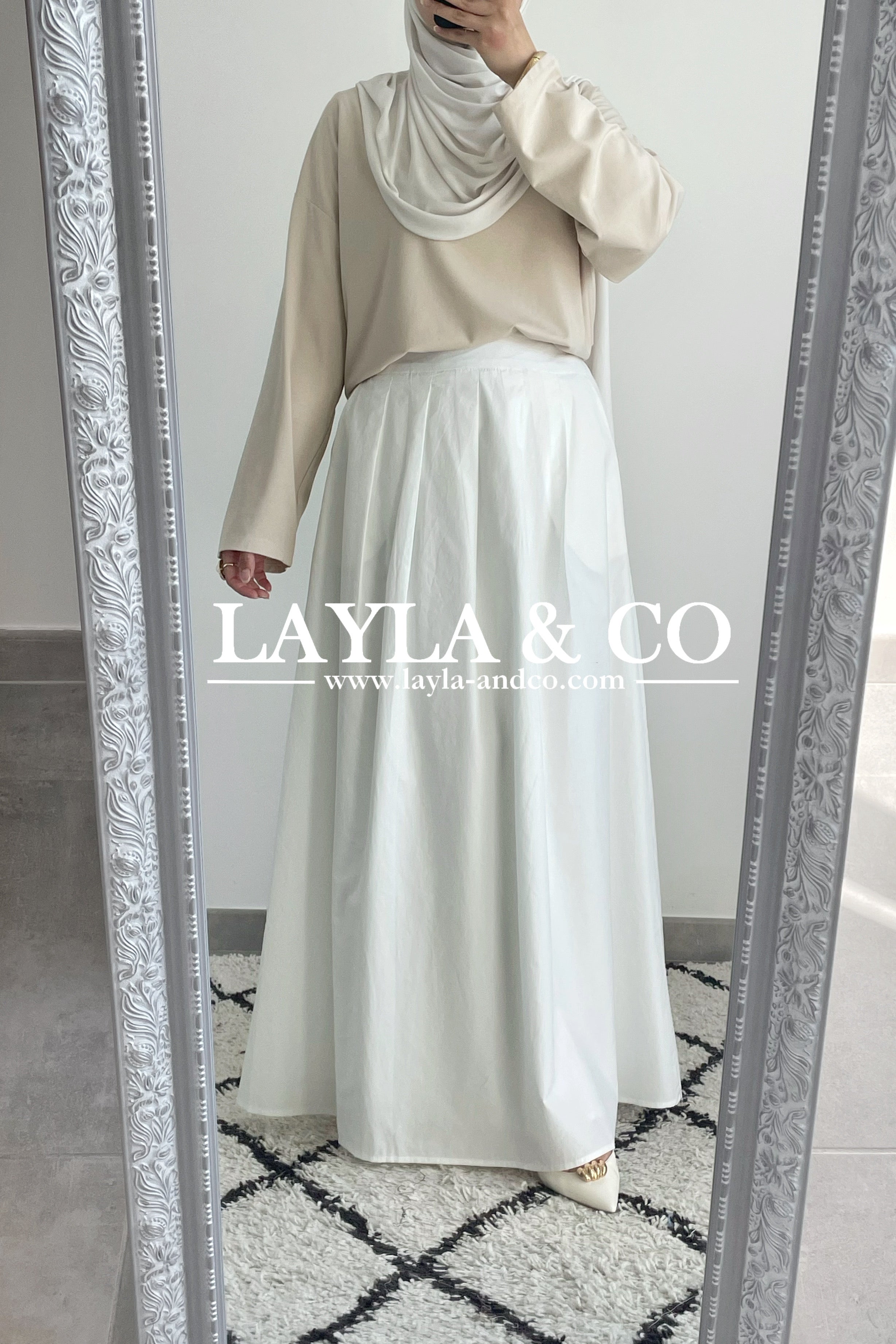 Jupe trapèze avec pôches. La jupe dispose d’un élastique à l’arrière et d’un zip sur le côté. Tissu 50% tencel 50% coton. Cette jupe est entièrement doublée et est idéale pour l’été.