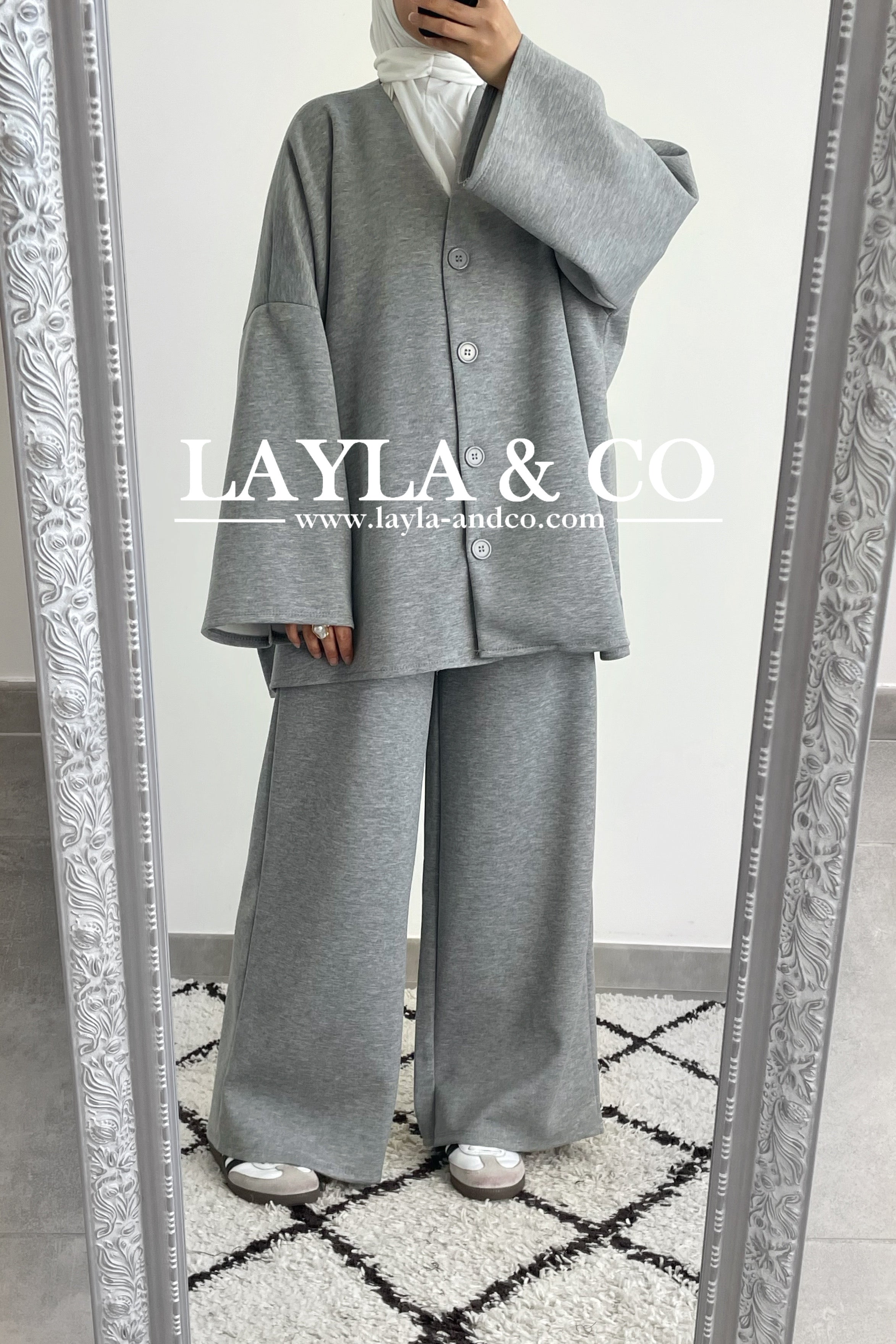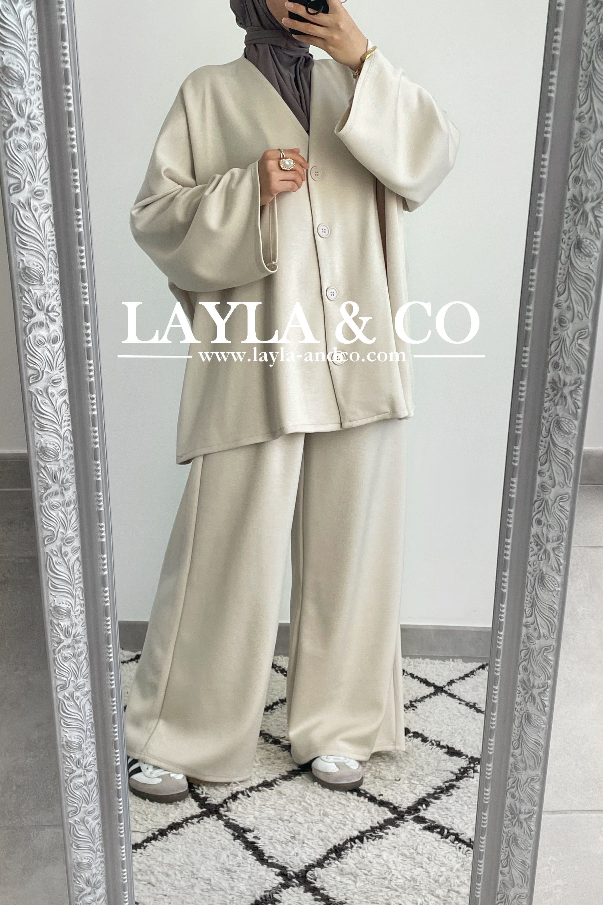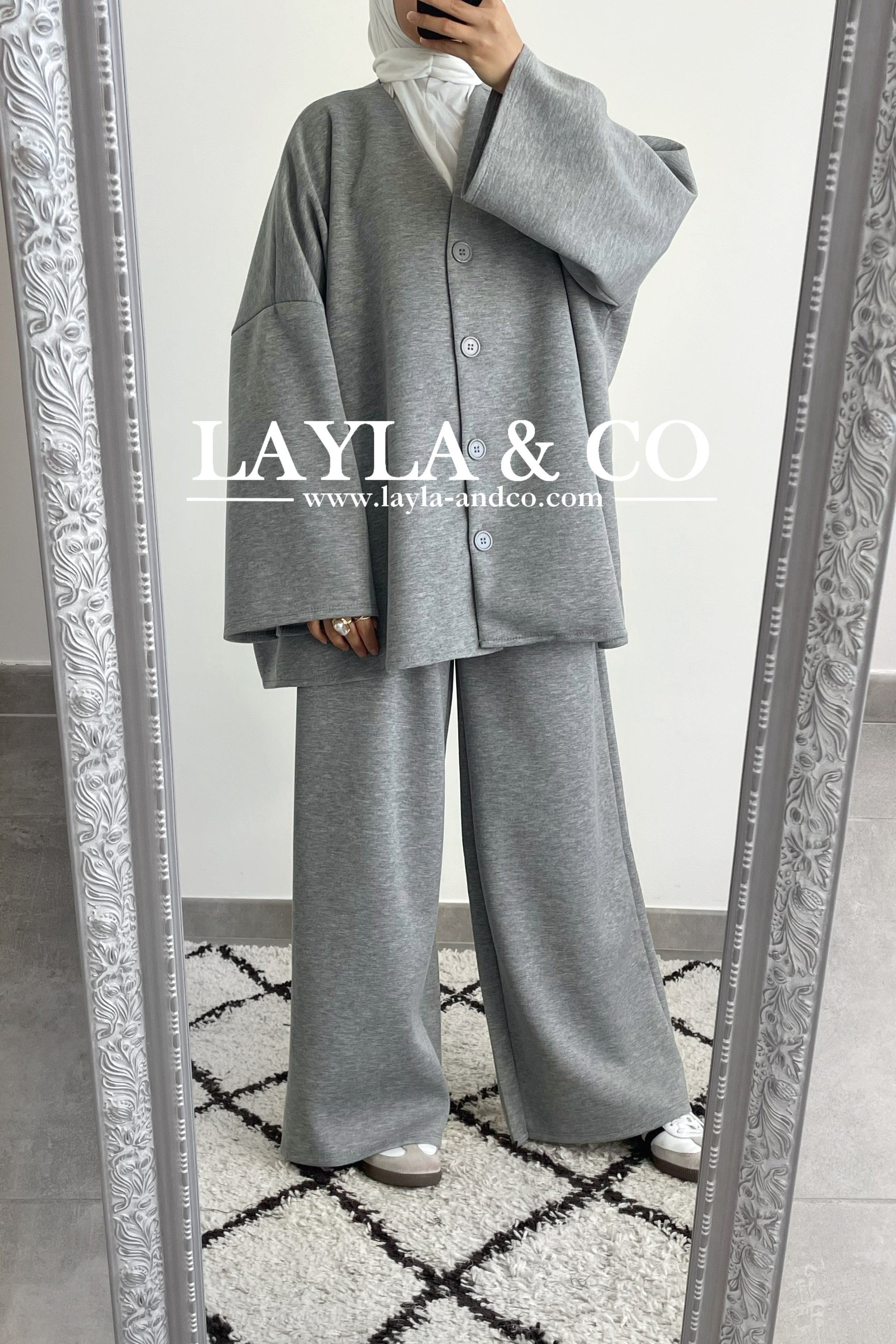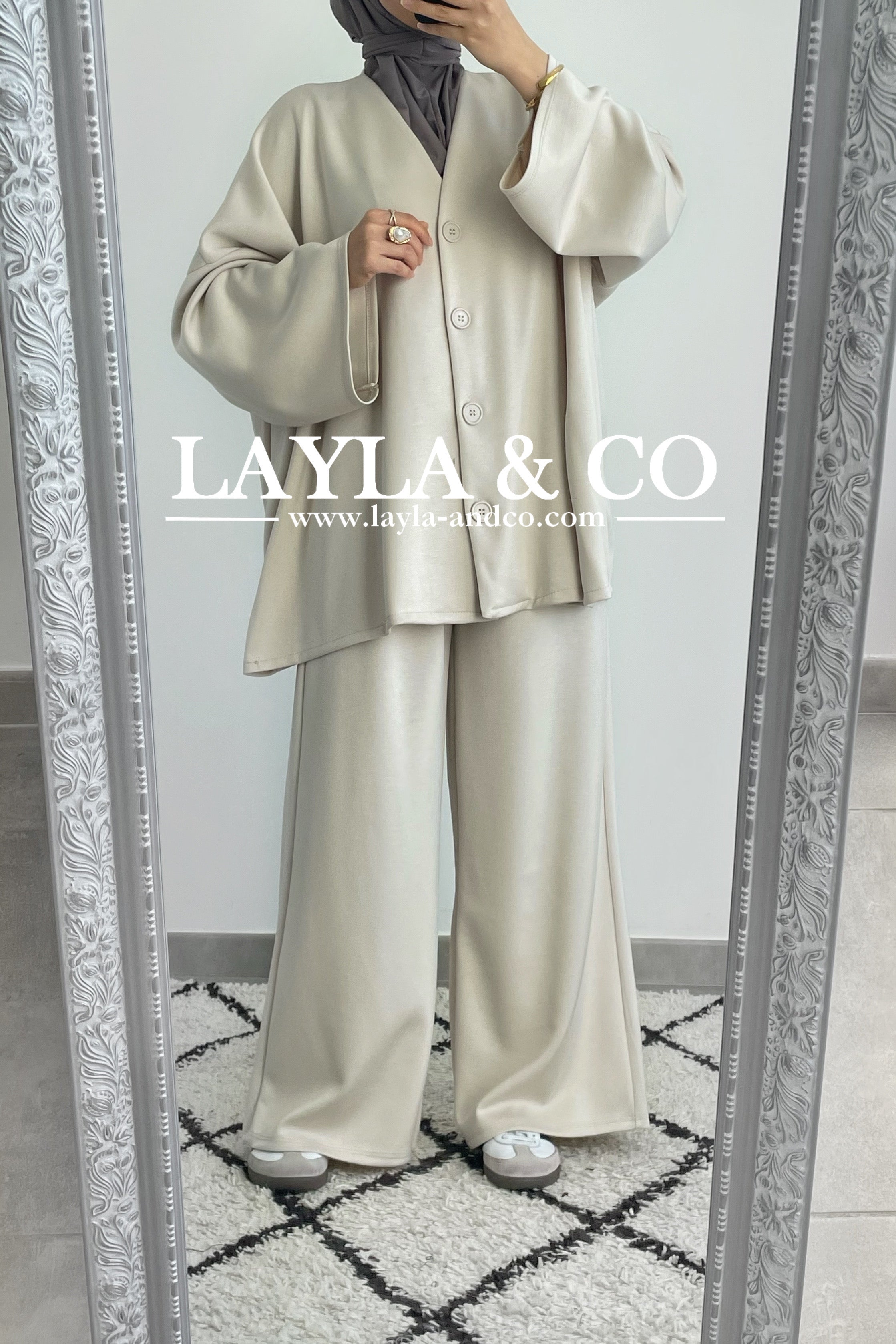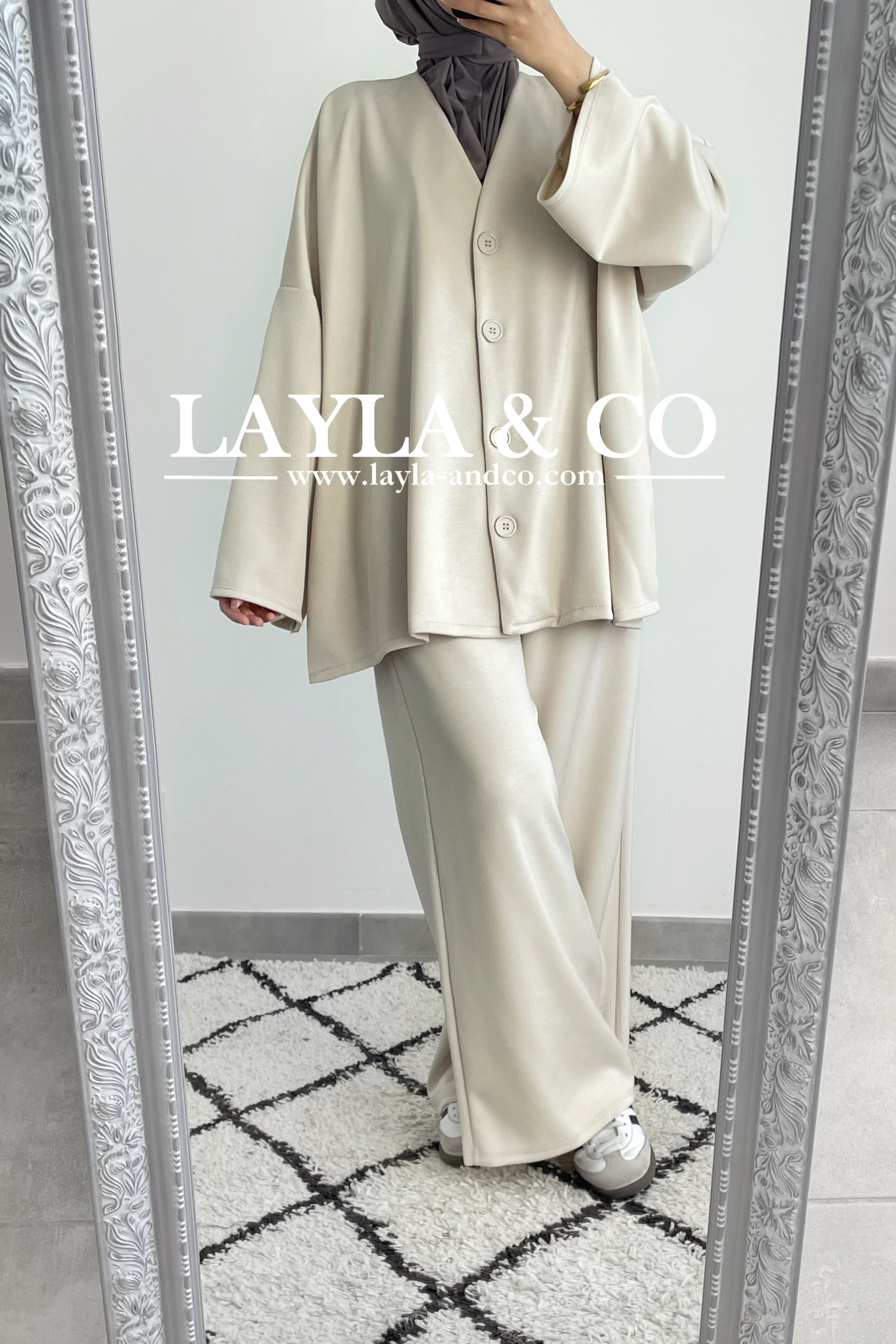 Ensemble 2 pièces composé d’un gilet oversize et d’un pantalon élastique à la taille avec poches.