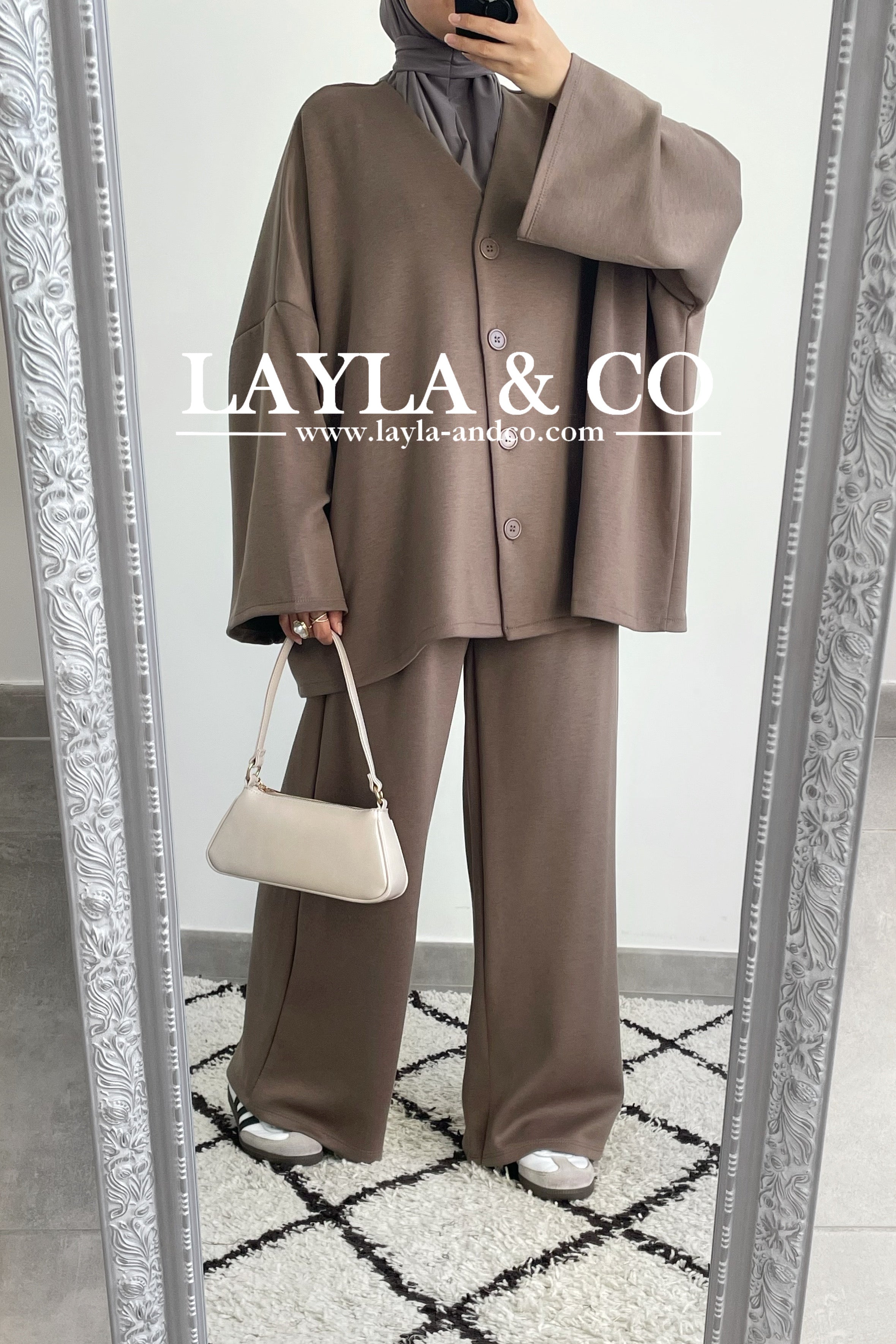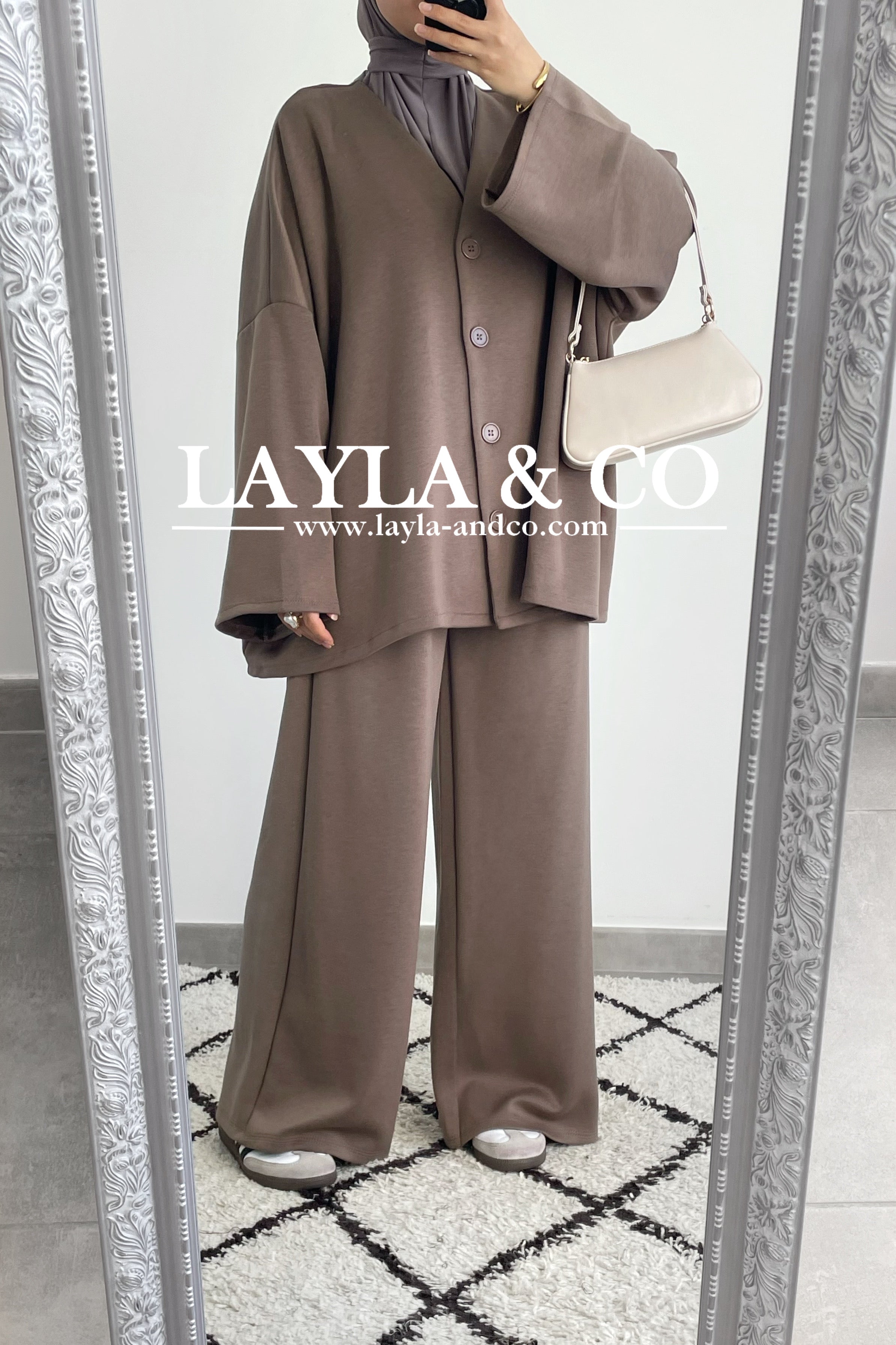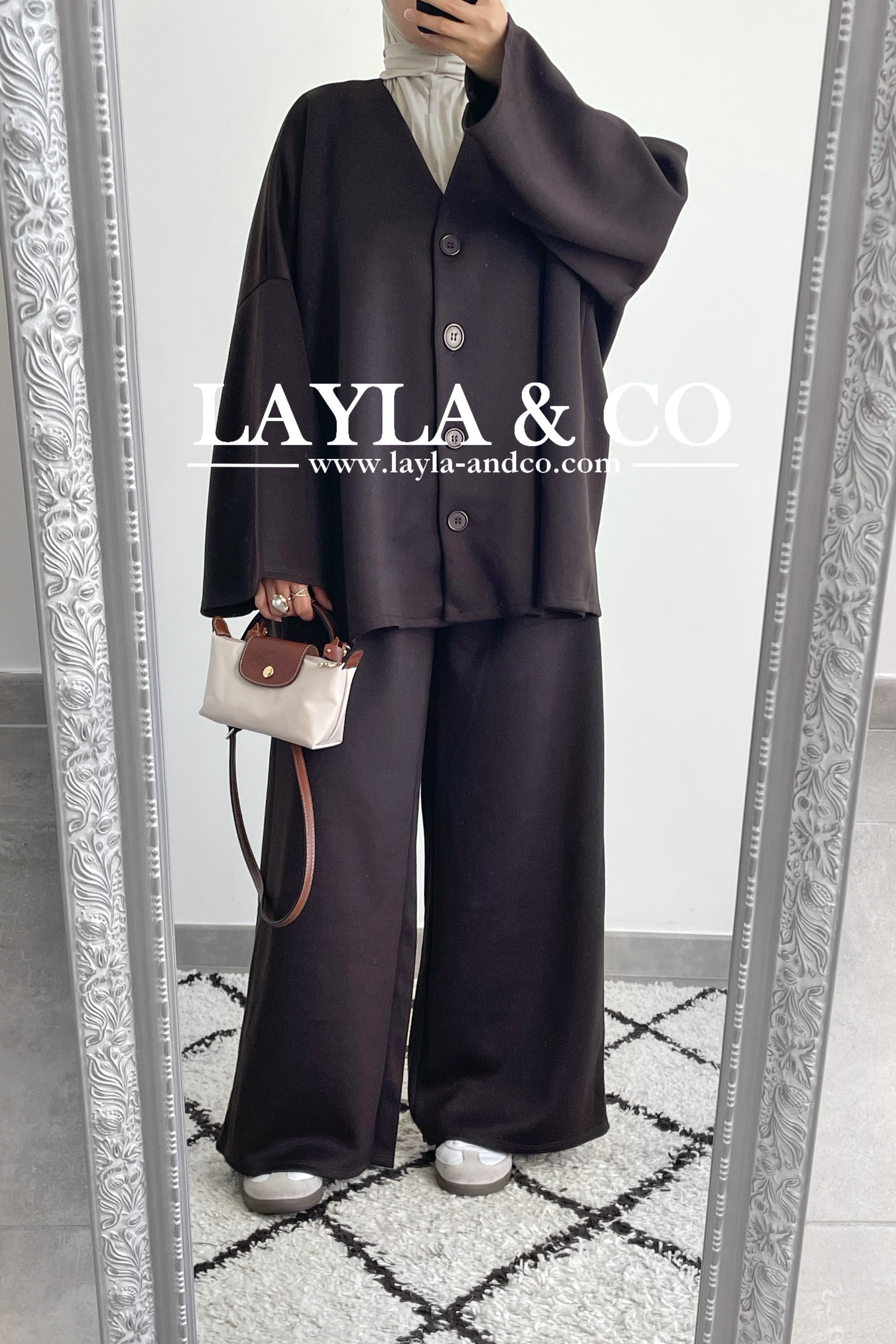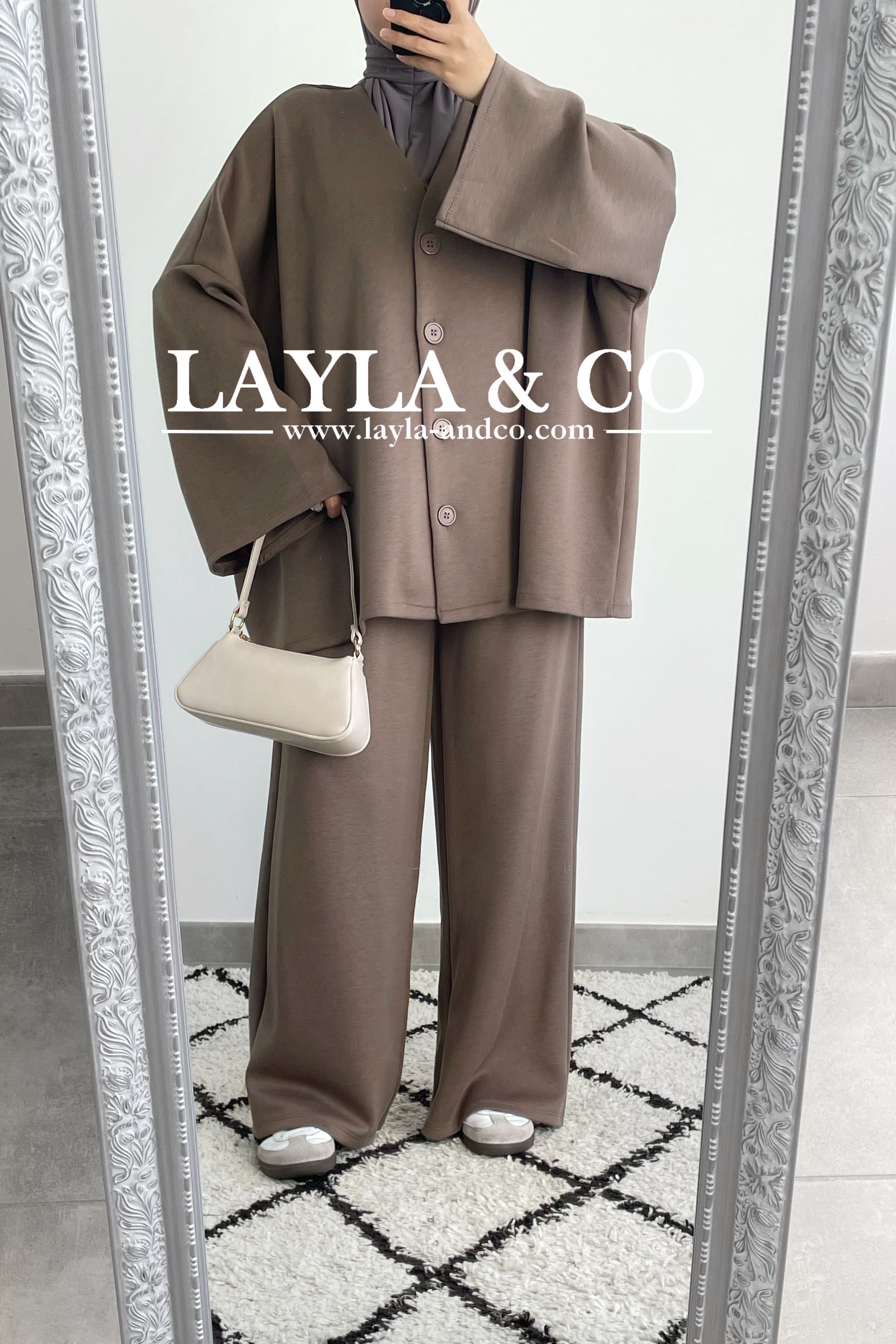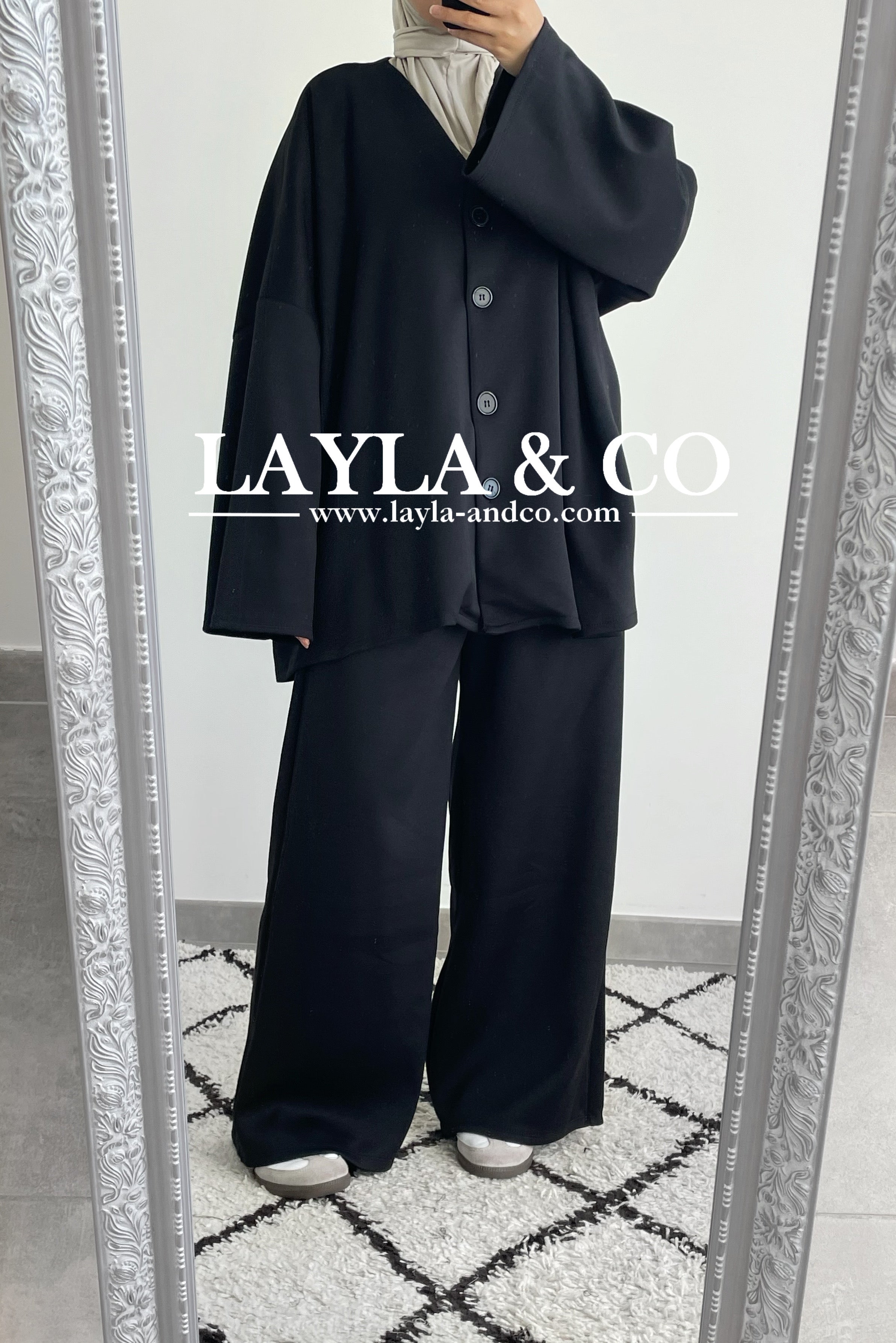 Ensemble 2 pièces composé d’un gilet oversize et d’un pantalon élastique à la taille avec poches.
