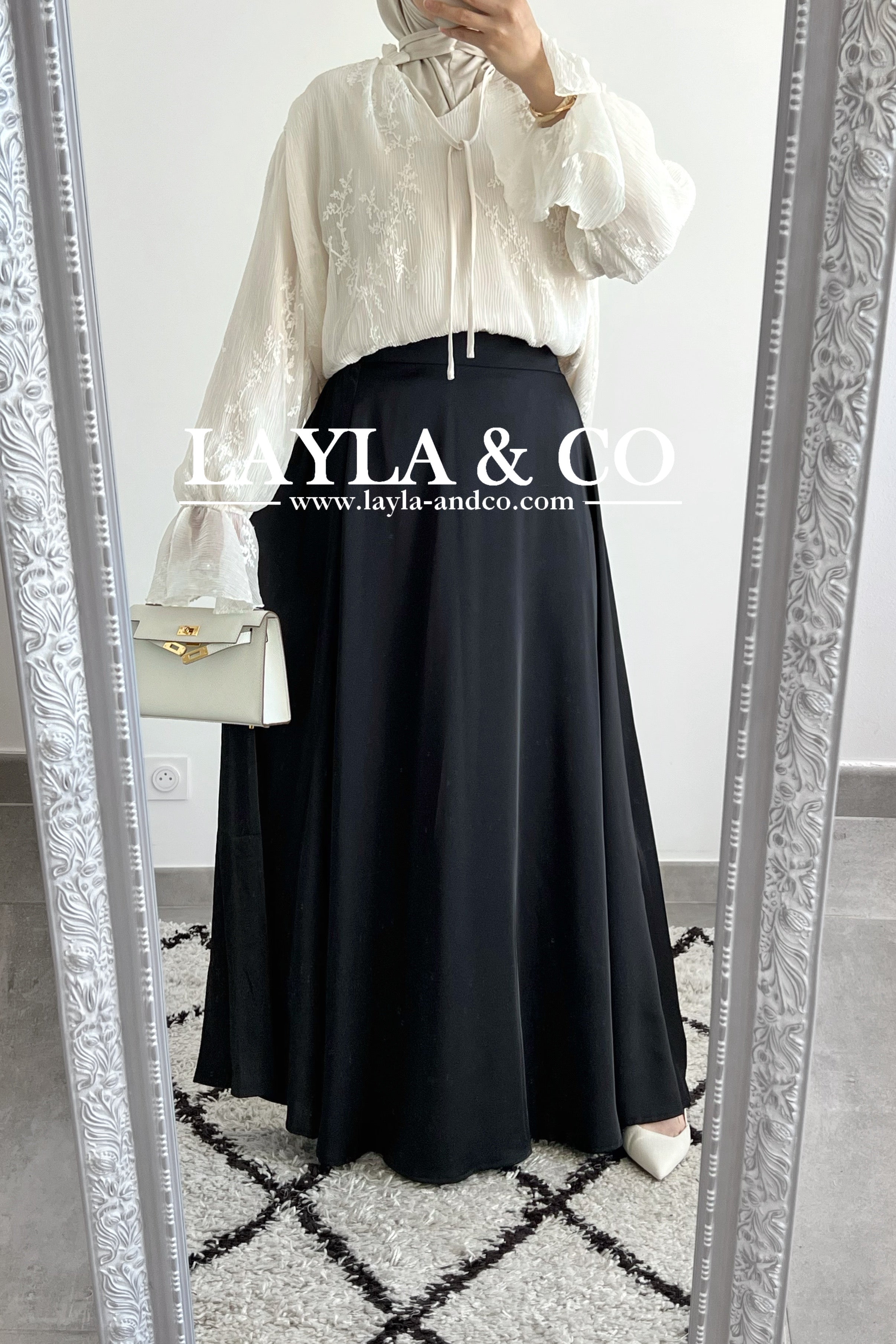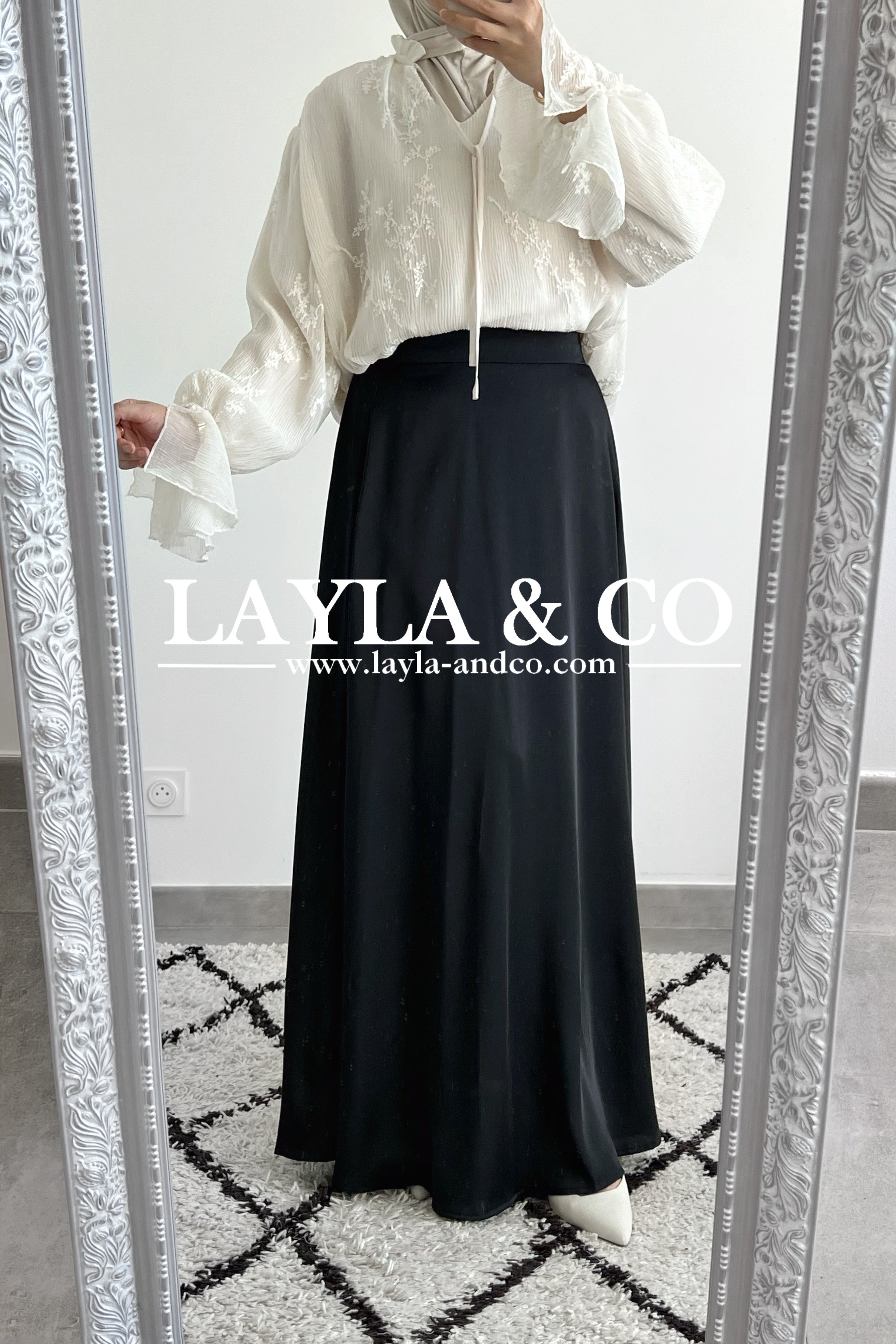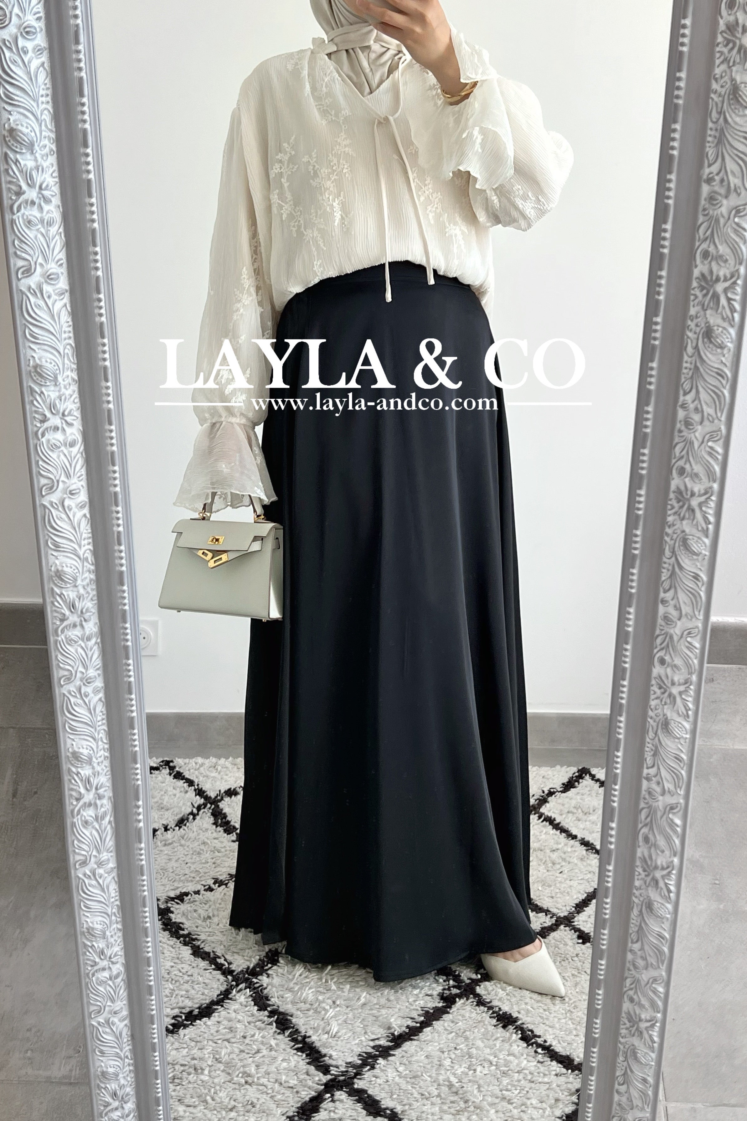 Blouse à voilage broderie entièrement doublée, manches volants fendues.