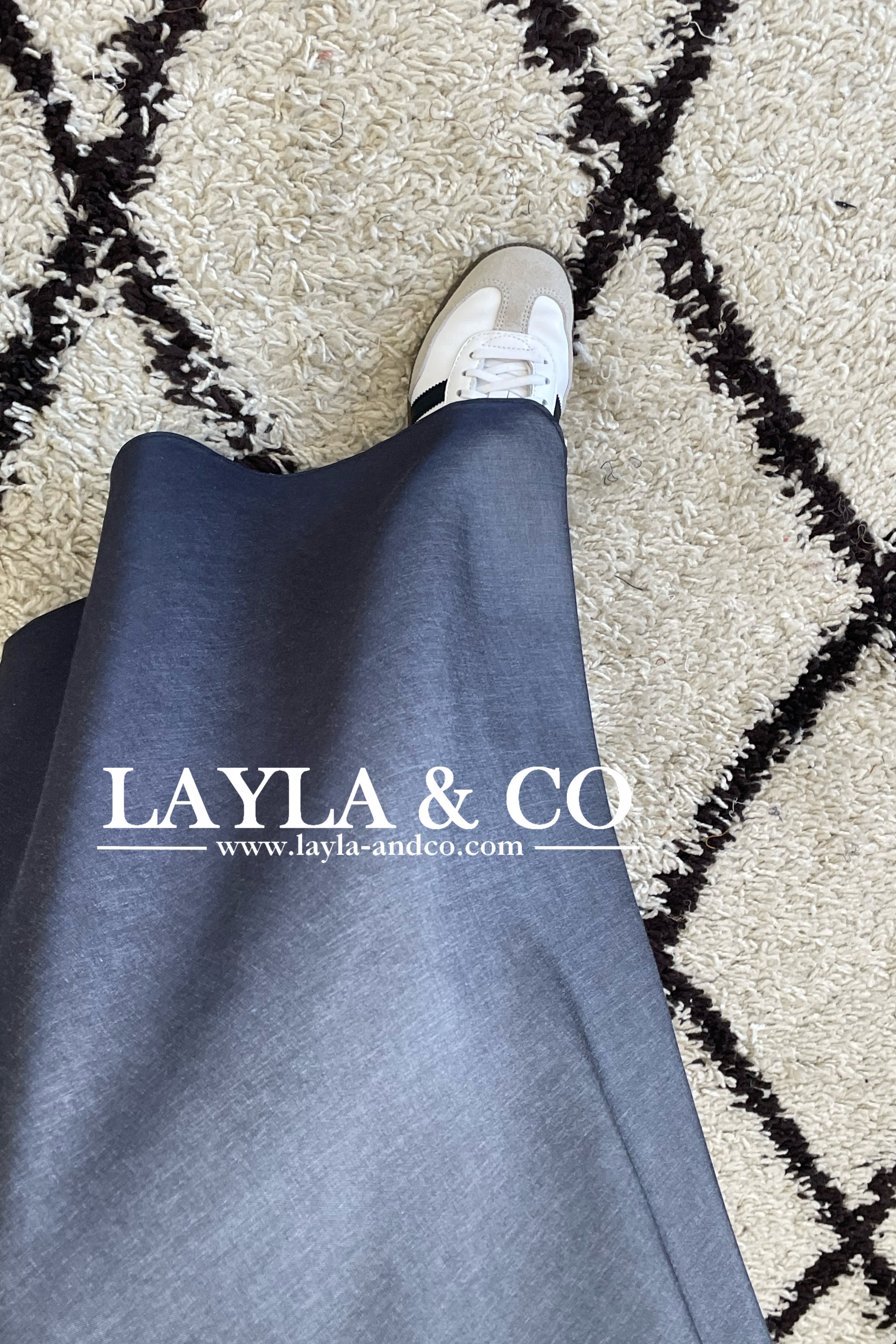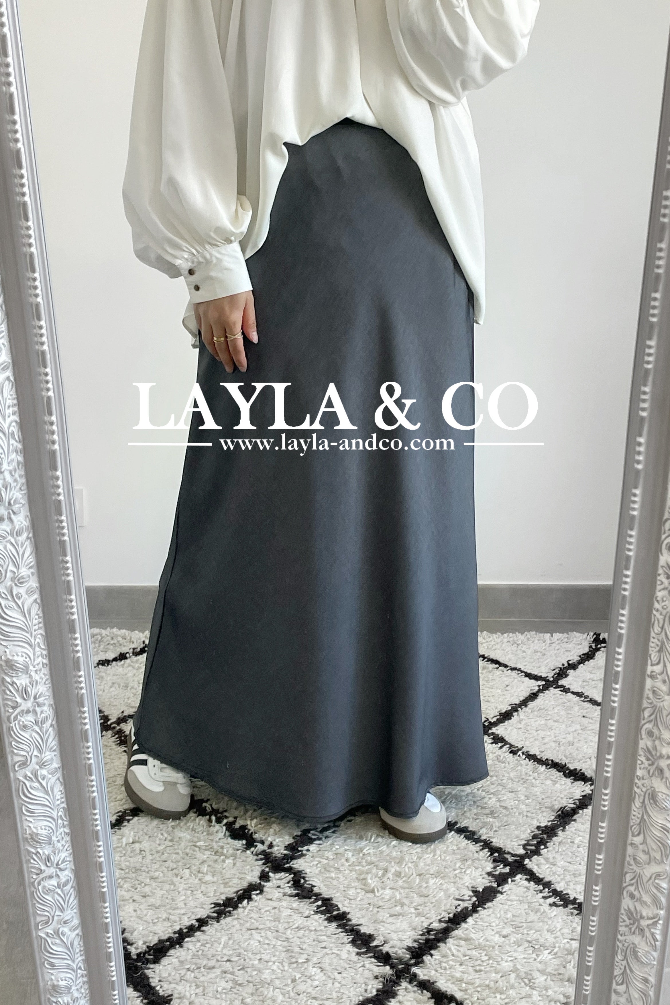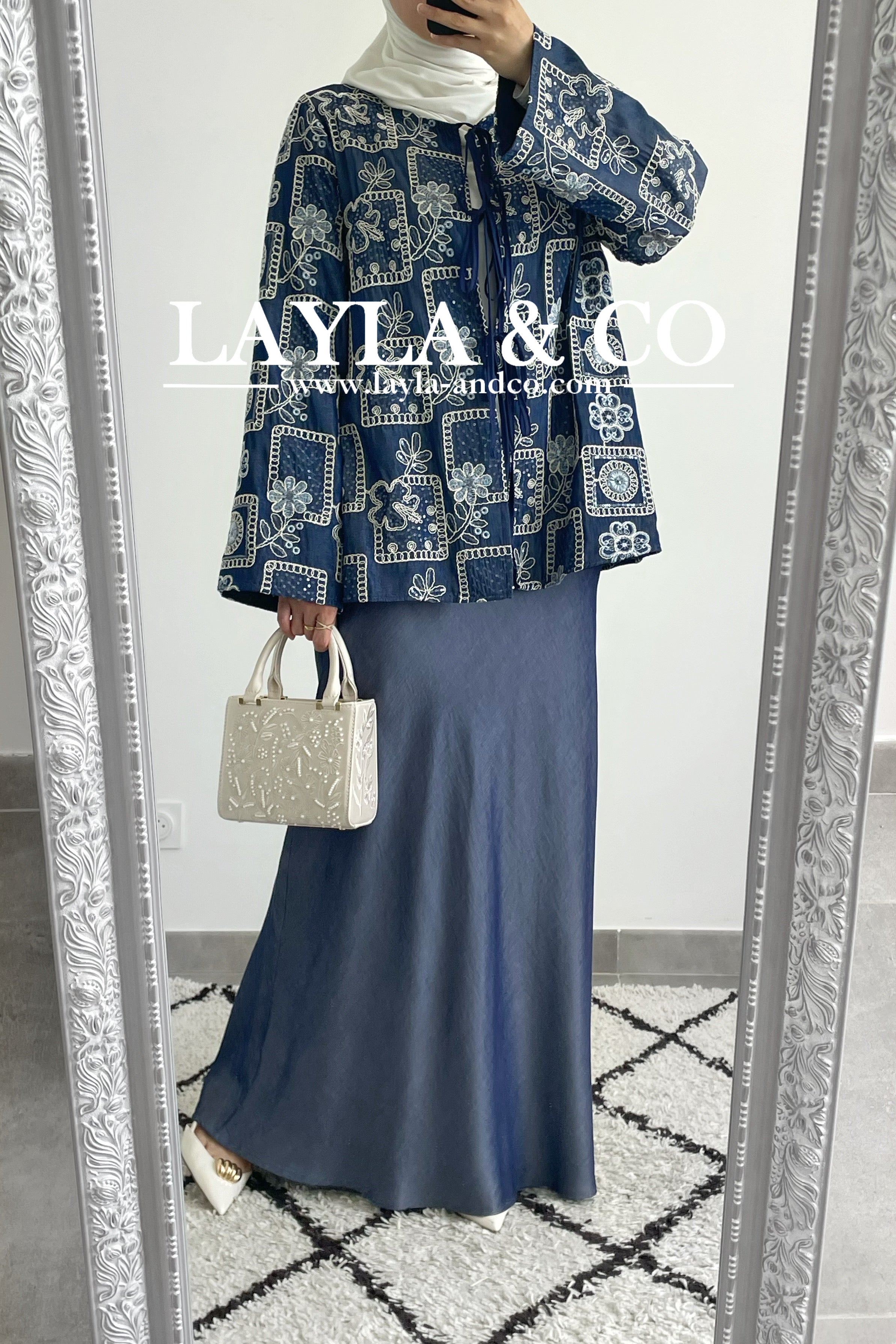 Jupe sirène effet jean, tissu composé à 70% de coton. La jupe dispose d’un élastique à la taille. La coupe est ajustée aux hanches, se porte idéalement avec un haut long ou kimono par dessus.