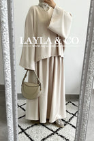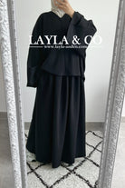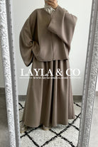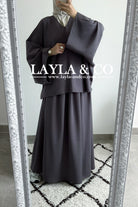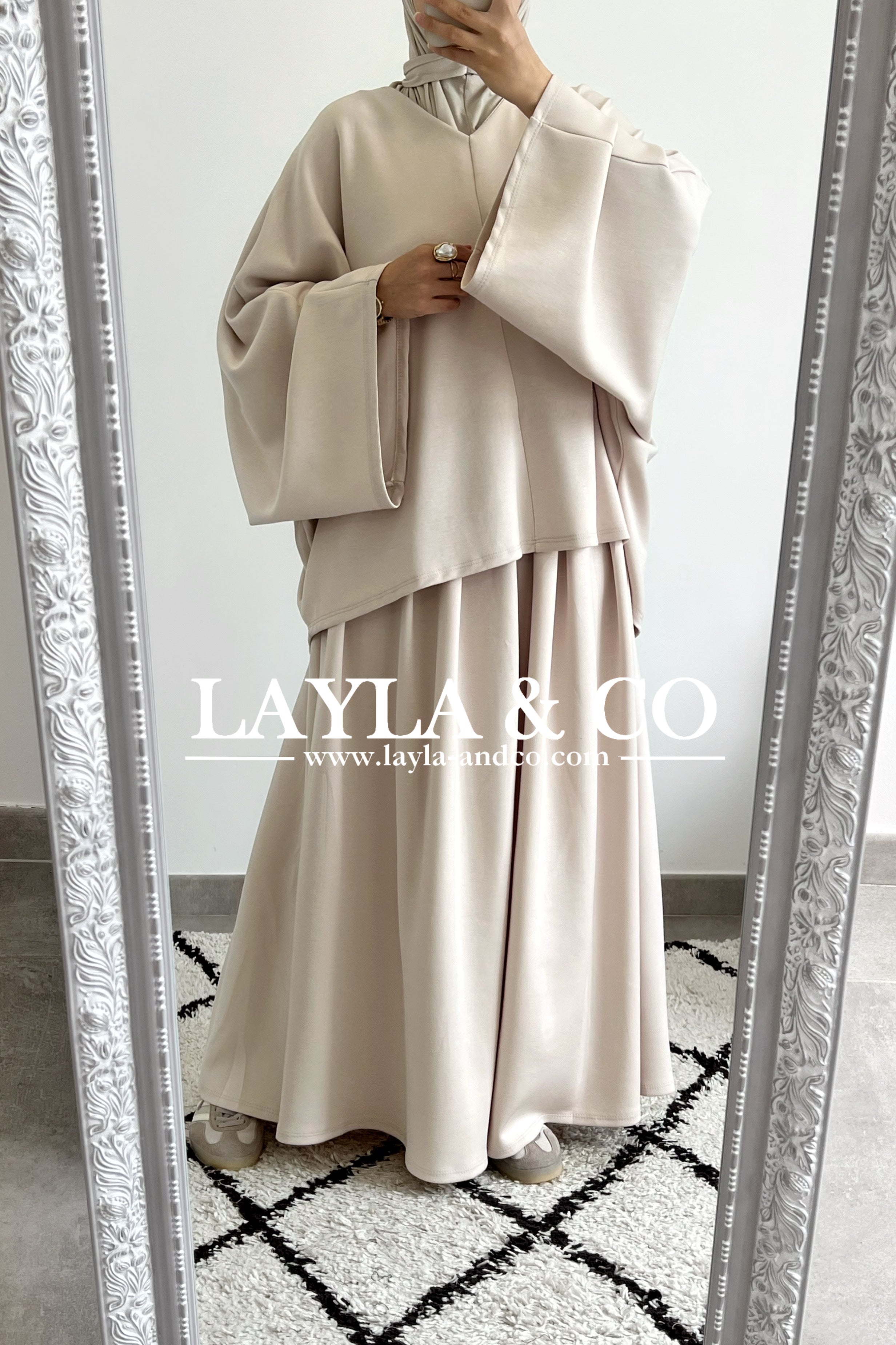 Ensemble 2 pièces composé d’un sweat court oversize et d’une jupe trapèze évasée avec pôches. Tissu type sweat très confortable.