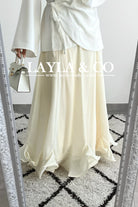 Jupe à voilage entièrement doublée avec volants dans le bas. Fermeture par zip.
