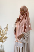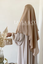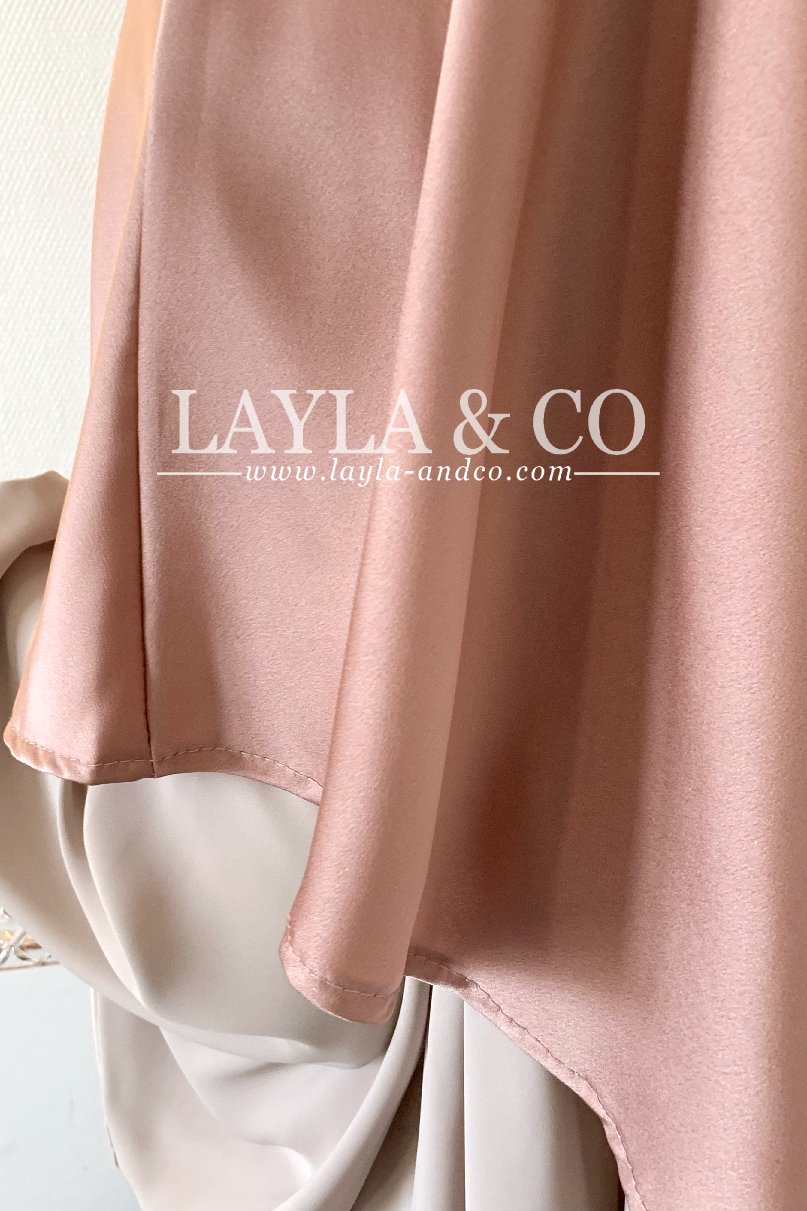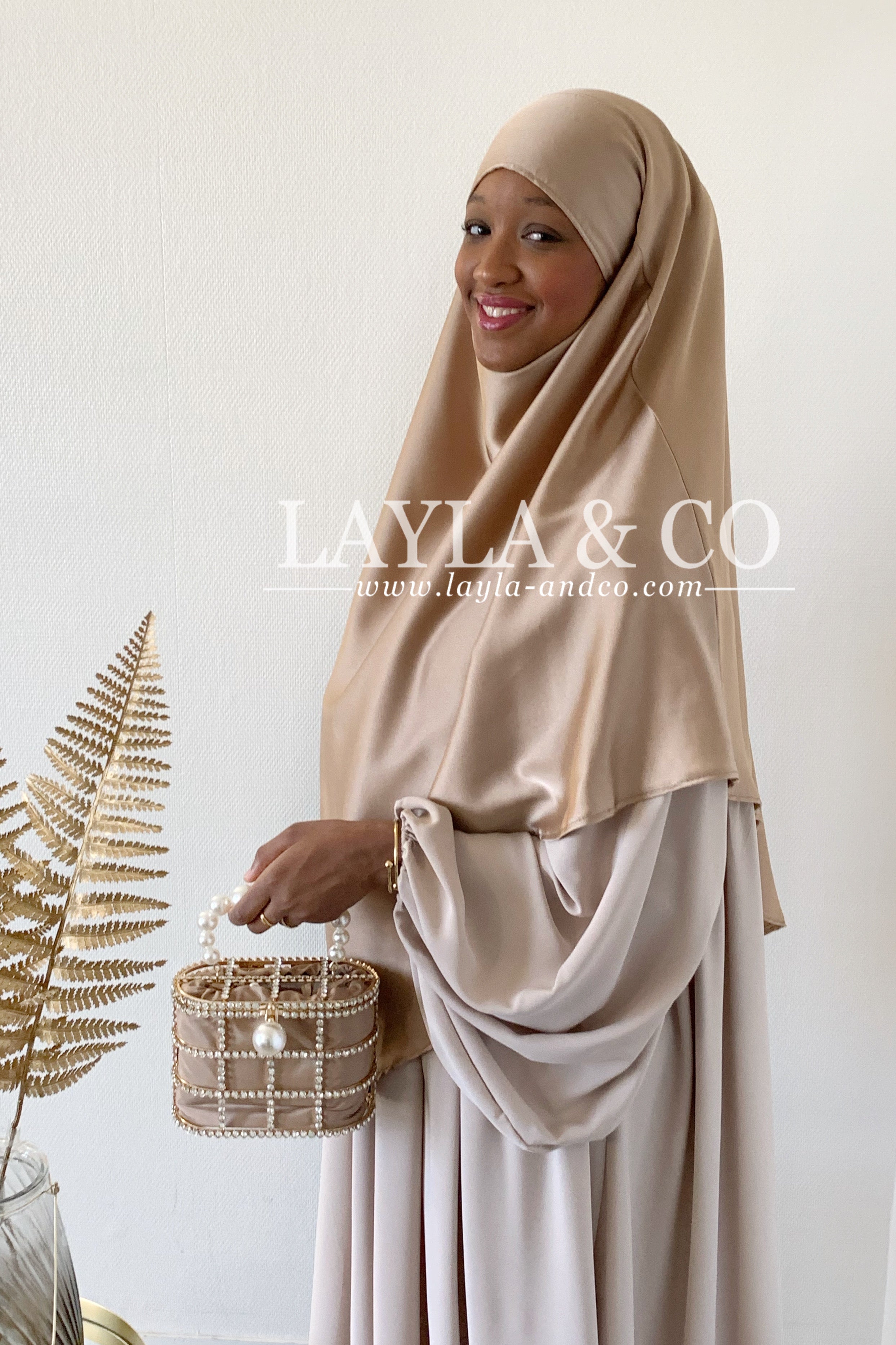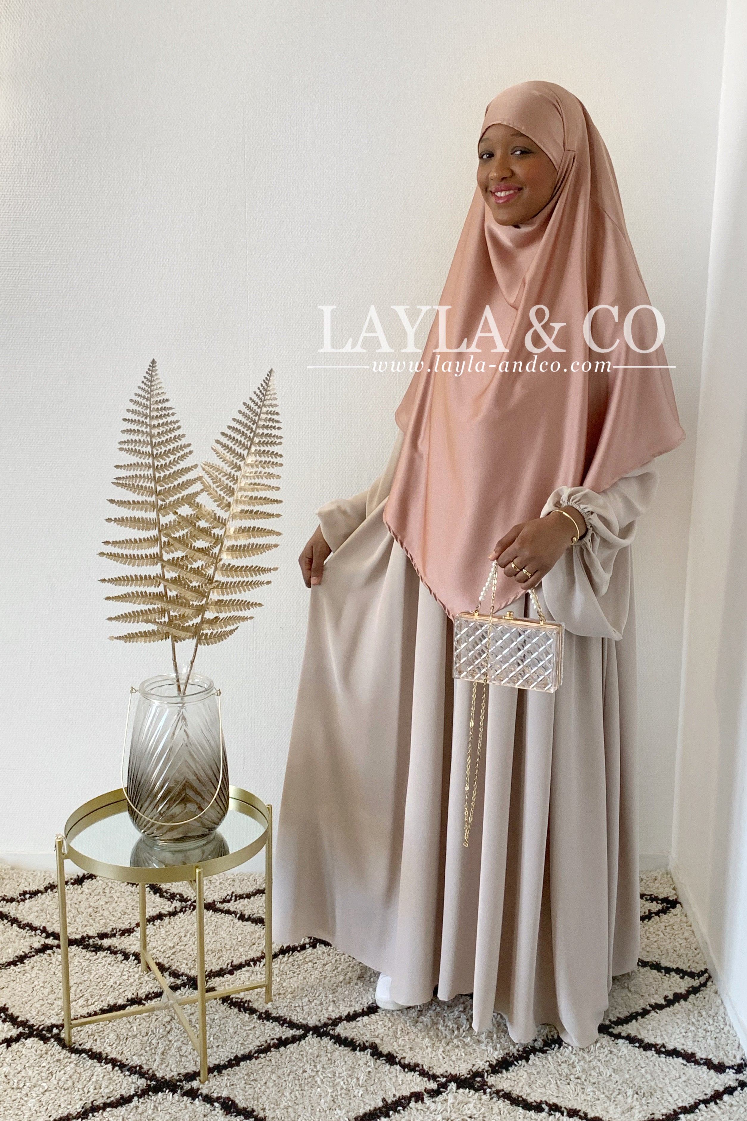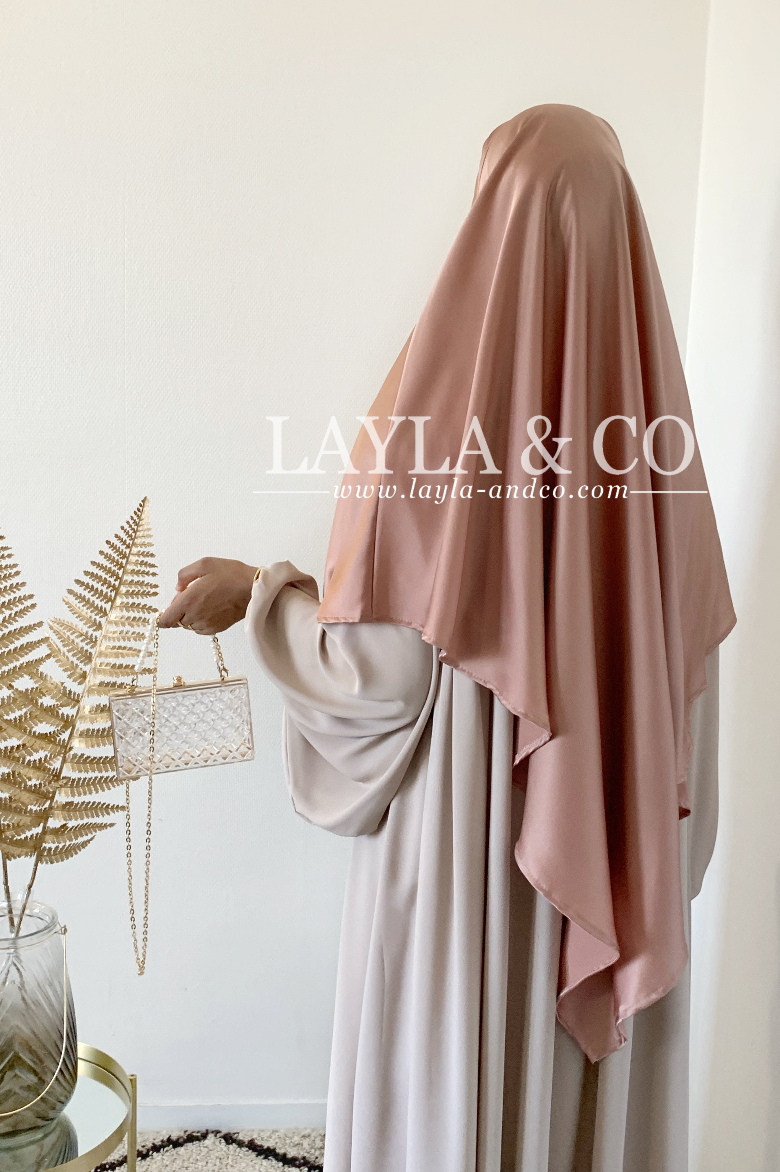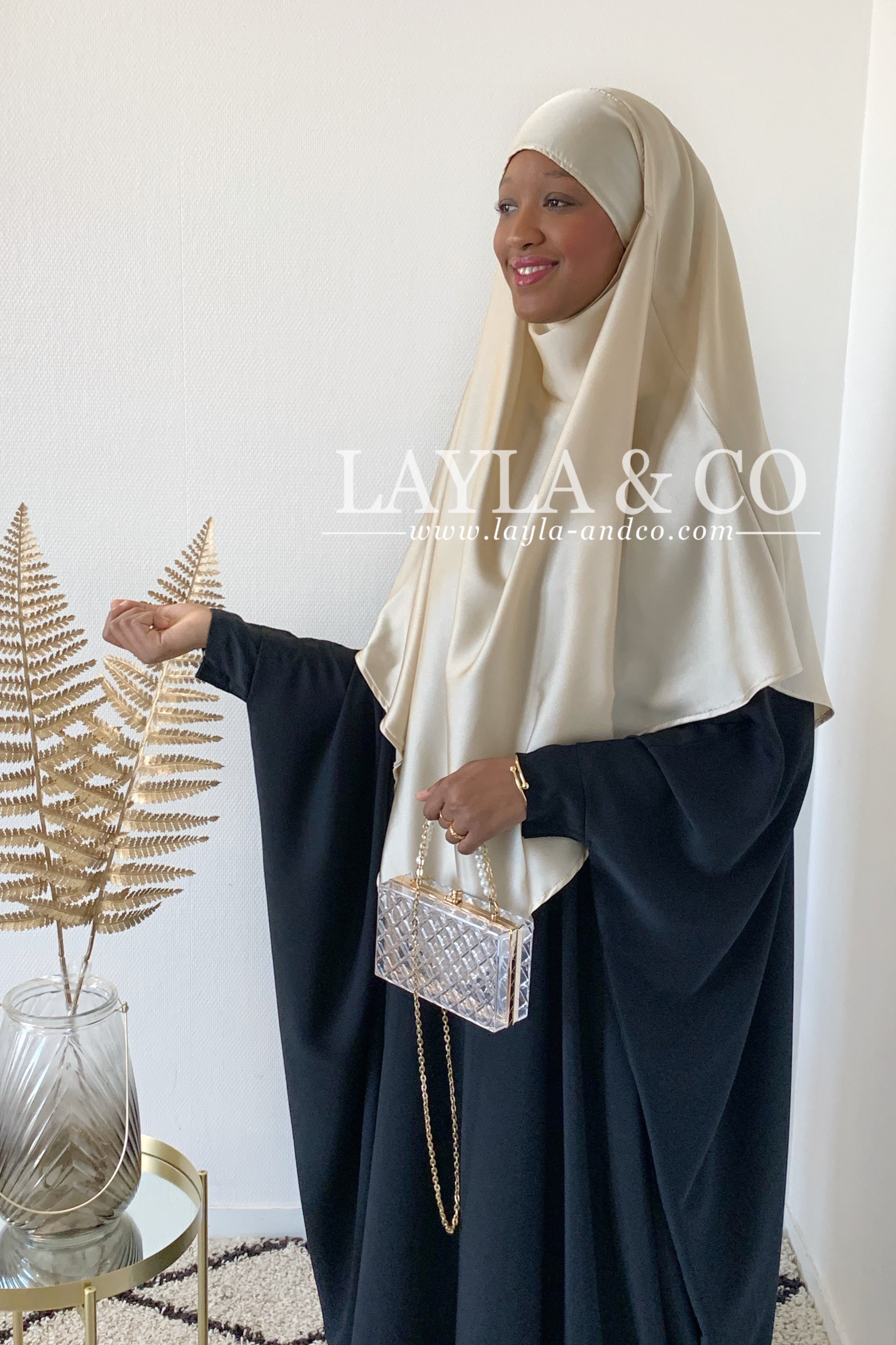 Khimar en tissu satiné , s’attache à l’aide de deux bandes comme une cape de jilbeb.